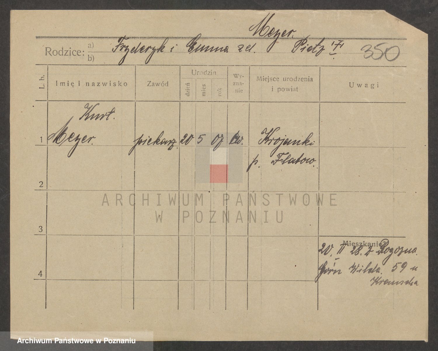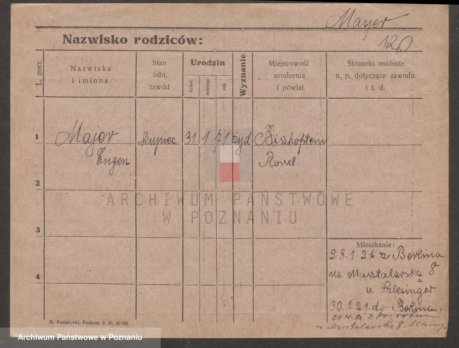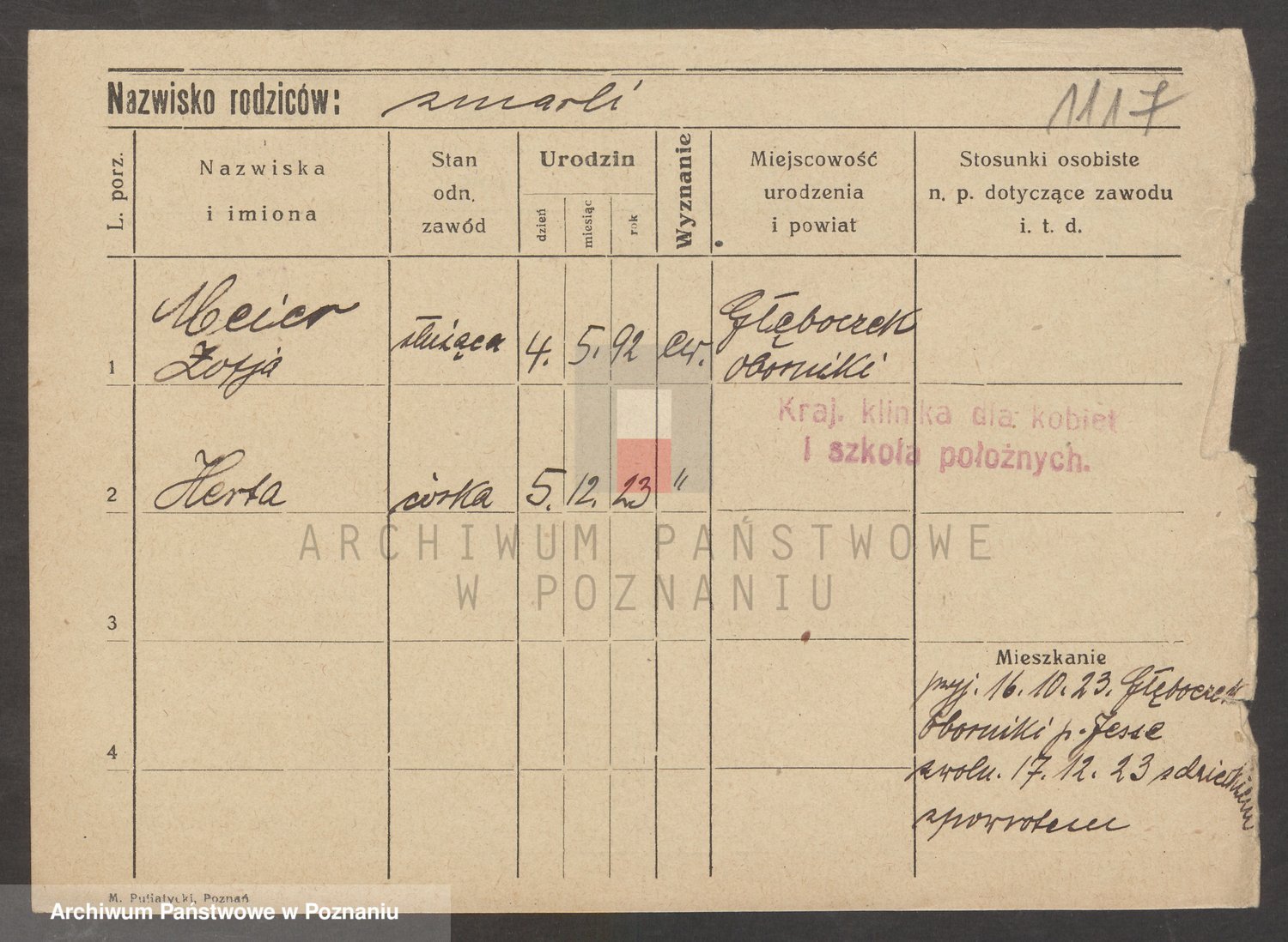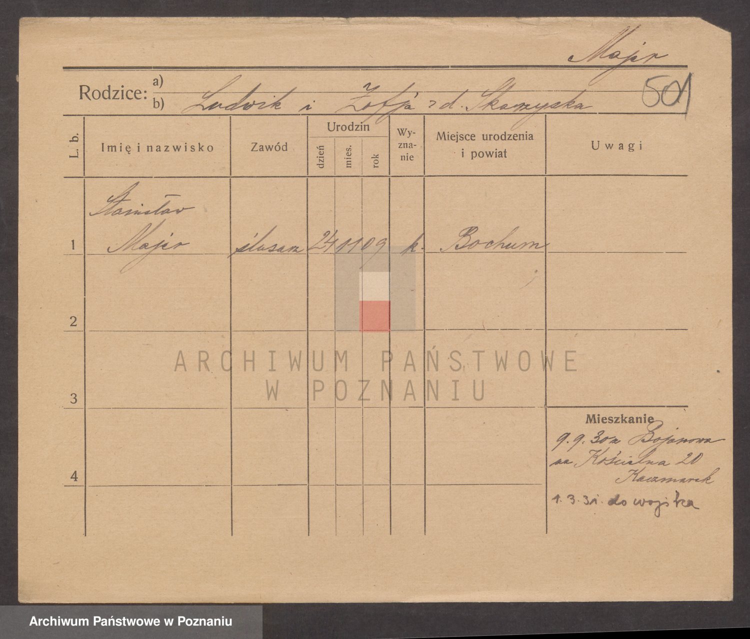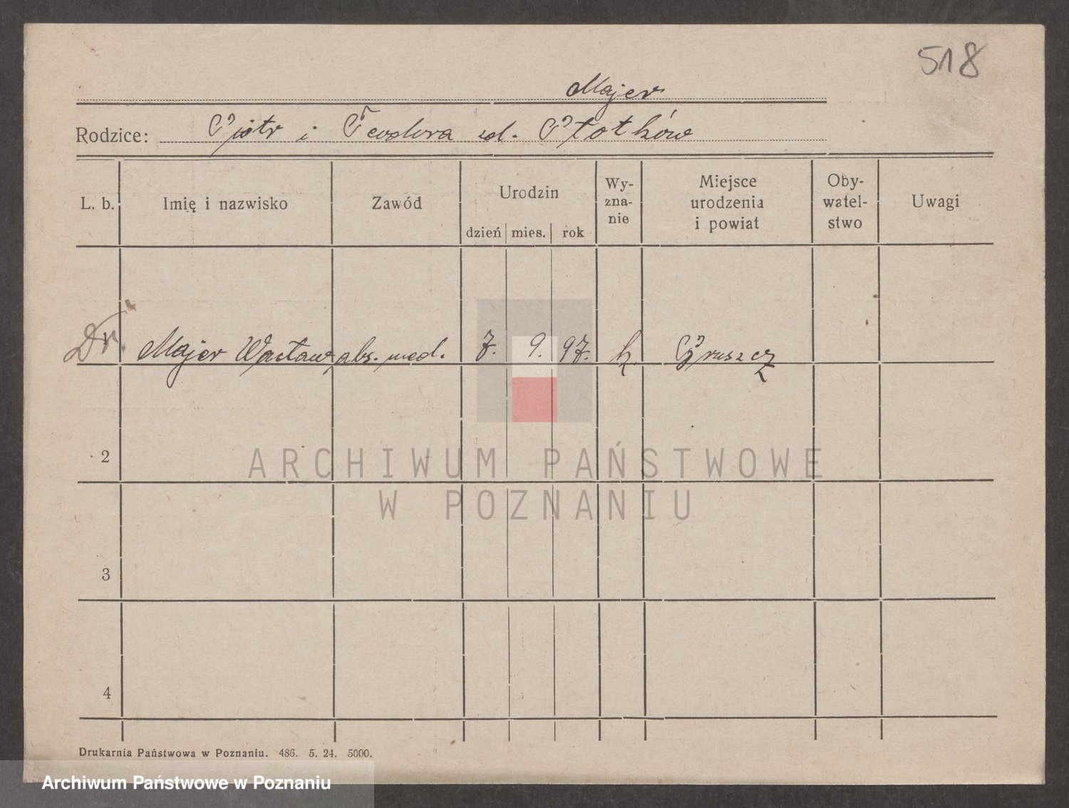 Podgląd karty osobowej dostępny jest po kliknięciu na nazwisko lub ikonkę karty. Można dokonywać powiększenia (ikony na górze) lub przechodzić między kolejnymi skanami (strzałki po bokach).