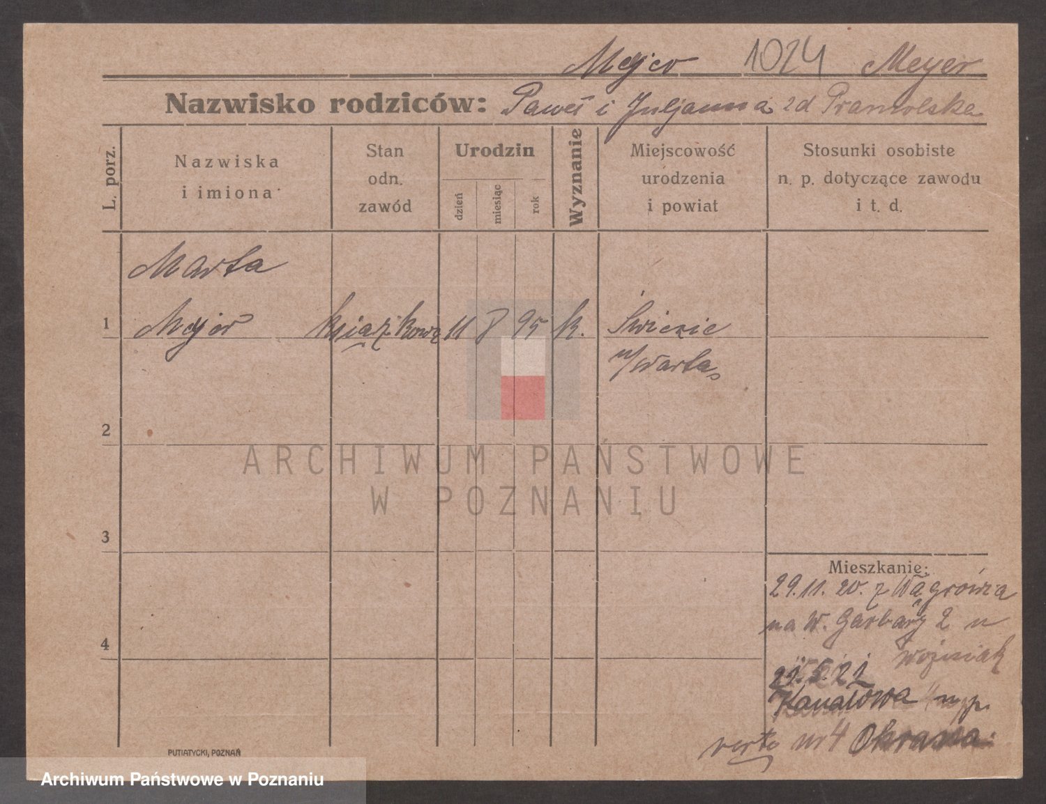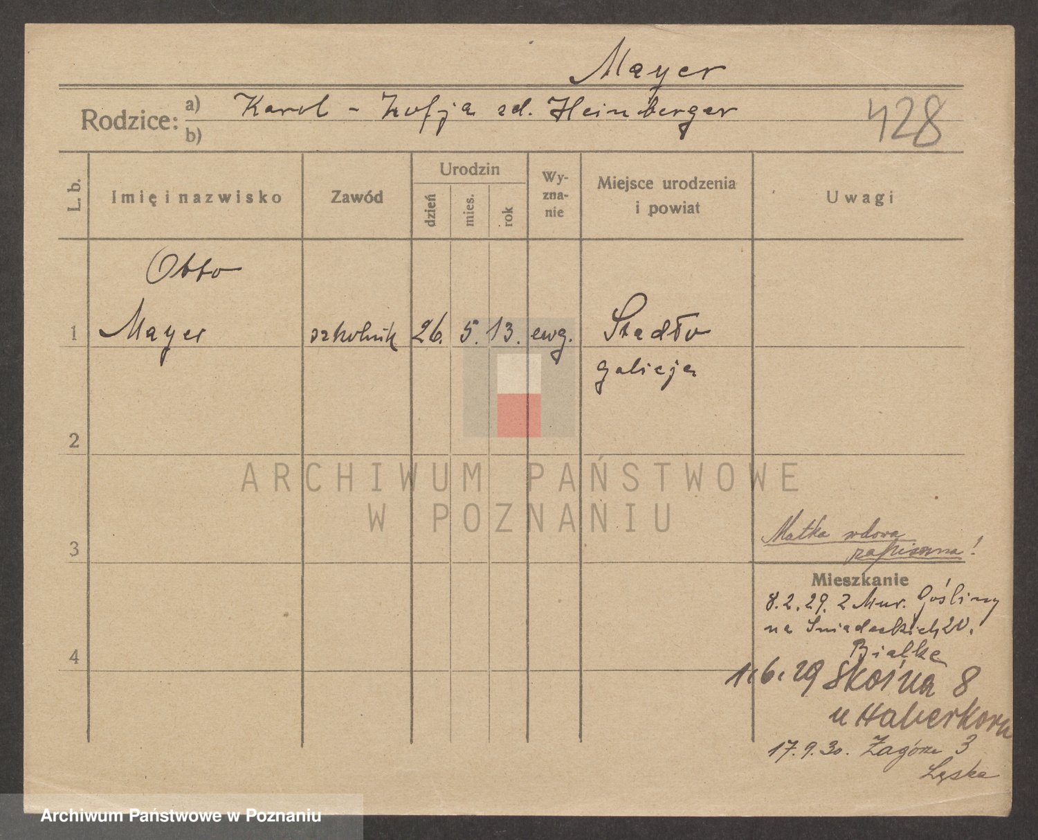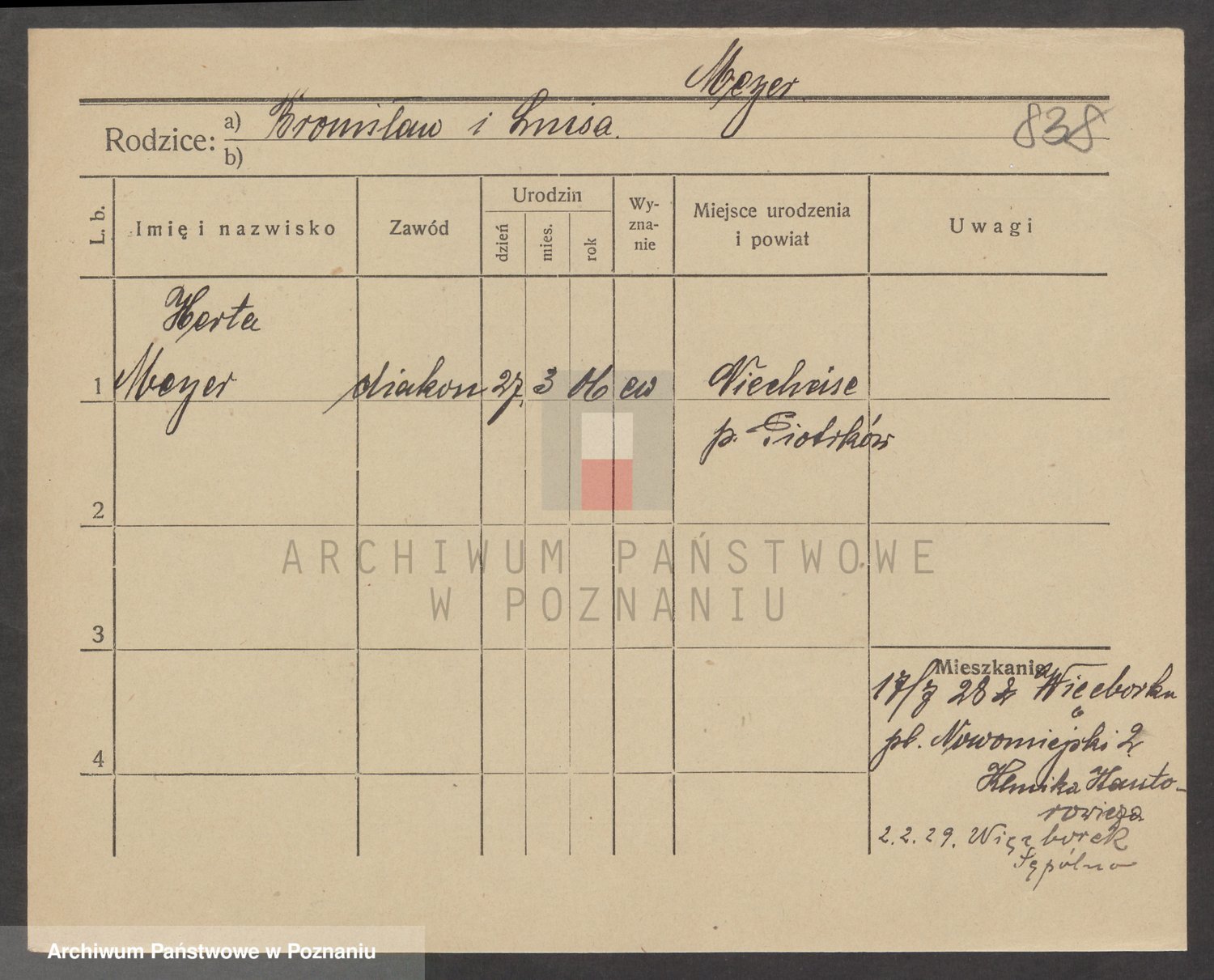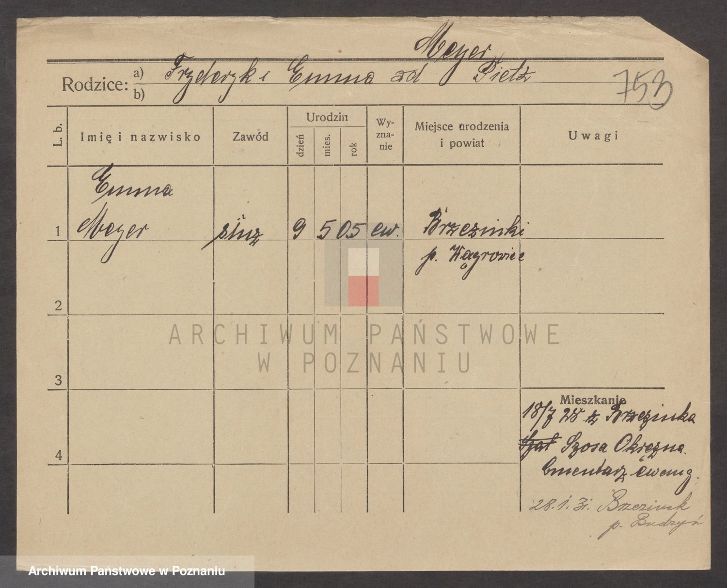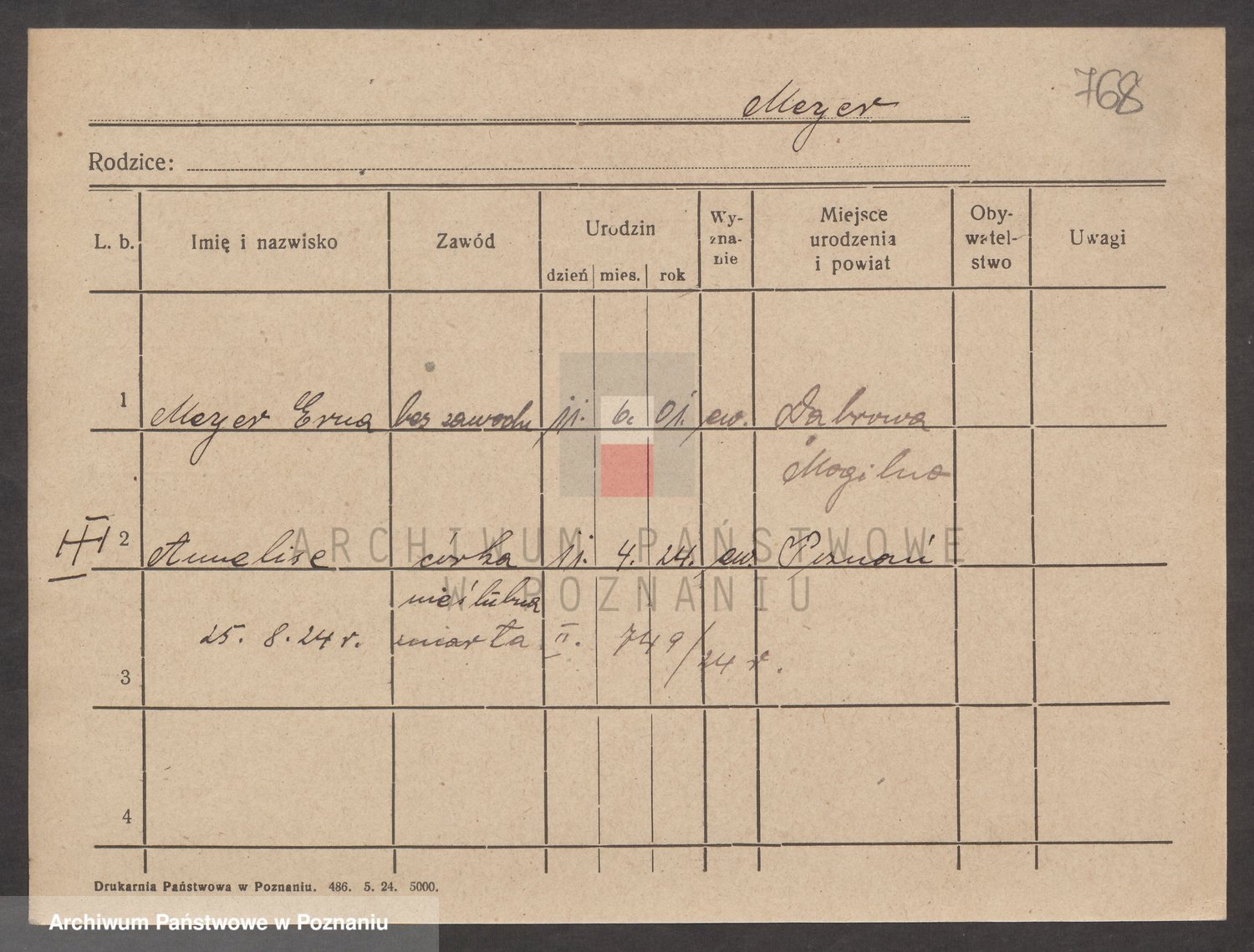 Podgląd karty osobowej dostępny jest po kliknięciu na nazwisko lub ikonkę karty. Można dokonywać powiększenia (ikony na górze) lub przechodzić między kolejnymi skanami (strzałki po bokach).