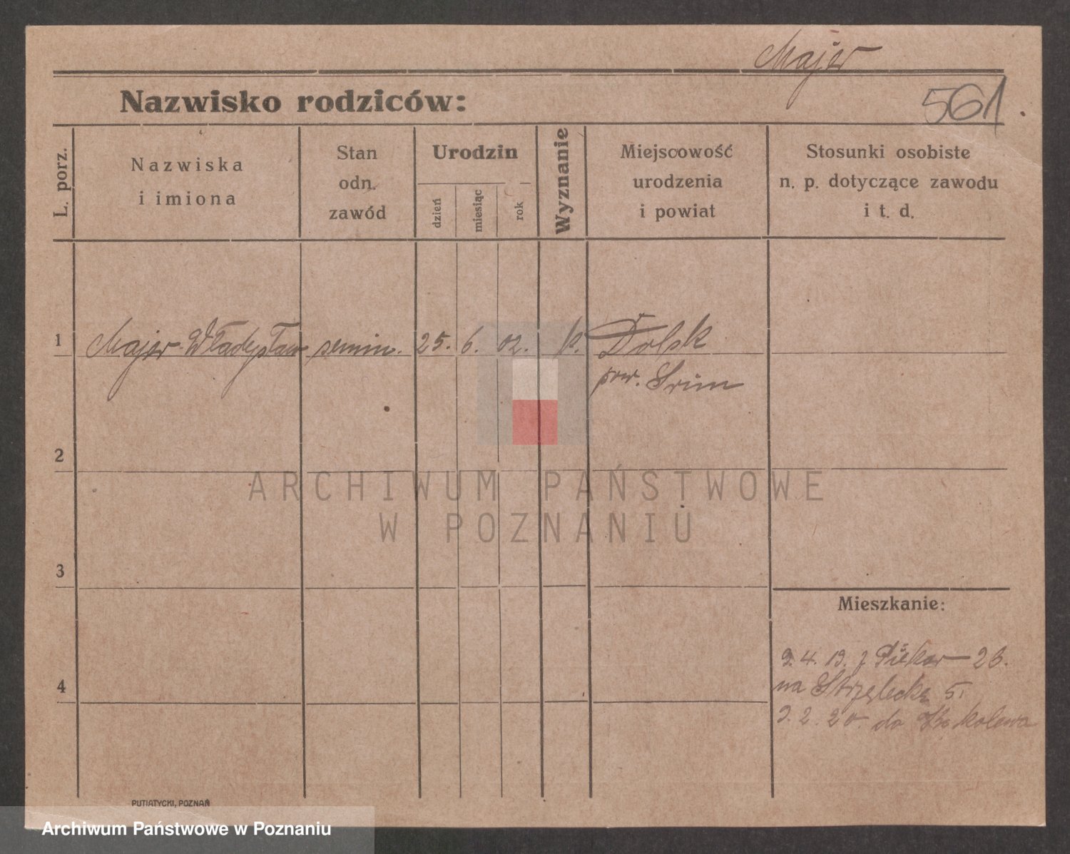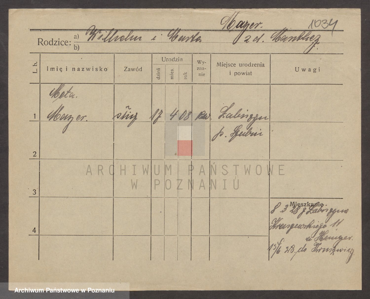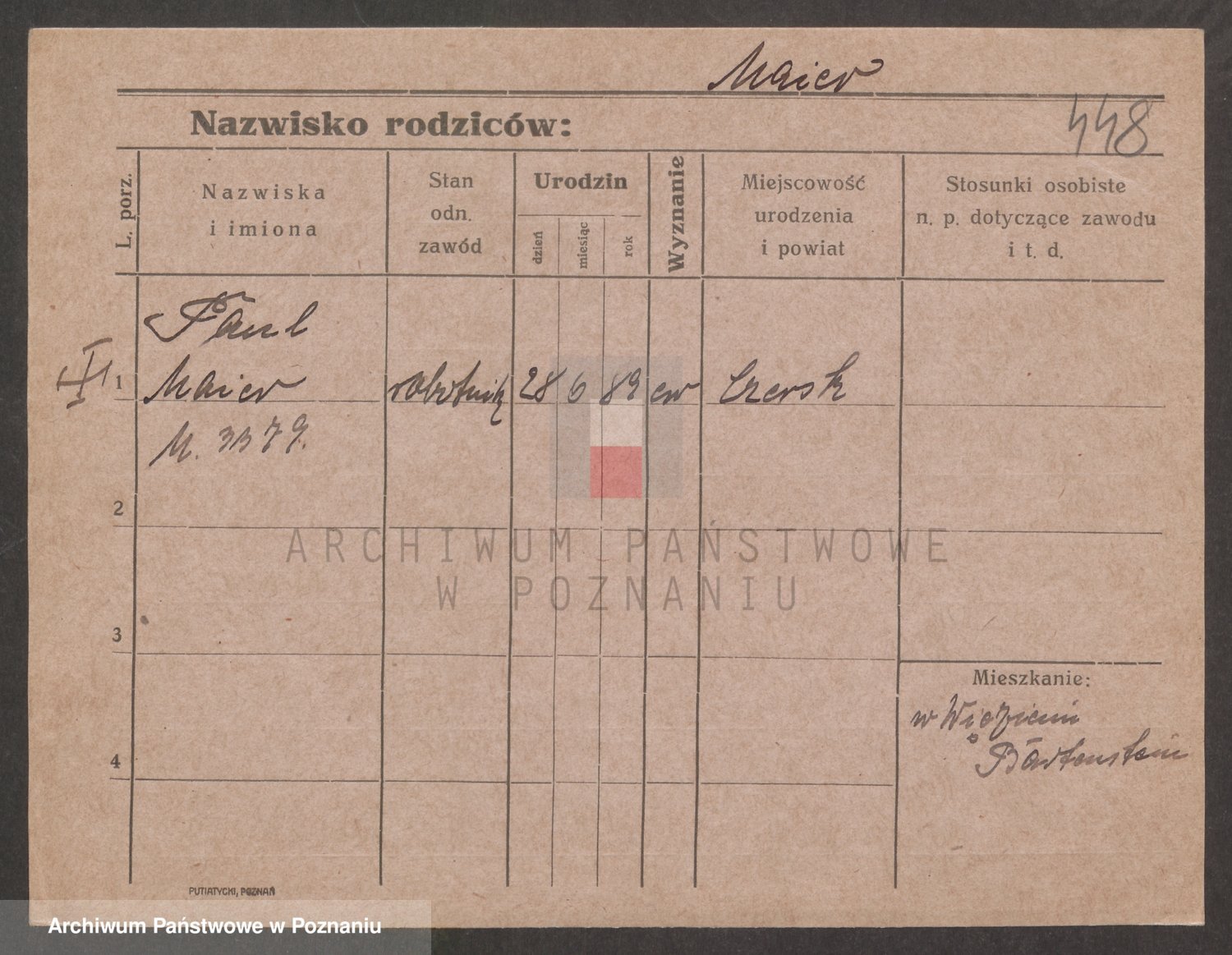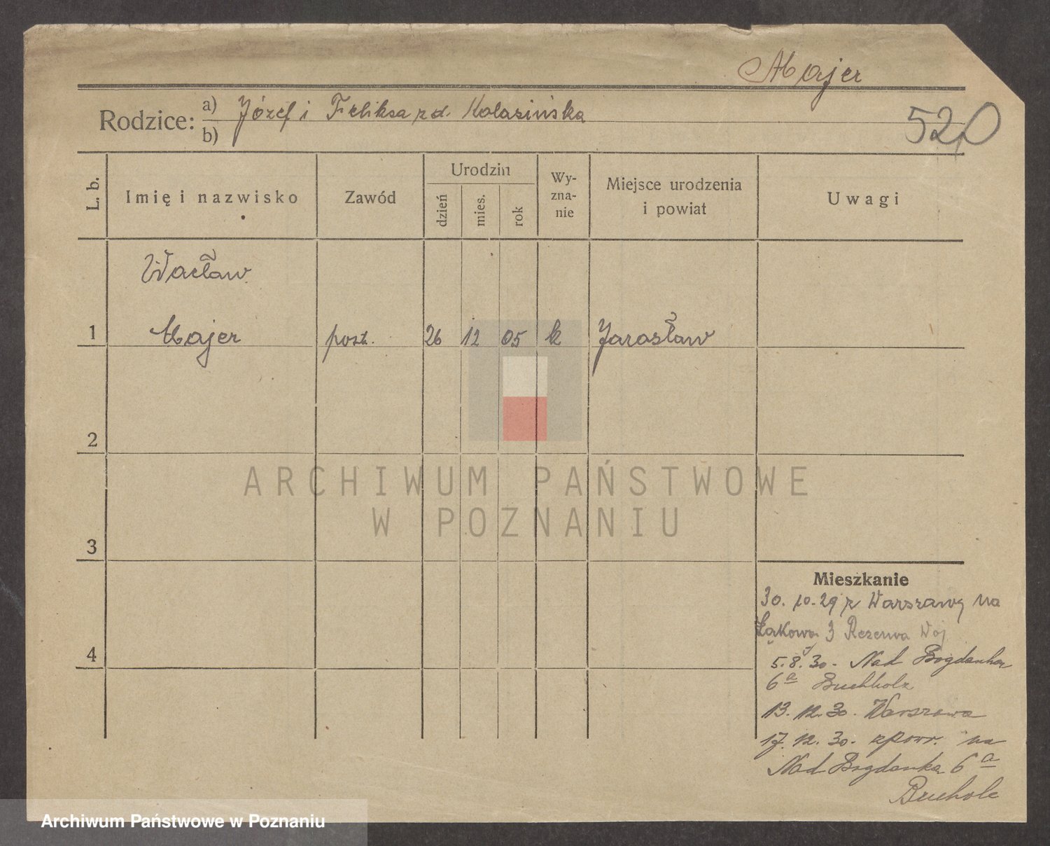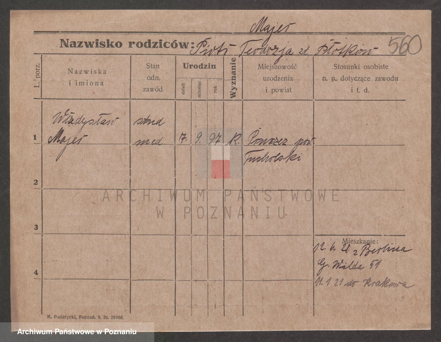 Podgląd karty osobowej dostępny jest po kliknięciu na nazwisko lub ikonkę karty. Można dokonywać powiększenia (ikony na górze) lub przechodzić między kolejnymi skanami (strzałki po bokach).