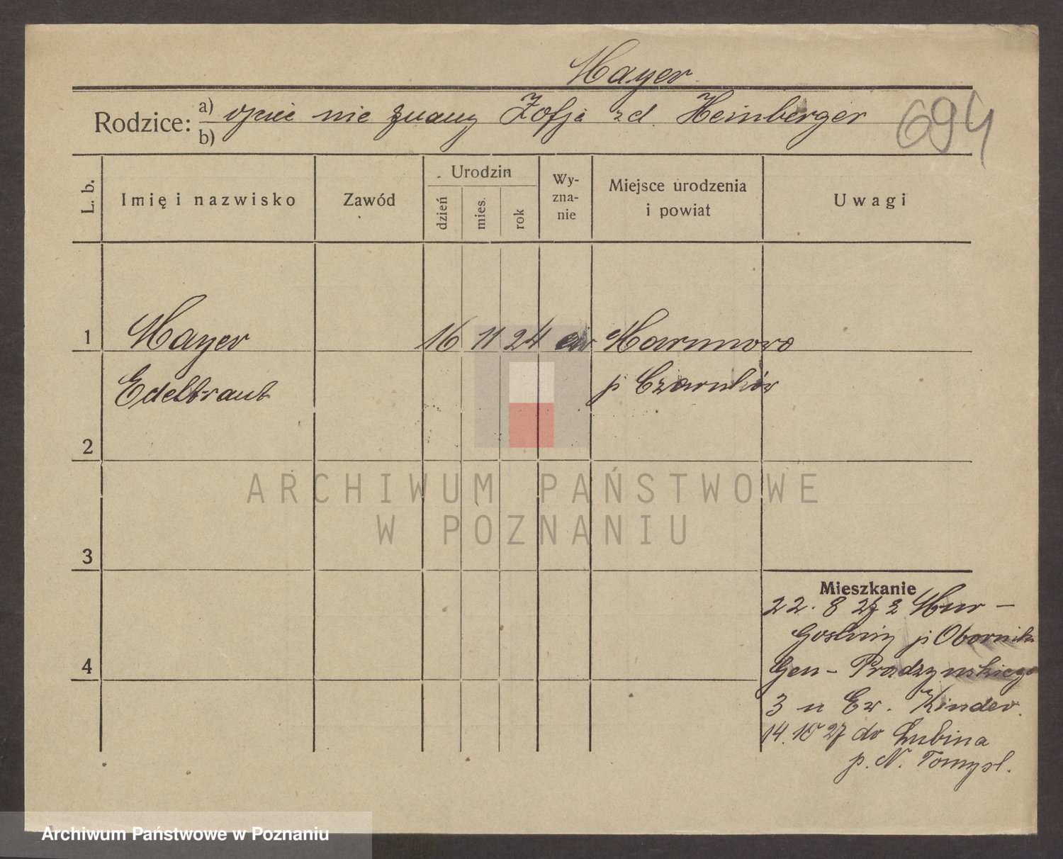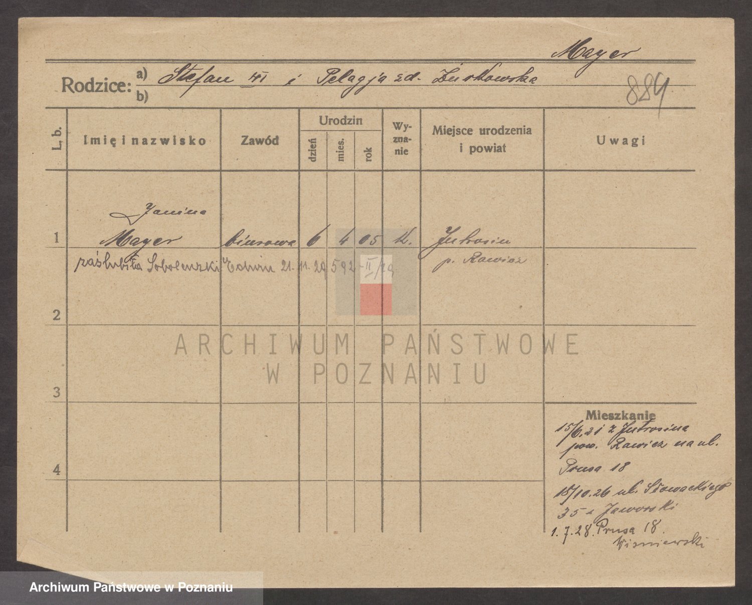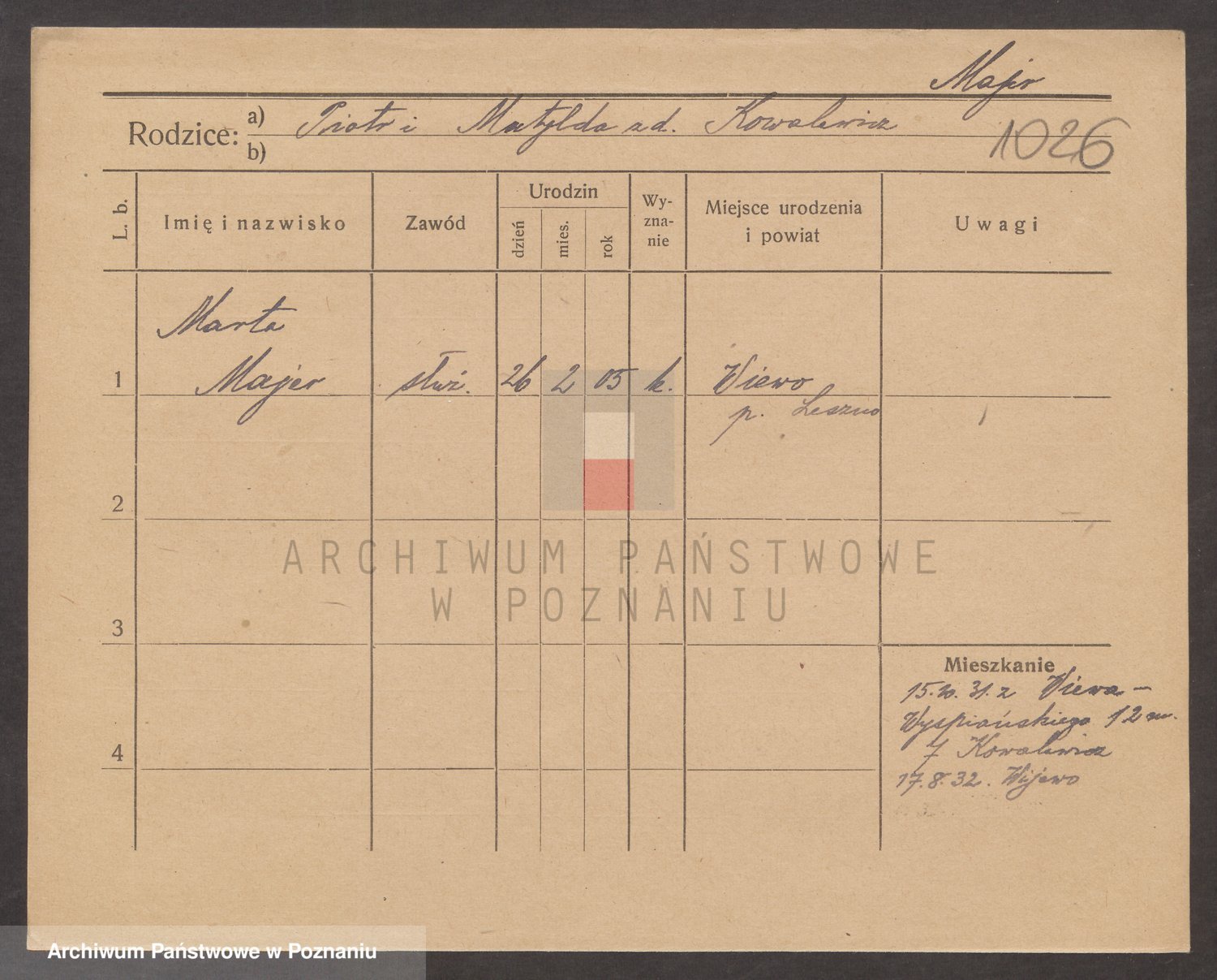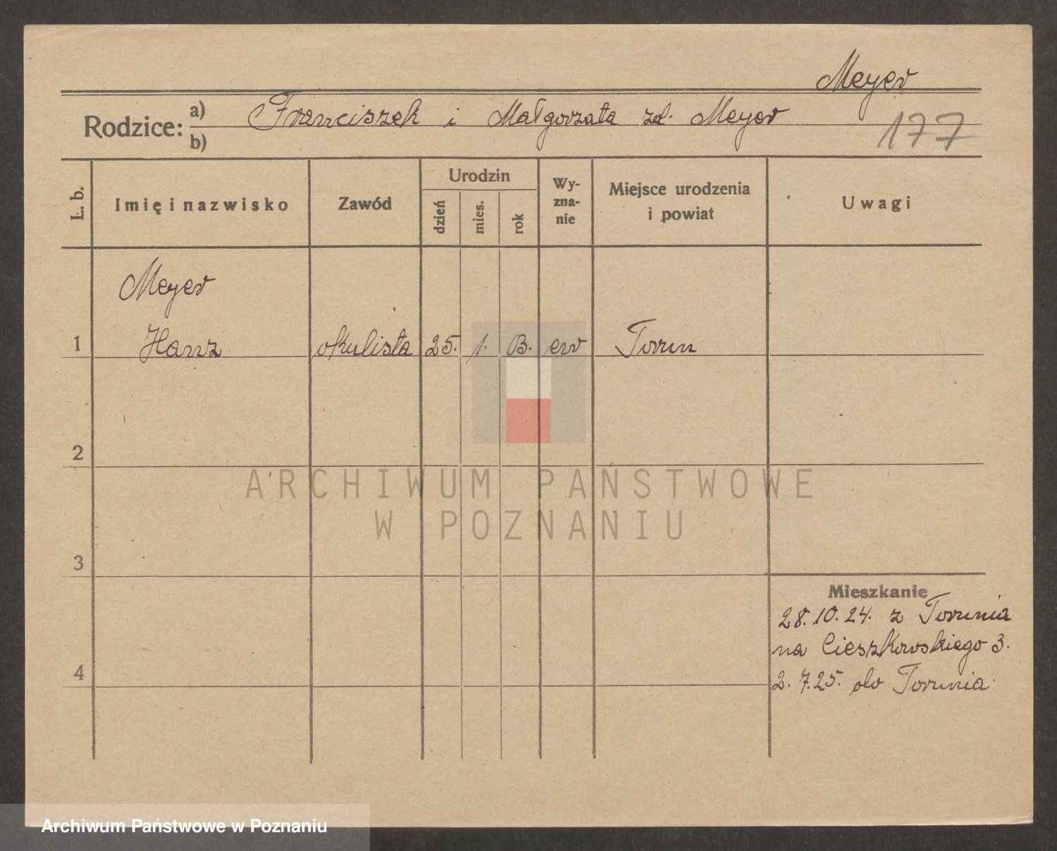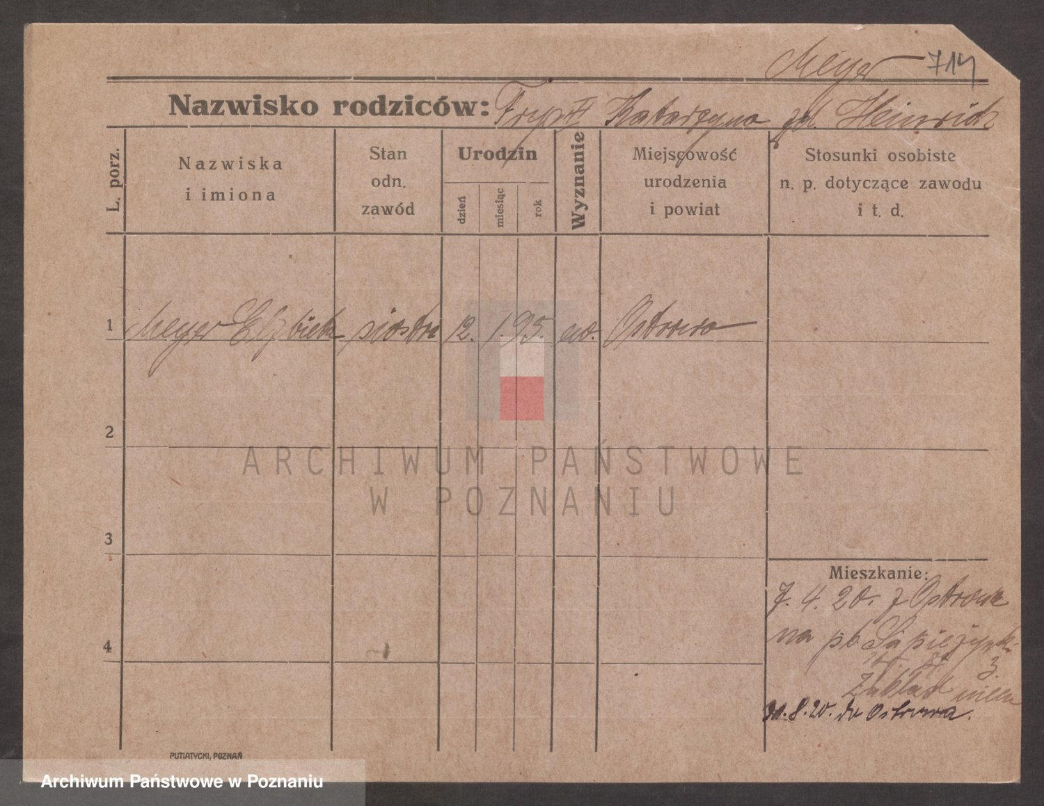 Podgląd karty osobowej dostępny jest po kliknięciu na nazwisko lub ikonkę karty. Można dokonywać powiększenia (ikony na górze) lub przechodzić między kolejnymi skanami (strzałki po bokach).