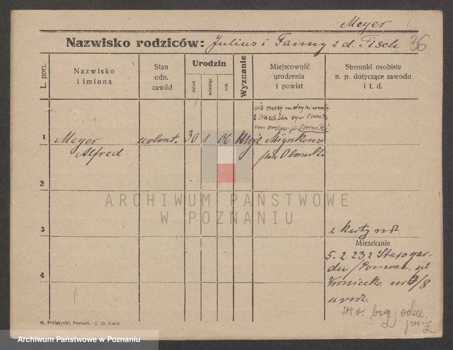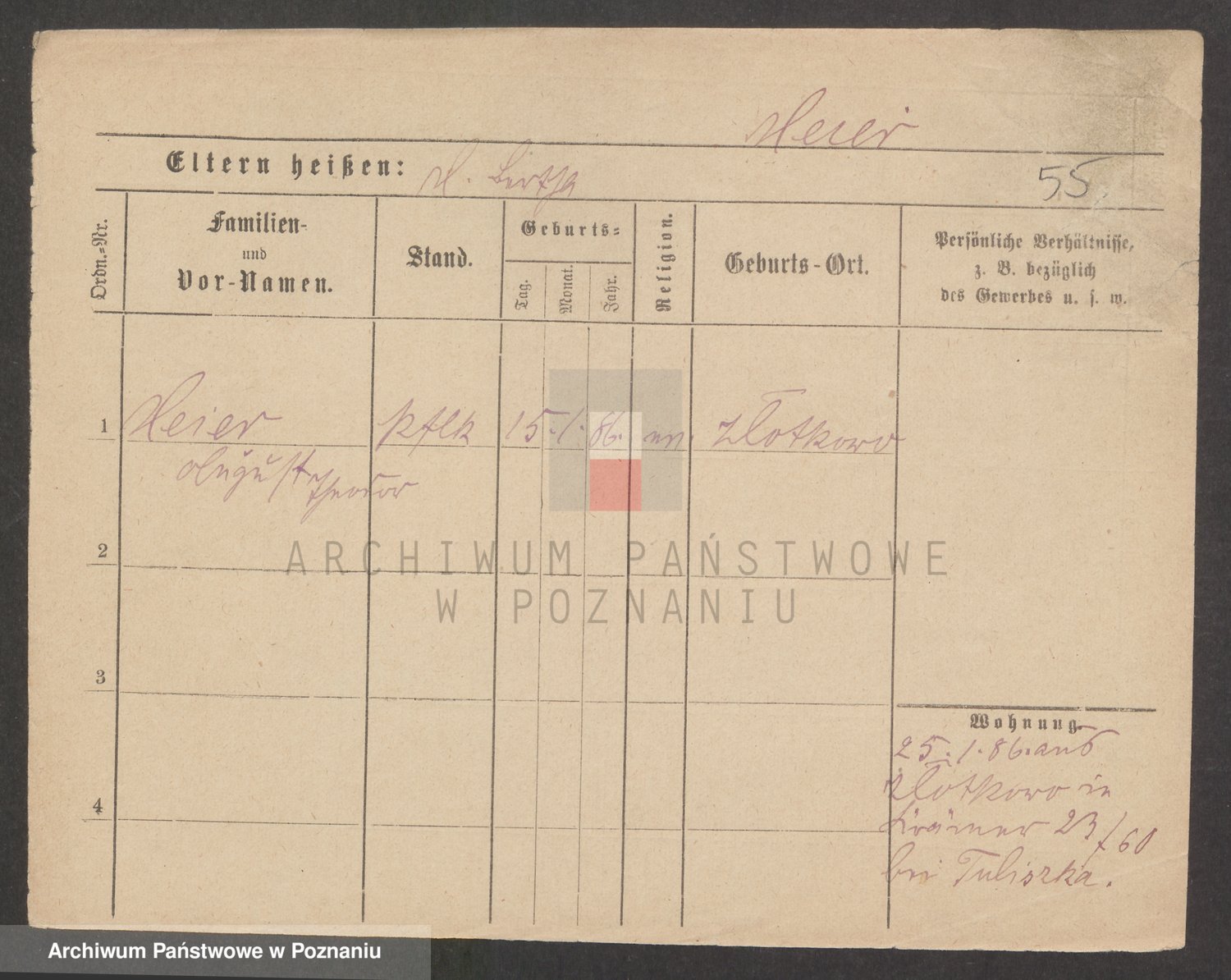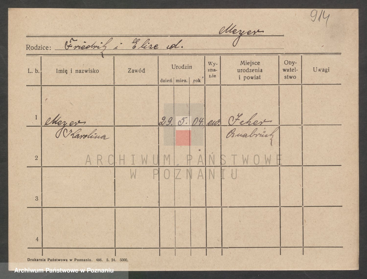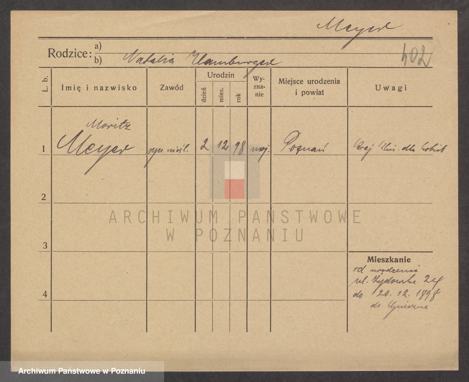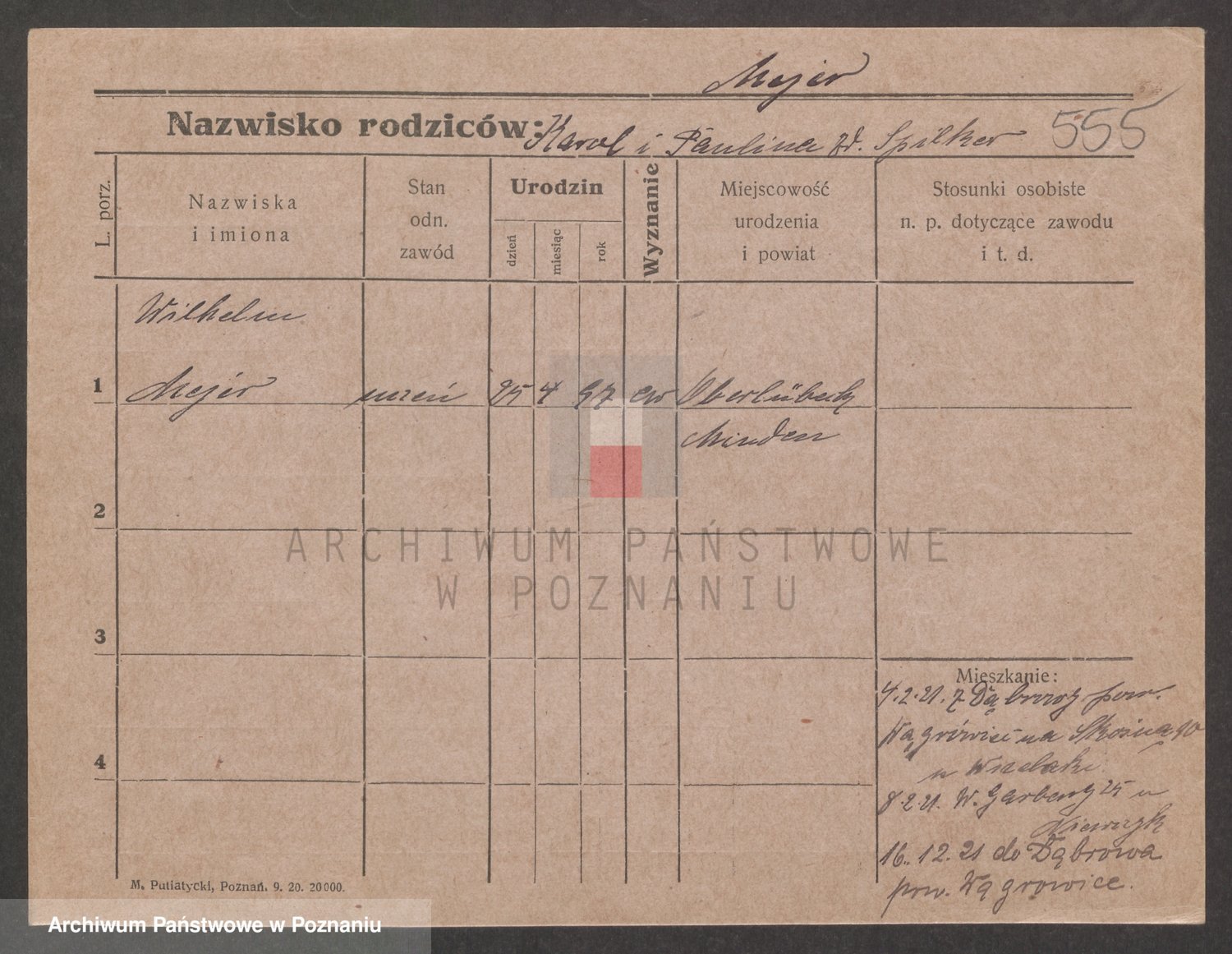 Podgląd karty osobowej dostępny jest po kliknięciu na nazwisko lub ikonkę karty. Można dokonywać powiększenia (ikony na górze) lub przechodzić między kolejnymi skanami (strzałki po bokach).