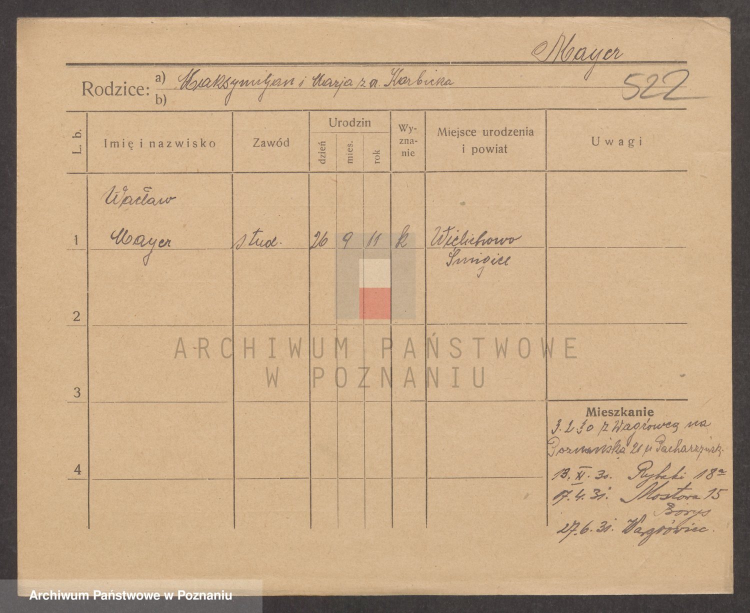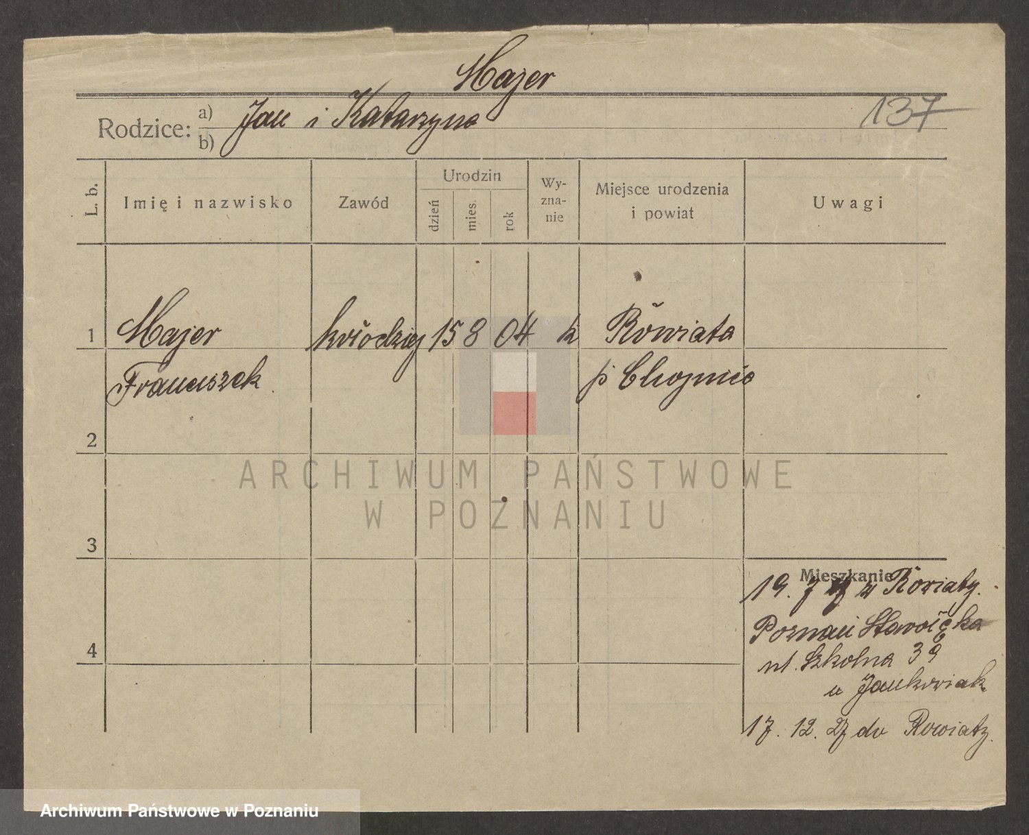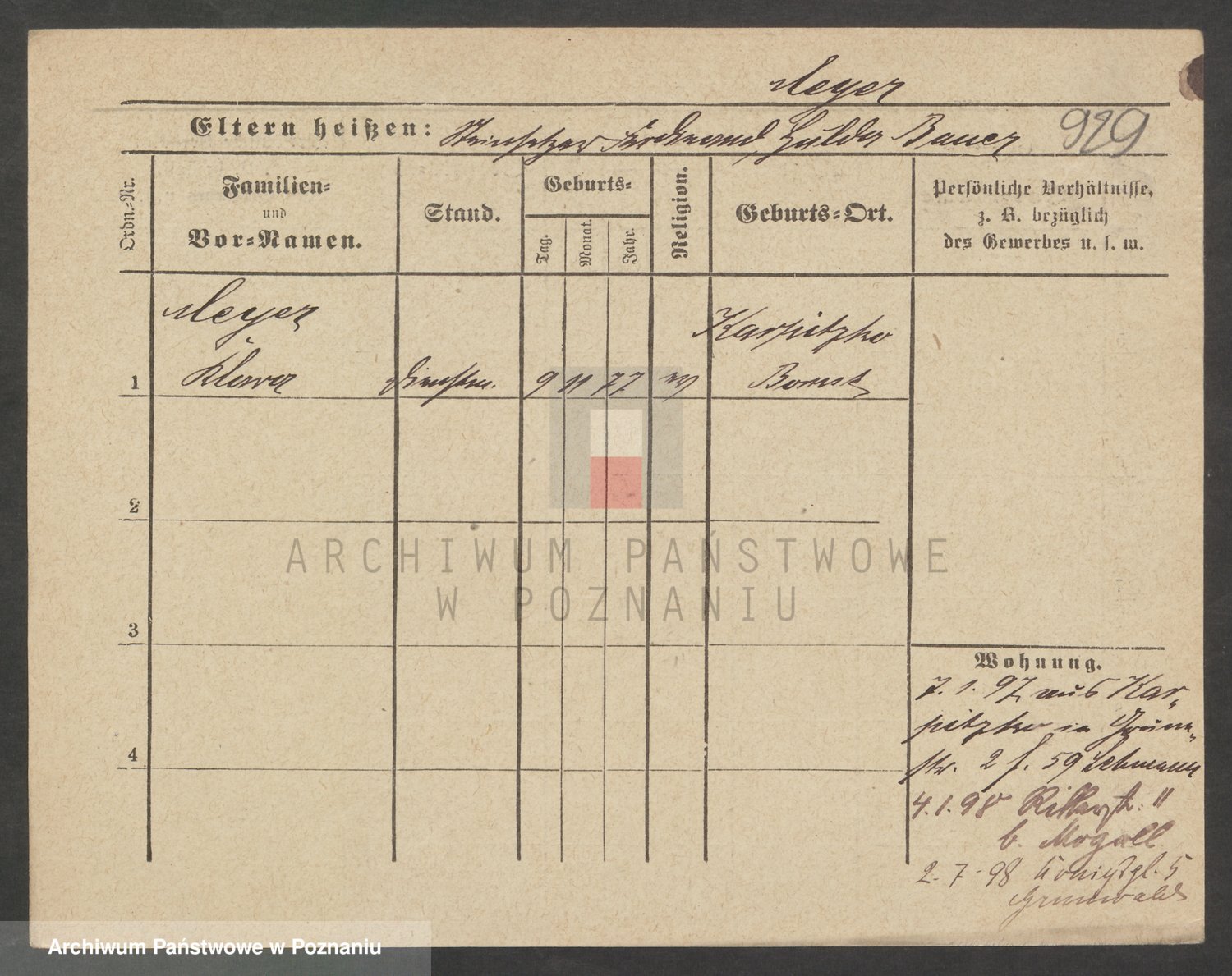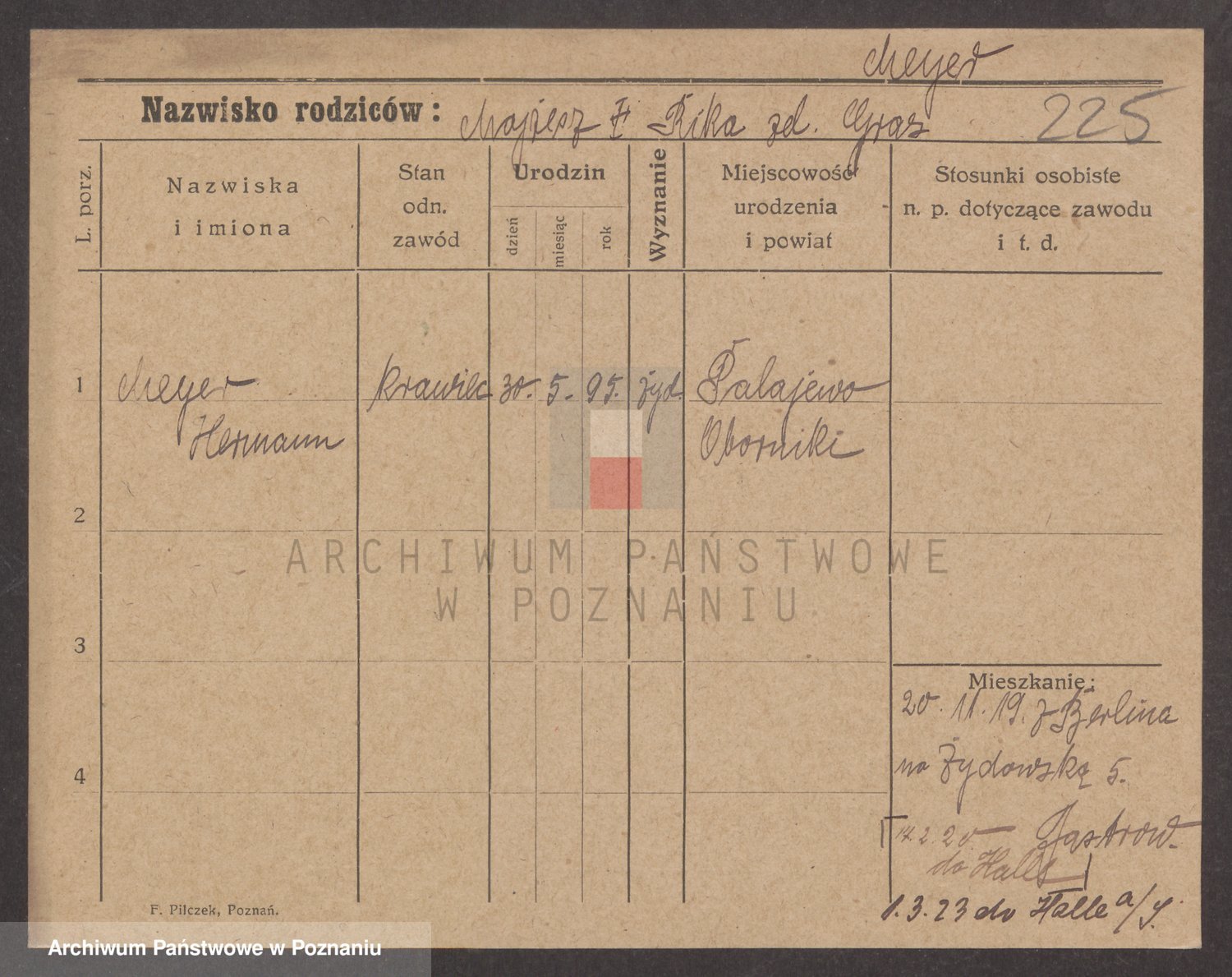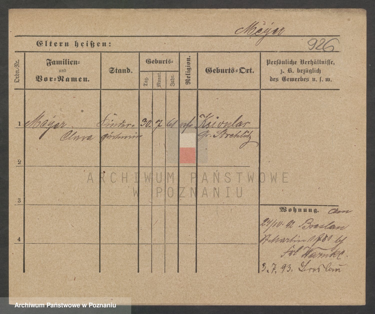 Podgląd karty osobowej dostępny jest po kliknięciu na nazwisko lub ikonkę karty. Można dokonywać powiększenia (ikony na górze) lub przechodzić między kolejnymi skanami (strzałki po bokach).