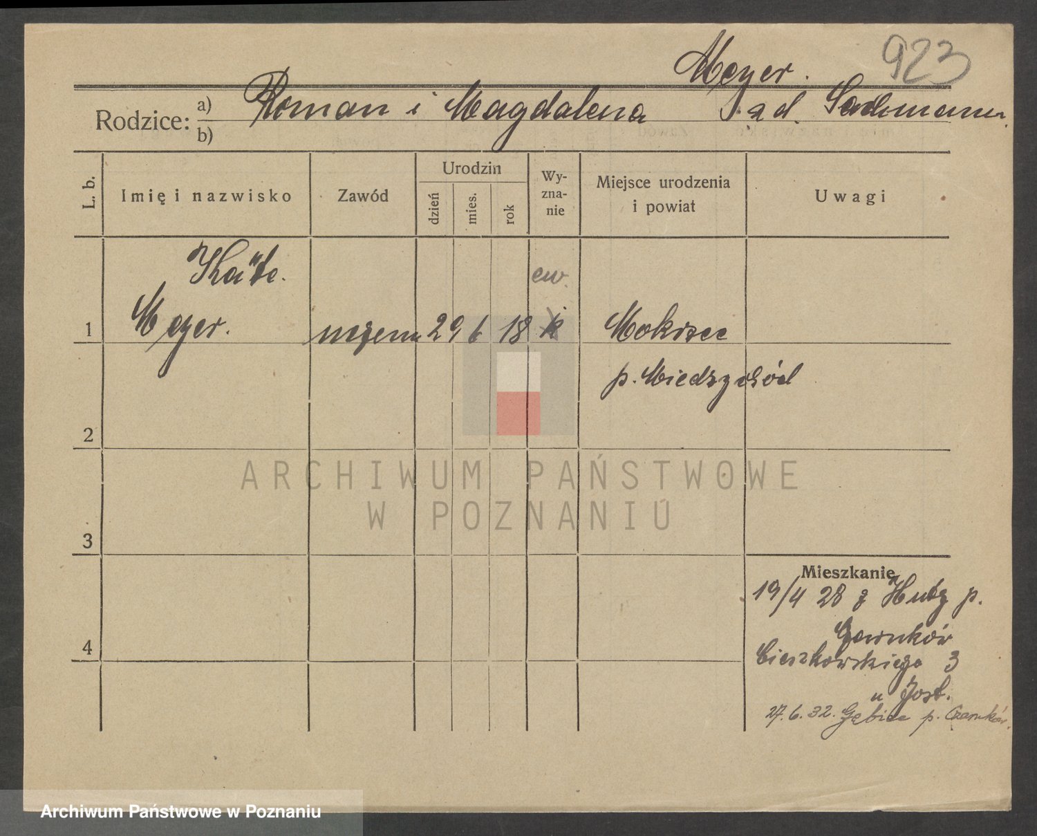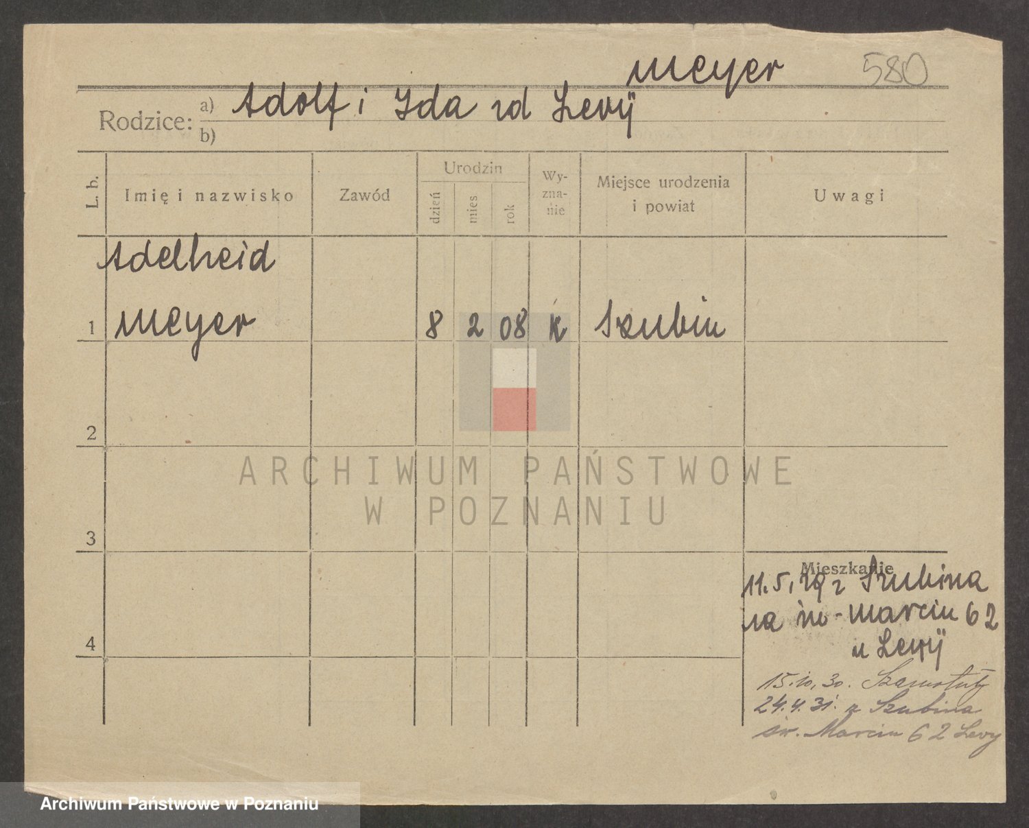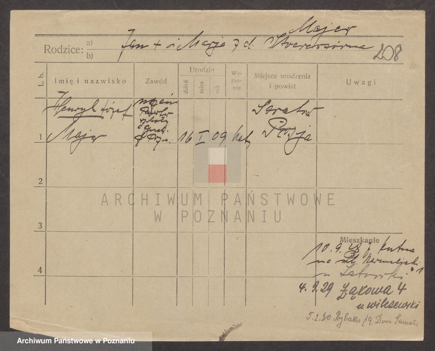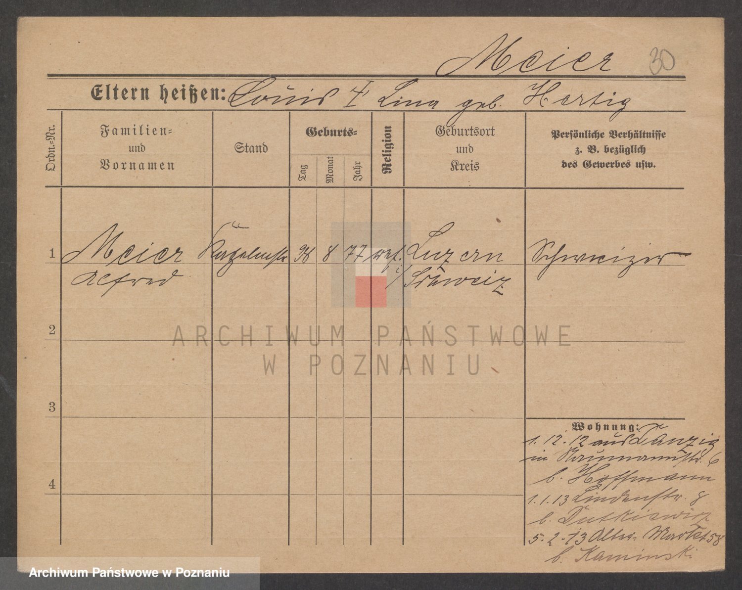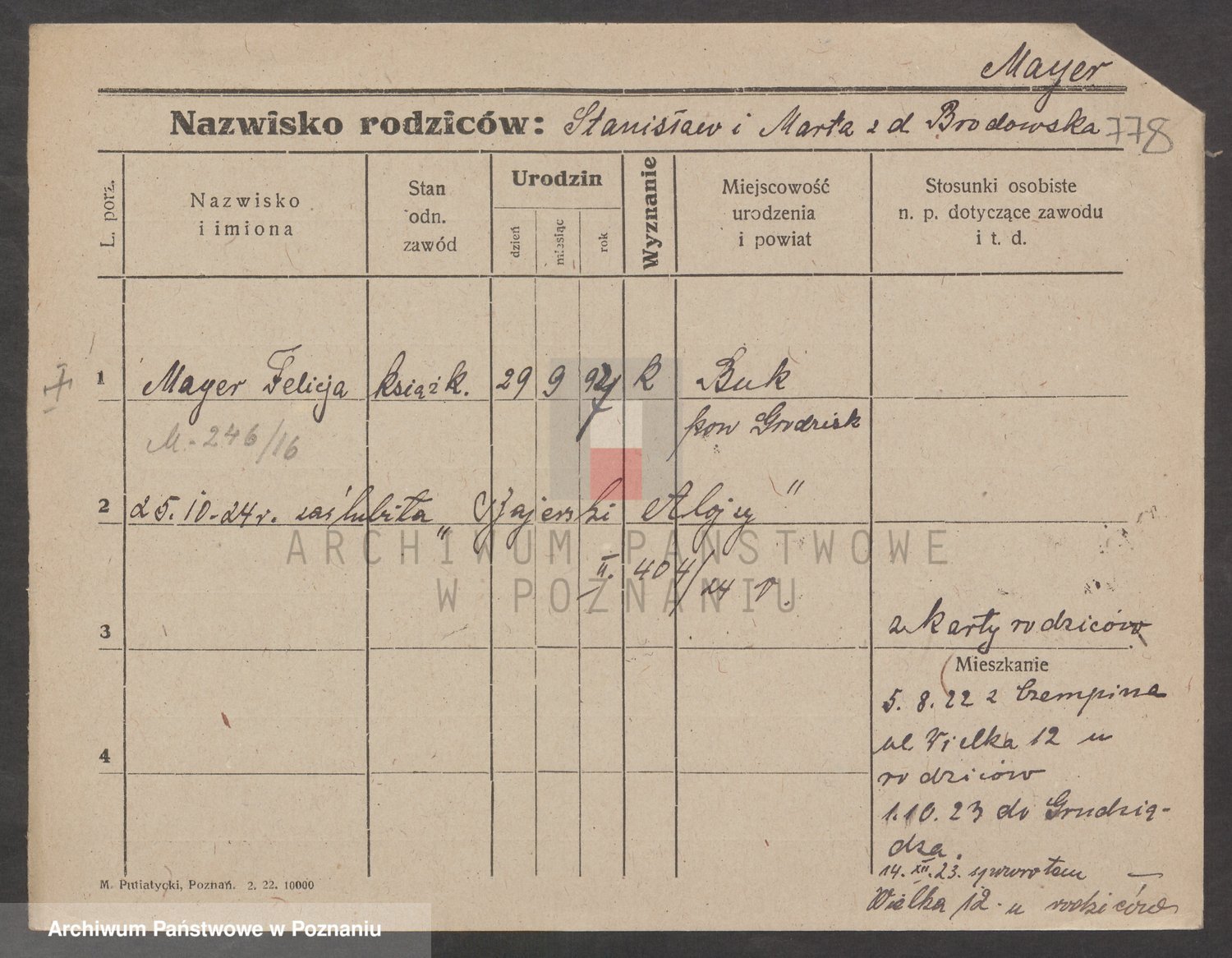 Podgląd karty osobowej dostępny jest po kliknięciu na nazwisko lub ikonkę karty. Można dokonywać powiększenia (ikony na górze) lub przechodzić między kolejnymi skanami (strzałki po bokach).