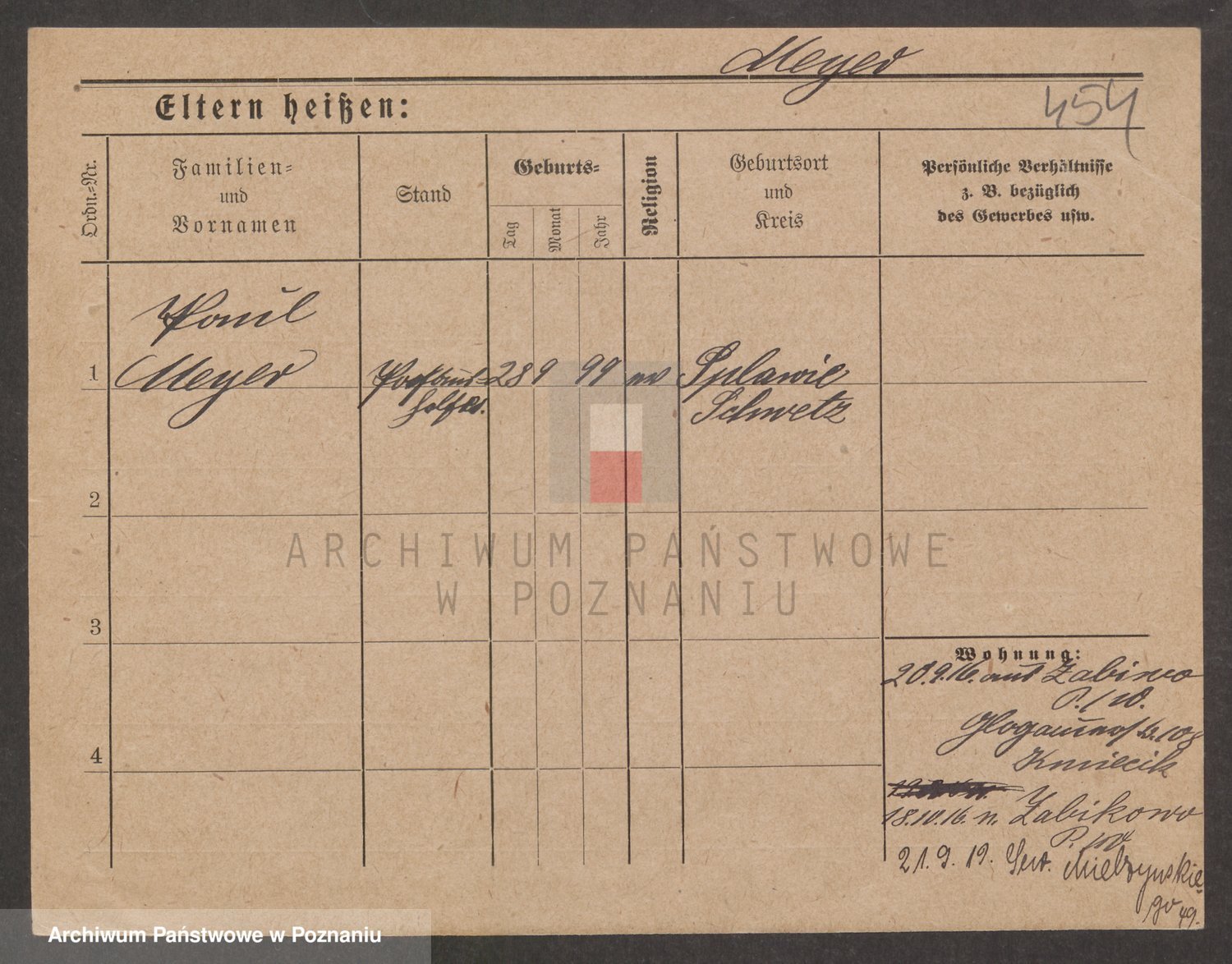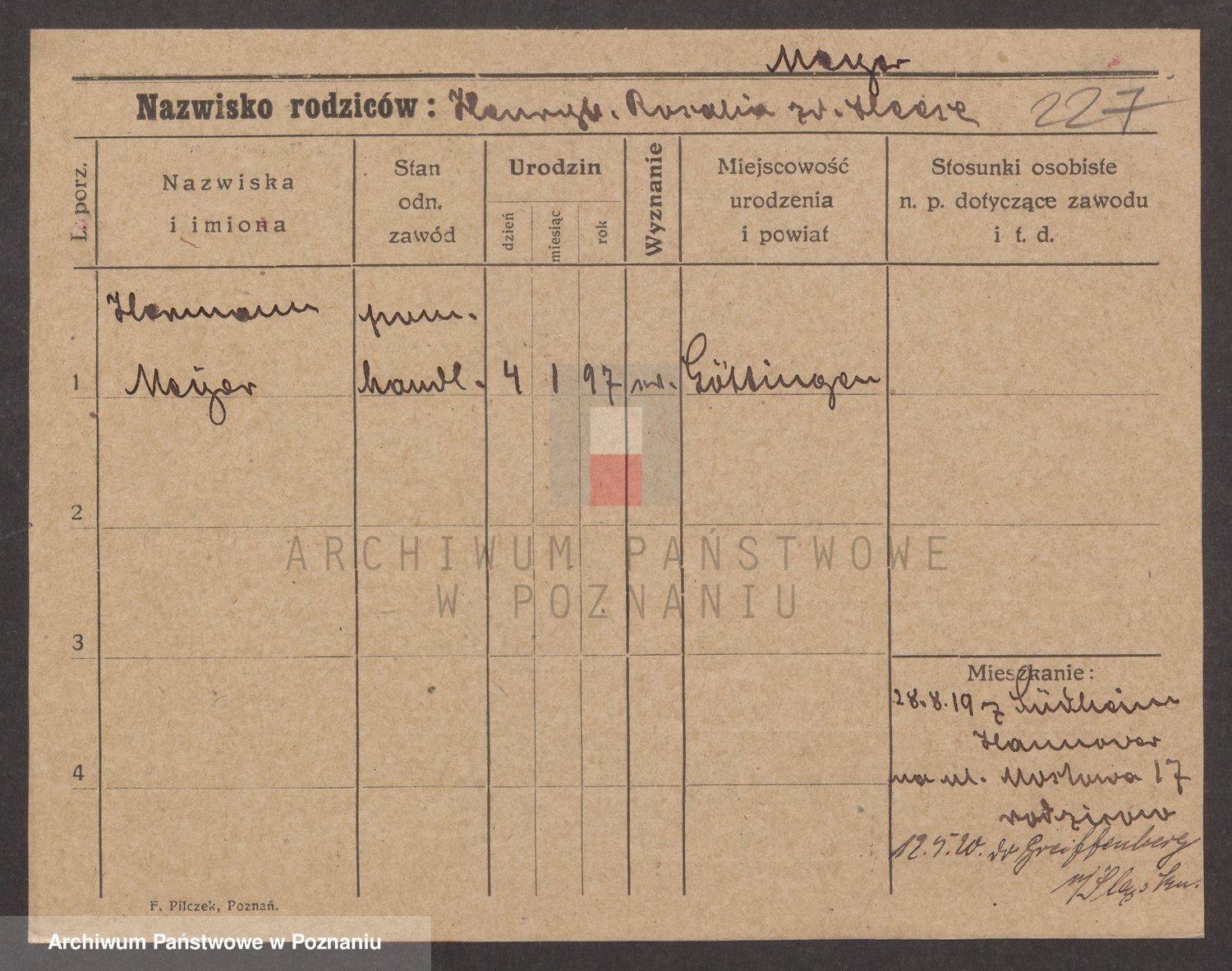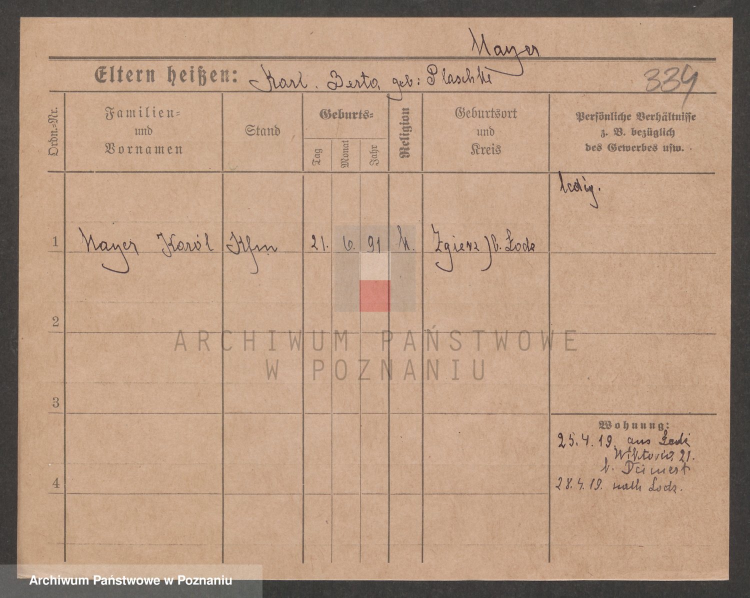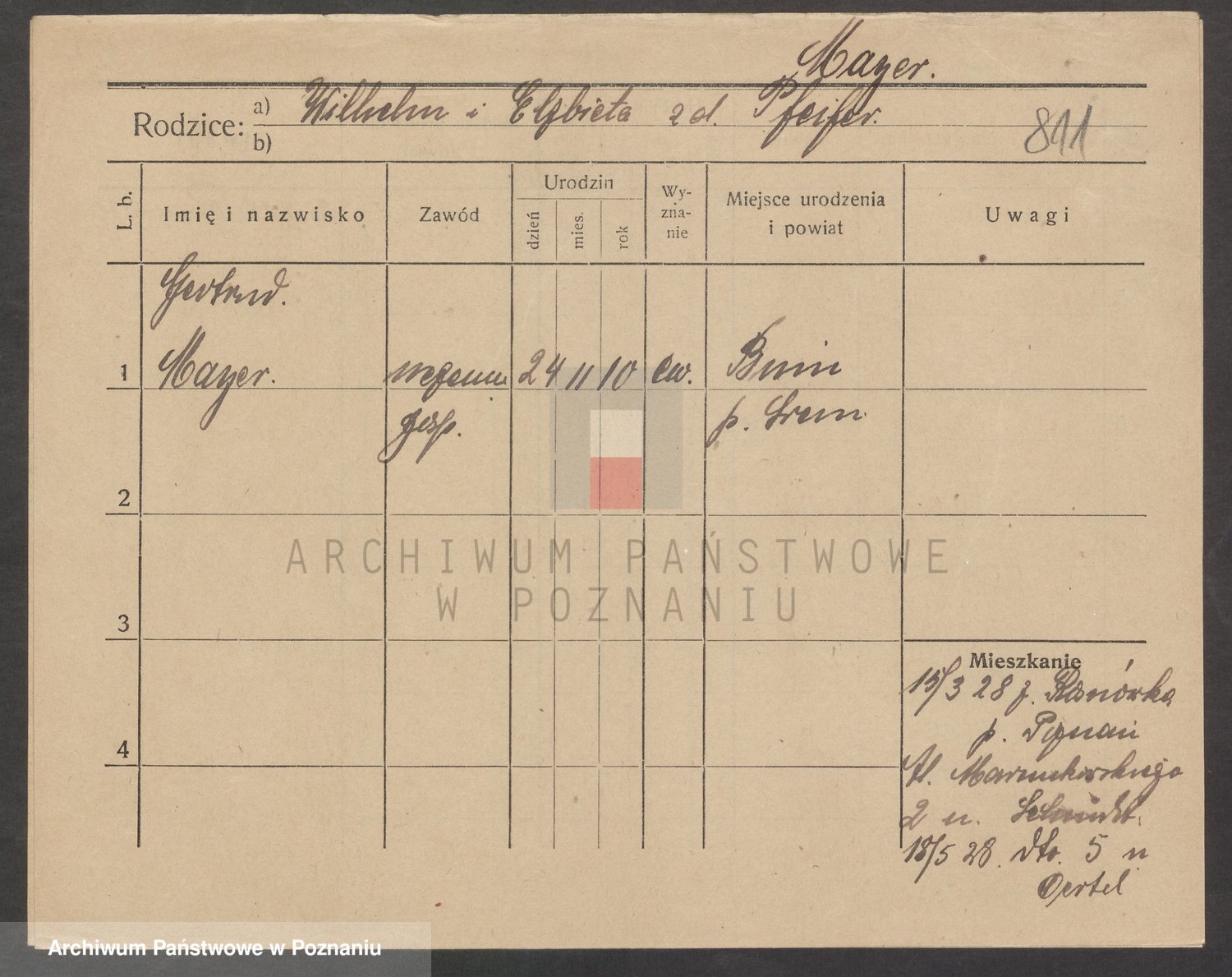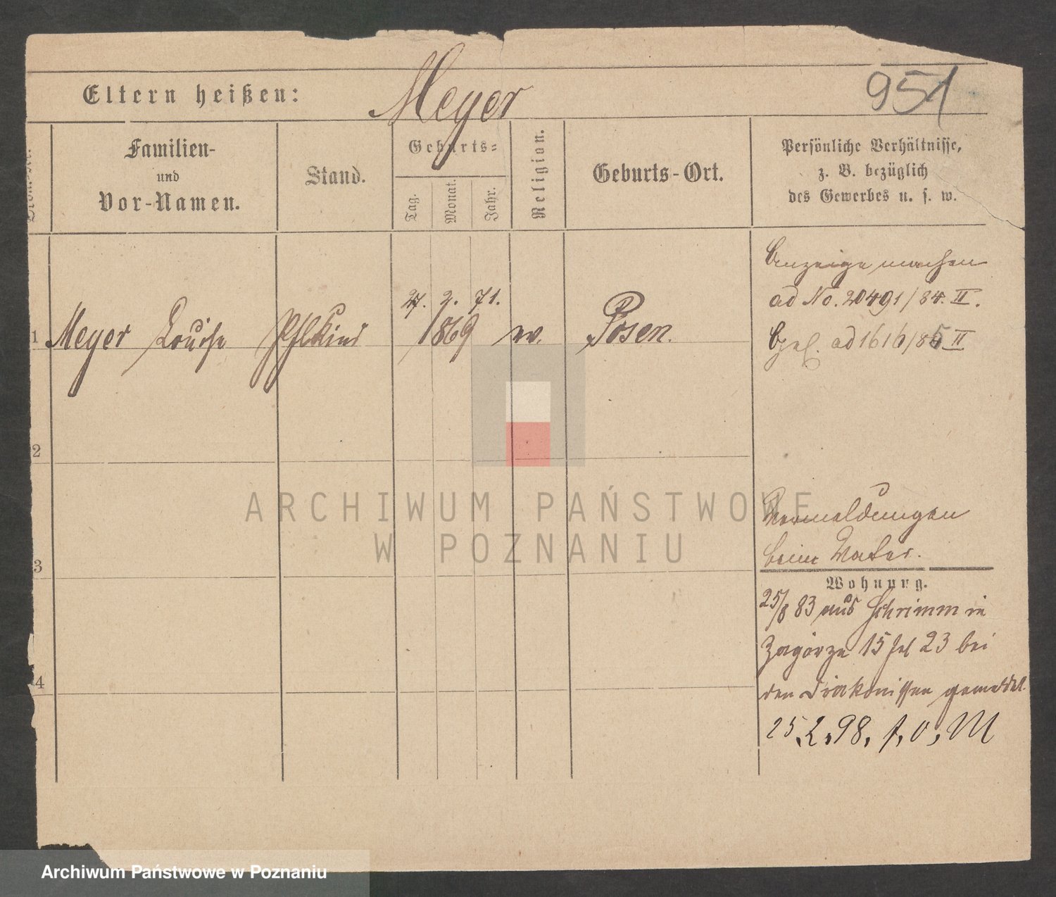 Podgląd karty osobowej dostępny jest po kliknięciu na nazwisko lub ikonkę karty. Można dokonywać powiększenia (ikony na górze) lub przechodzić między kolejnymi skanami (strzałki po bokach).
