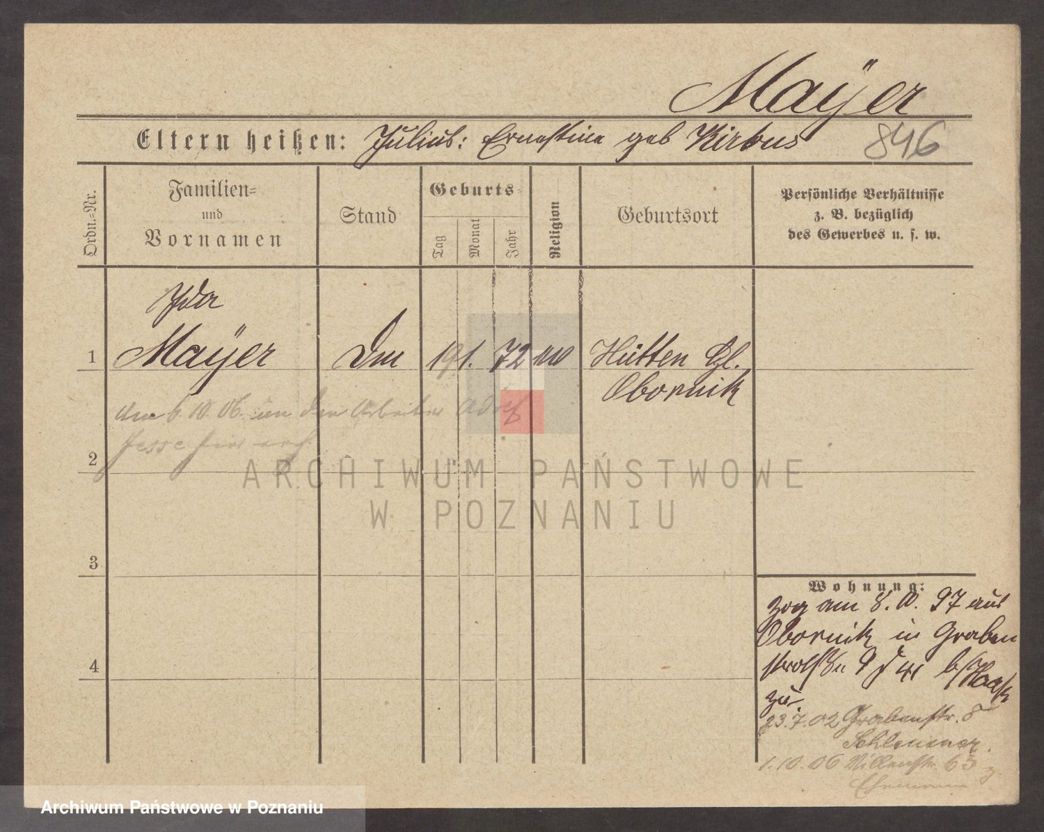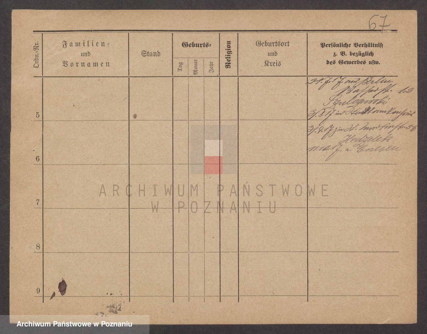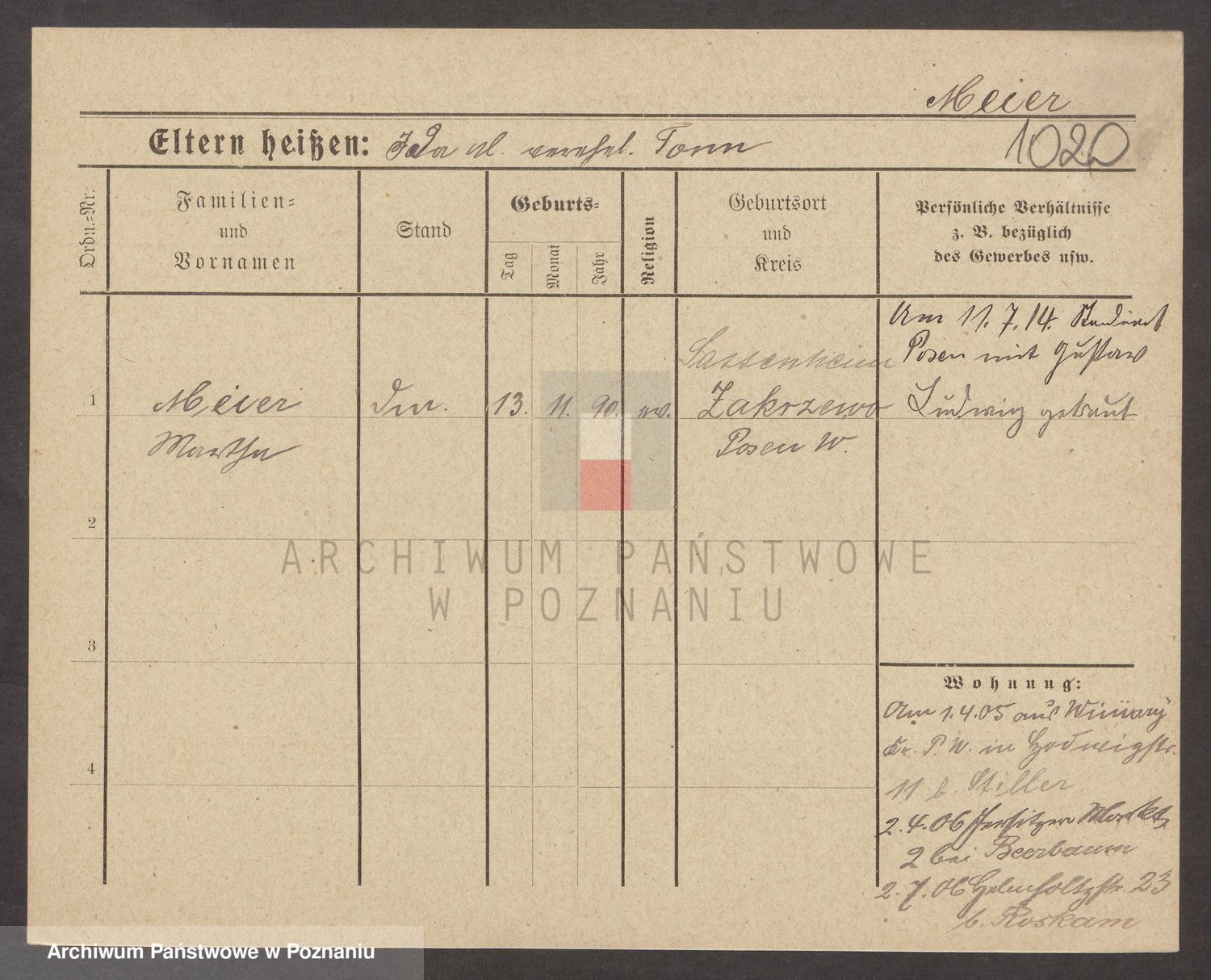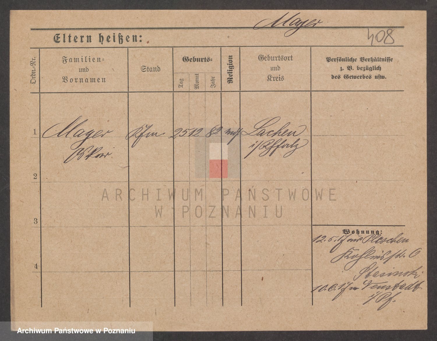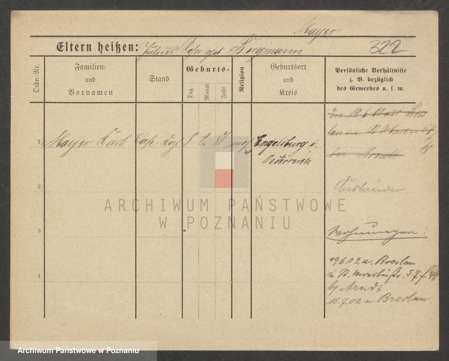 Podgląd karty osobowej dostępny jest po kliknięciu na nazwisko lub ikonkę karty. Można dokonywać powiększenia (ikony na górze) lub przechodzić między kolejnymi skanami (strzałki po bokach).