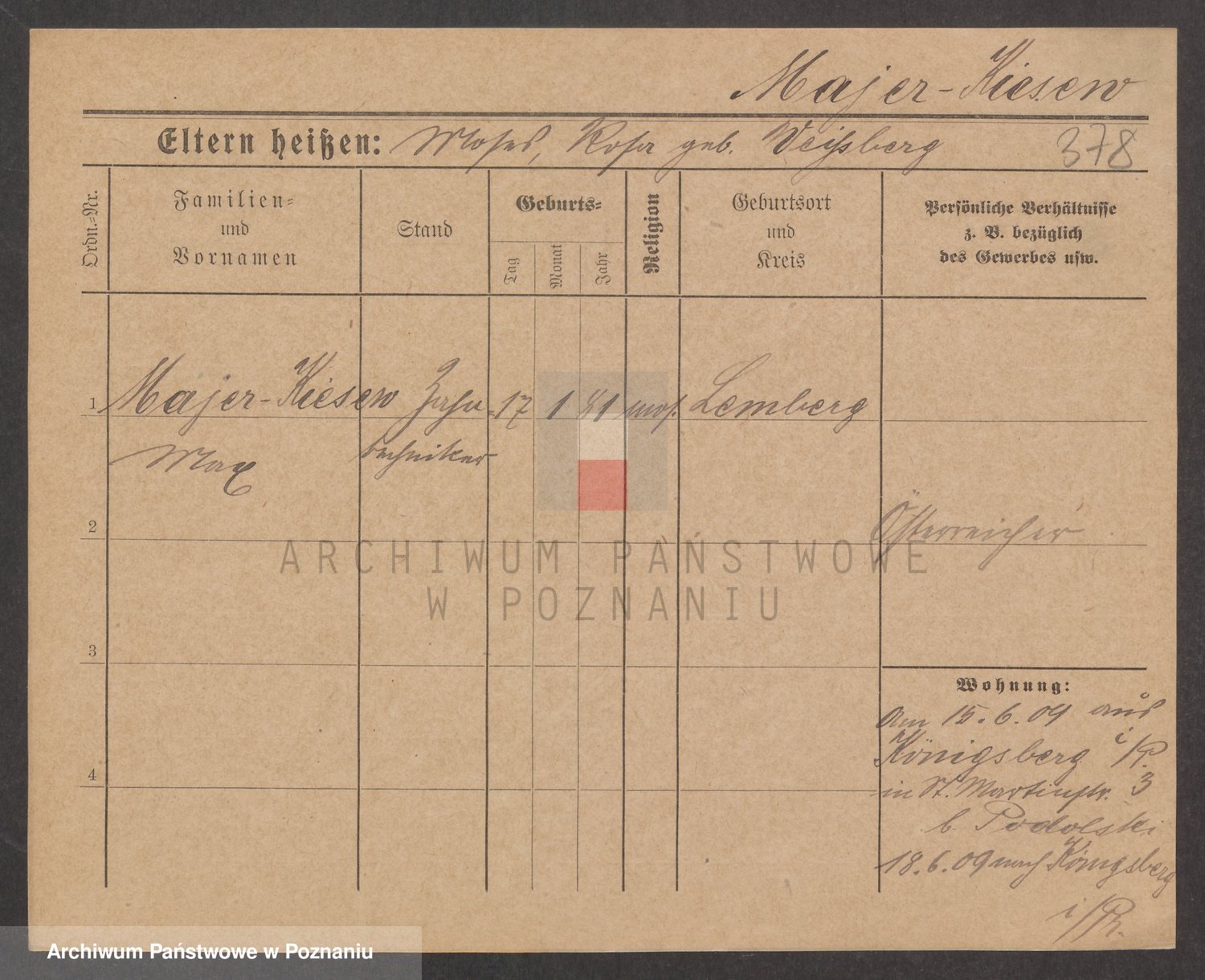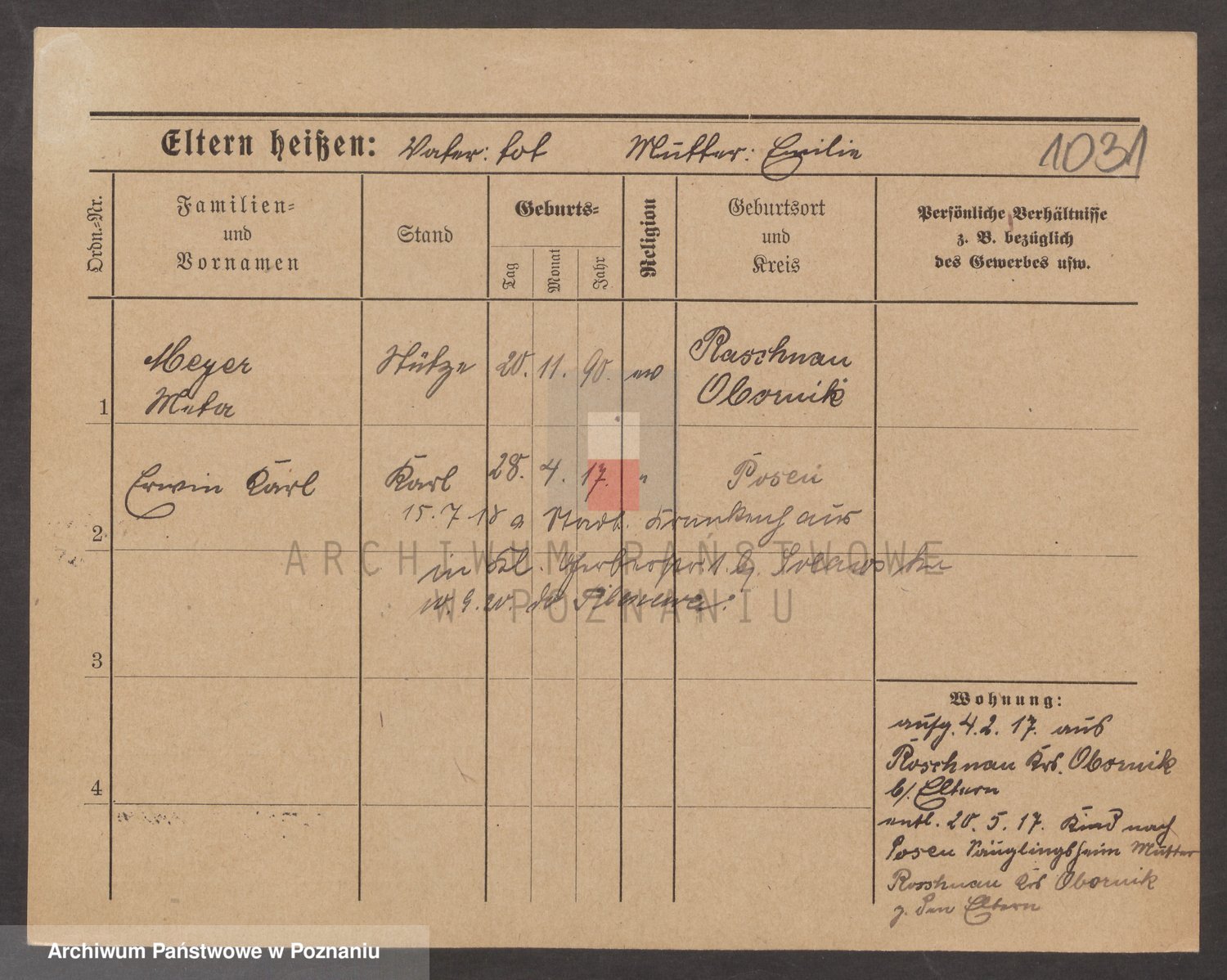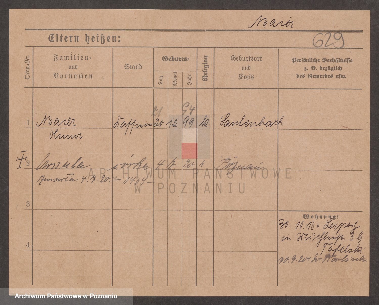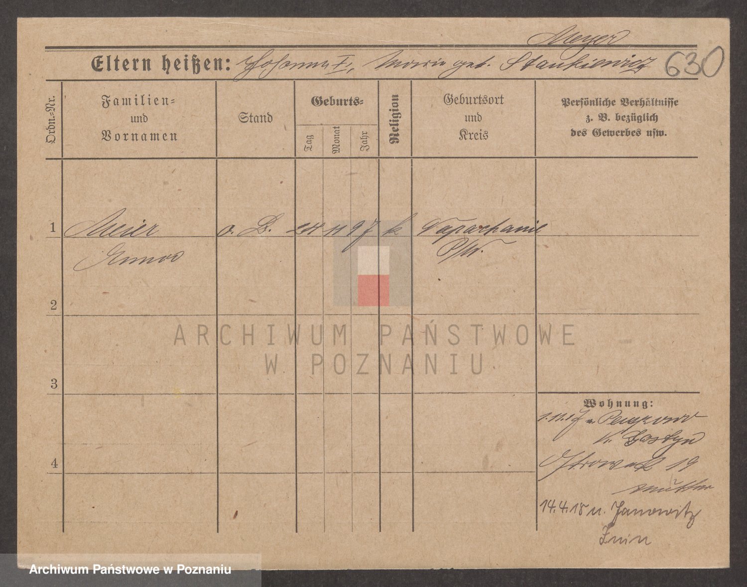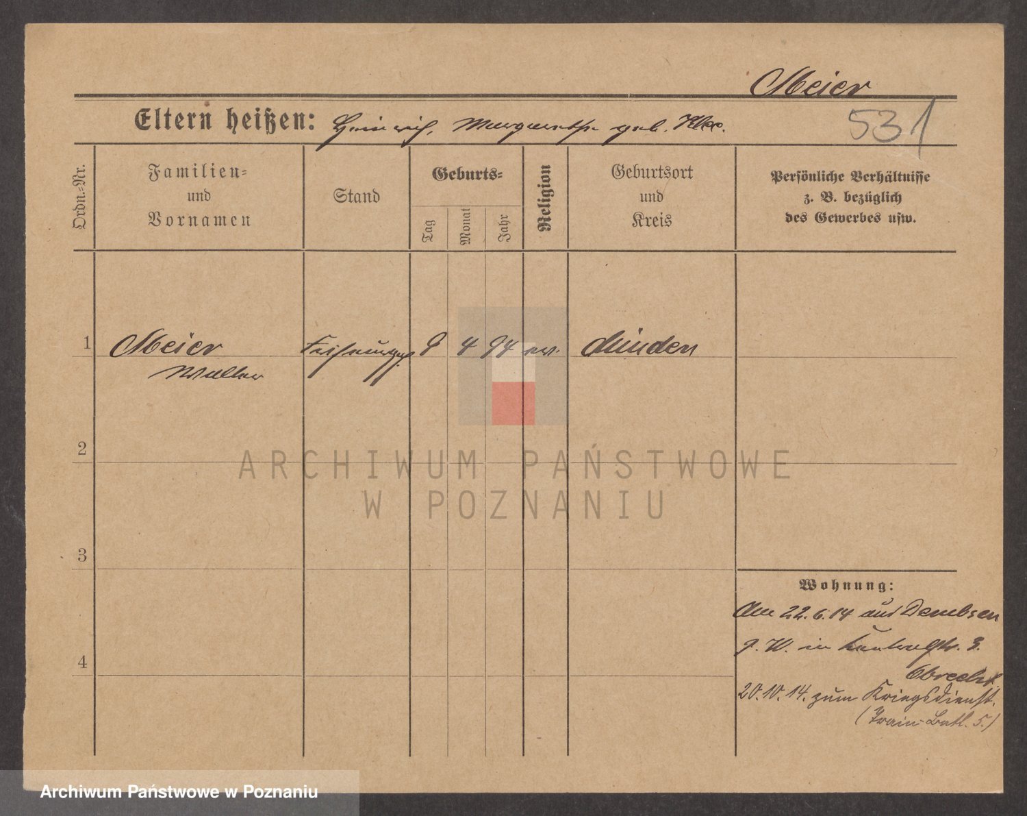 Podgląd karty osobowej dostępny jest po kliknięciu na nazwisko lub ikonkę karty. Można dokonywać powiększenia (ikony na górze) lub przechodzić między kolejnymi skanami (strzałki po bokach).
