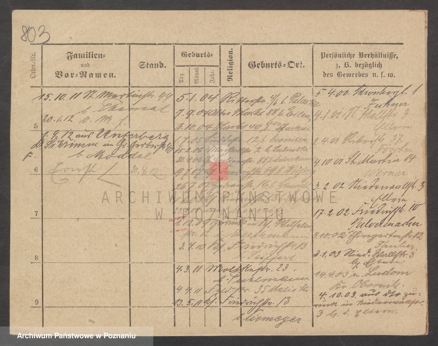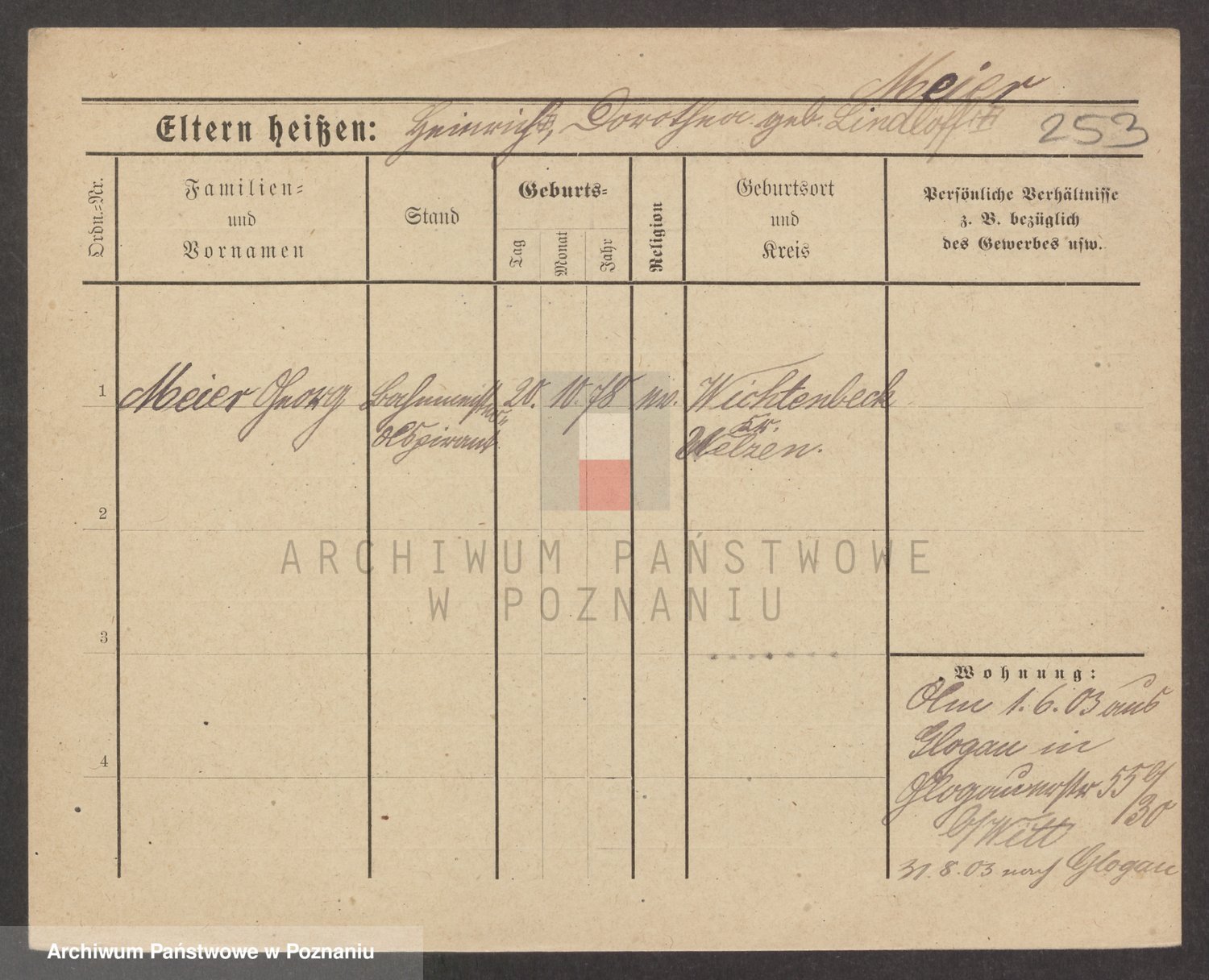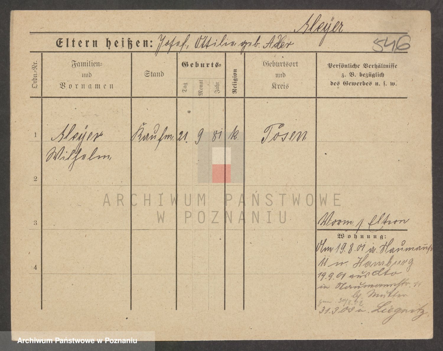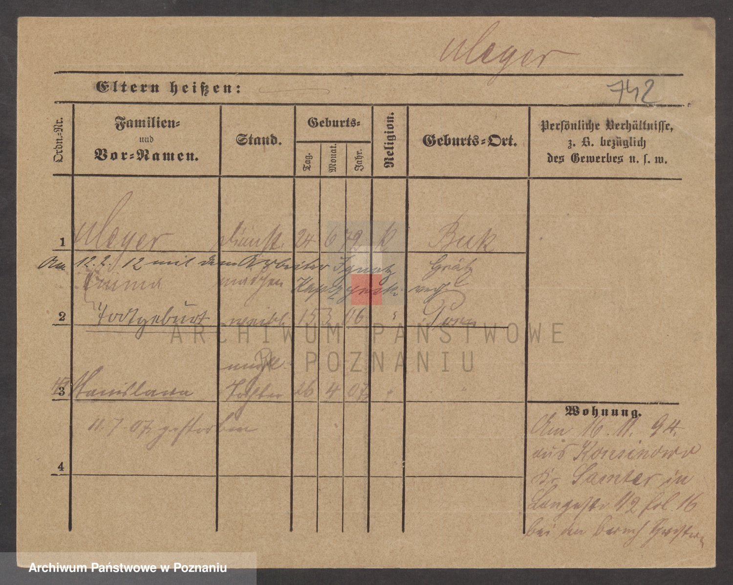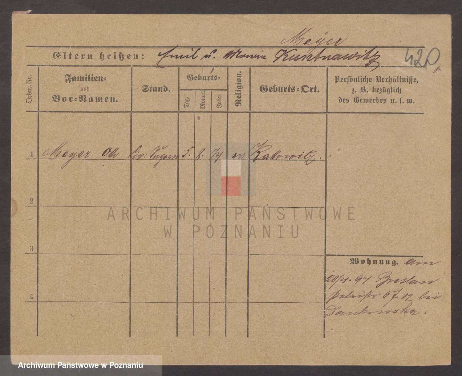 Podgląd karty osobowej dostępny jest po kliknięciu na nazwisko lub ikonkę karty. Można dokonywać powiększenia (ikony na górze) lub przechodzić między kolejnymi skanami (strzałki po bokach).