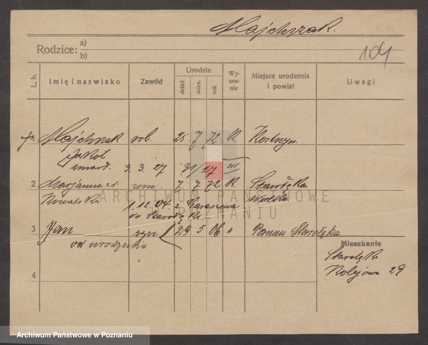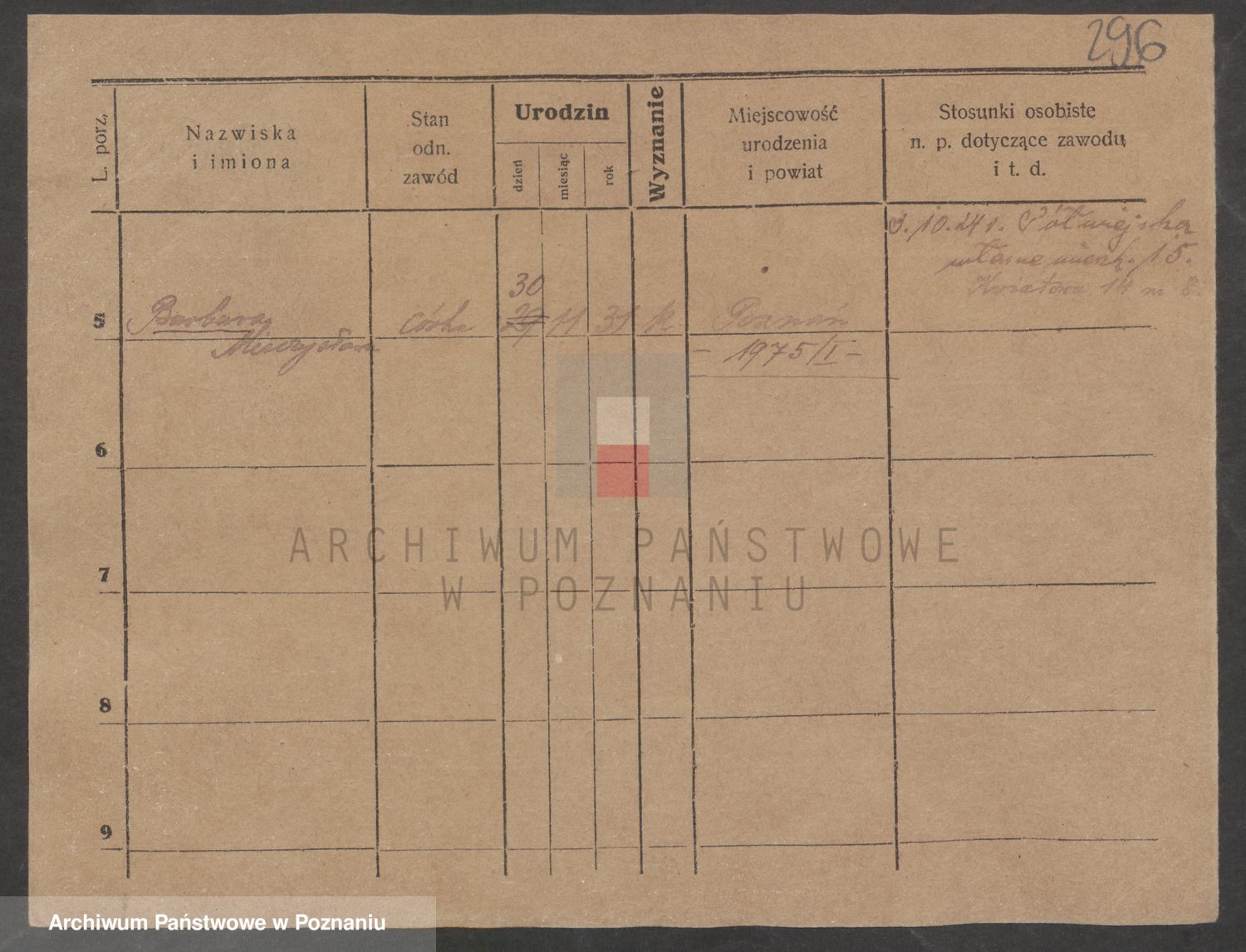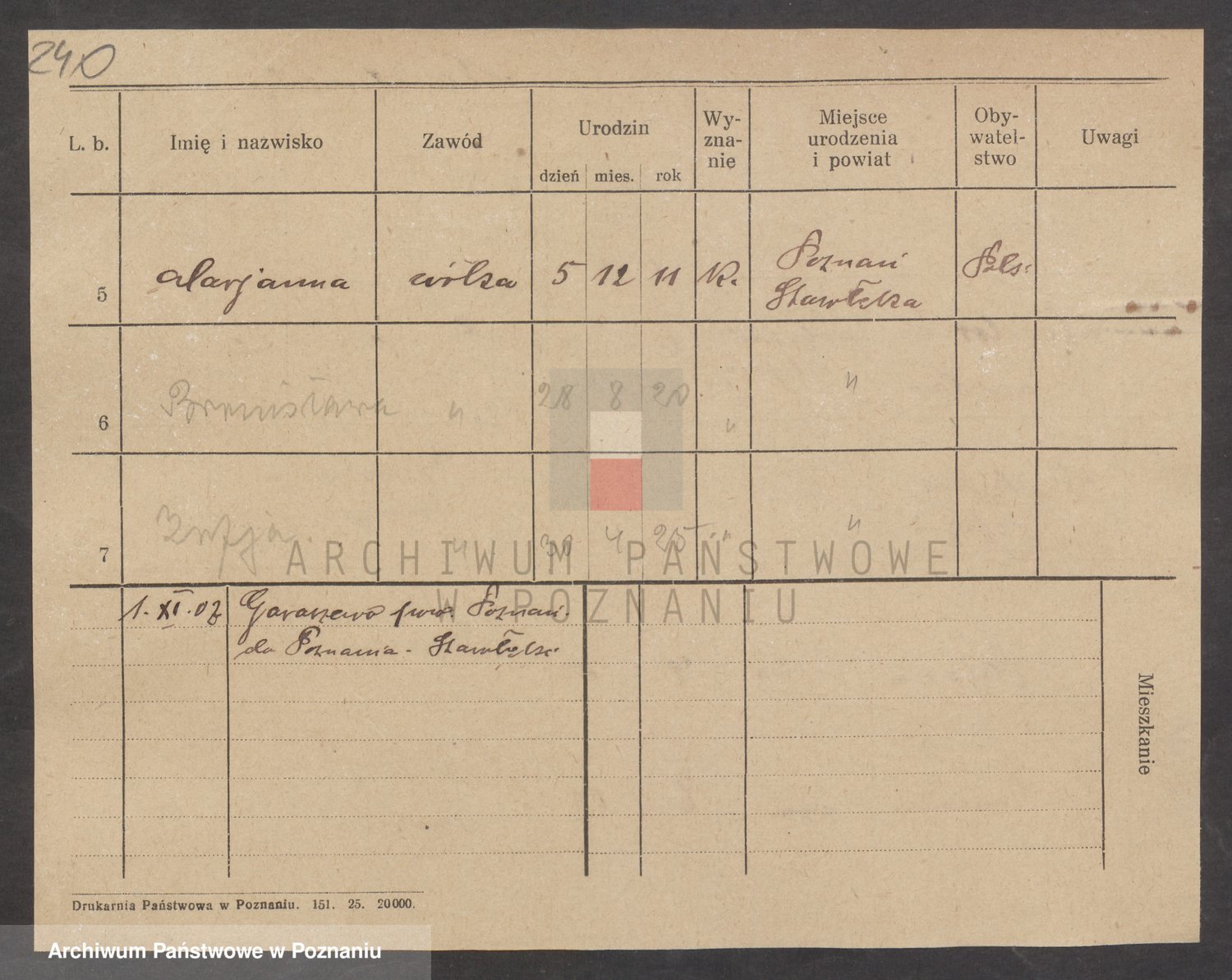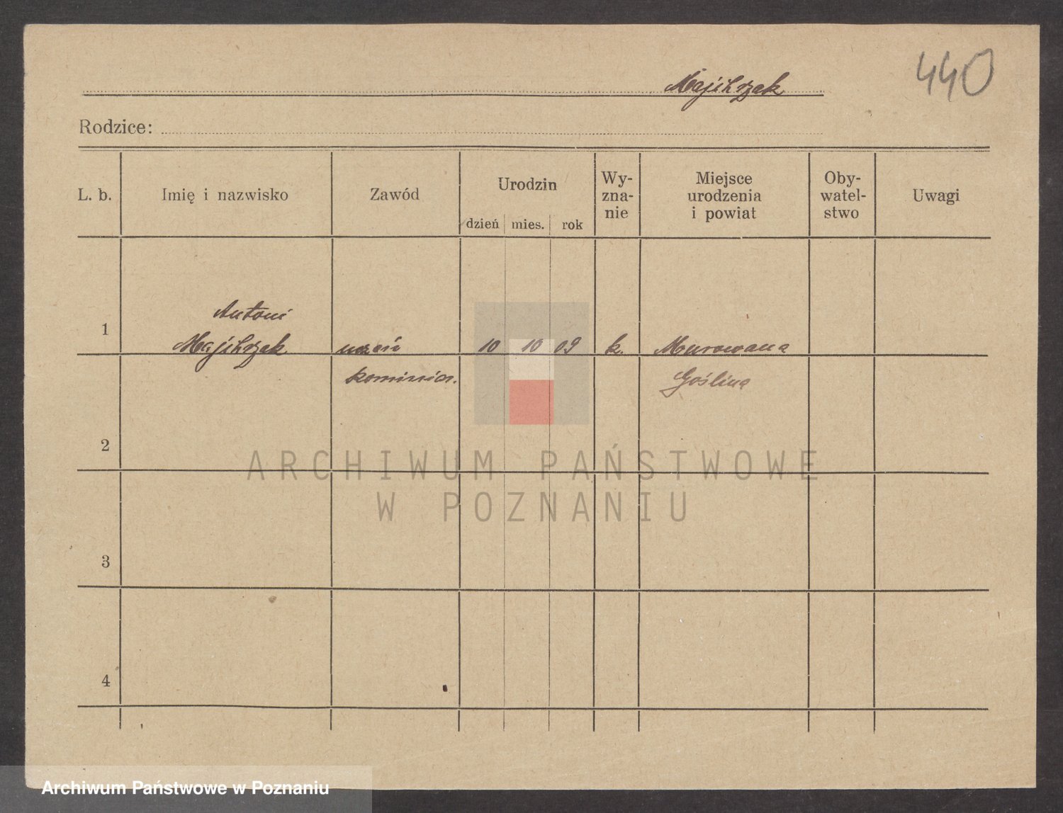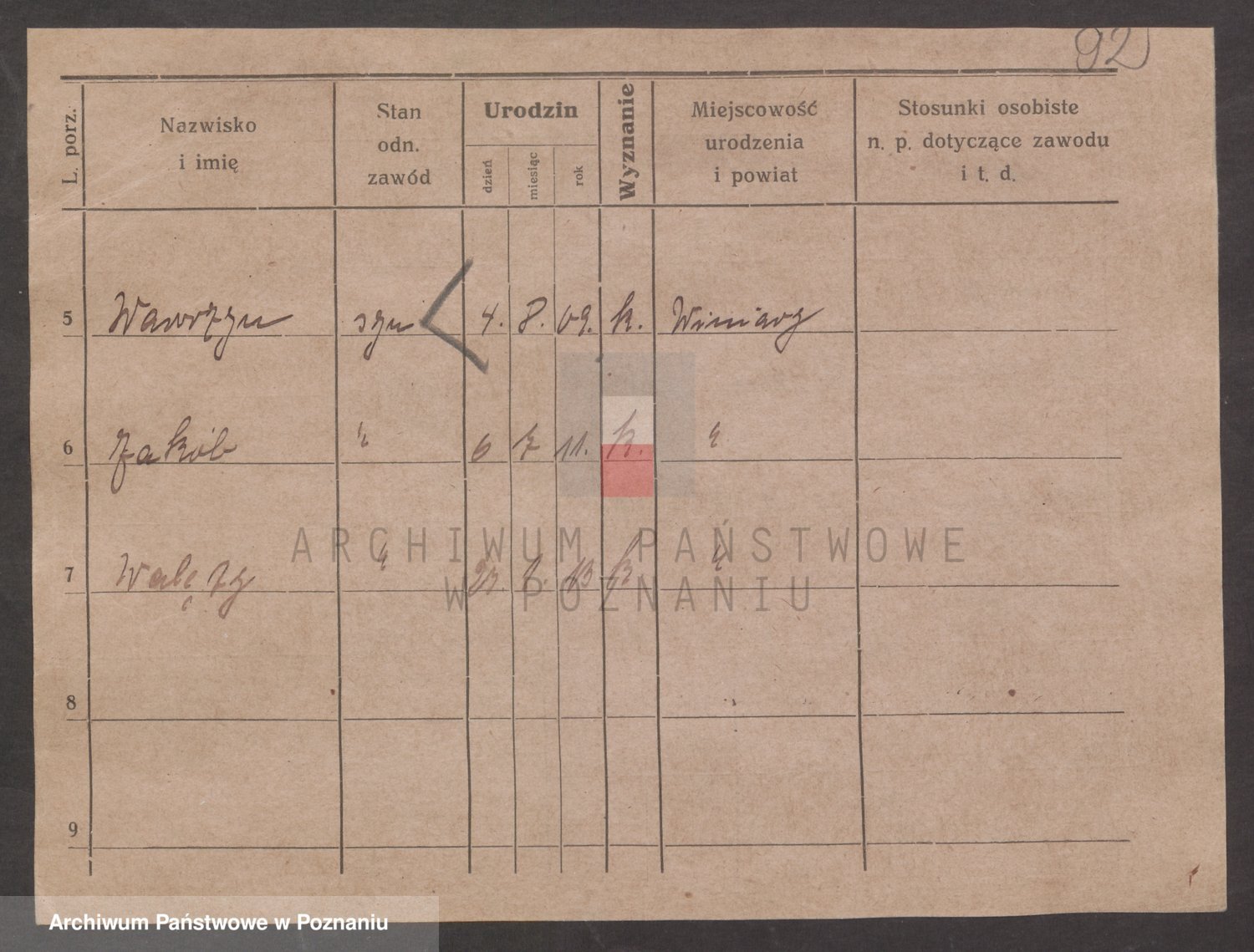Podgląd karty osobowej dostępny jest po kliknięciu na nazwisko lub ikonkę karty. Można dokonywać powiększenia (ikony na górze) lub przechodzić między kolejnymi skanami (strzałki po bokach).
