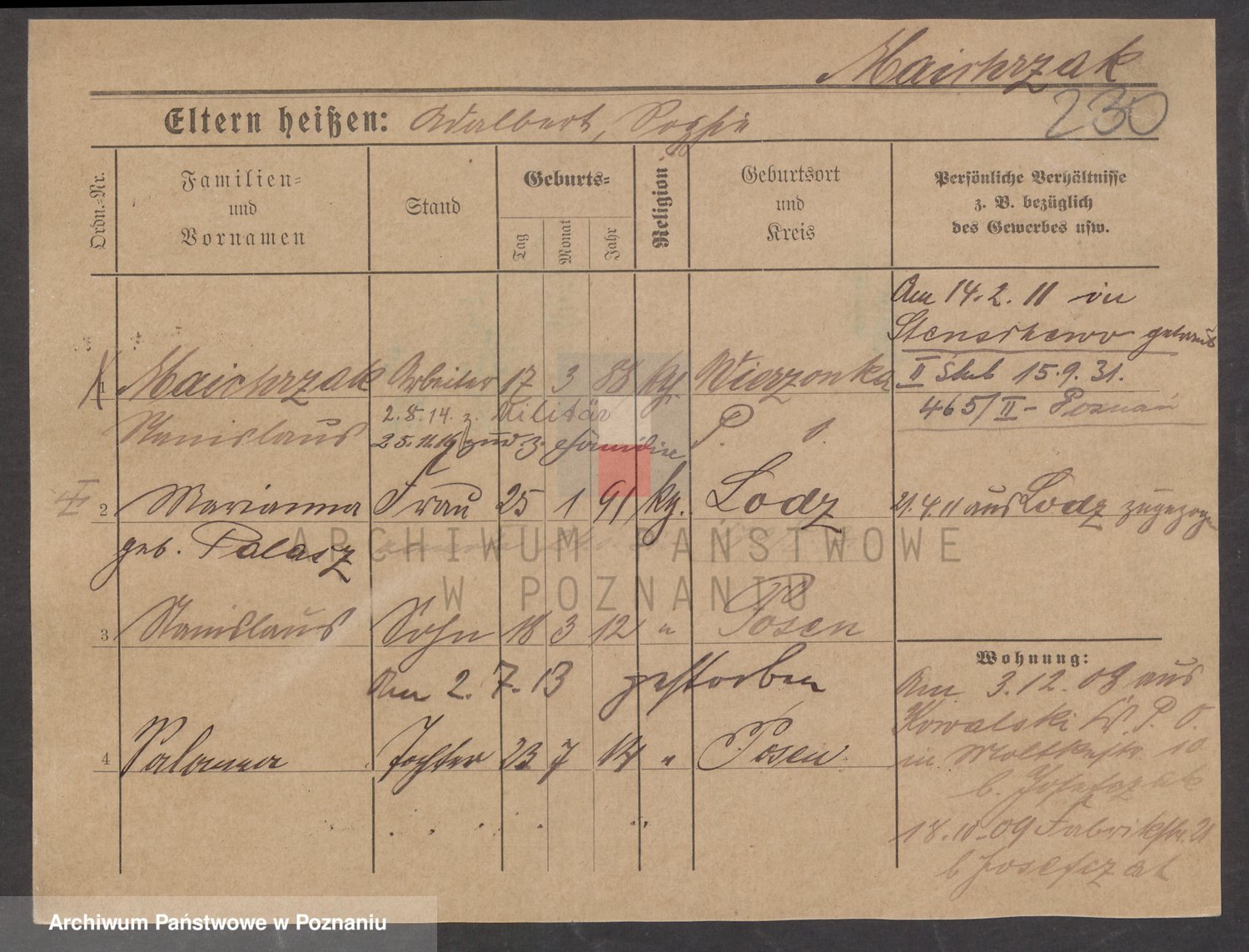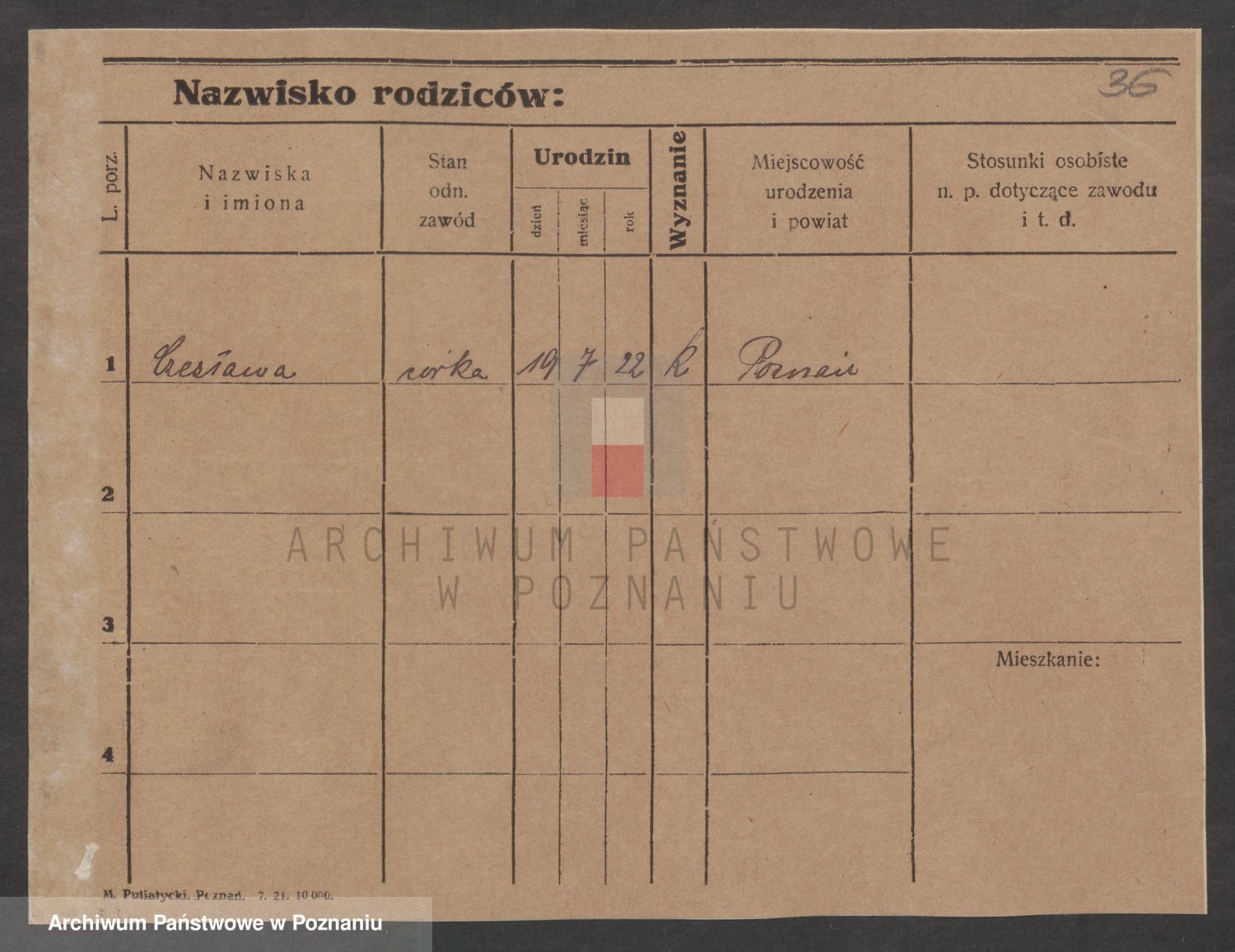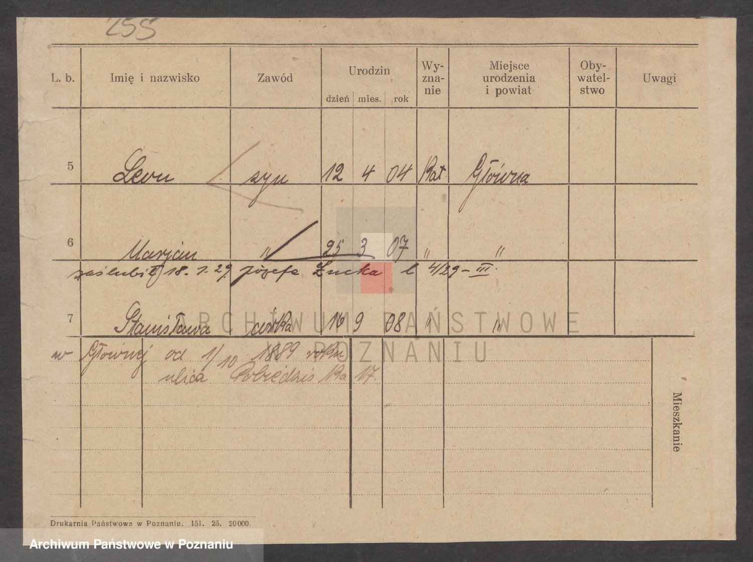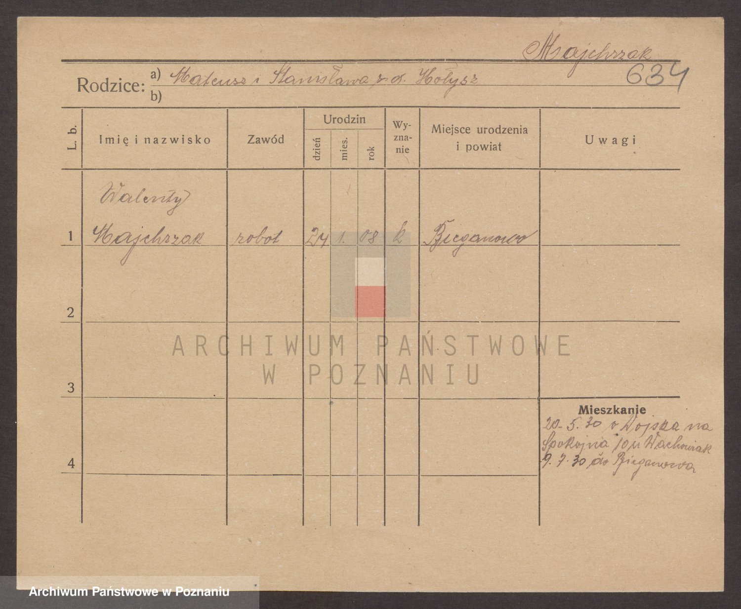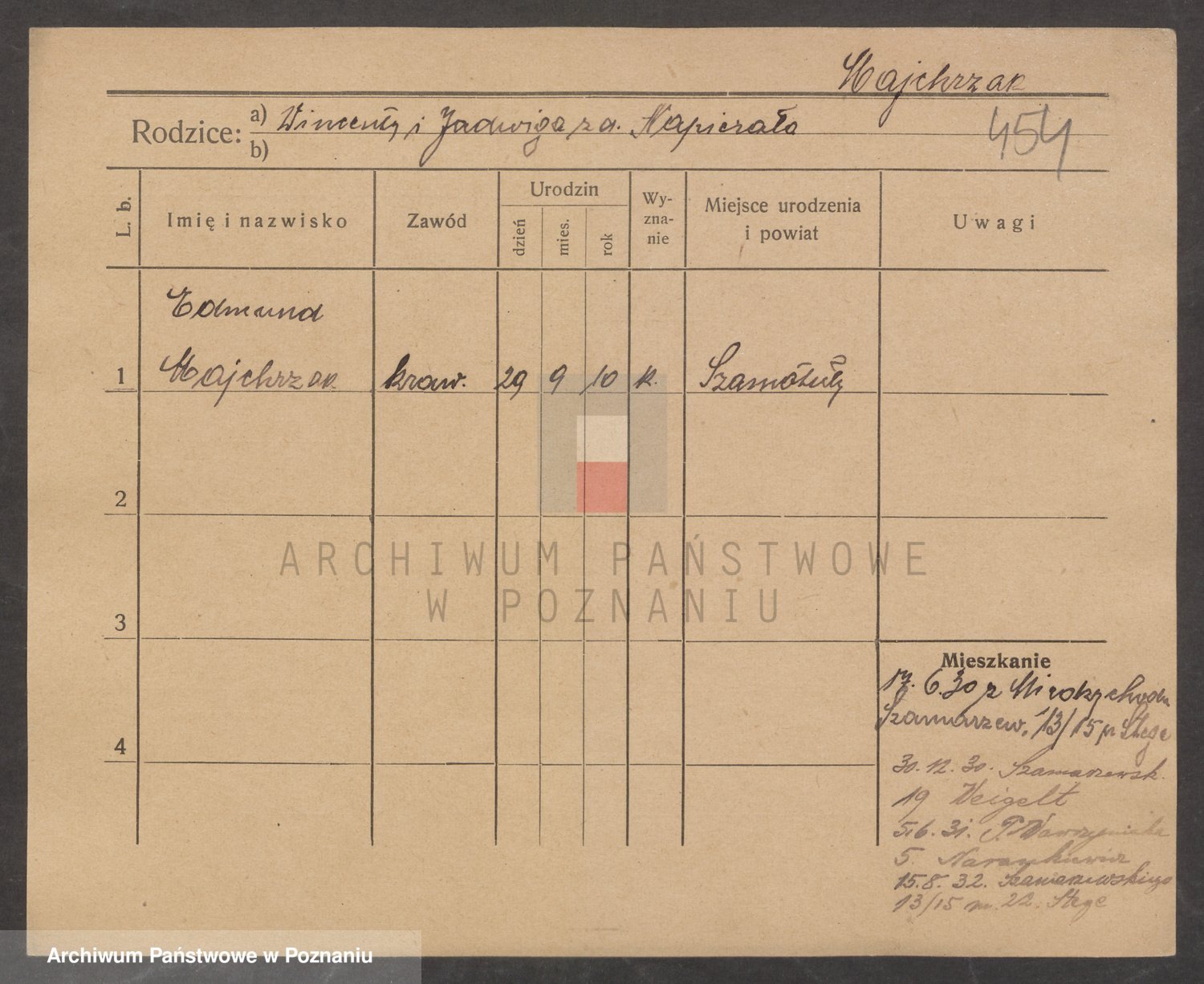 Podgląd karty osobowej dostępny jest po kliknięciu na nazwisko lub ikonkę karty. Można dokonywać powiększenia (ikony na górze) lub przechodzić między kolejnymi skanami (strzałki po bokach).