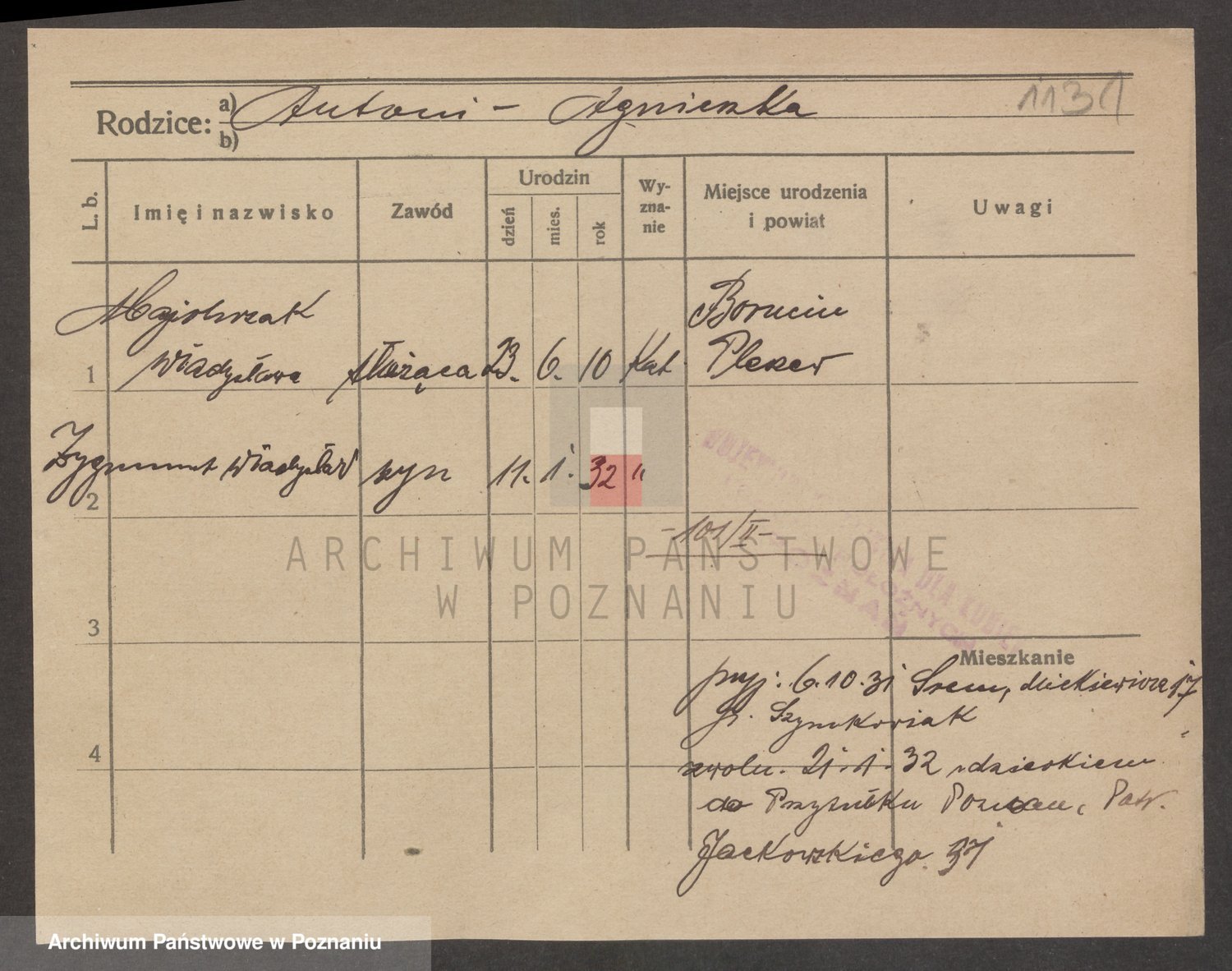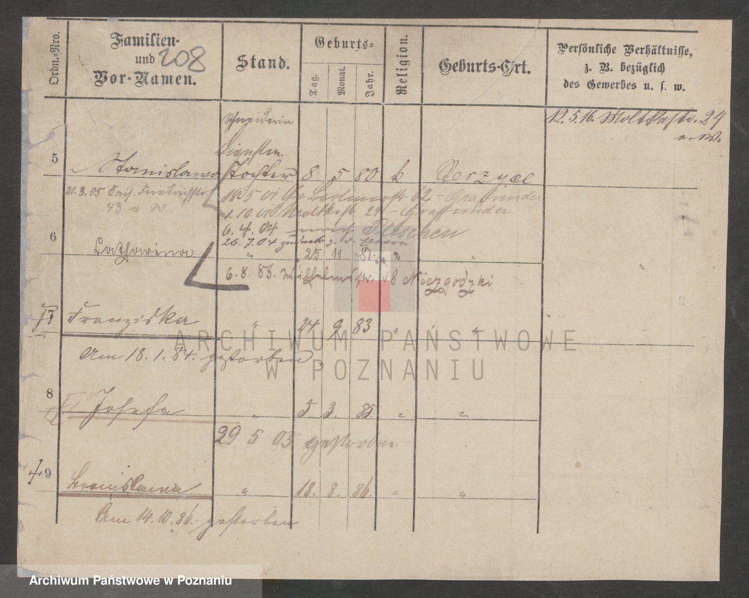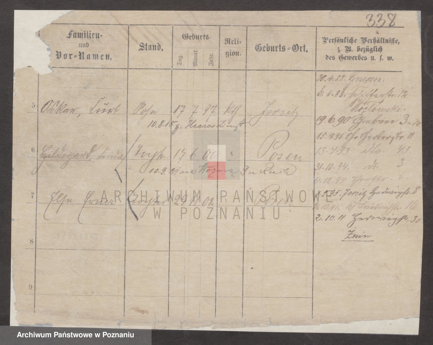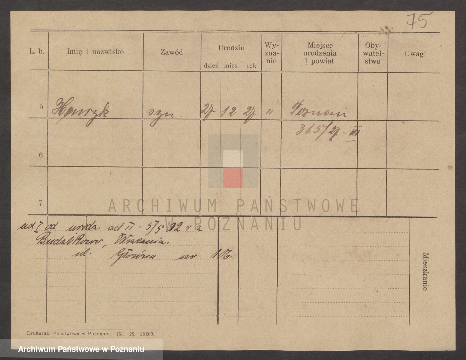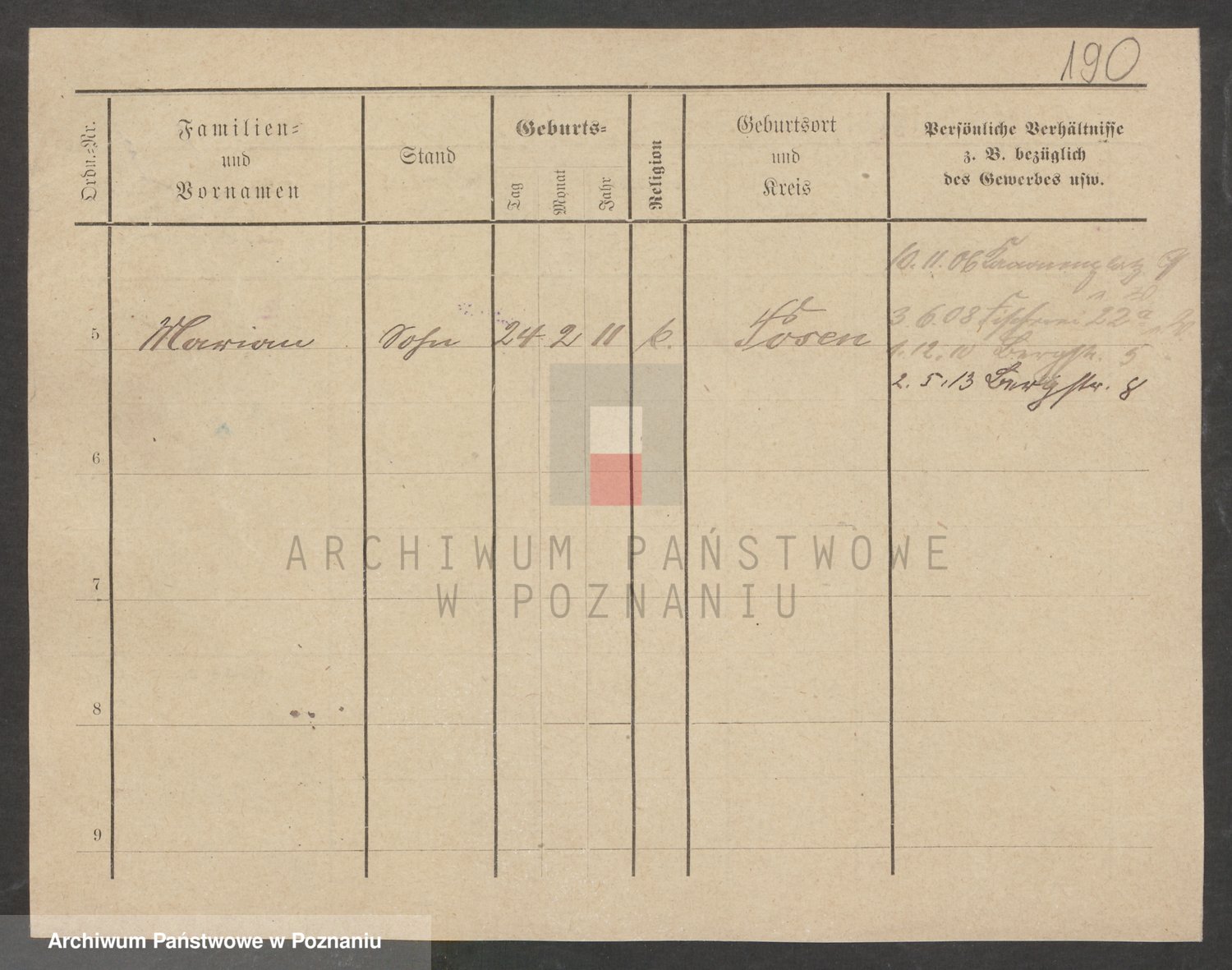 Podgląd karty osobowej dostępny jest po kliknięciu na nazwisko lub ikonkę karty. Można dokonywać powiększenia (ikony na górze) lub przechodzić między kolejnymi skanami (strzałki po bokach).
