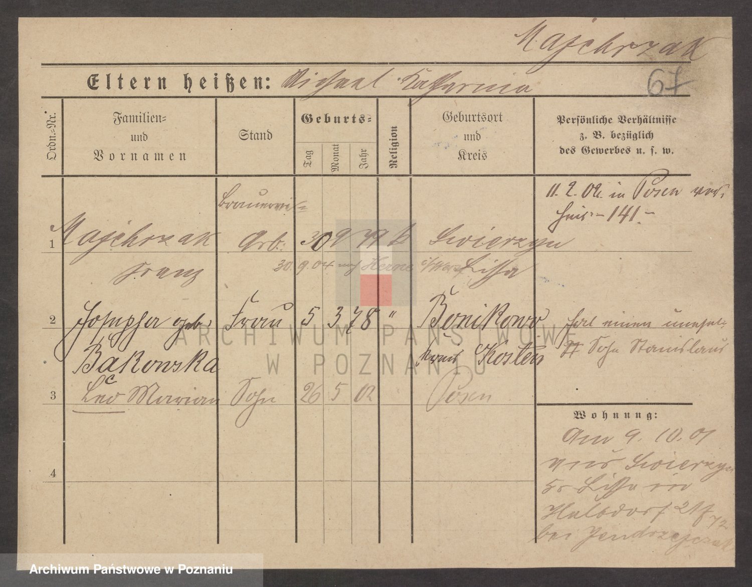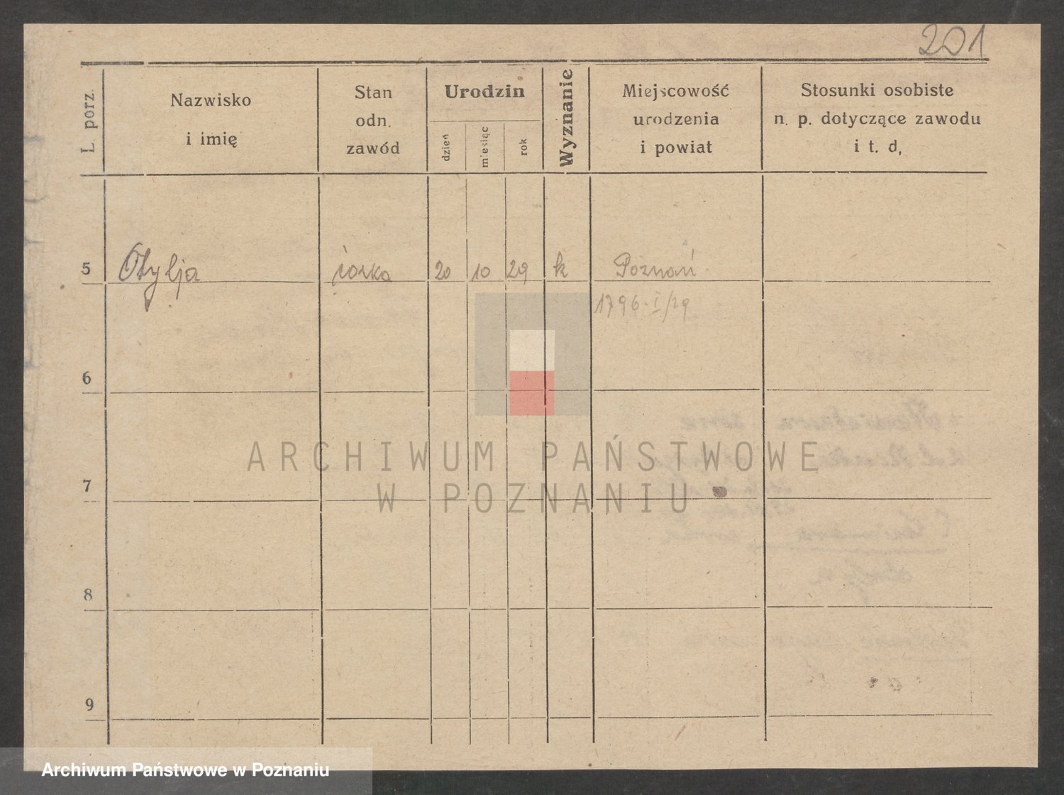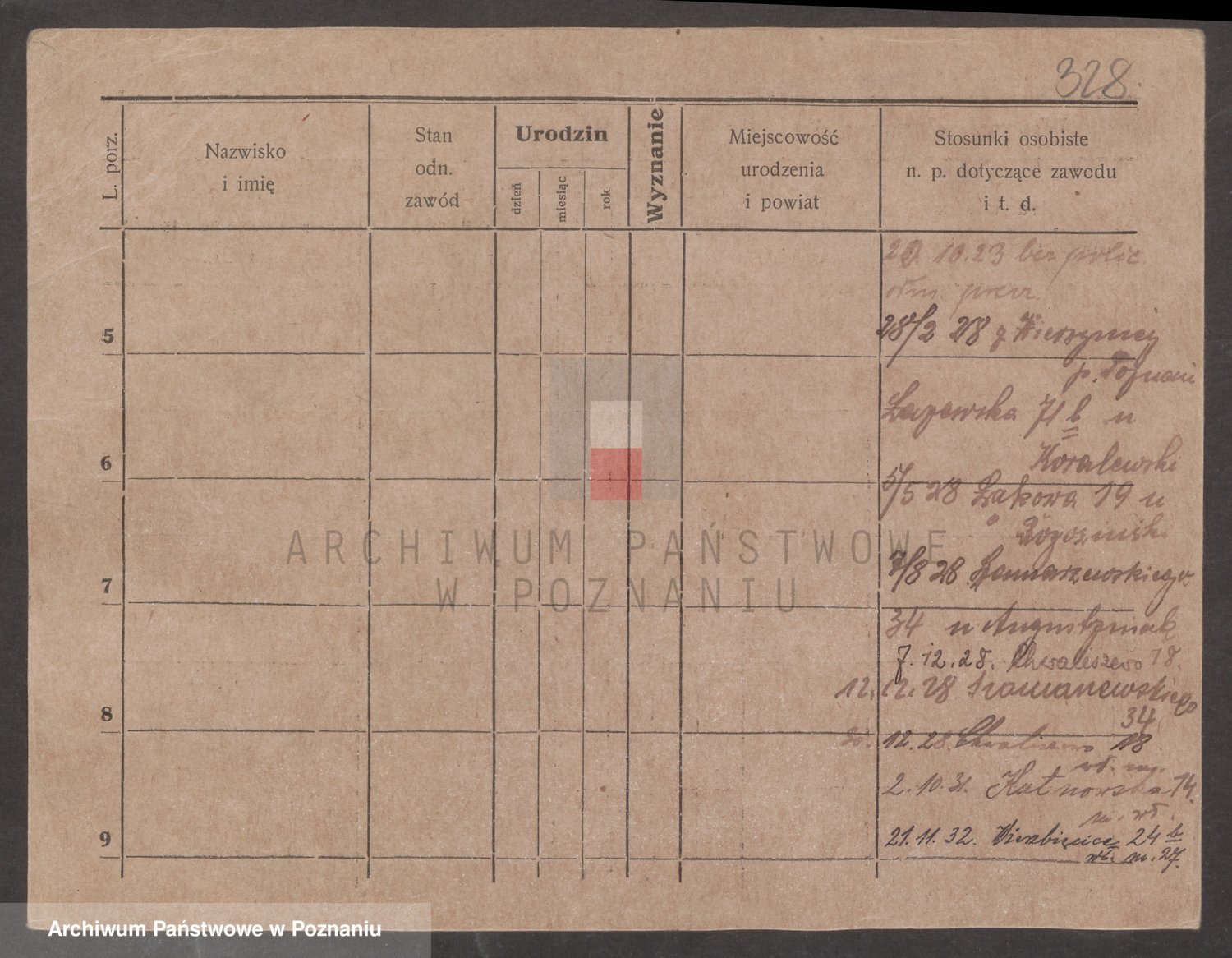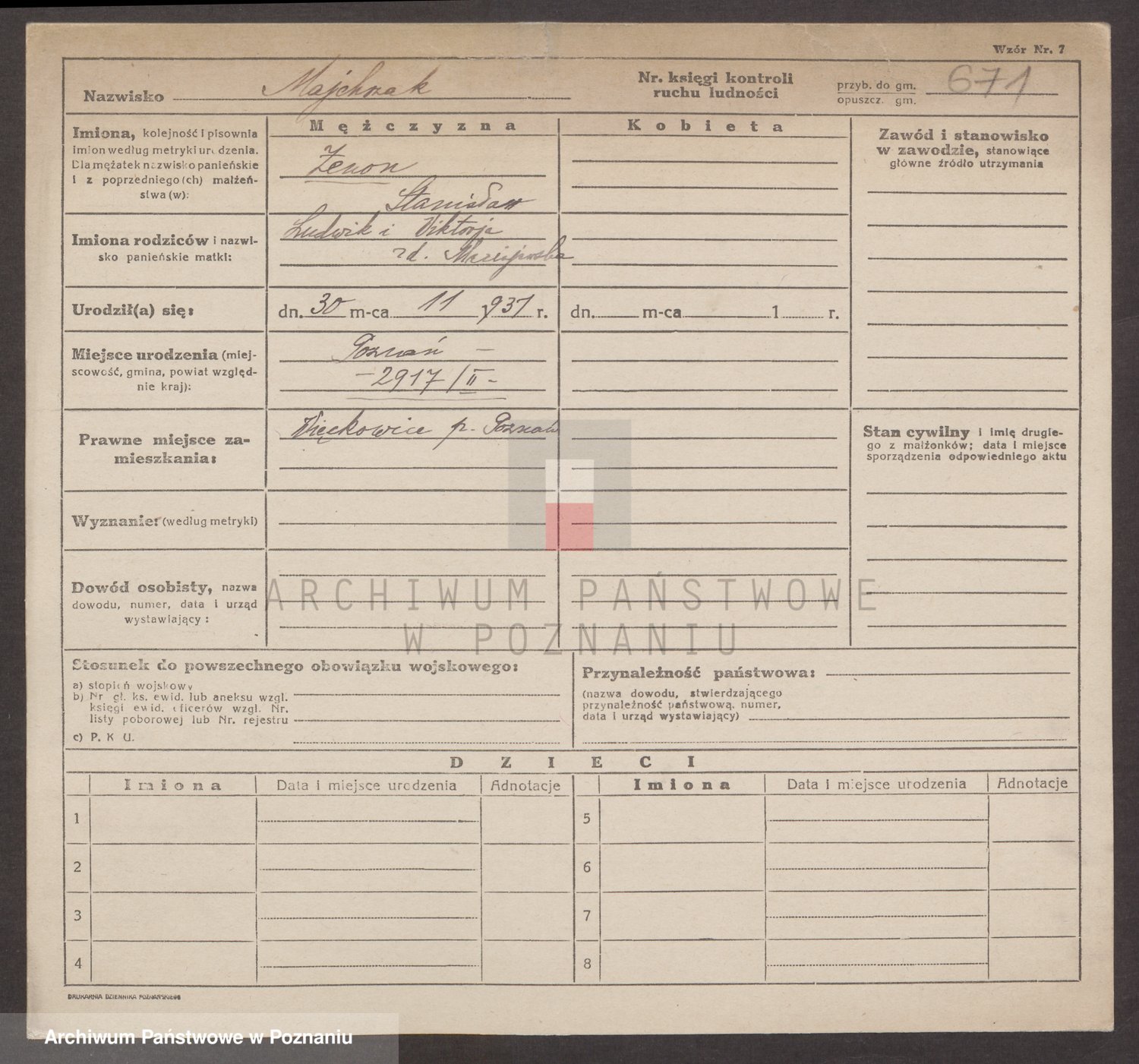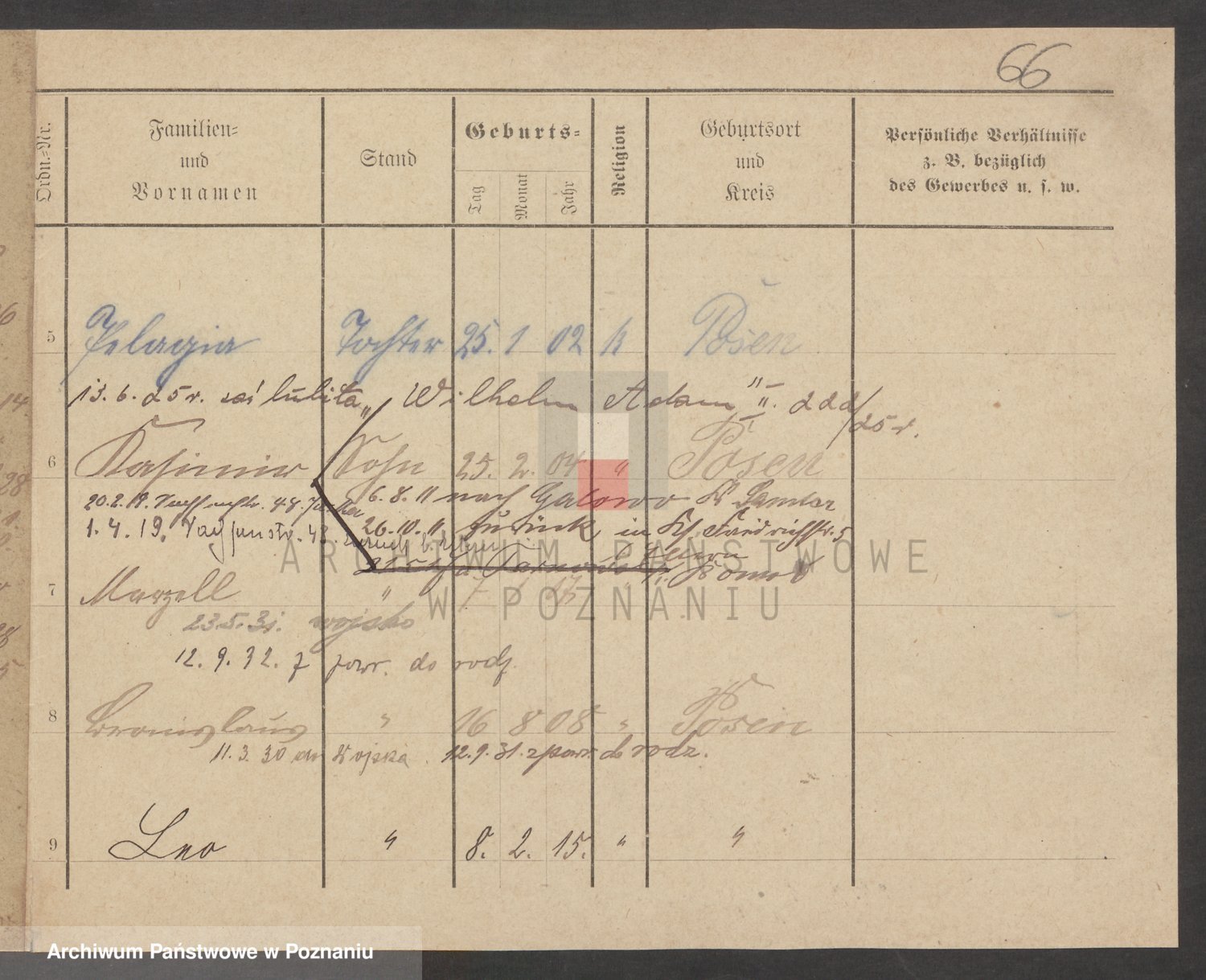 Podgląd karty osobowej dostępny jest po kliknięciu na nazwisko lub ikonkę karty. Można dokonywać powiększenia (ikony na górze) lub przechodzić między kolejnymi skanami (strzałki po bokach).
