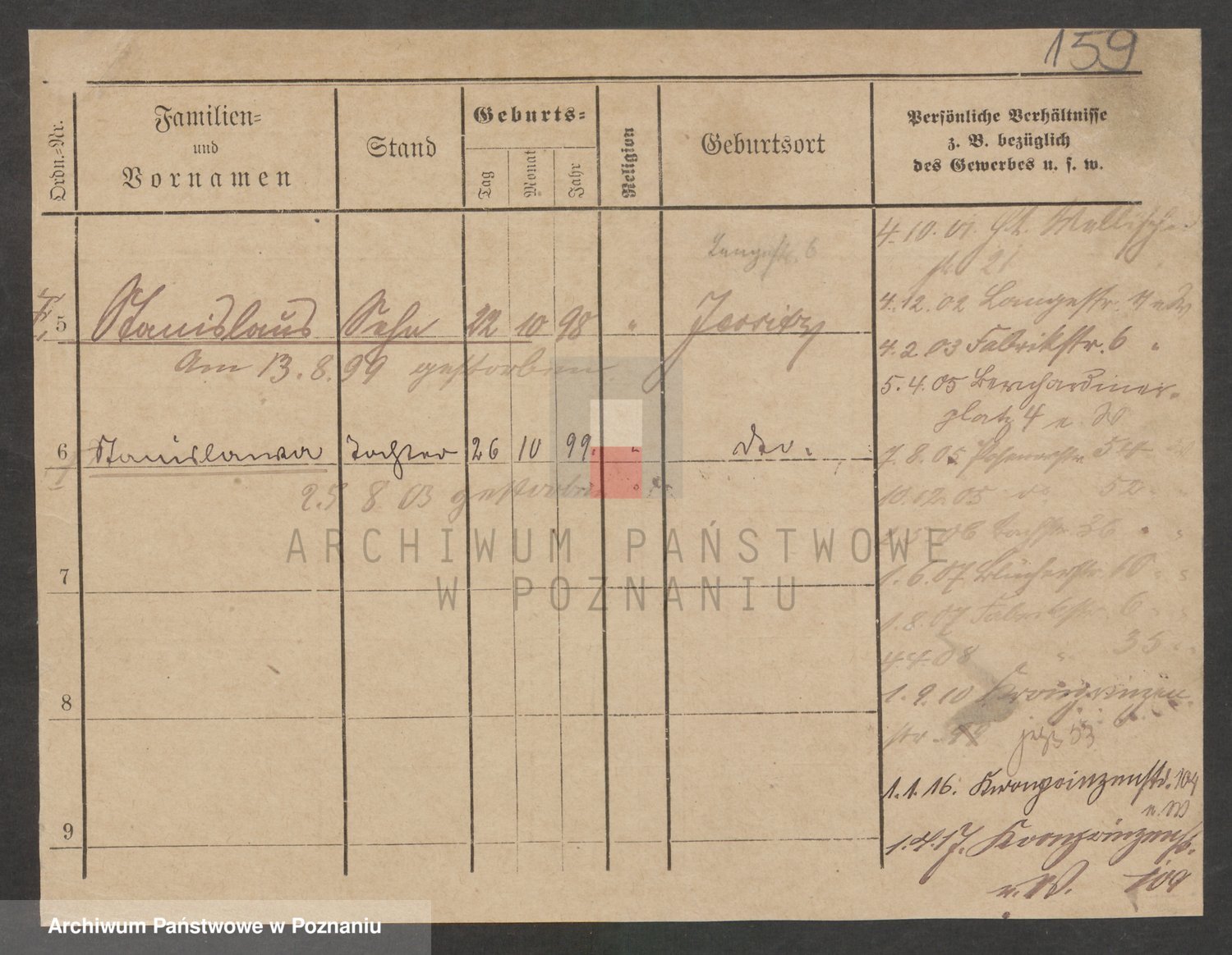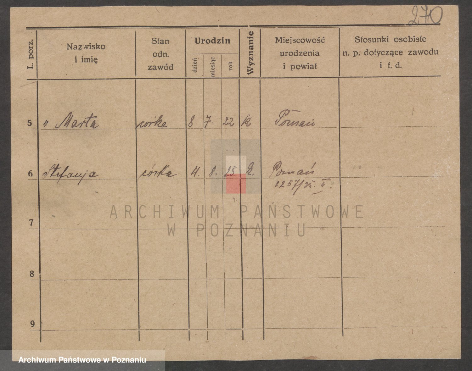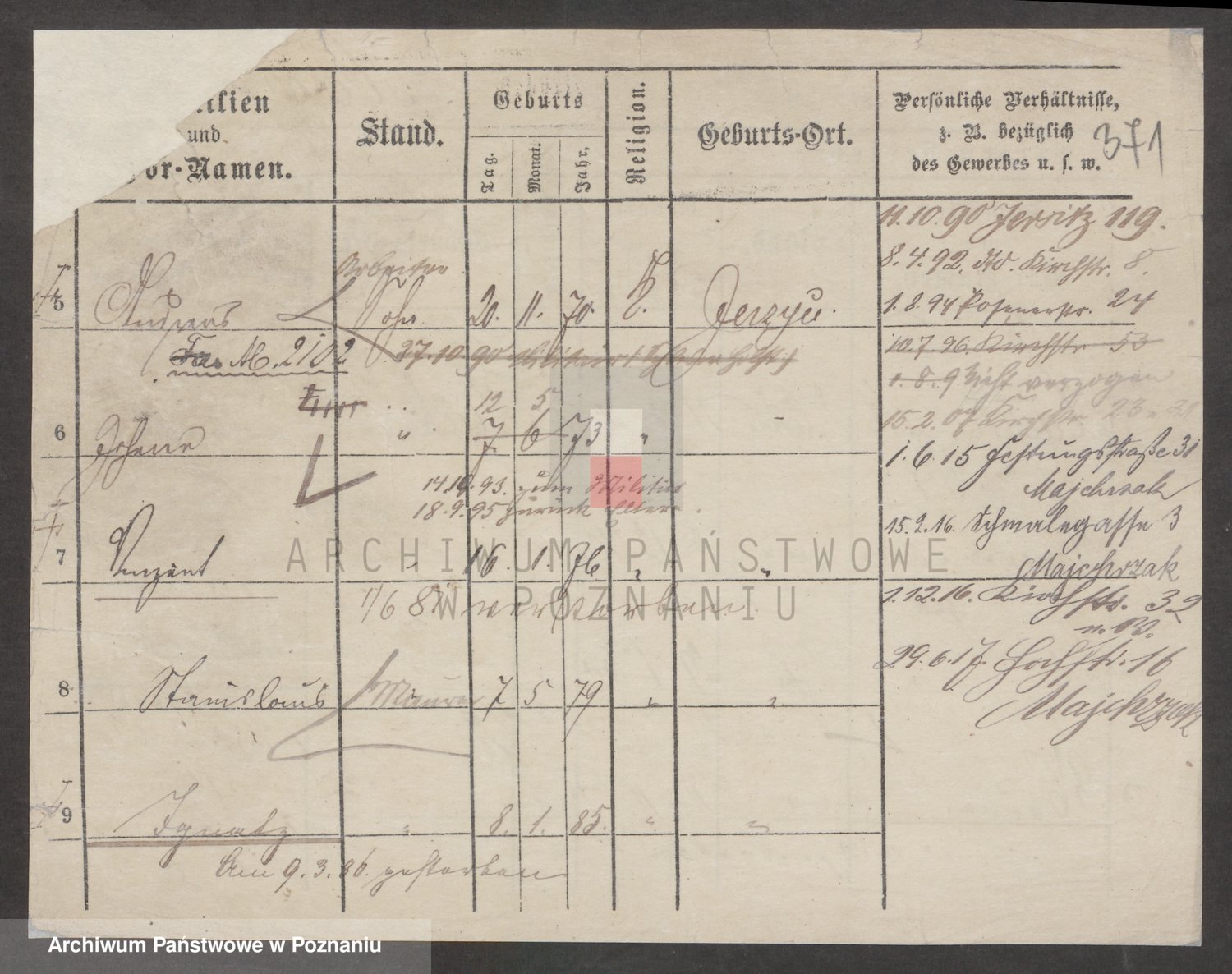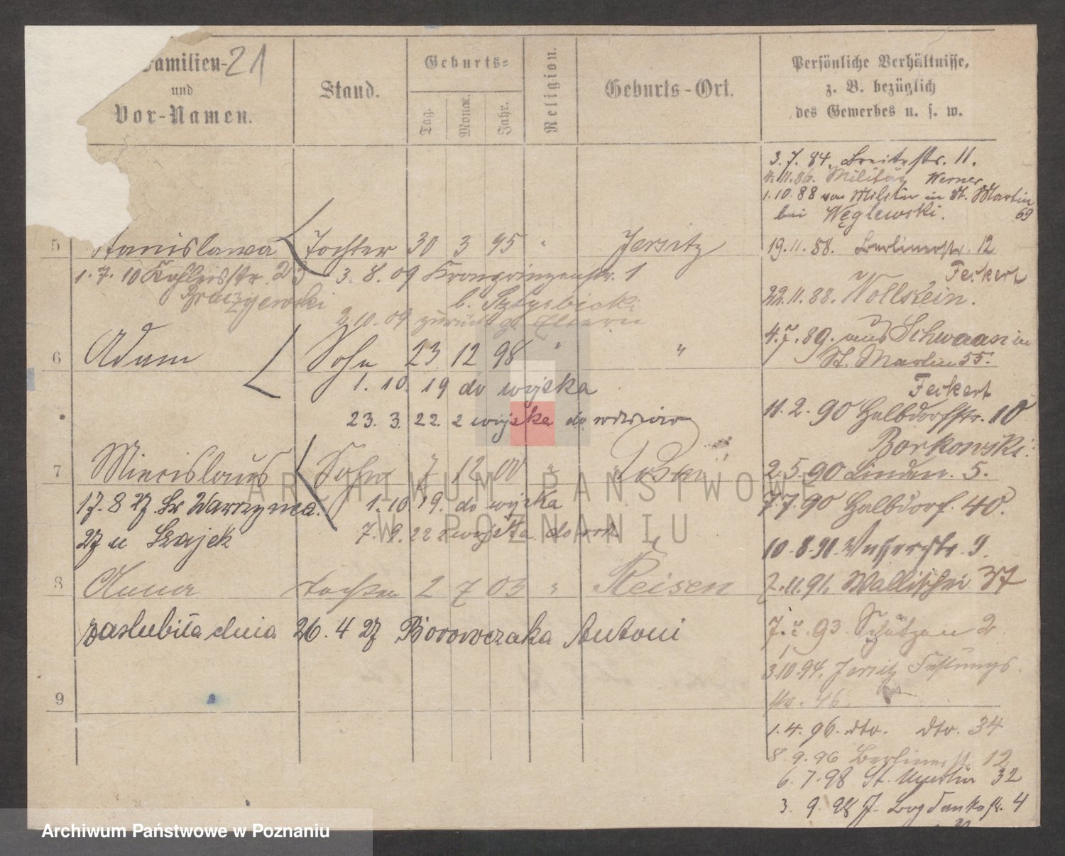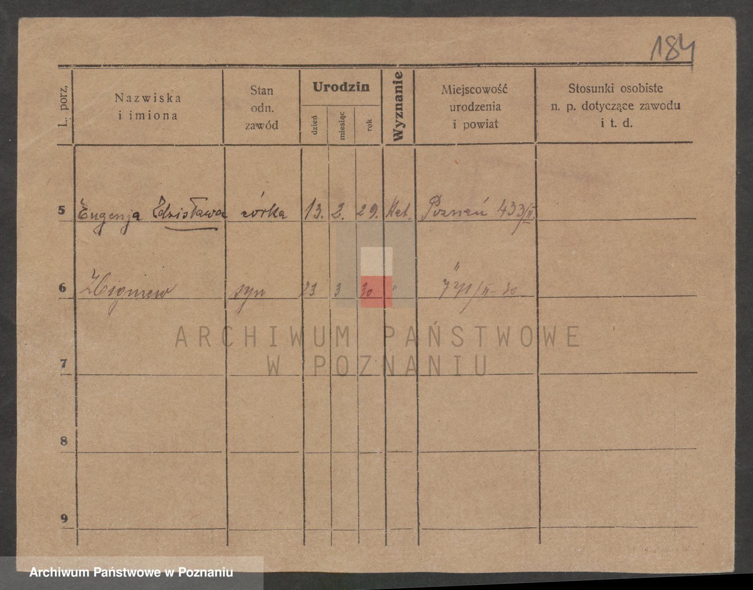 Podgląd karty osobowej dostępny jest po kliknięciu na nazwisko lub ikonkę karty. Można dokonywać powiększenia (ikony na górze) lub przechodzić między kolejnymi skanami (strzałki po bokach).