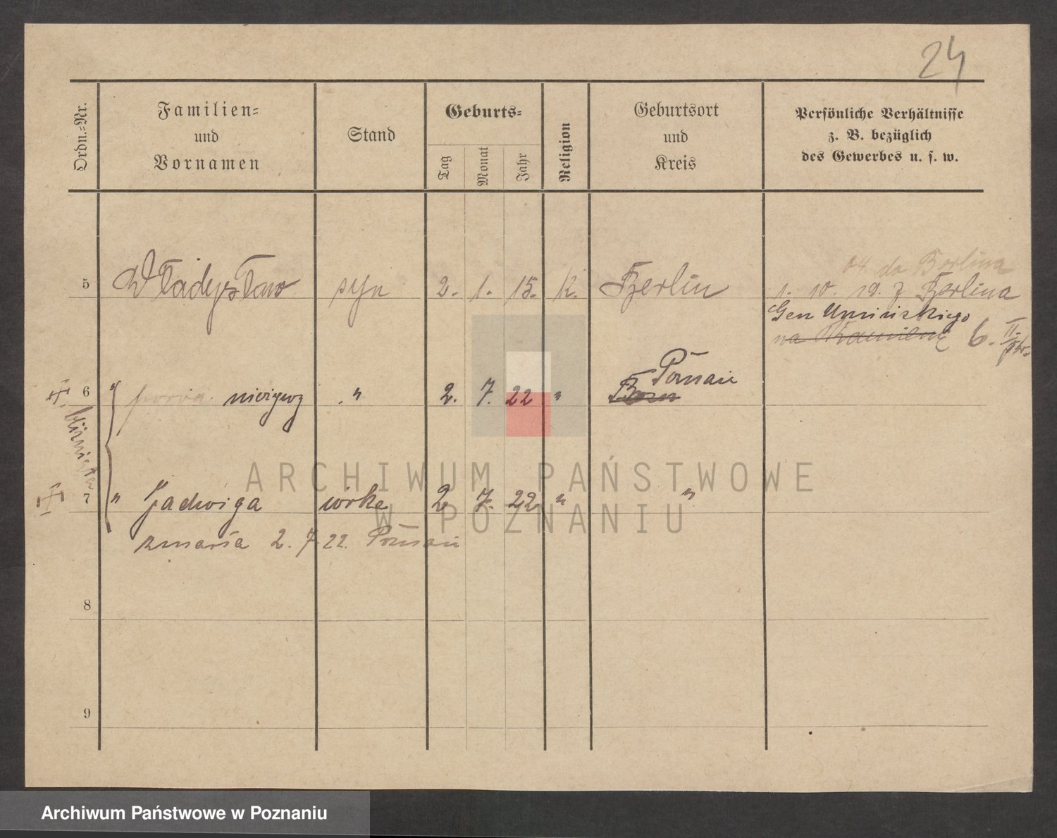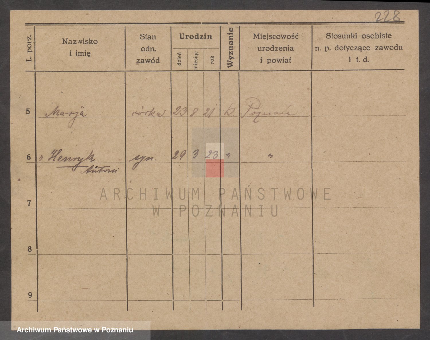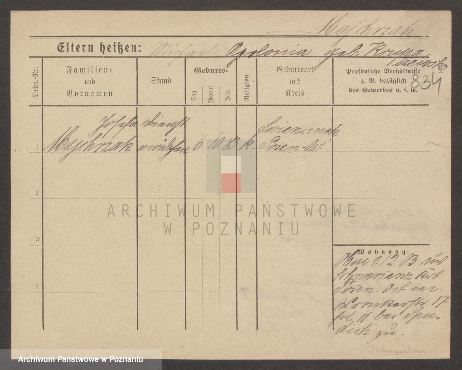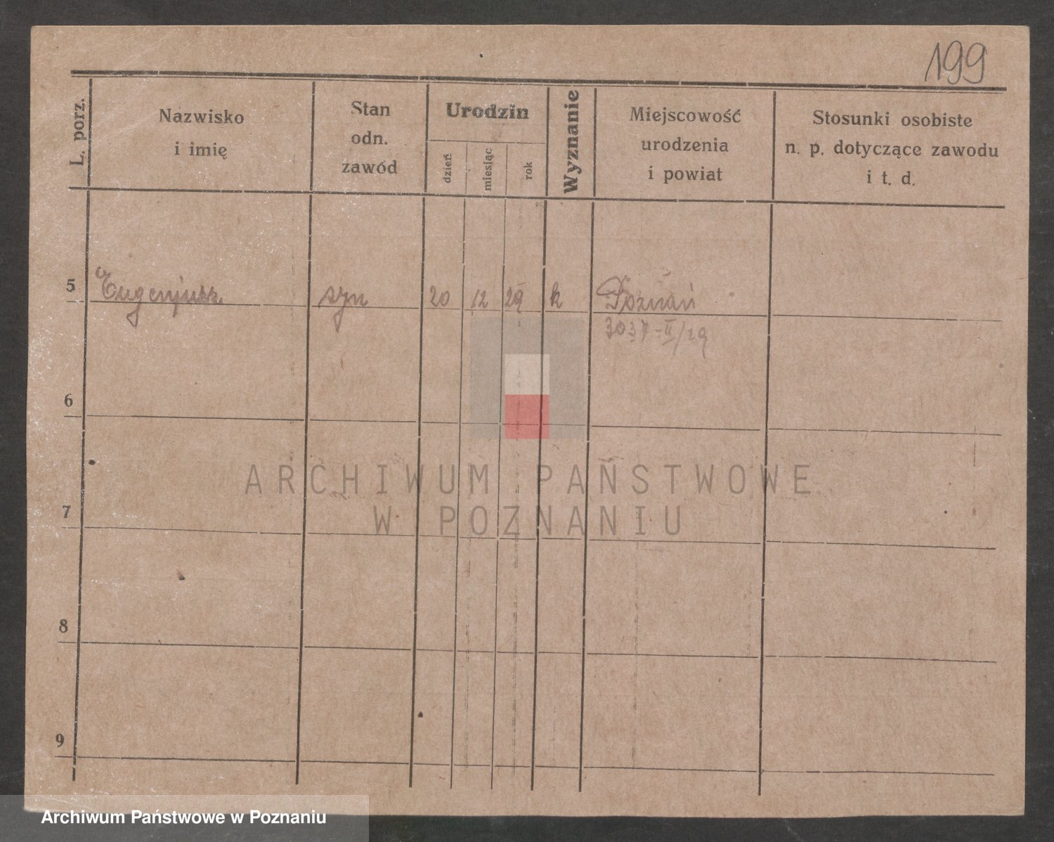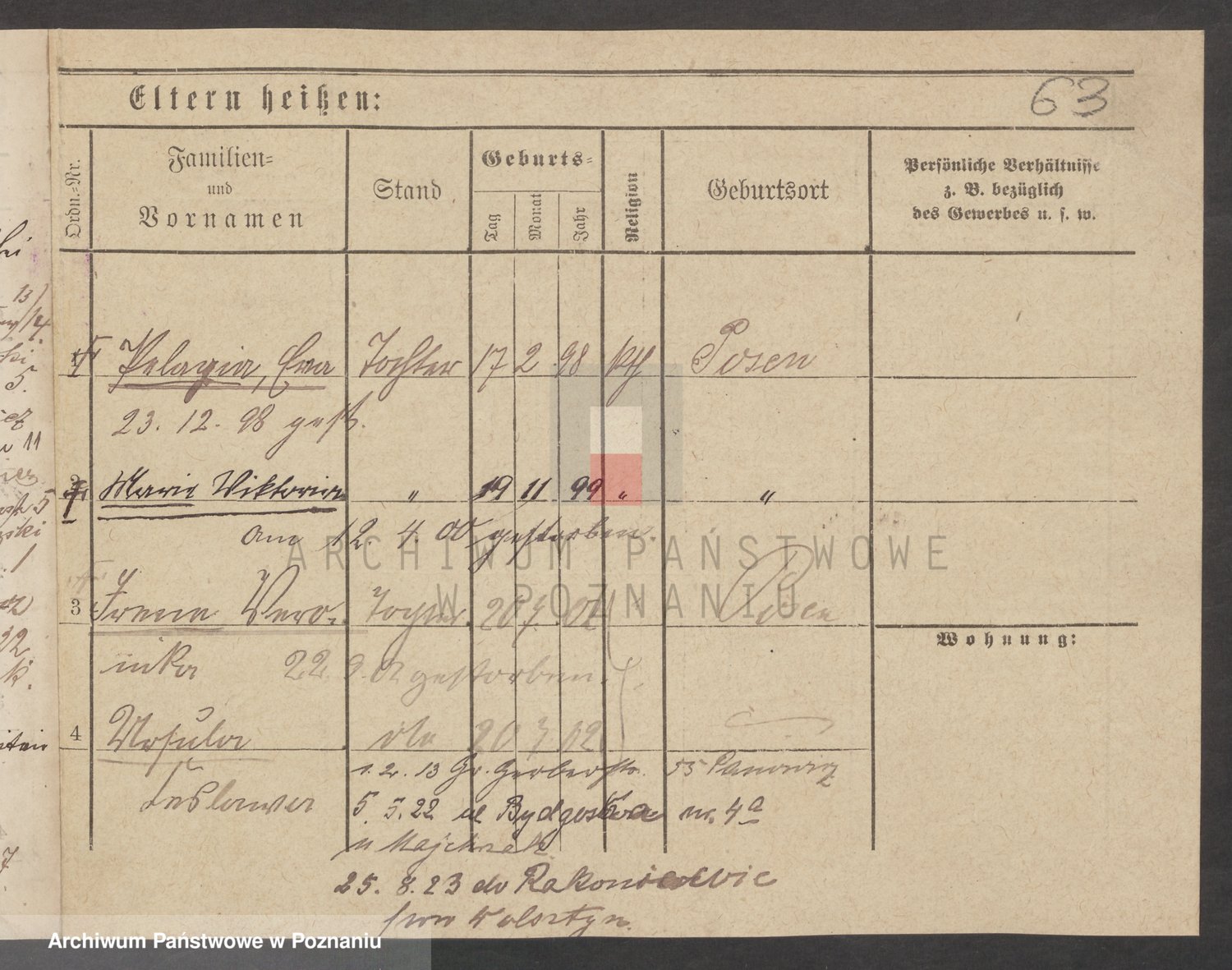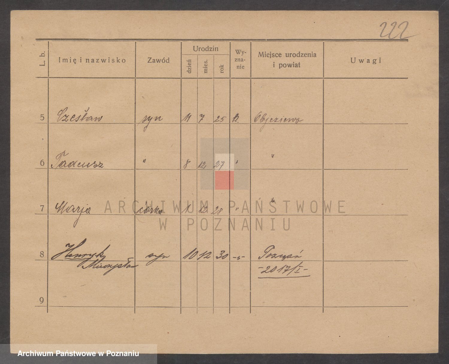 Podgląd karty osobowej dostępny jest po kliknięciu na nazwisko lub ikonkę karty. Można dokonywać powiększenia (ikony na górze) lub przechodzić między kolejnymi skanami (strzałki po bokach).