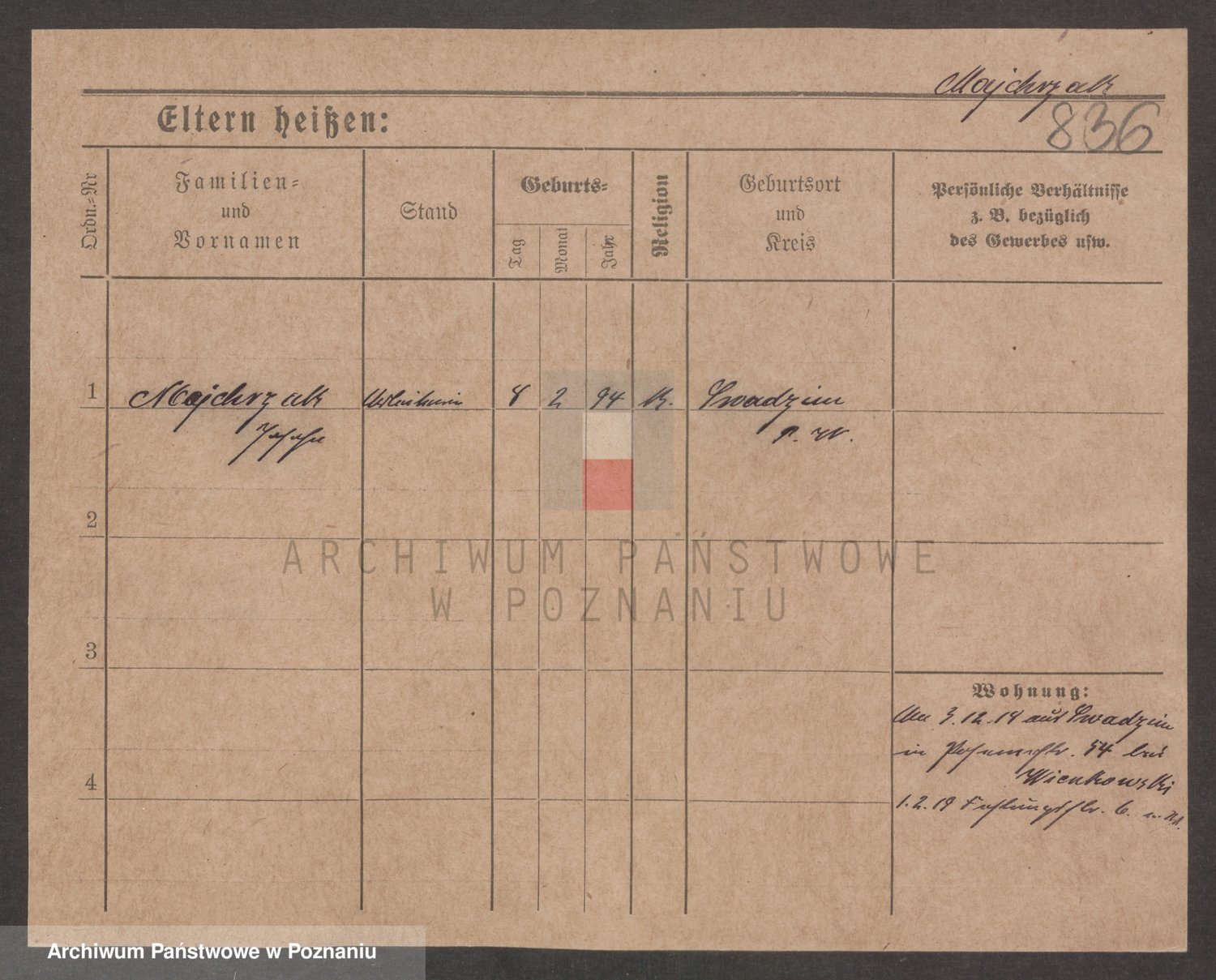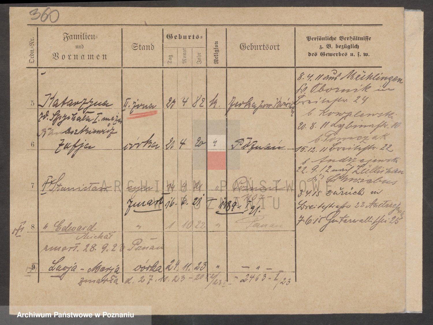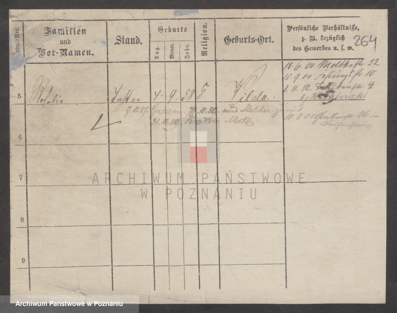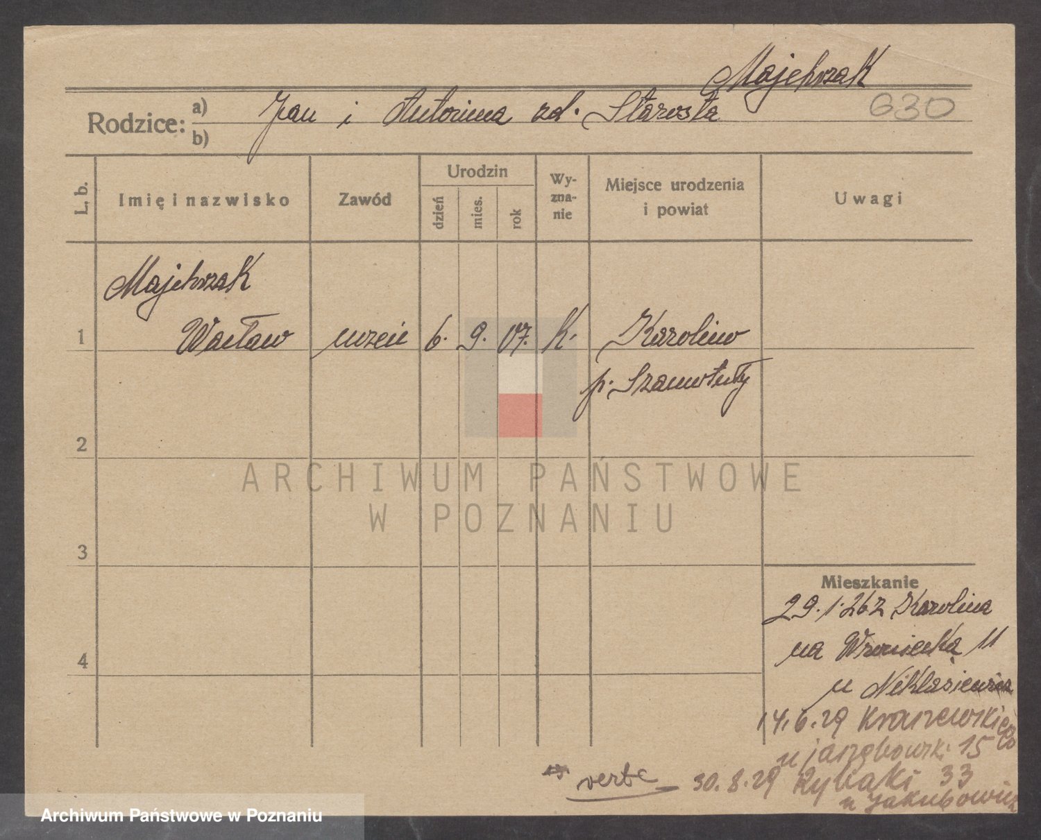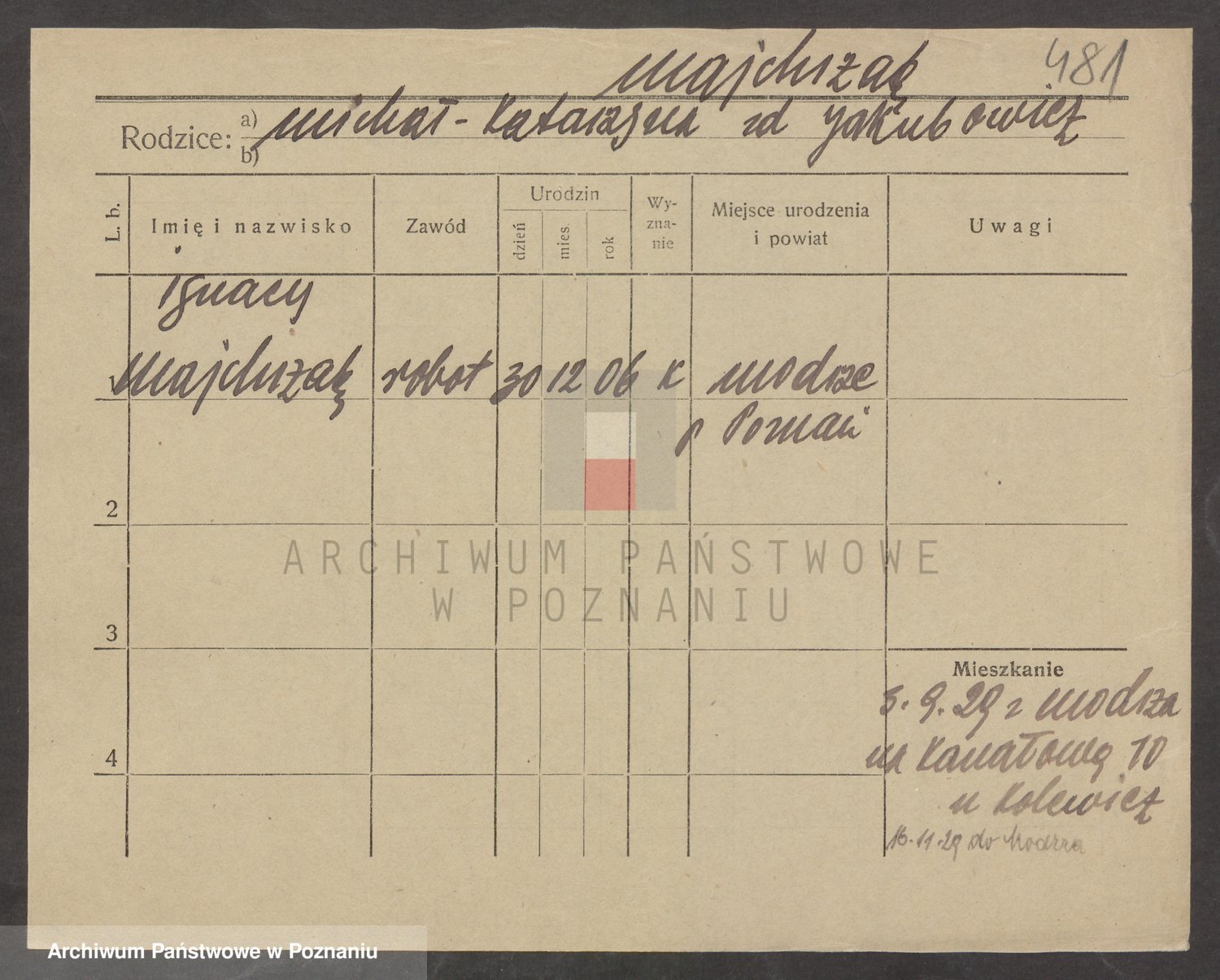 Podgląd karty osobowej dostępny jest po kliknięciu na nazwisko lub ikonkę karty. Można dokonywać powiększenia (ikony na górze) lub przechodzić między kolejnymi skanami (strzałki po bokach).
