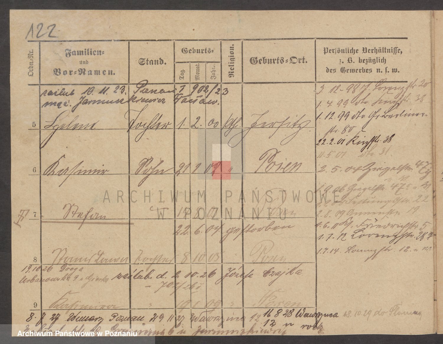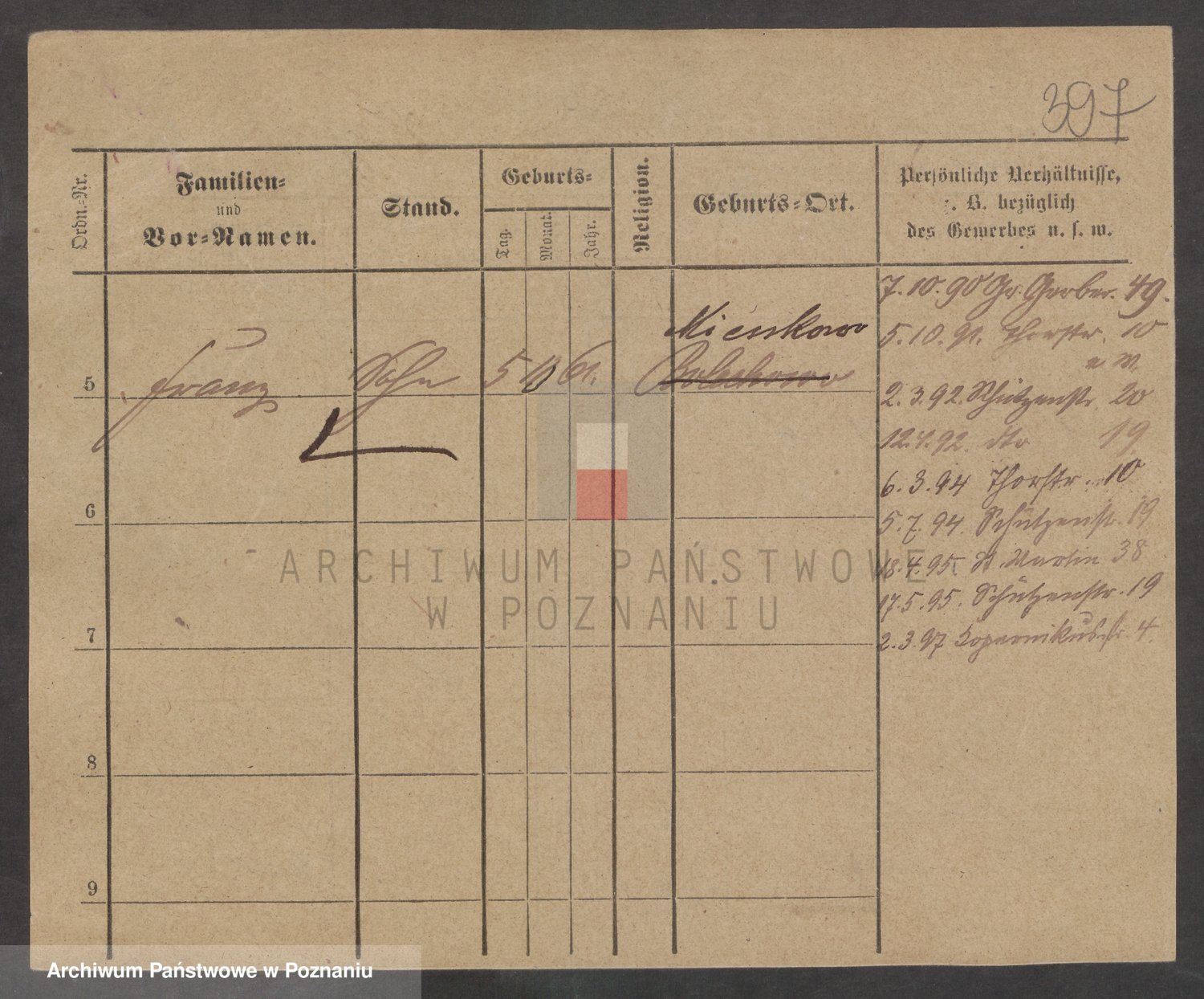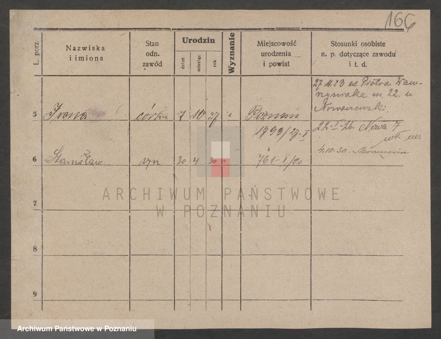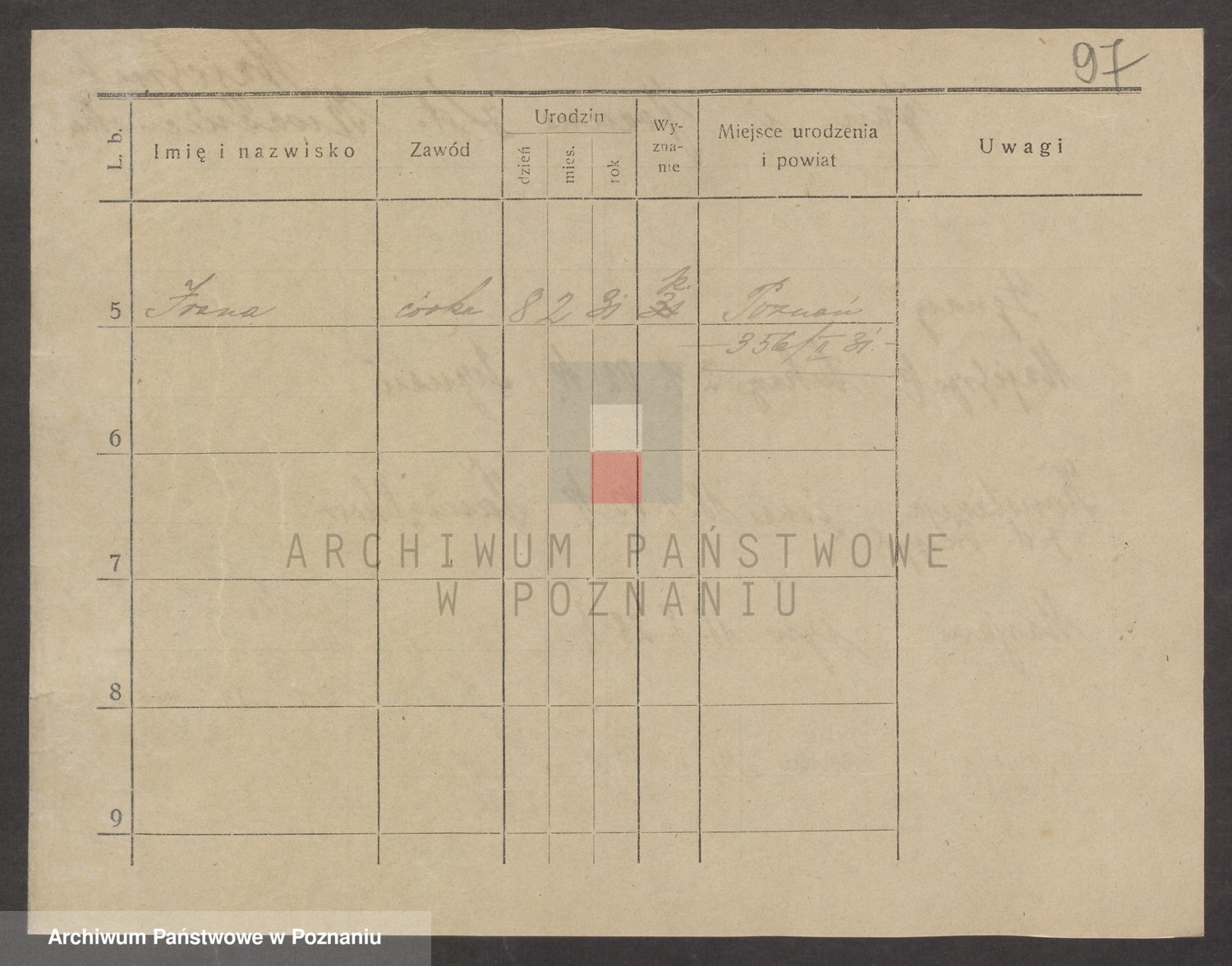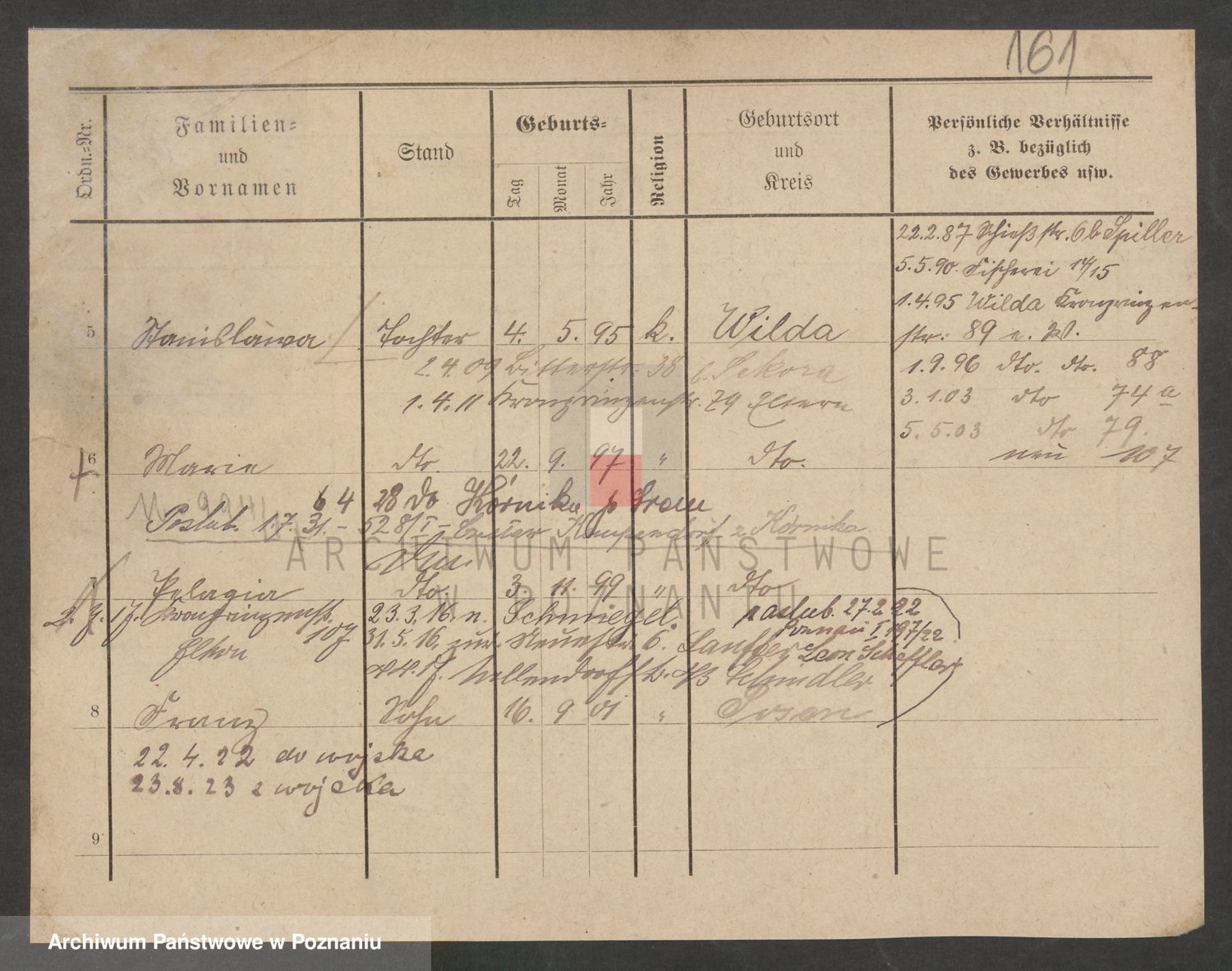 Podgląd karty osobowej dostępny jest po kliknięciu na nazwisko lub ikonkę karty. Można dokonywać powiększenia (ikony na górze) lub przechodzić między kolejnymi skanami (strzałki po bokach).