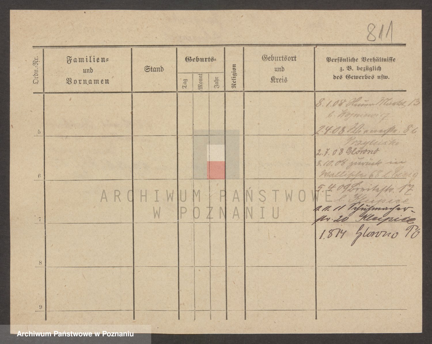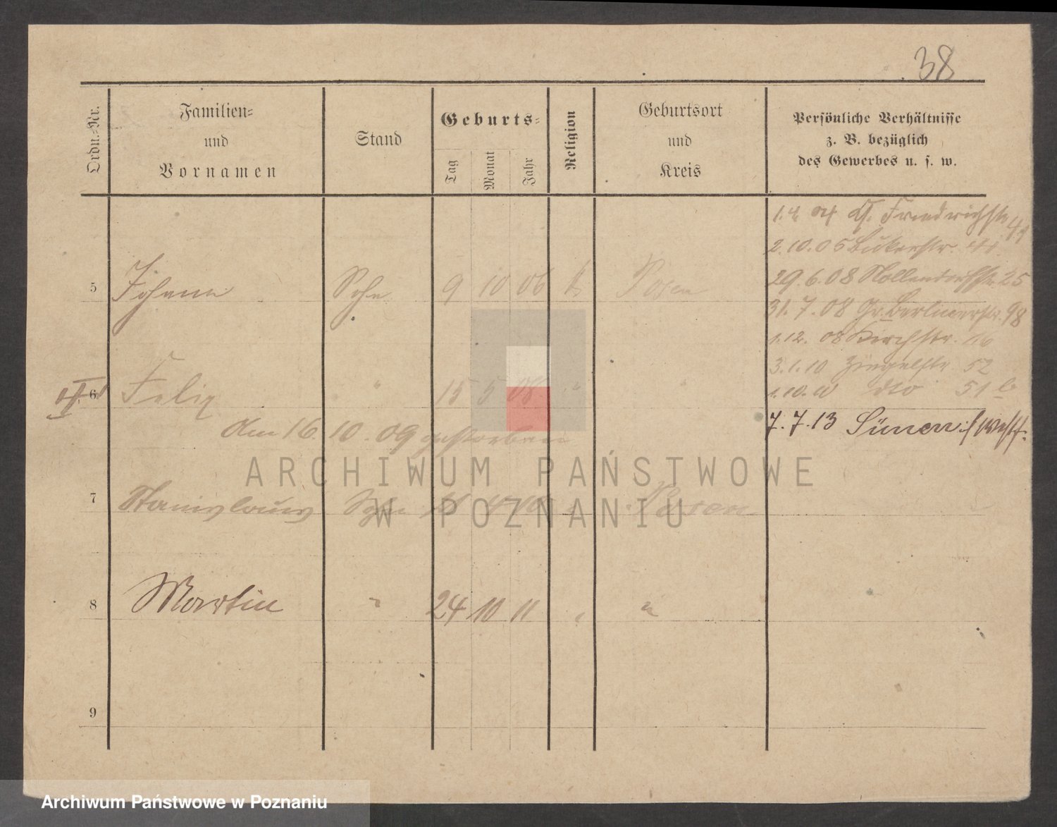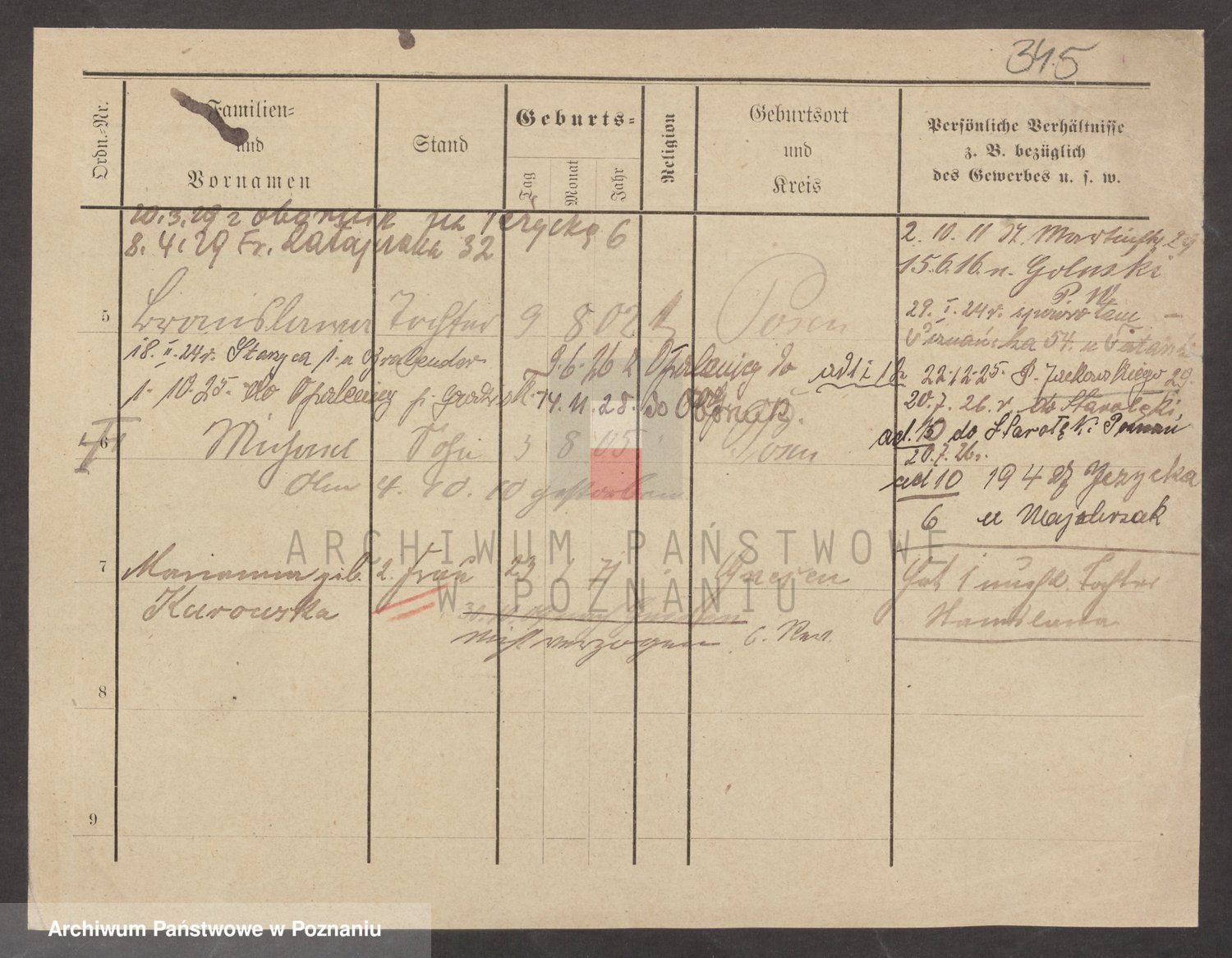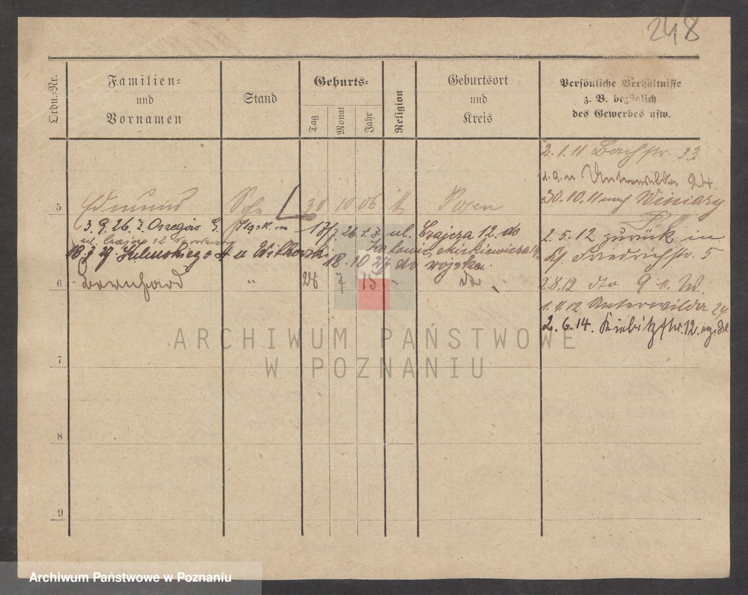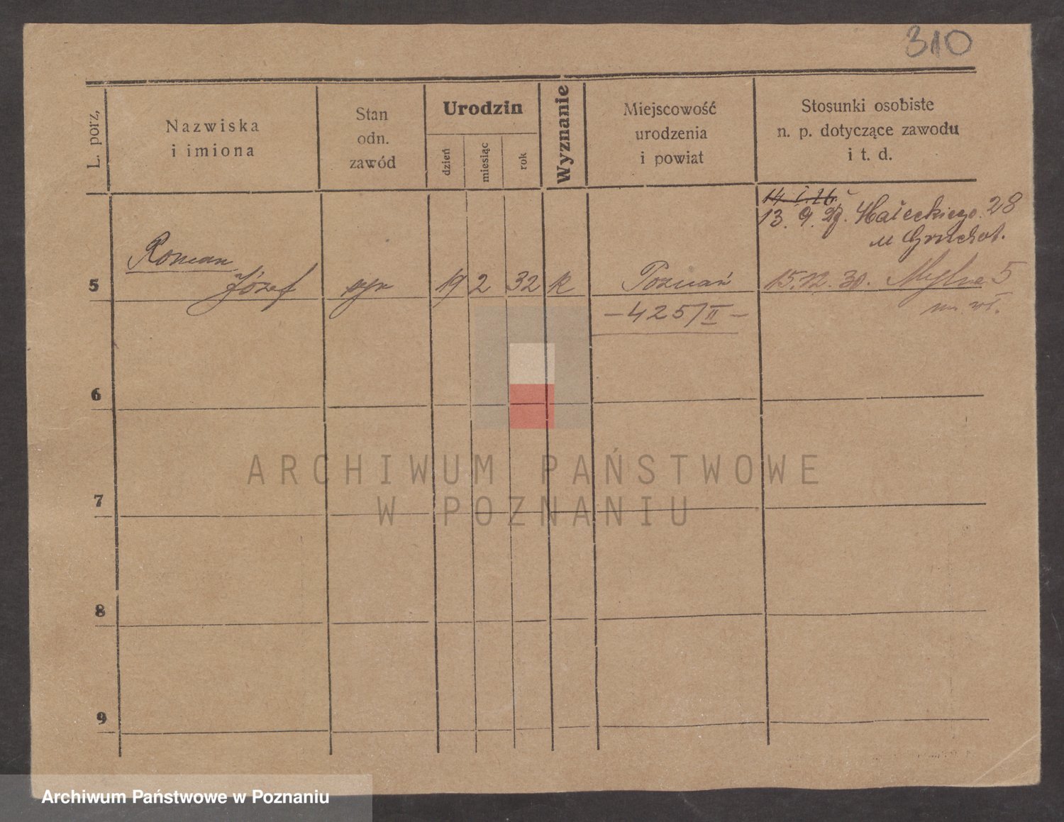 Podgląd karty osobowej dostępny jest po kliknięciu na nazwisko lub ikonkę karty. Można dokonywać powiększenia (ikony na górze) lub przechodzić między kolejnymi skanami (strzałki po bokach).