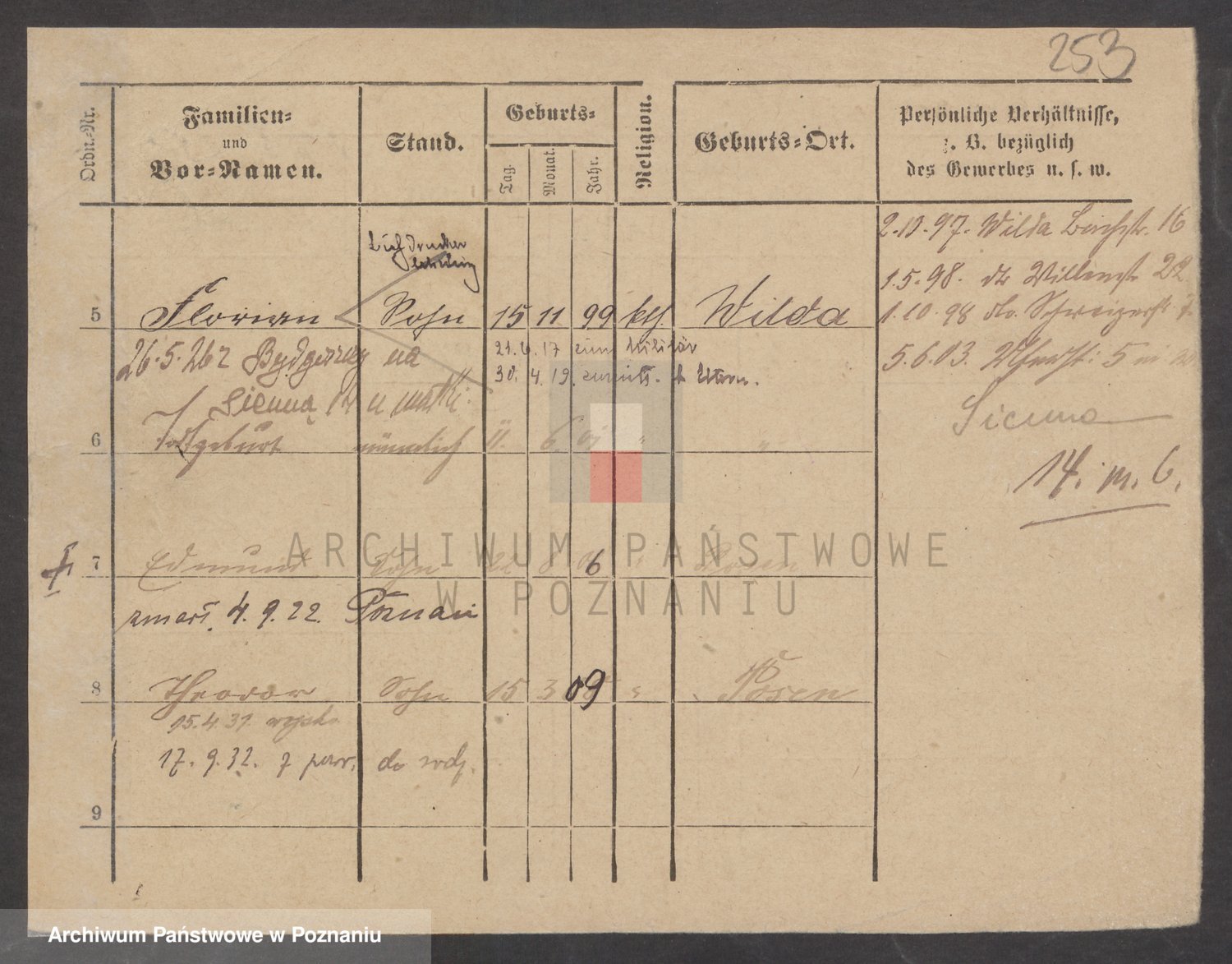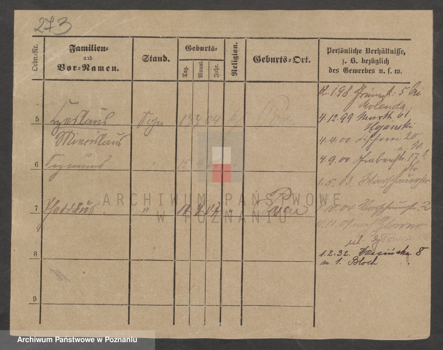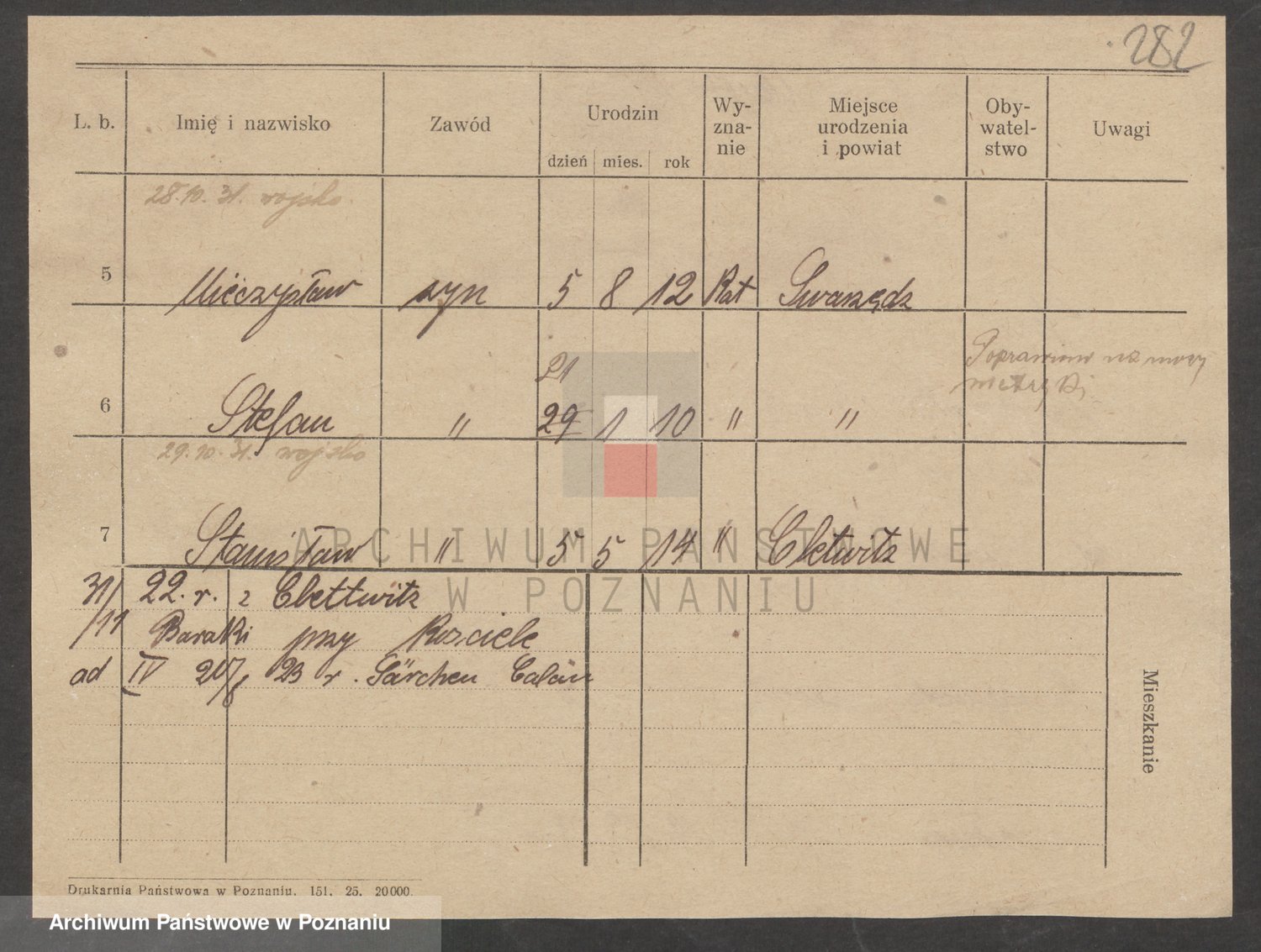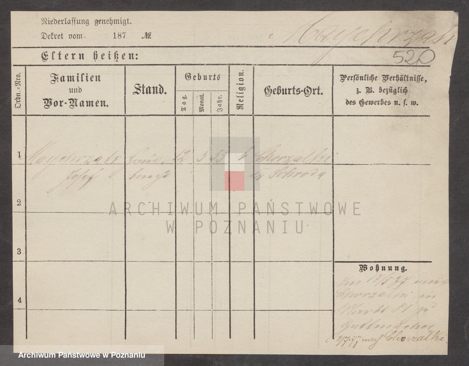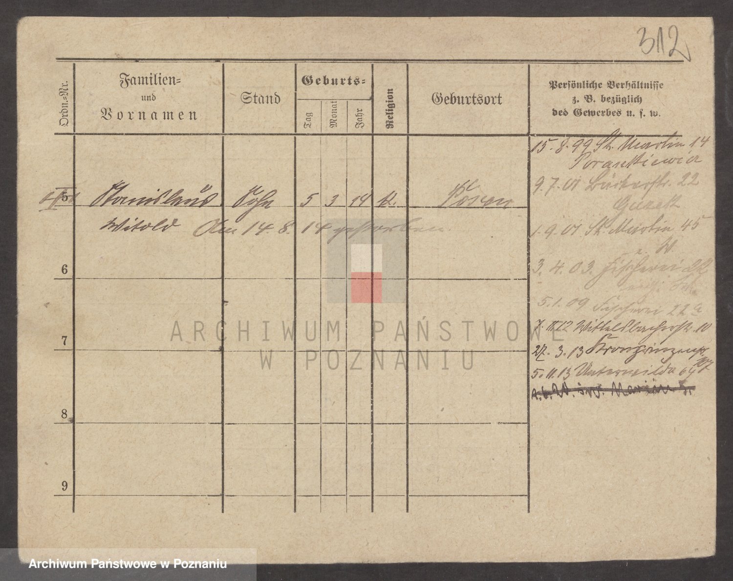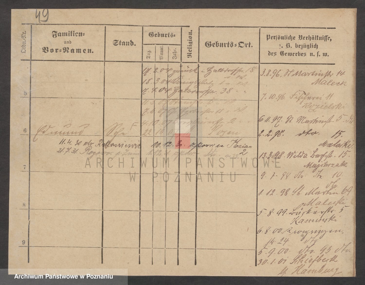 Podgląd karty osobowej dostępny jest po kliknięciu na nazwisko lub ikonkę karty. Można dokonywać powiększenia (ikony na górze) lub przechodzić między kolejnymi skanami (strzałki po bokach).
