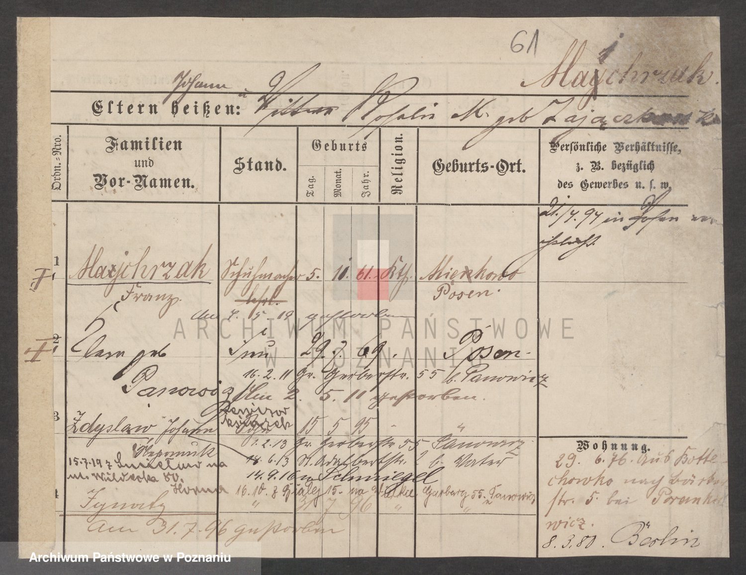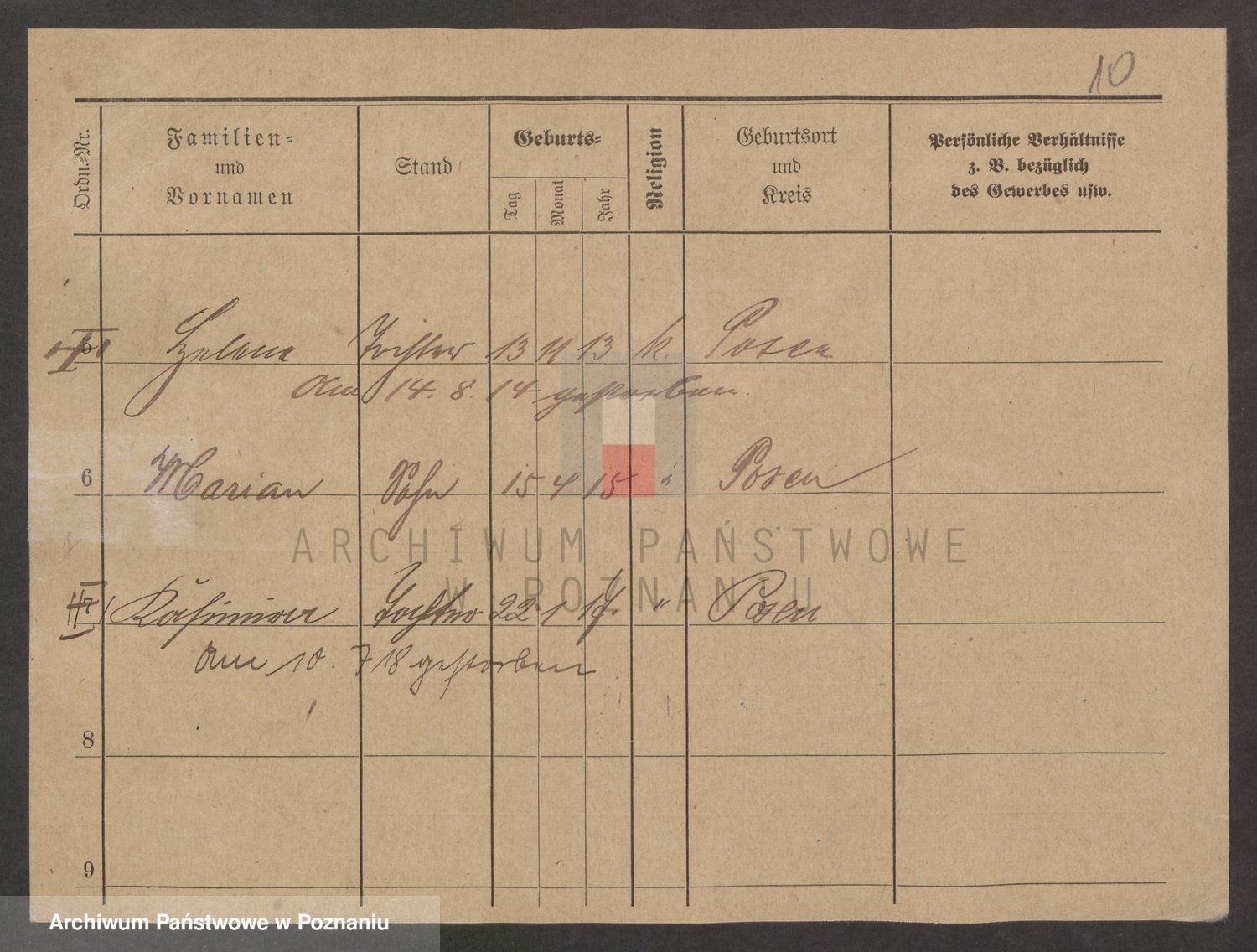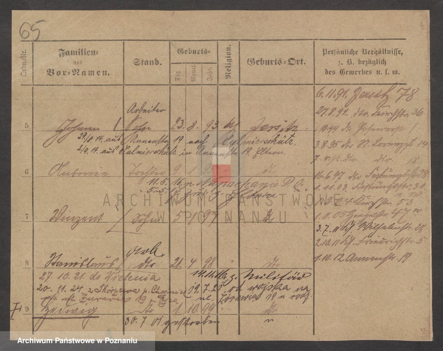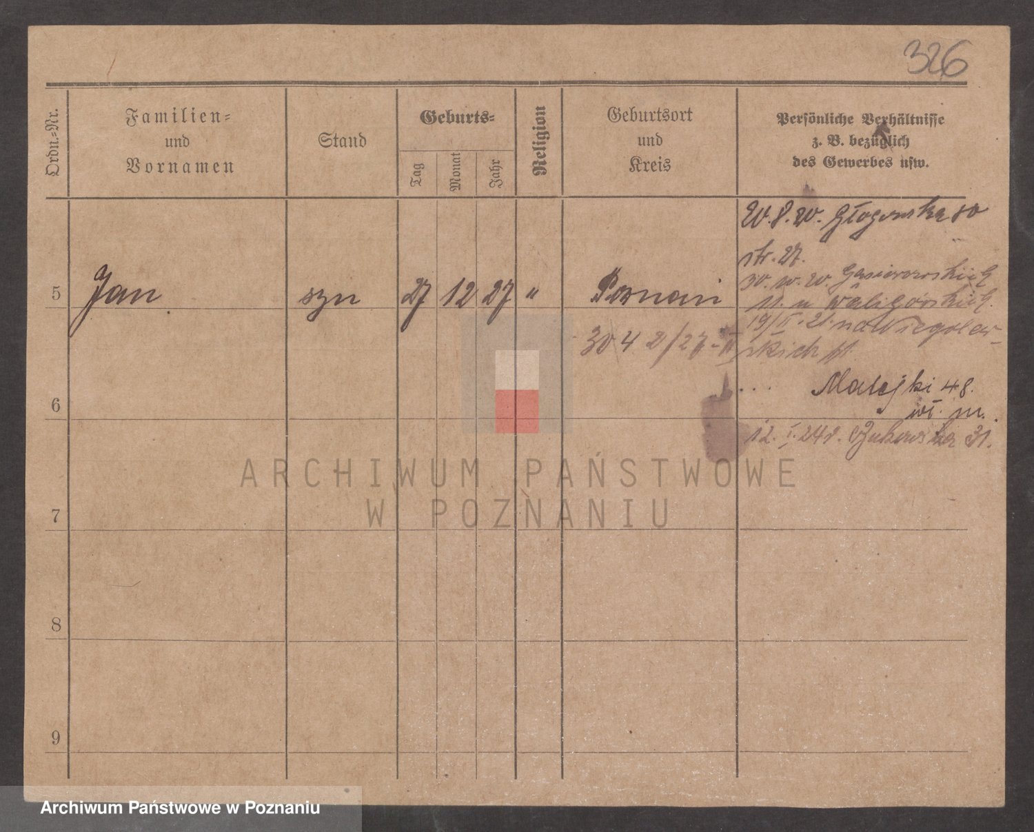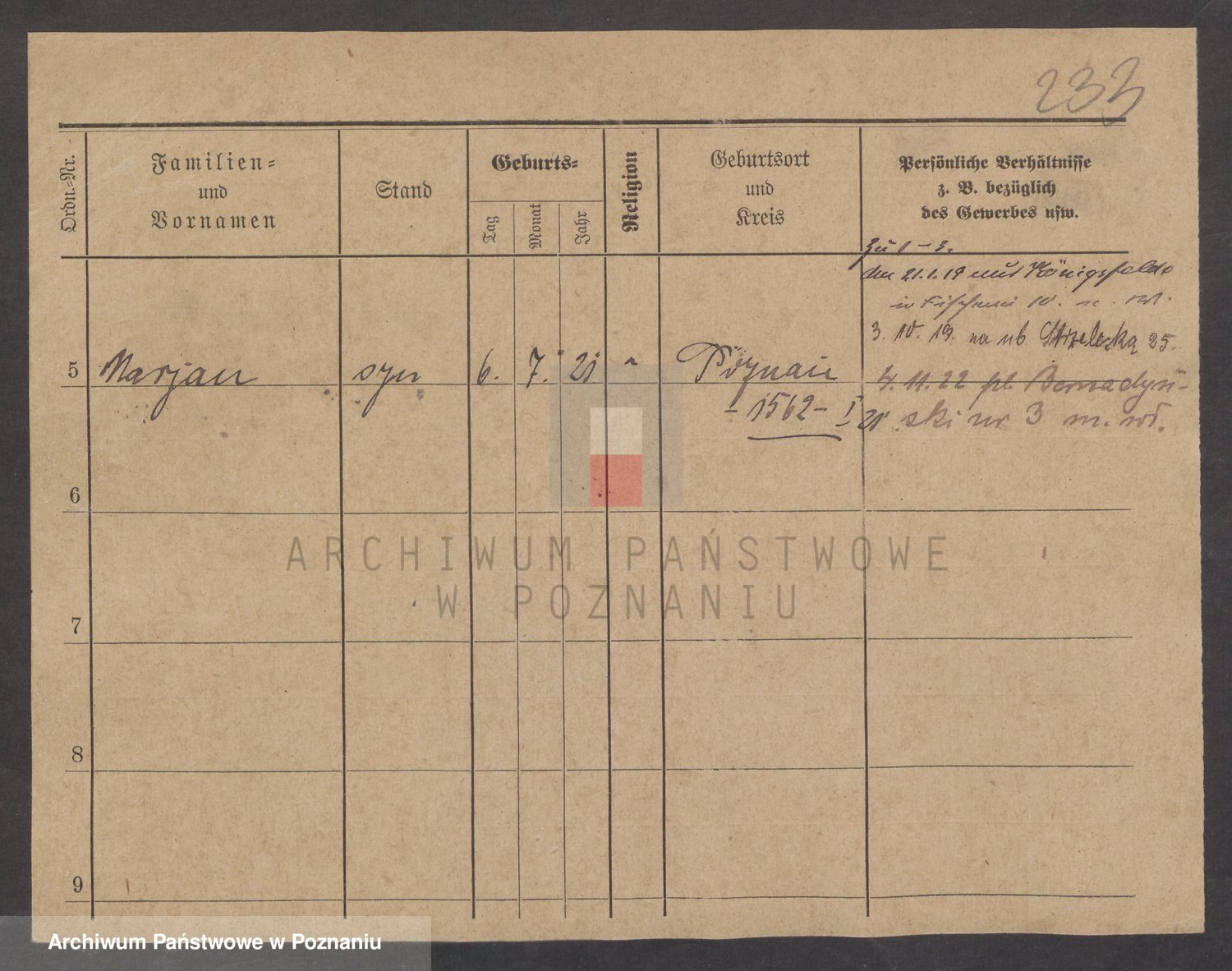 Podgląd karty osobowej dostępny jest po kliknięciu na nazwisko lub ikonkę karty. Można dokonywać powiększenia (ikony na górze) lub przechodzić między kolejnymi skanami (strzałki po bokach).
