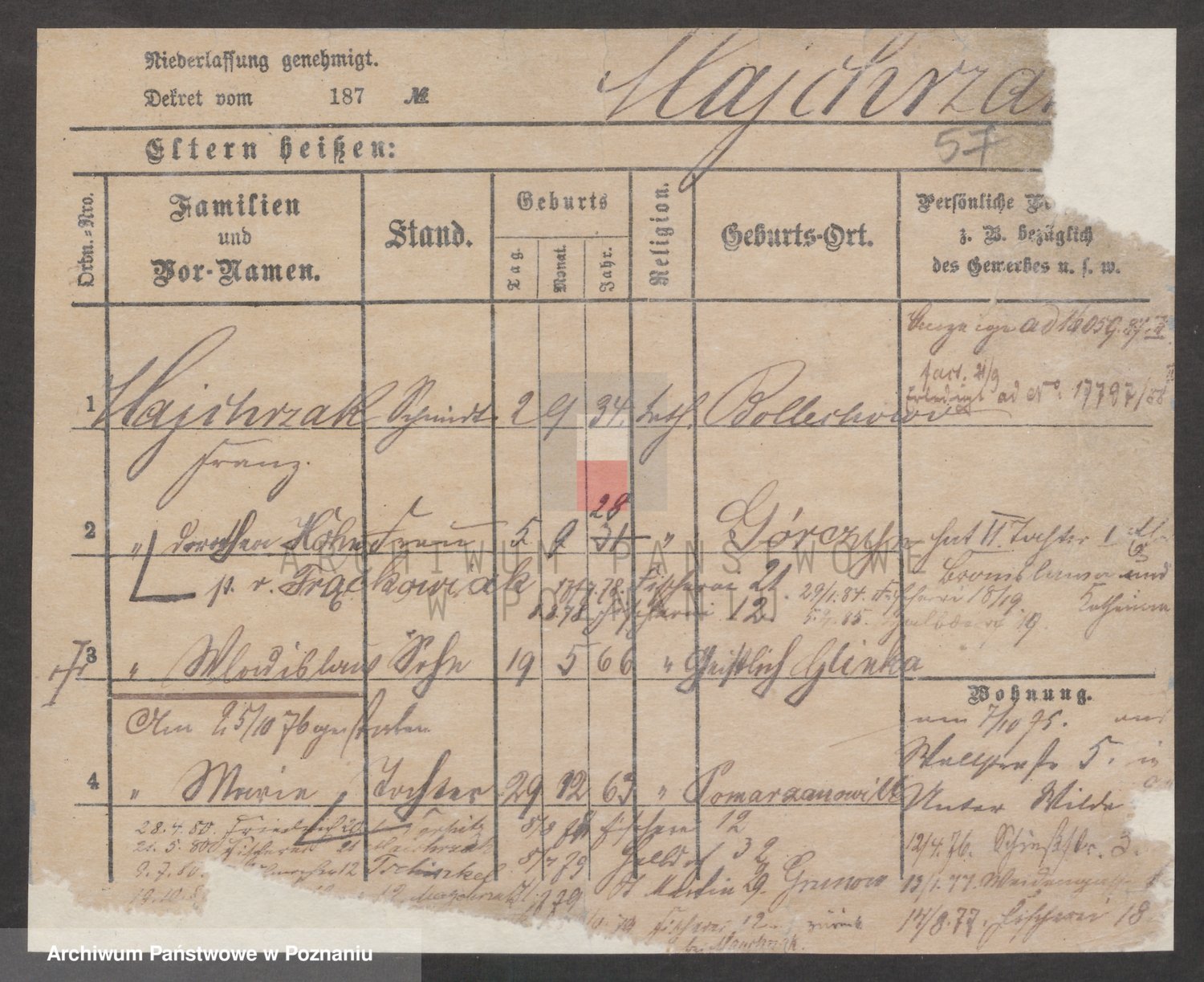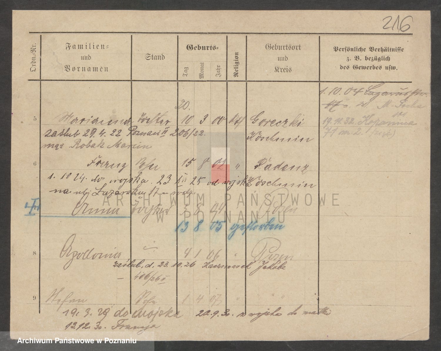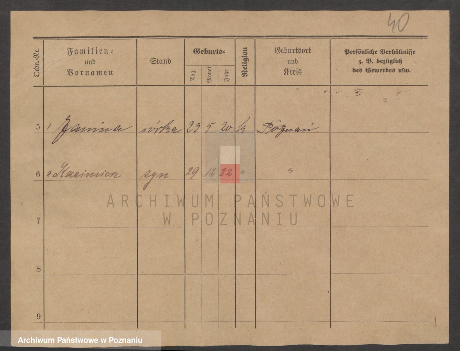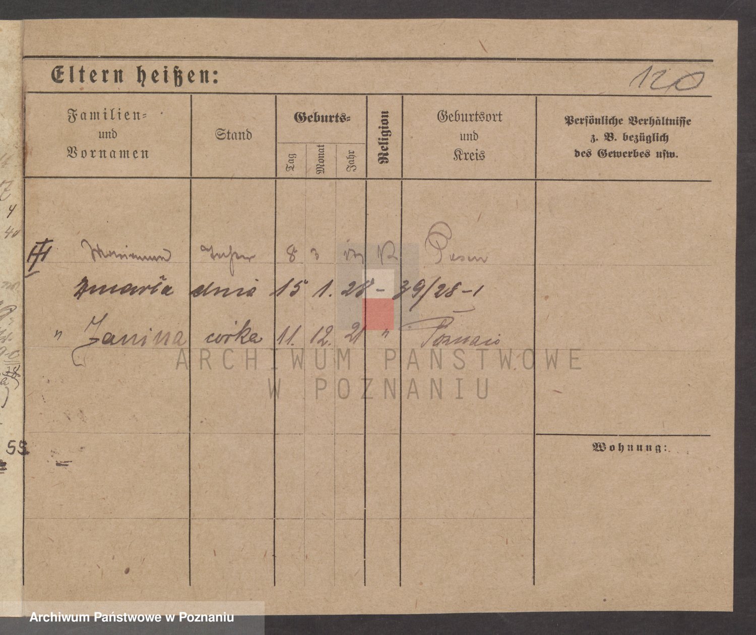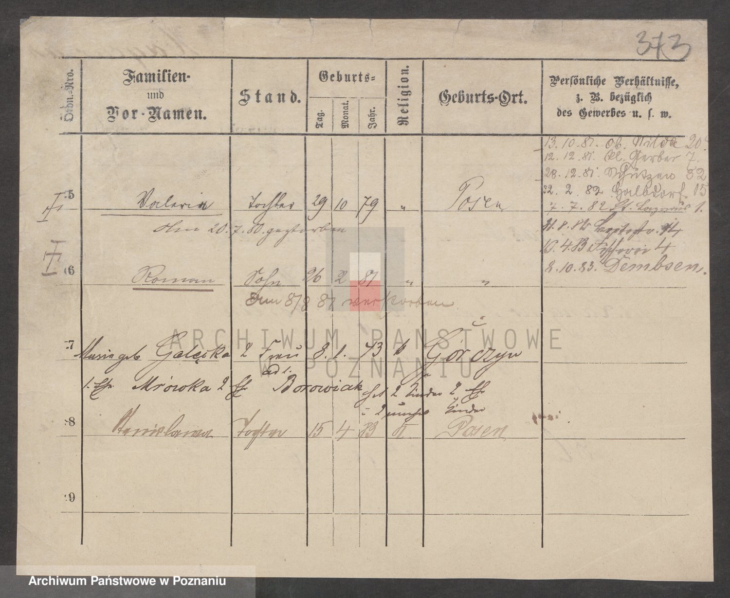 Podgląd karty osobowej dostępny jest po kliknięciu na nazwisko lub ikonkę karty. Można dokonywać powiększenia (ikony na górze) lub przechodzić między kolejnymi skanami (strzałki po bokach).