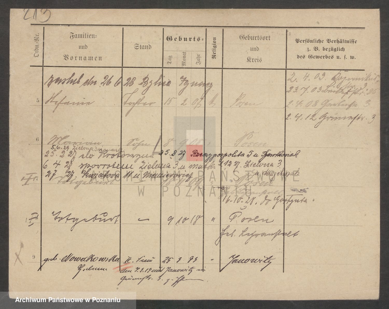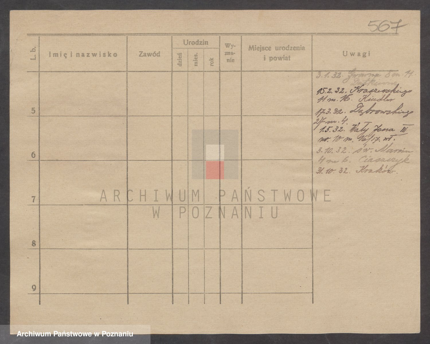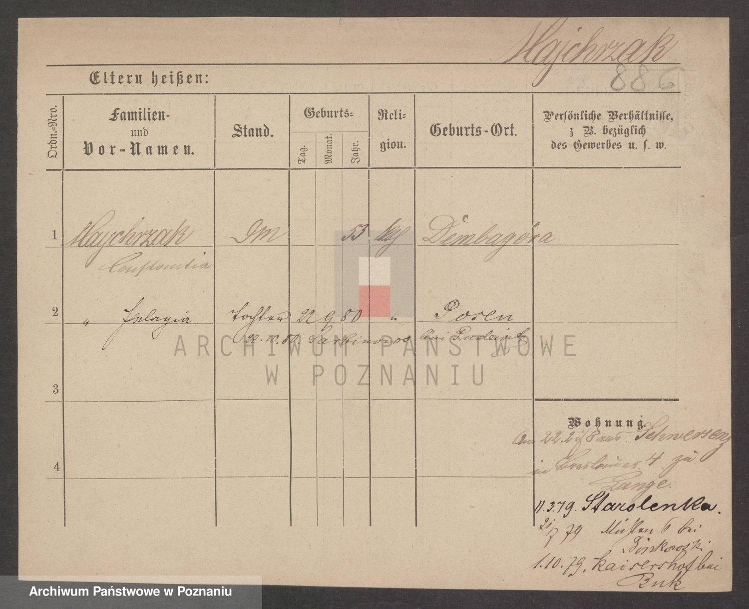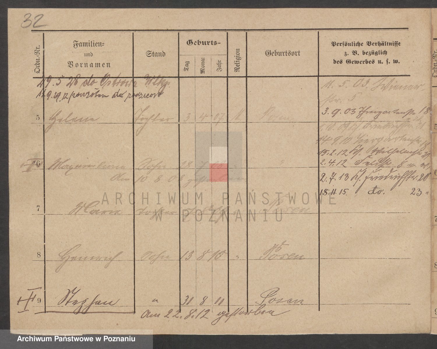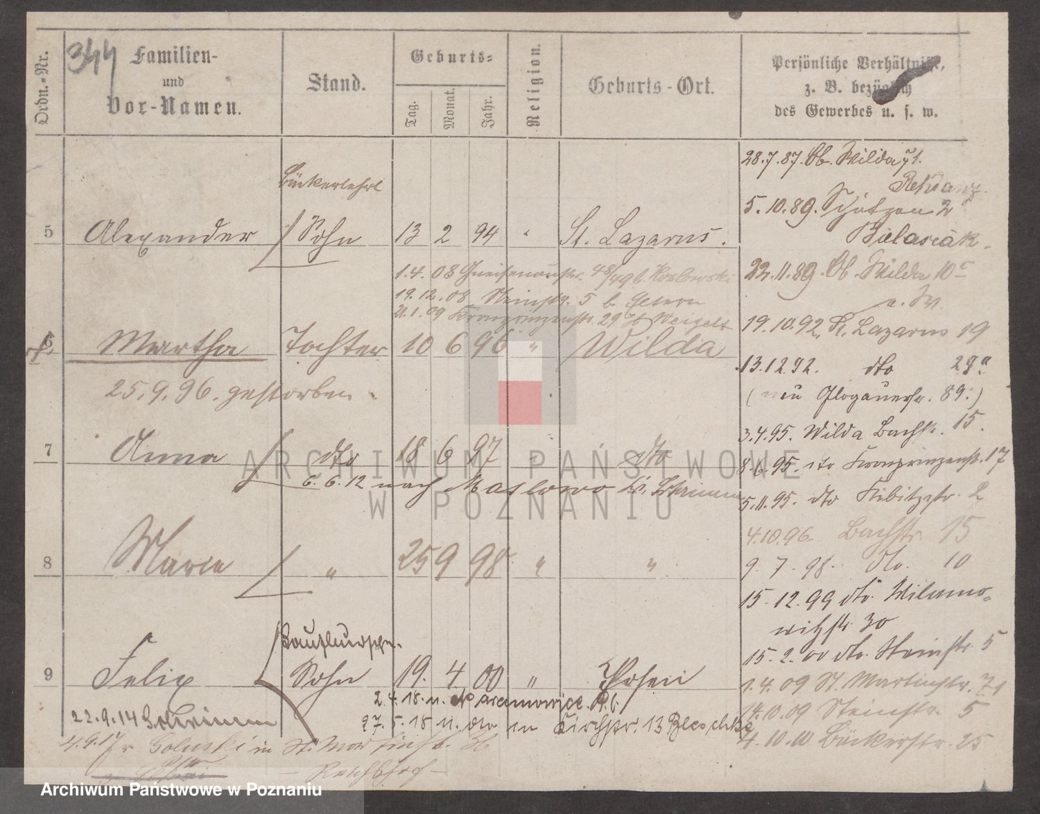Podgląd karty osobowej dostępny jest po kliknięciu na nazwisko lub ikonkę karty. Można dokonywać powiększenia (ikony na górze) lub przechodzić między kolejnymi skanami (strzałki po bokach).