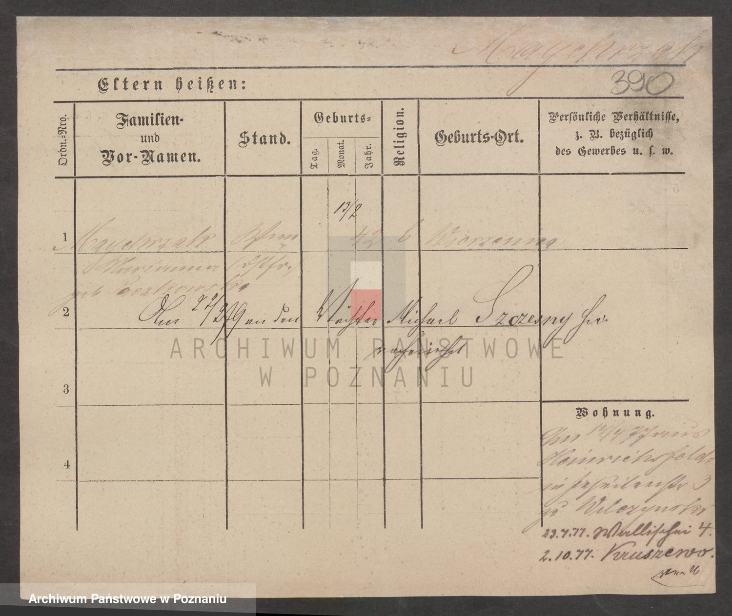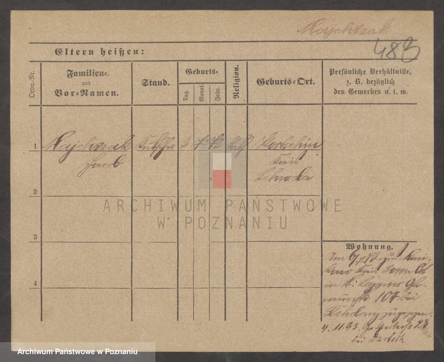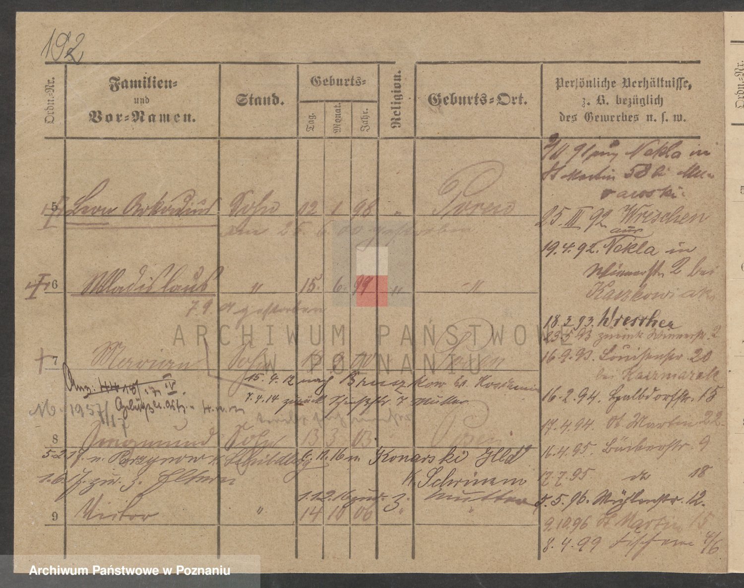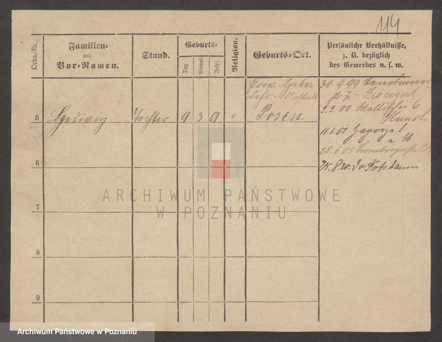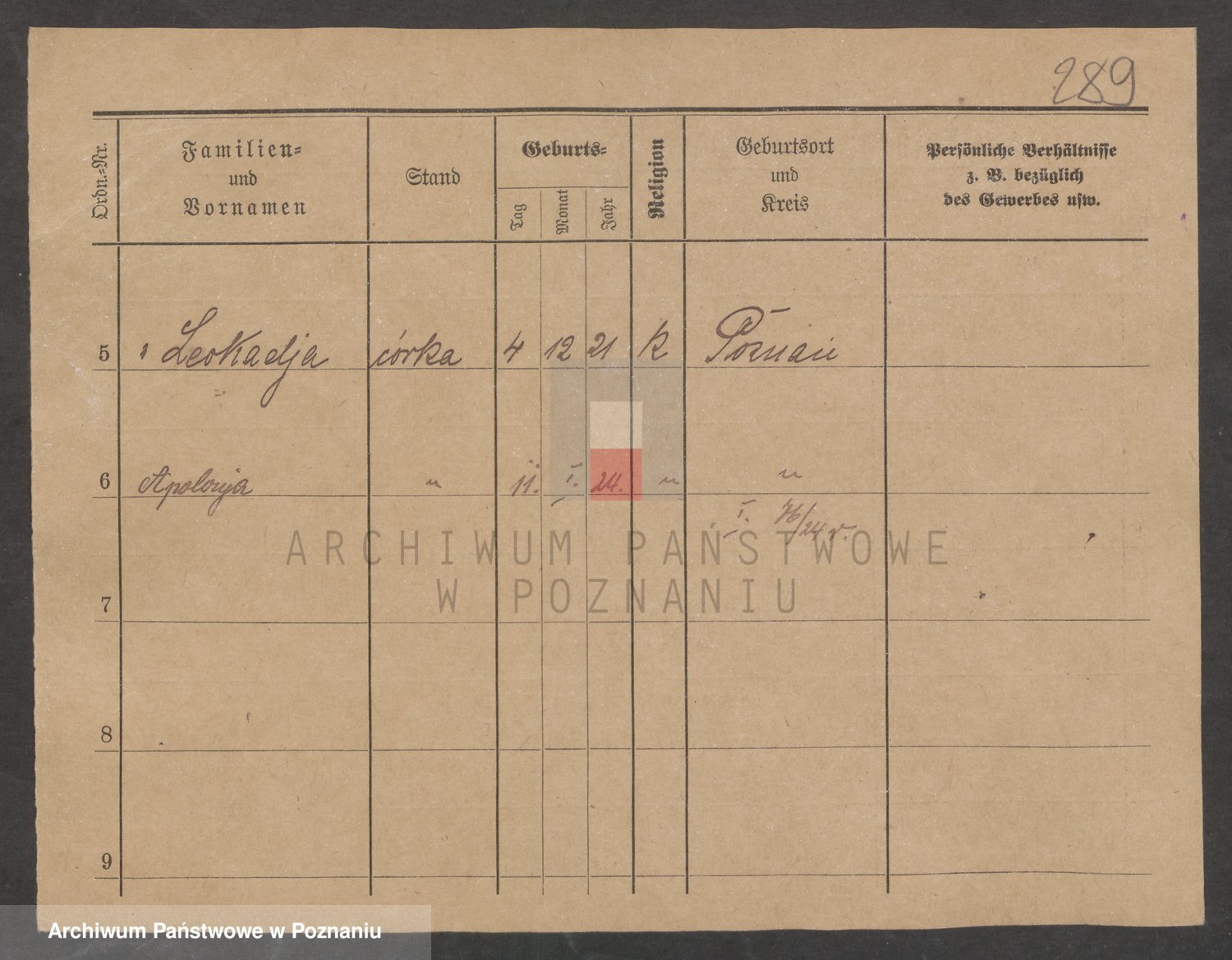 Podgląd karty osobowej dostępny jest po kliknięciu na nazwisko lub ikonkę karty. Można dokonywać powiększenia (ikony na górze) lub przechodzić między kolejnymi skanami (strzałki po bokach).
