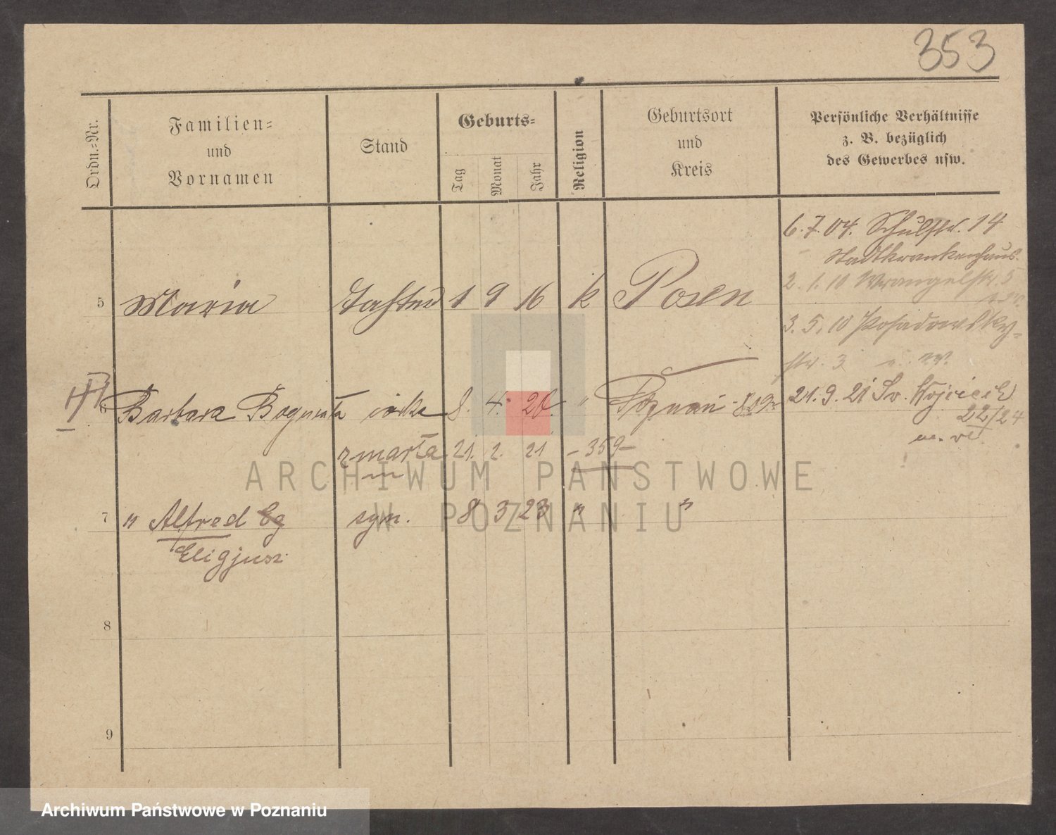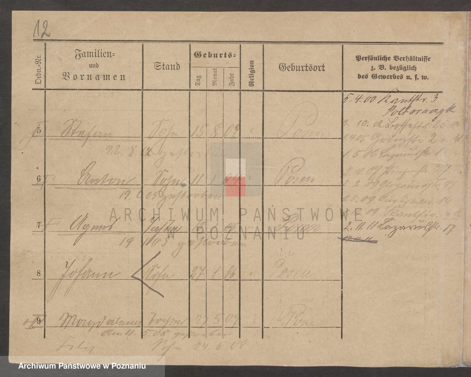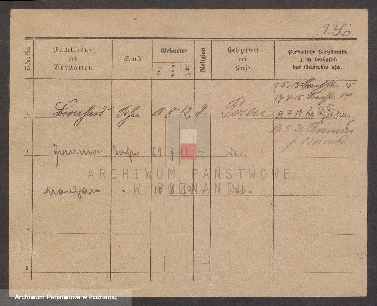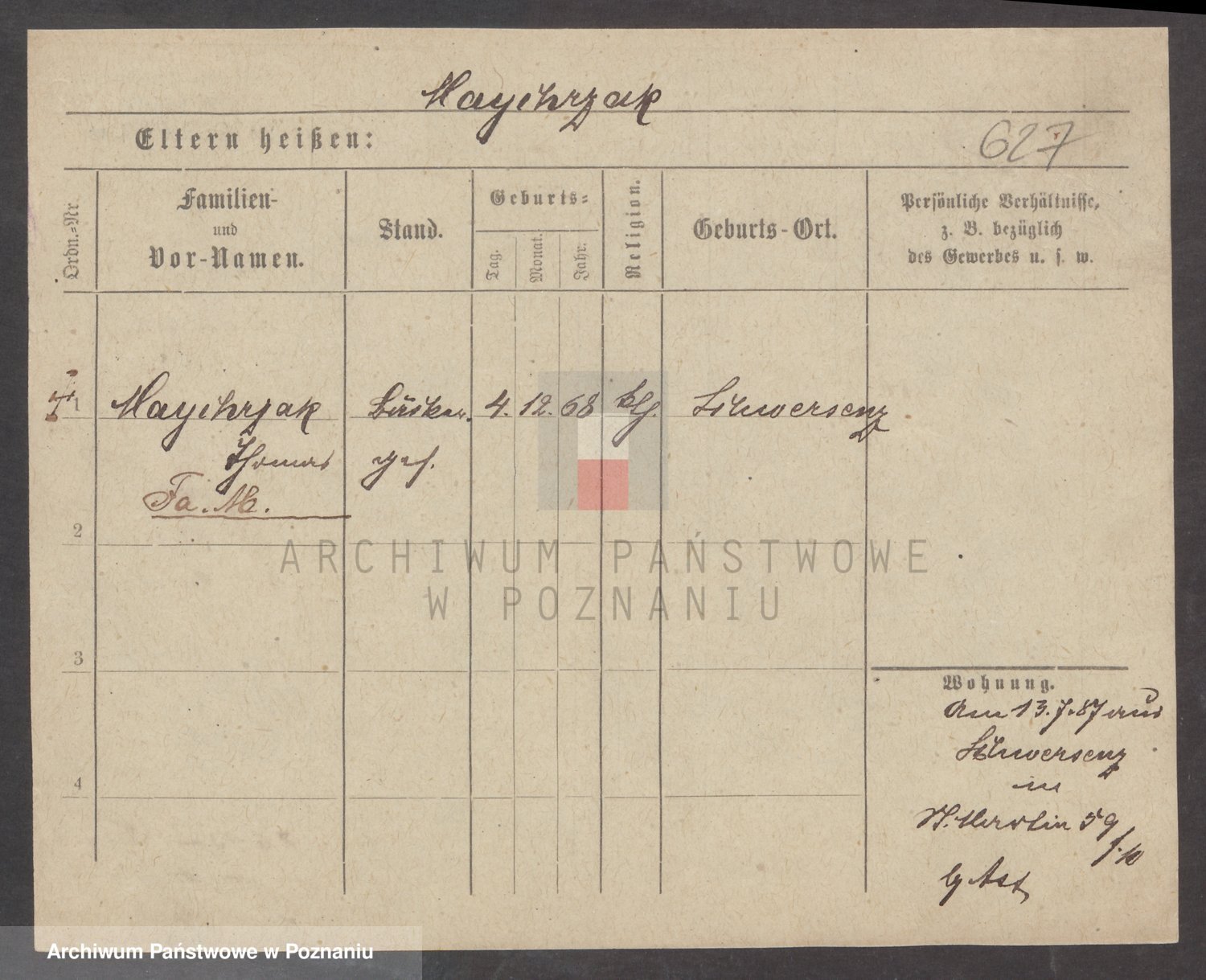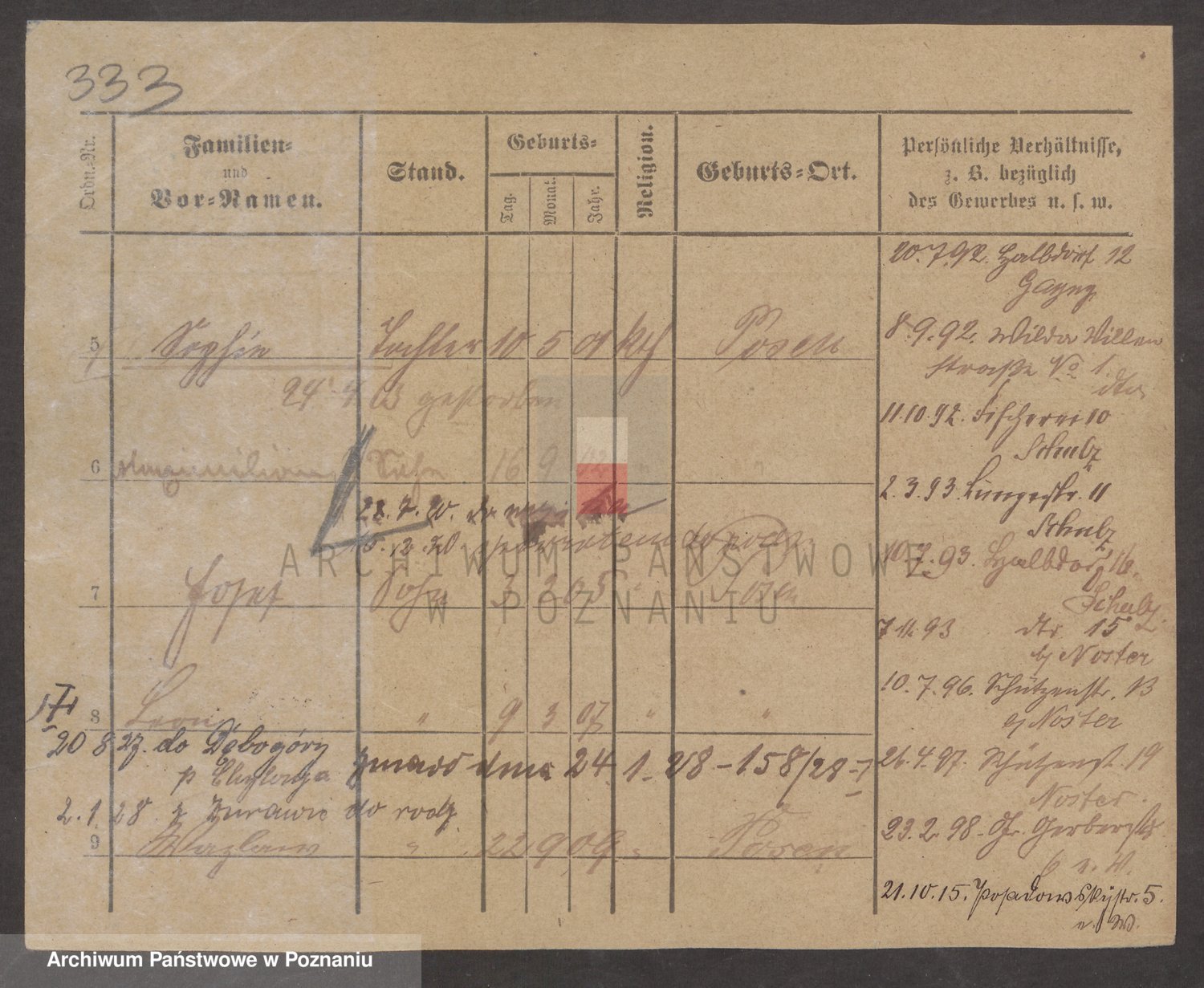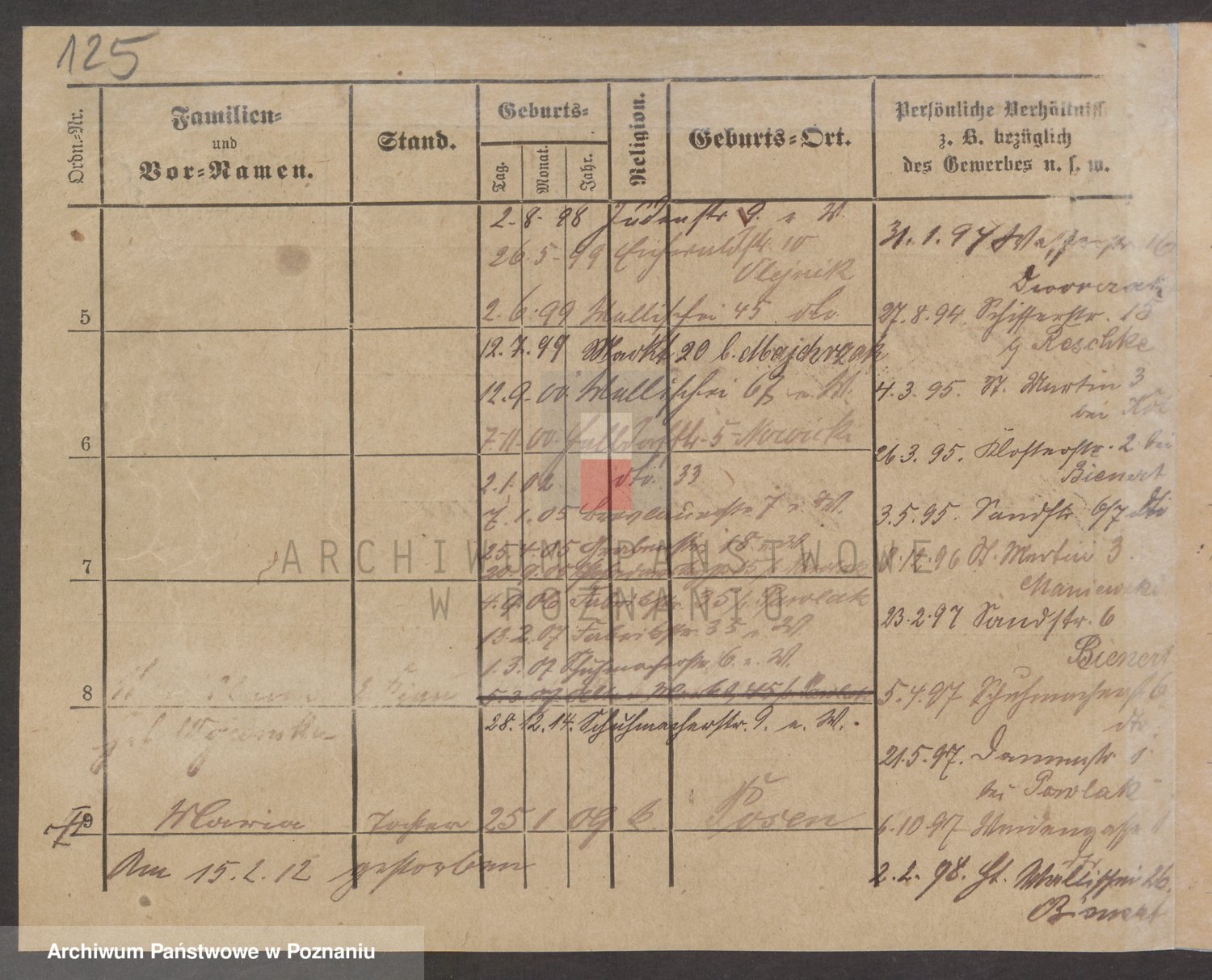 Podgląd karty osobowej dostępny jest po kliknięciu na nazwisko lub ikonkę karty. Można dokonywać powiększenia (ikony na górze) lub przechodzić między kolejnymi skanami (strzałki po bokach).