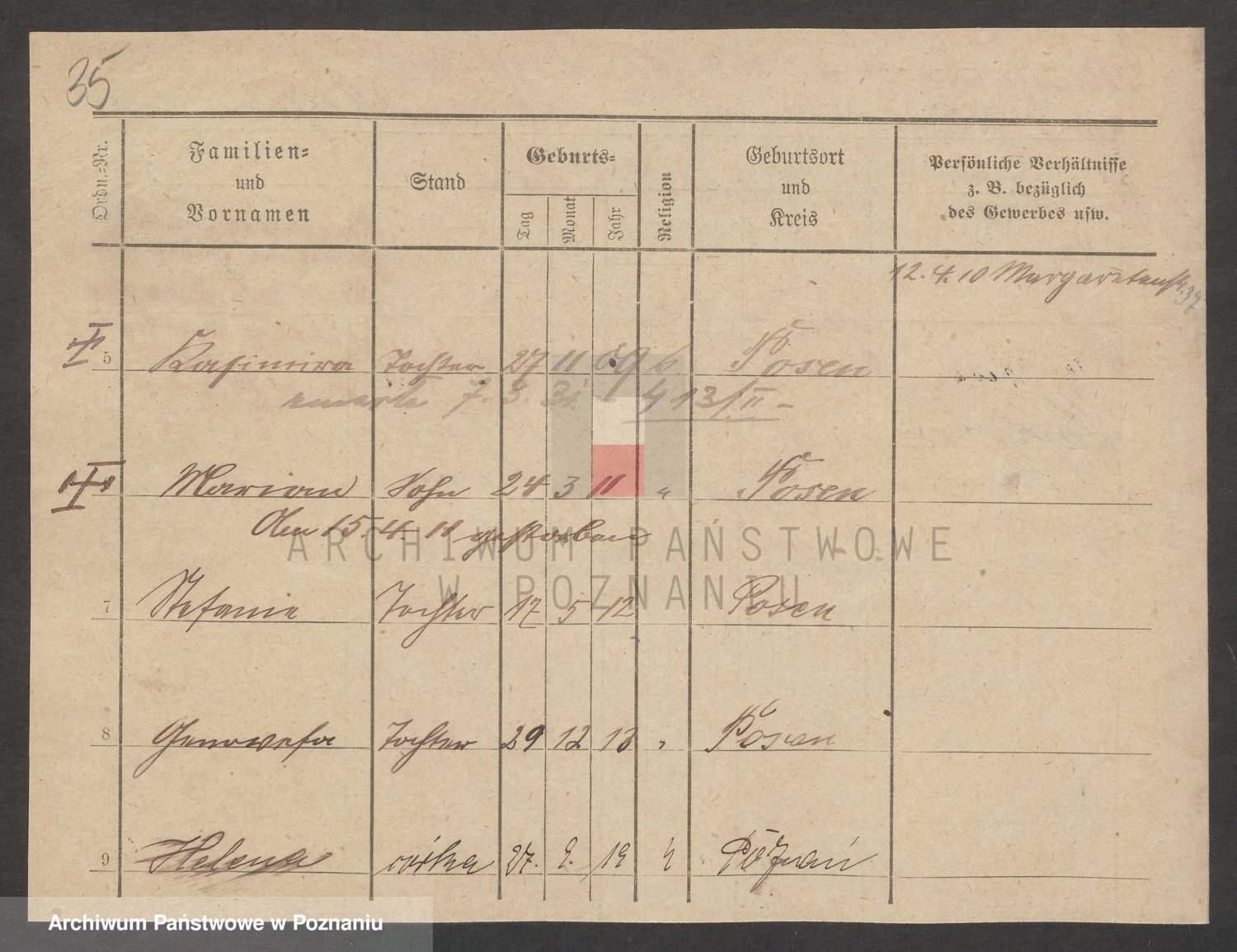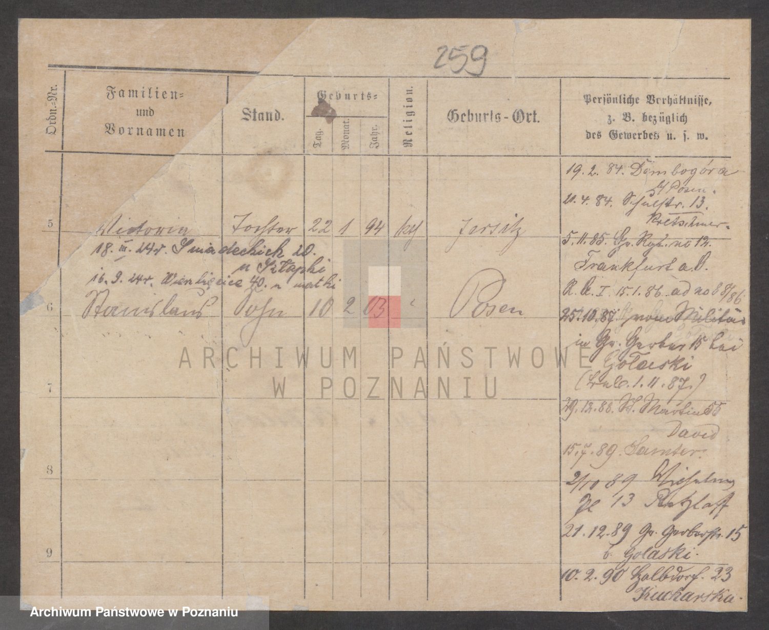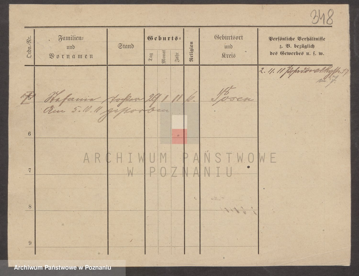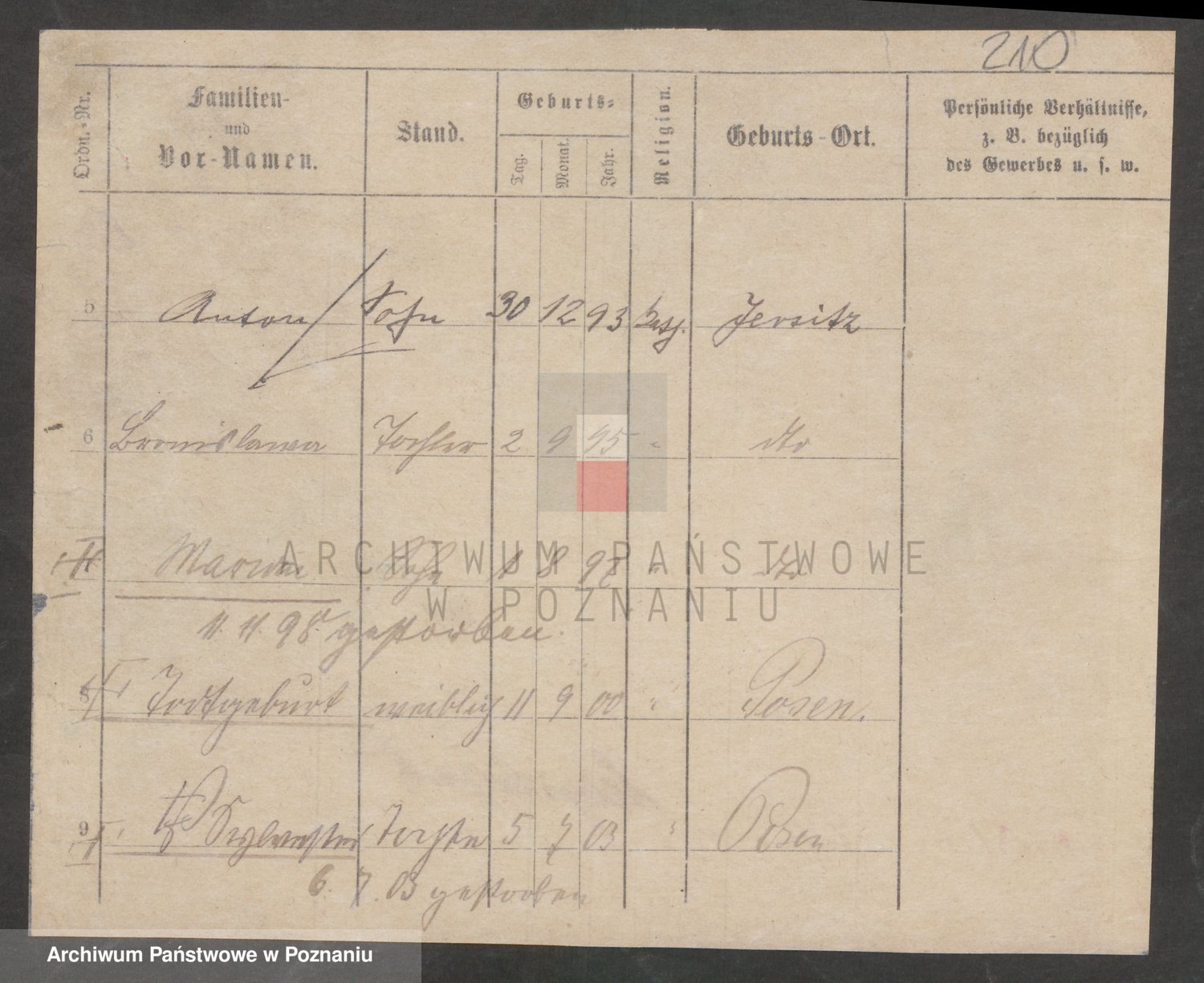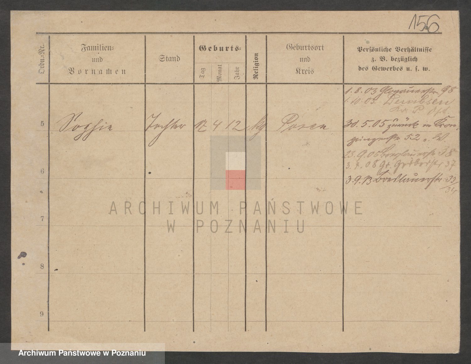 Podgląd karty osobowej dostępny jest po kliknięciu na nazwisko lub ikonkę karty. Można dokonywać powiększenia (ikony na górze) lub przechodzić między kolejnymi skanami (strzałki po bokach).