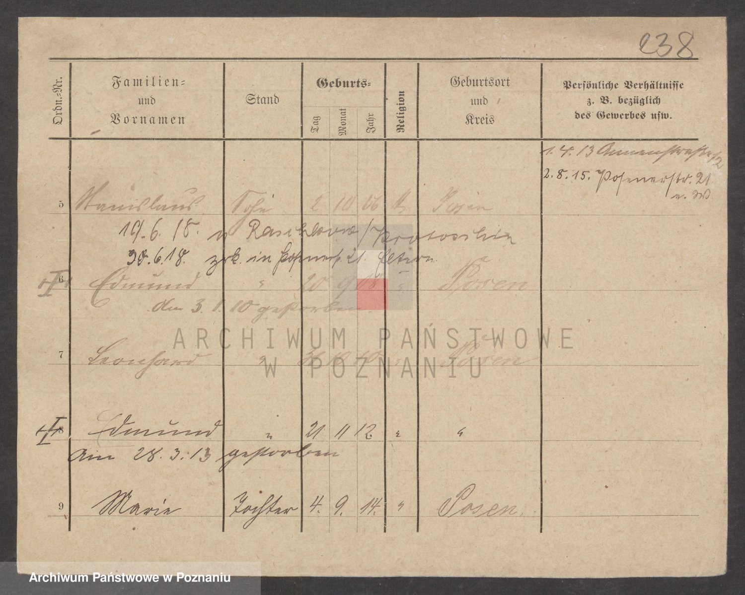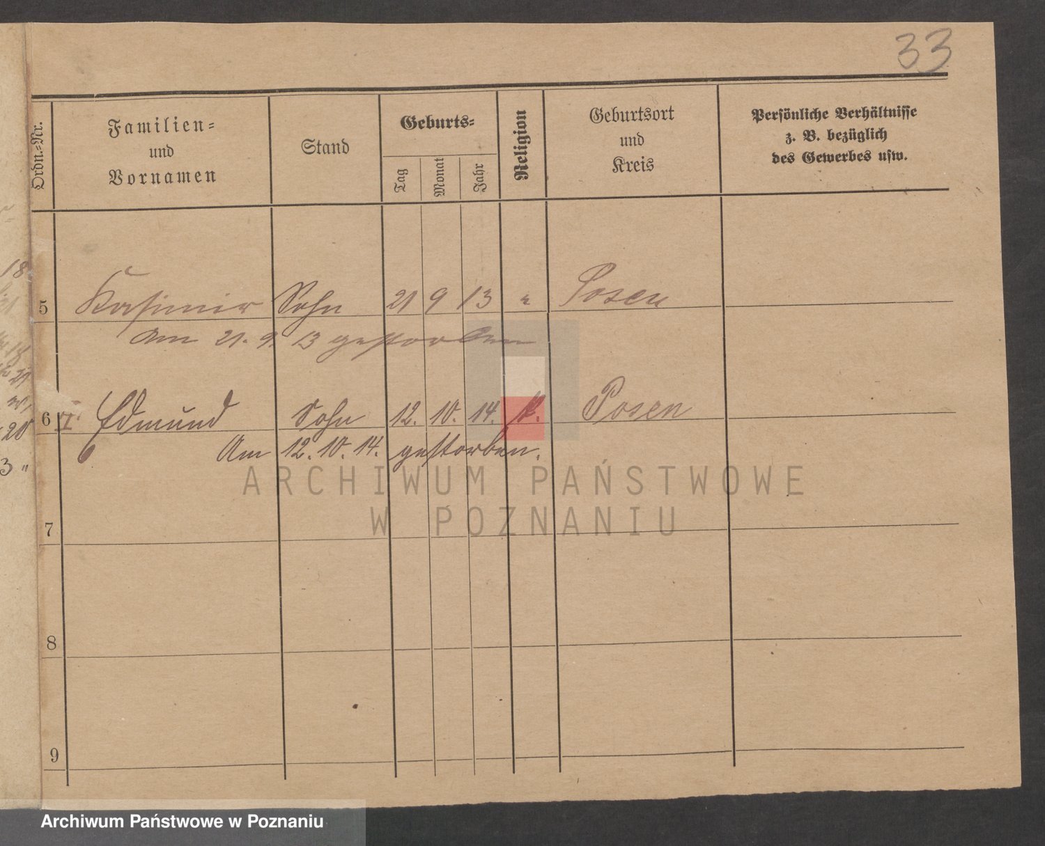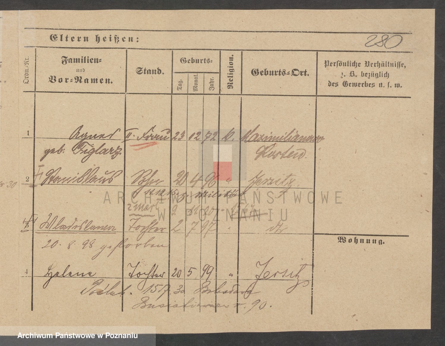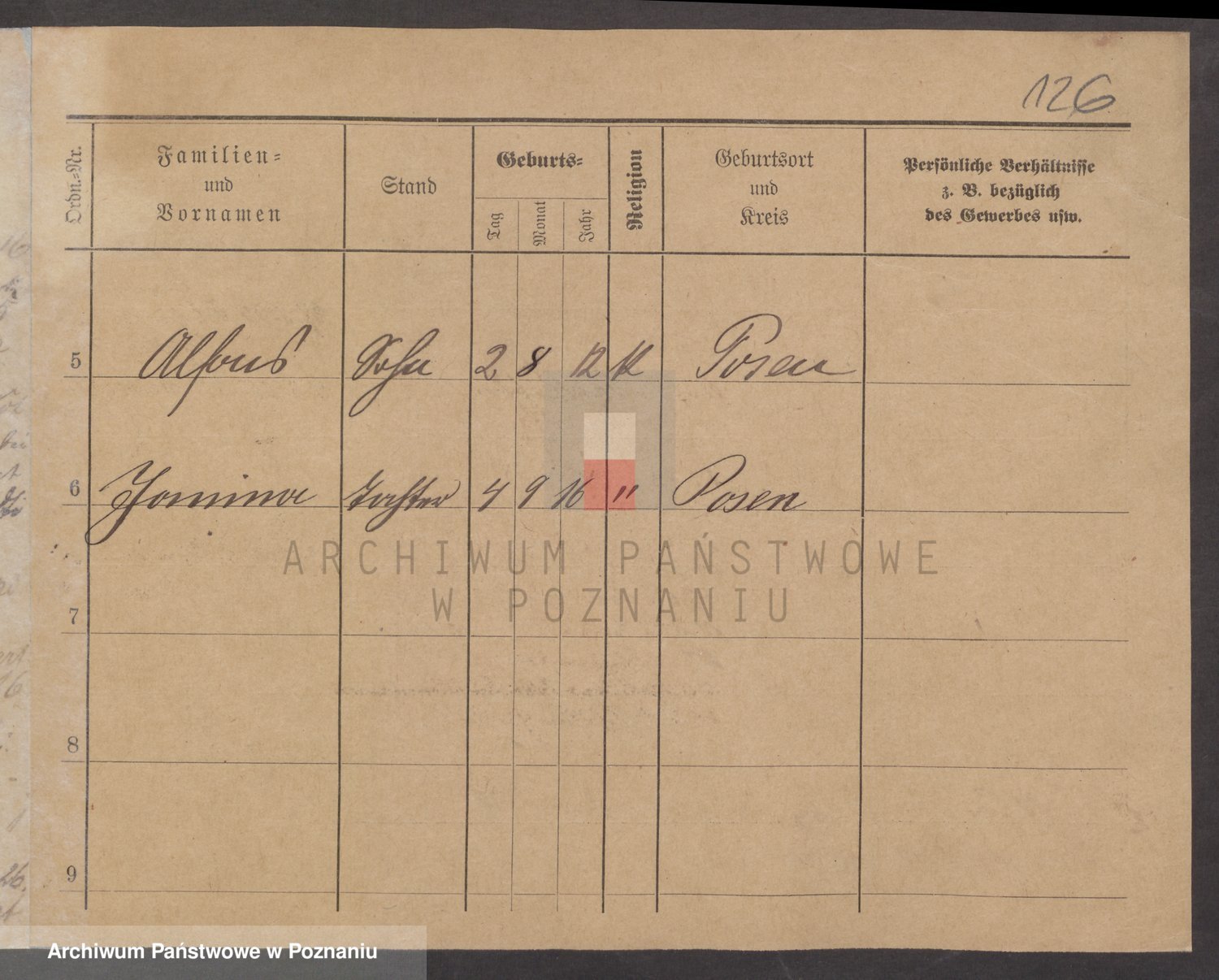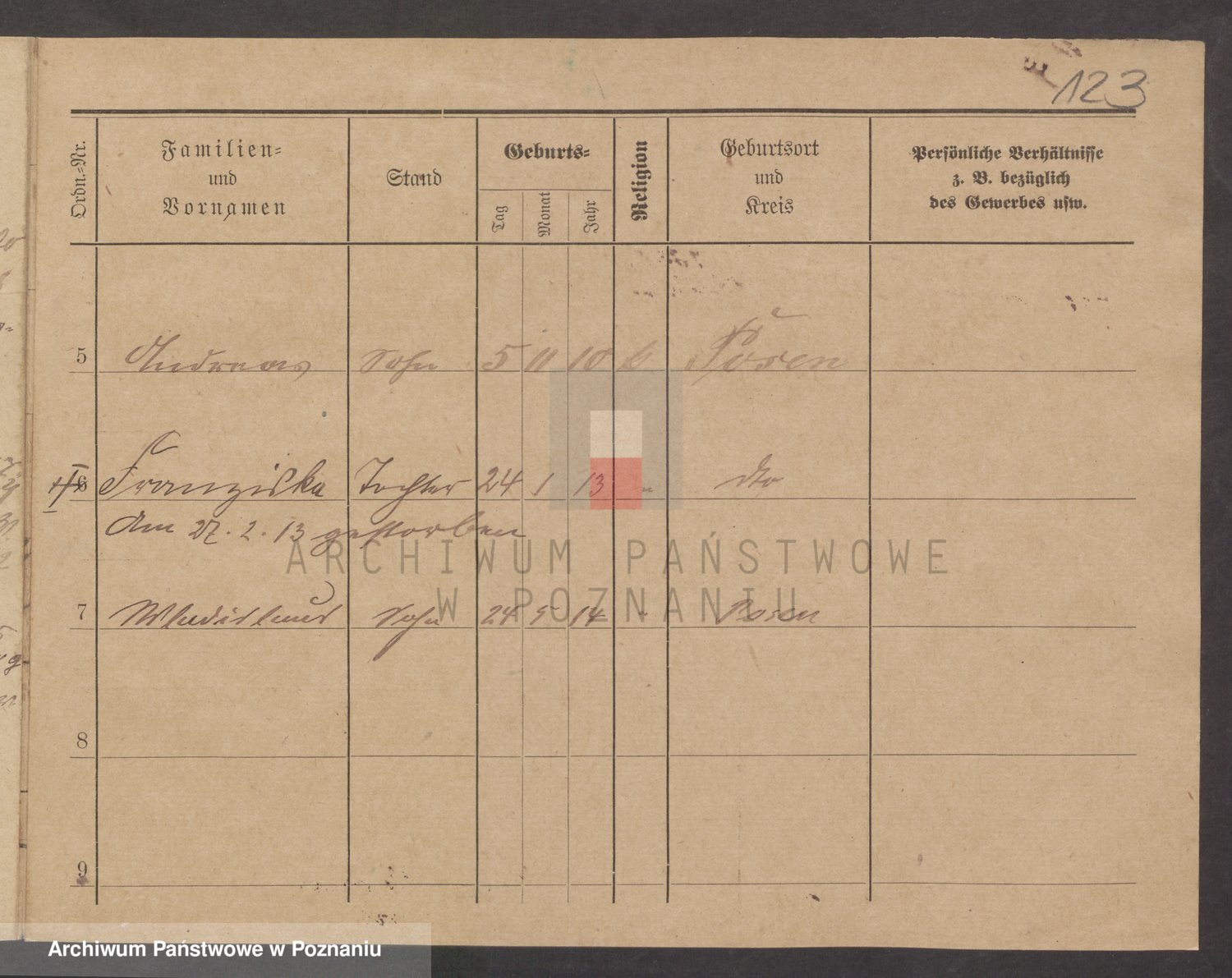 Podgląd karty osobowej dostępny jest po kliknięciu na nazwisko lub ikonkę karty. Można dokonywać powiększenia (ikony na górze) lub przechodzić między kolejnymi skanami (strzałki po bokach).