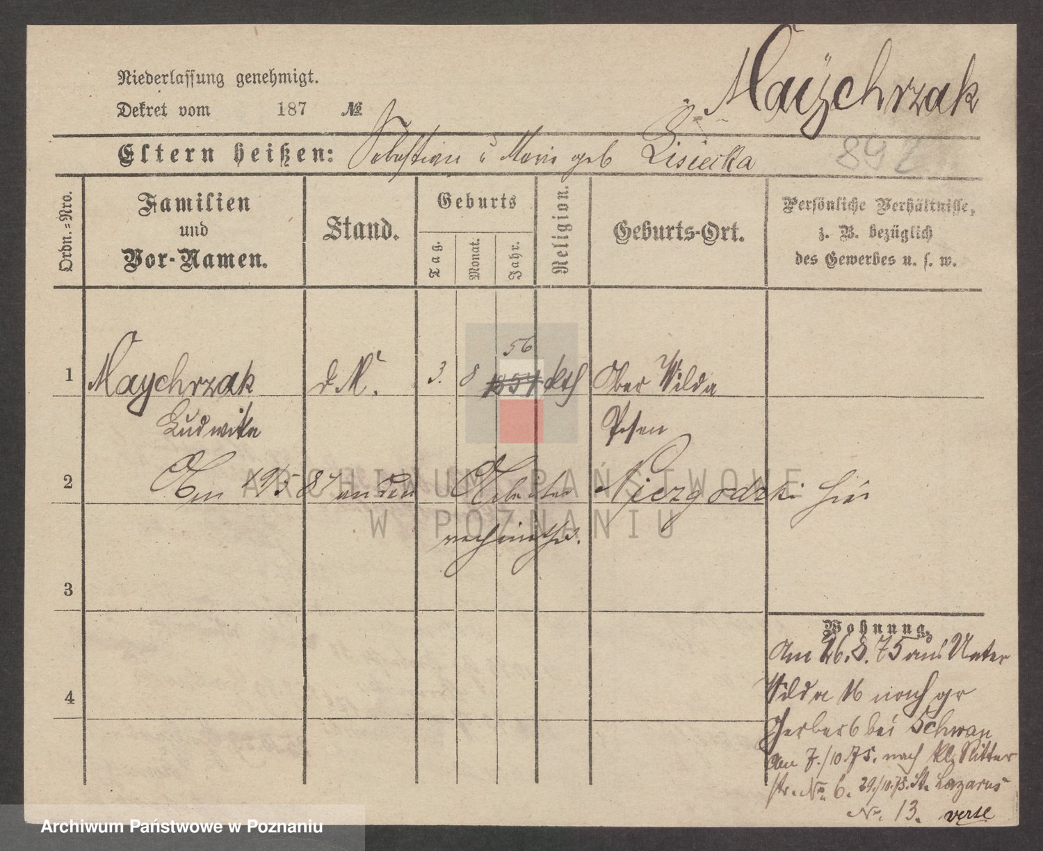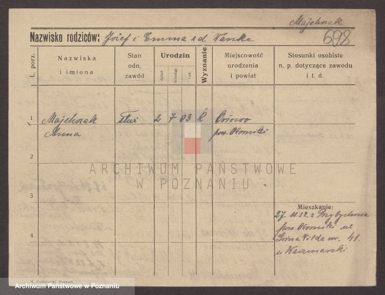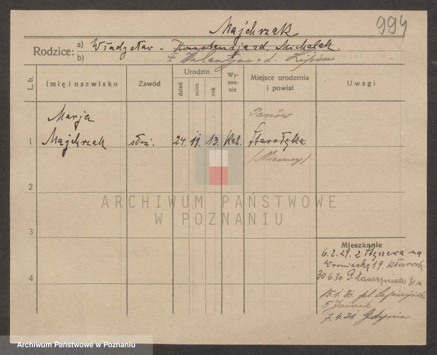 Majchrzak zd. Poltoraczyk, Marie