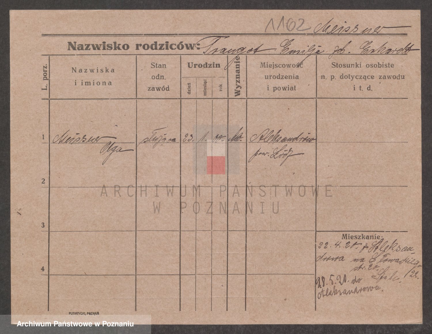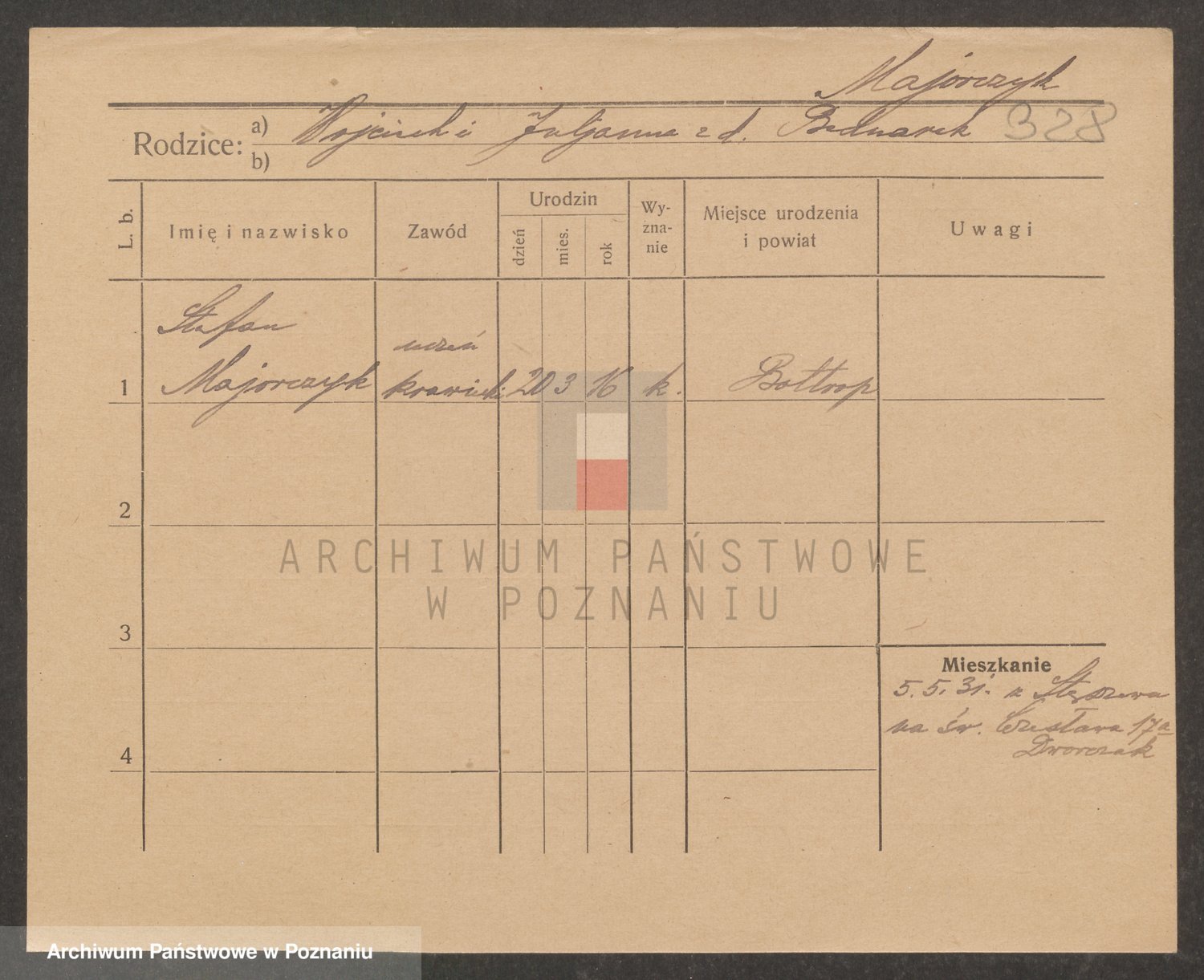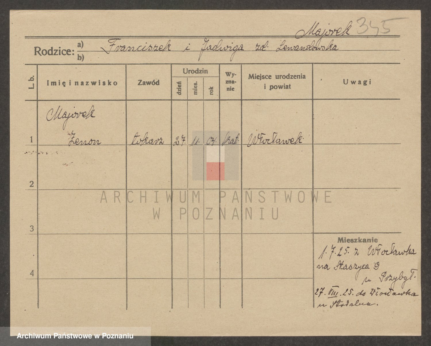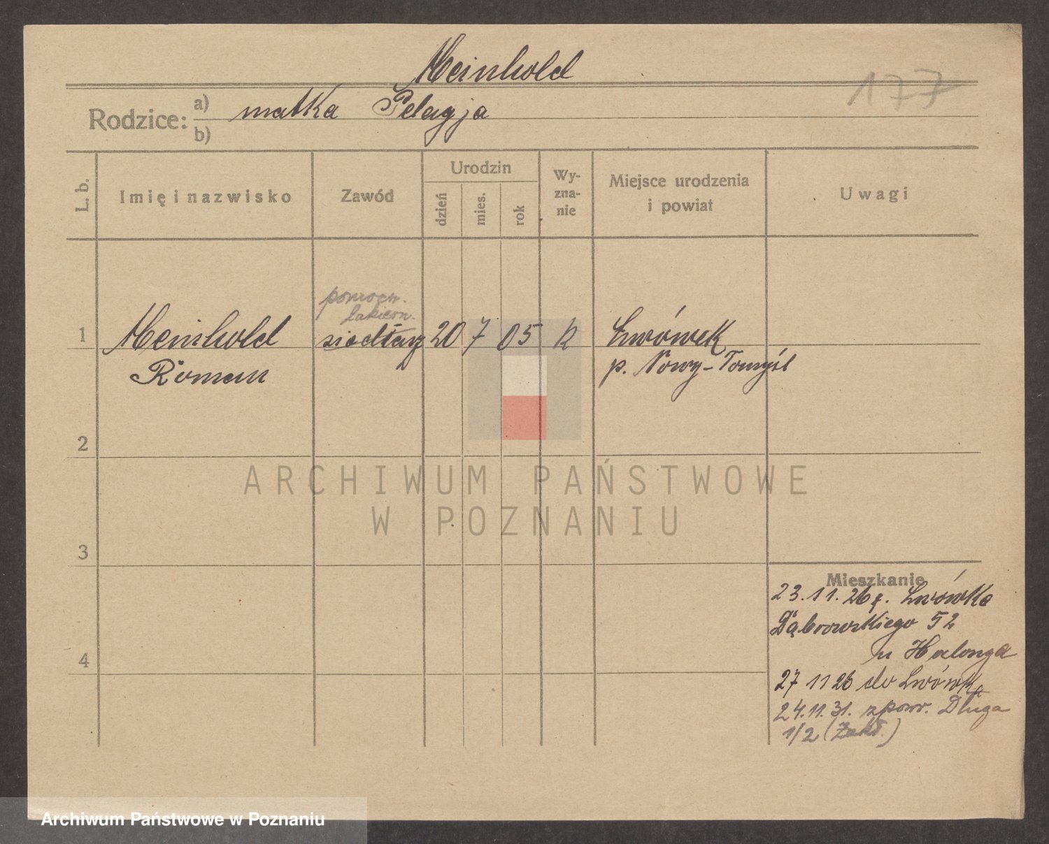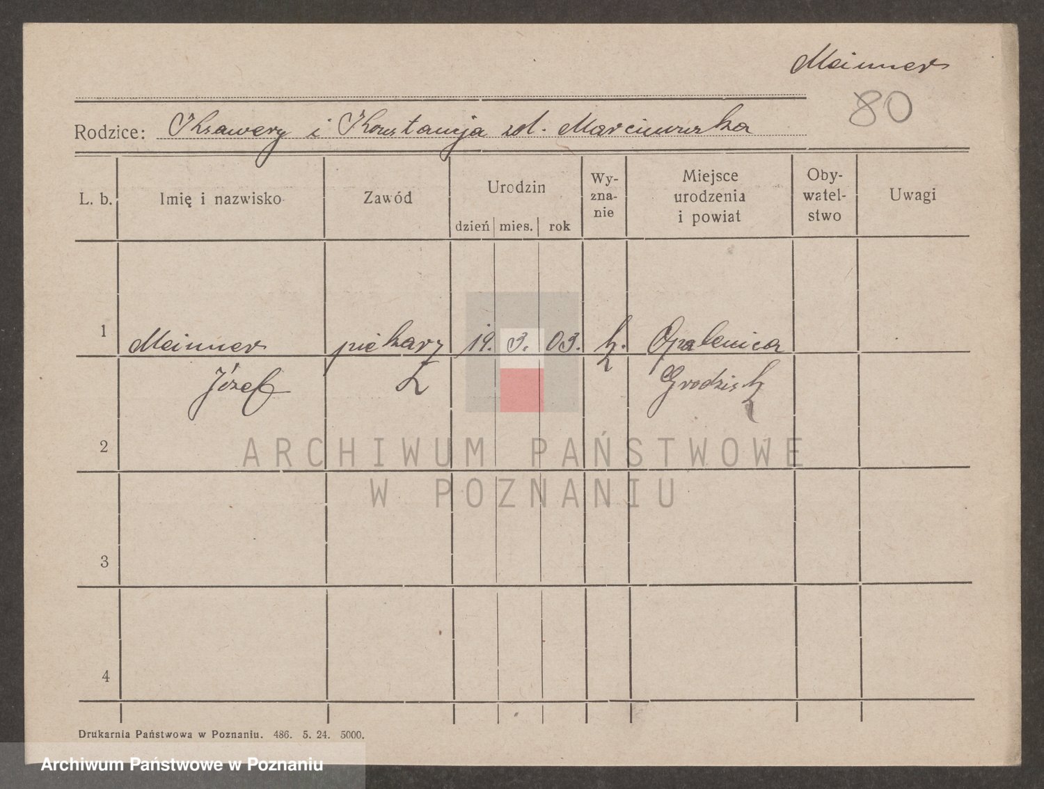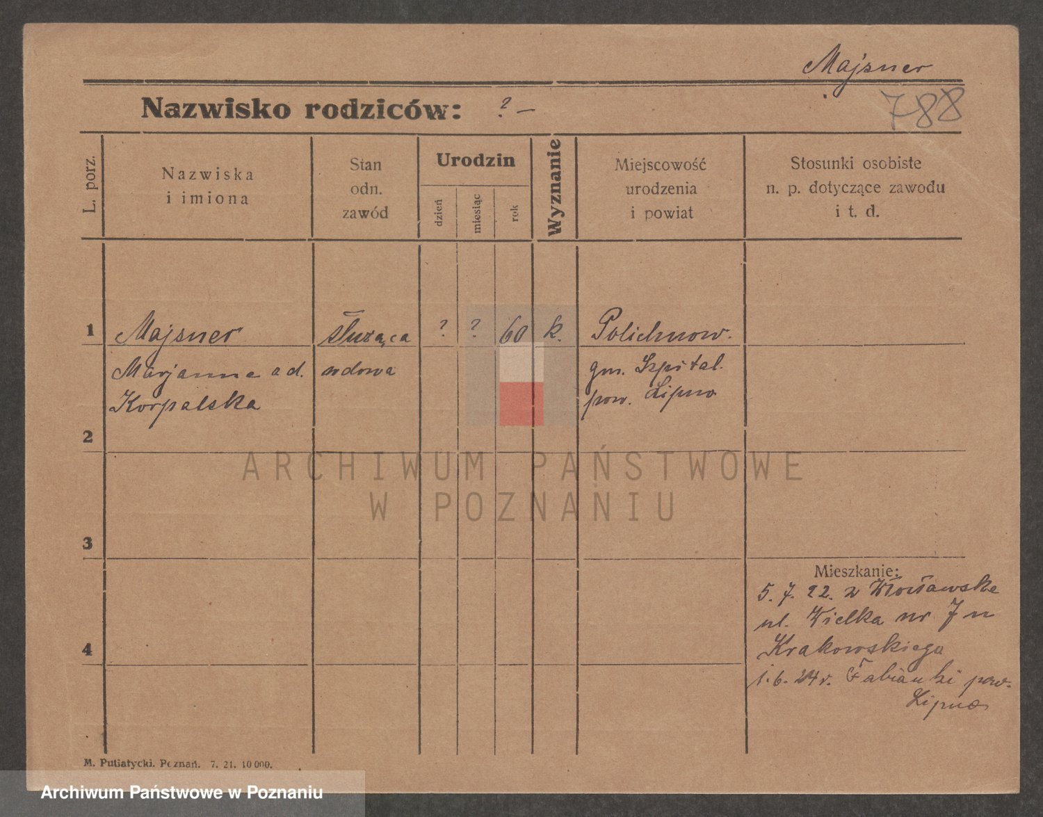 Podgląd karty osobowej dostępny jest po kliknięciu na nazwisko lub ikonkę karty. Można dokonywać powiększenia (ikony na górze) lub przechodzić między kolejnymi skanami (strzałki po bokach).