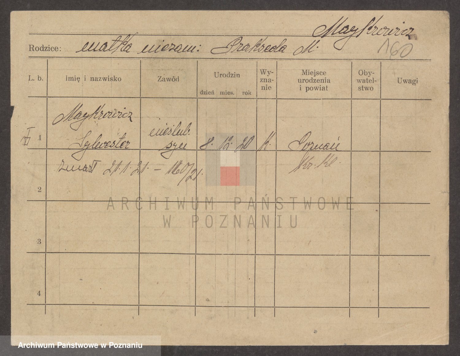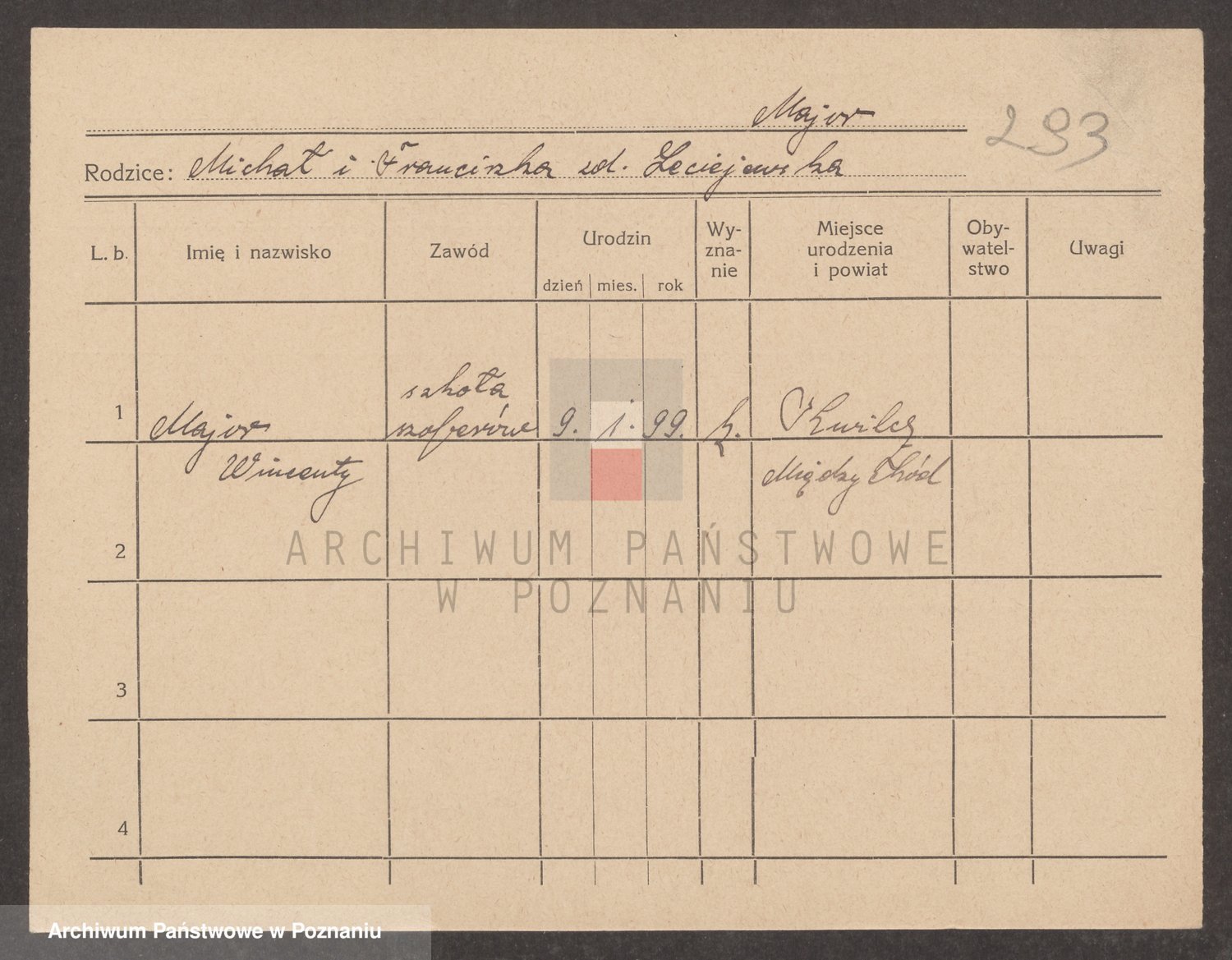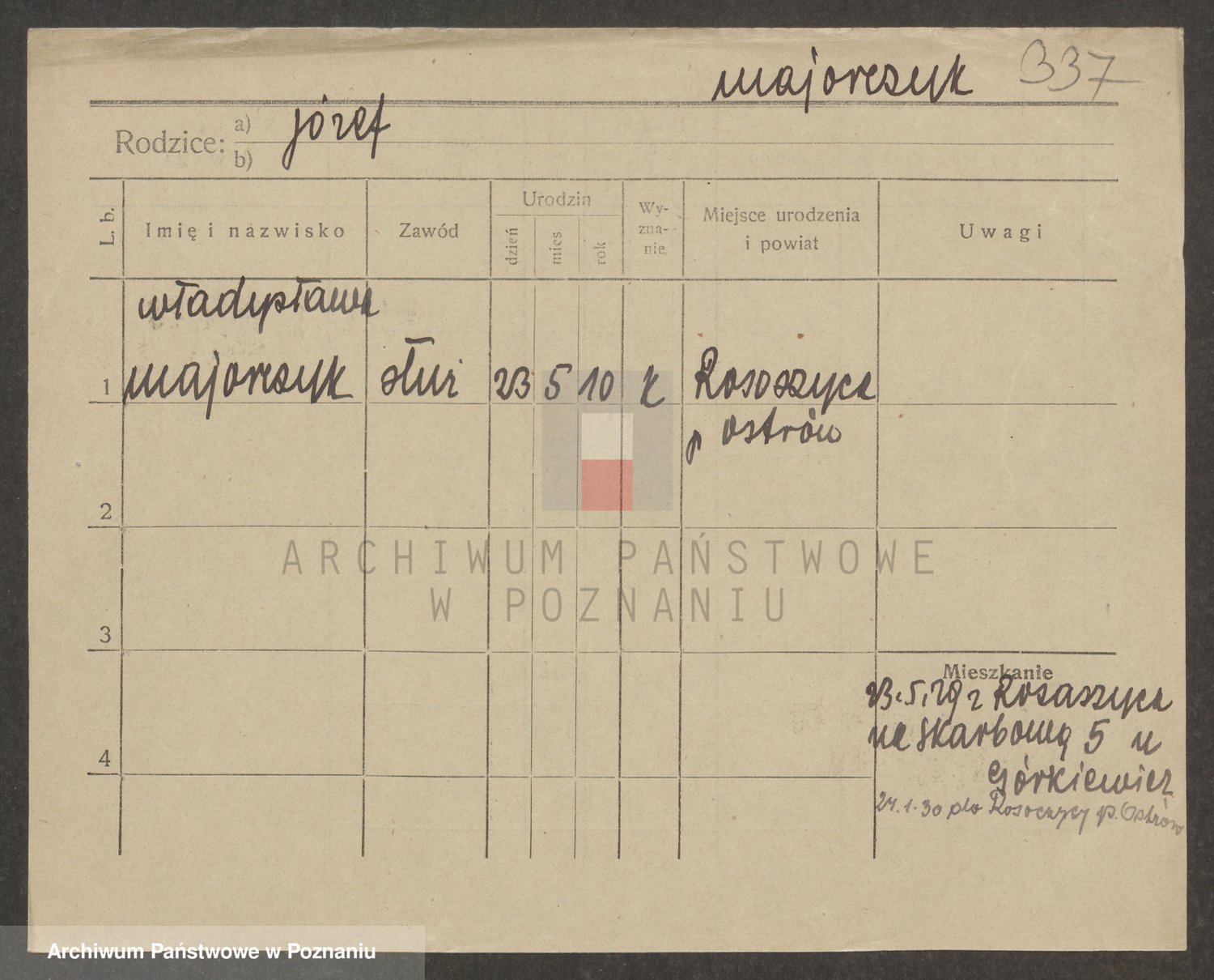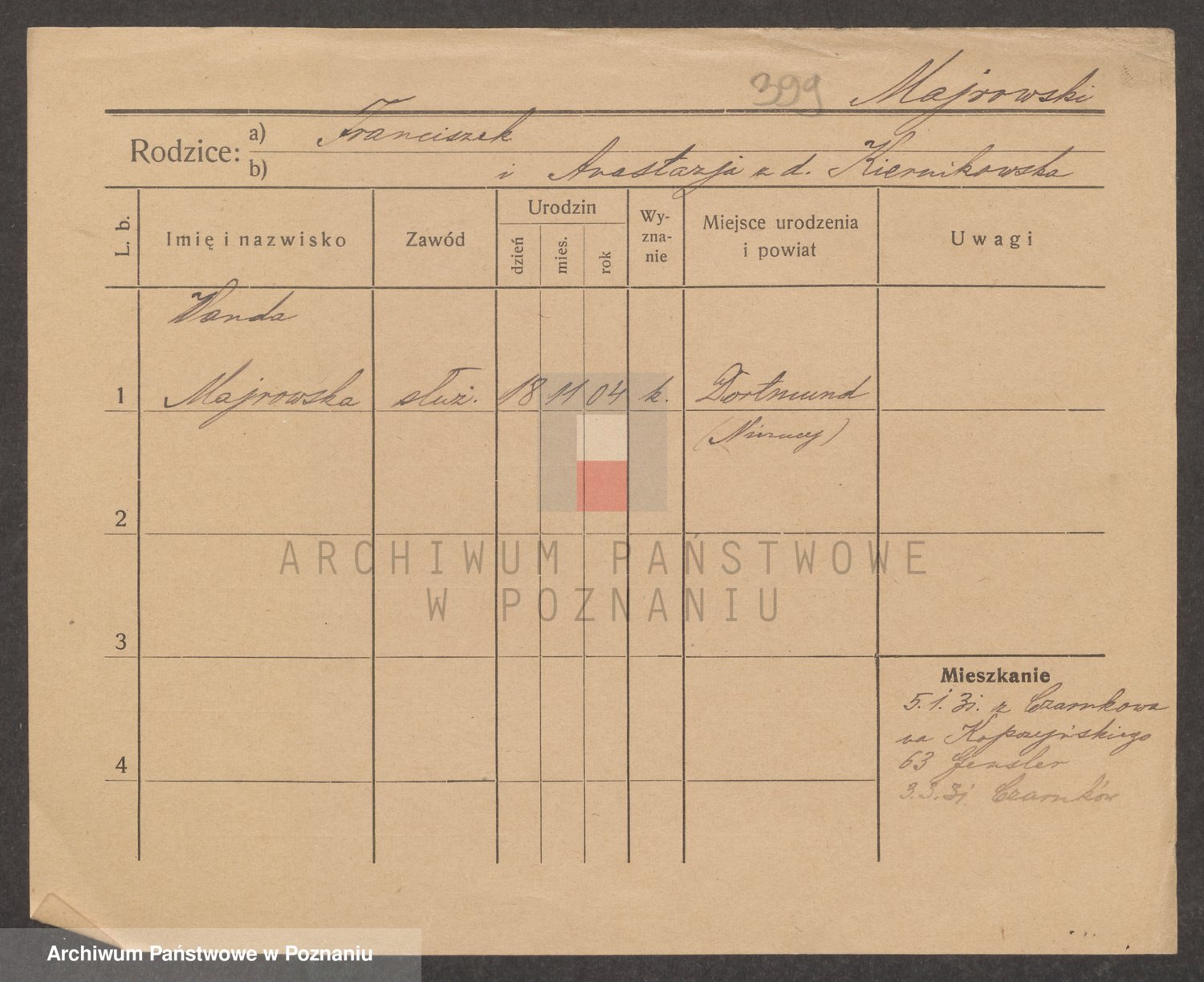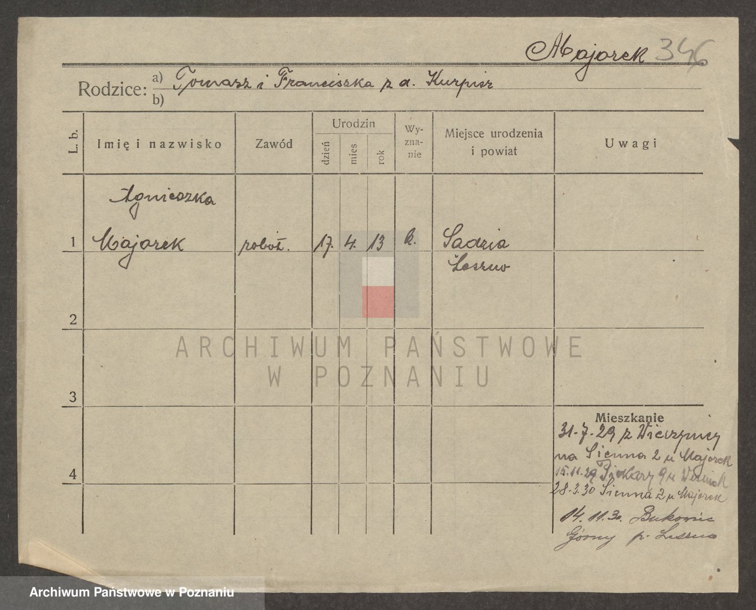 Podgląd karty osobowej dostępny jest po kliknięciu na nazwisko lub ikonkę karty. Można dokonywać powiększenia (ikony na górze) lub przechodzić między kolejnymi skanami (strzałki po bokach).