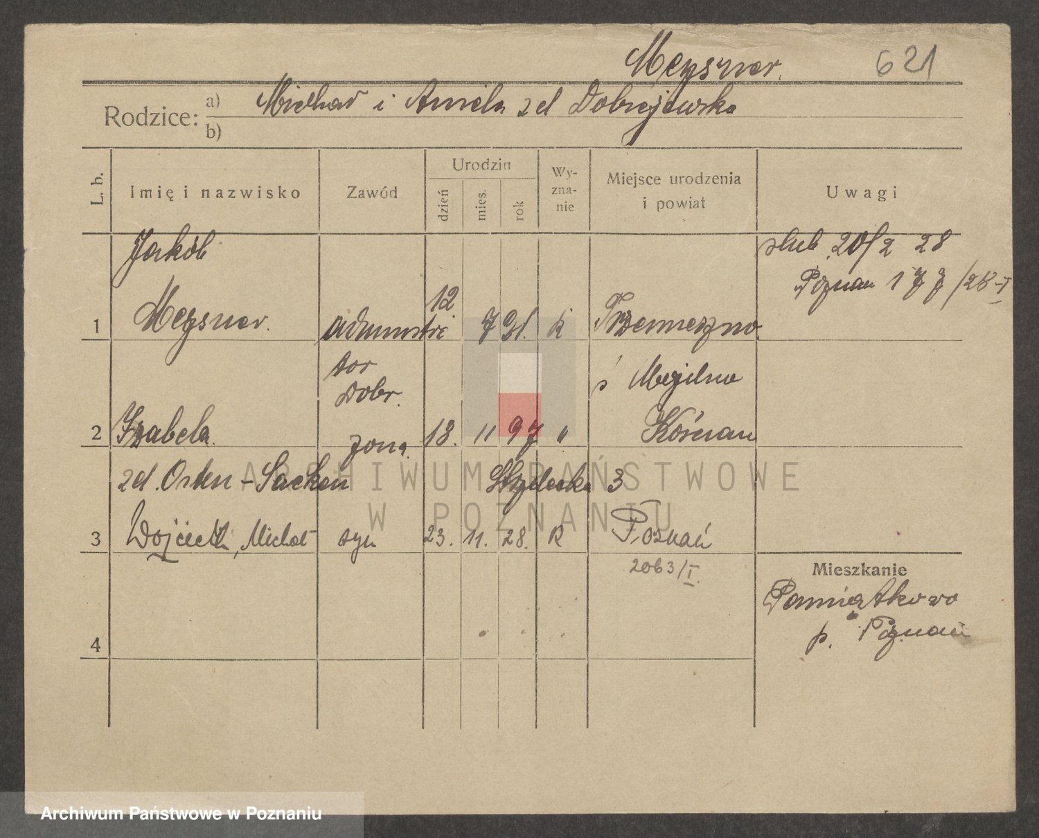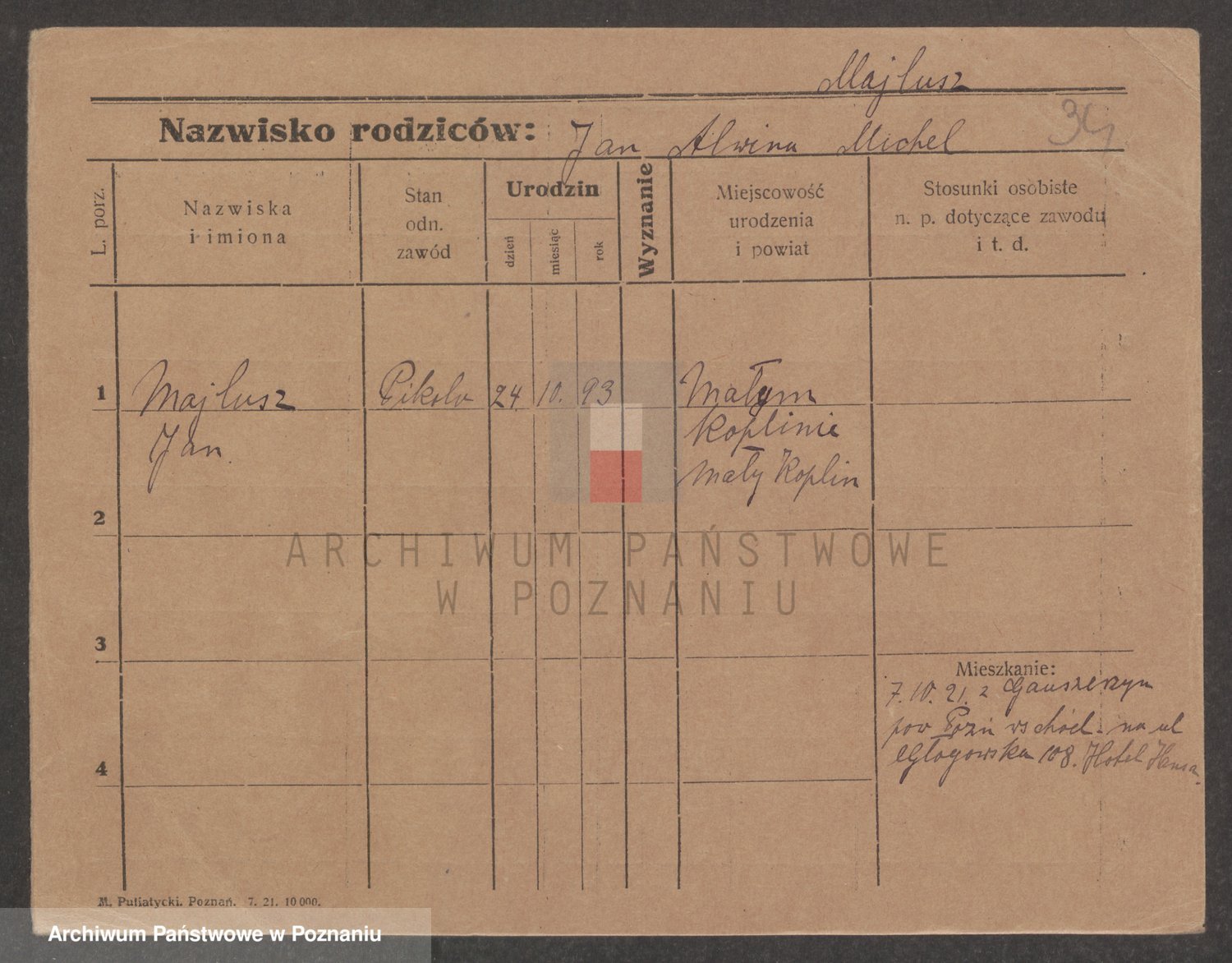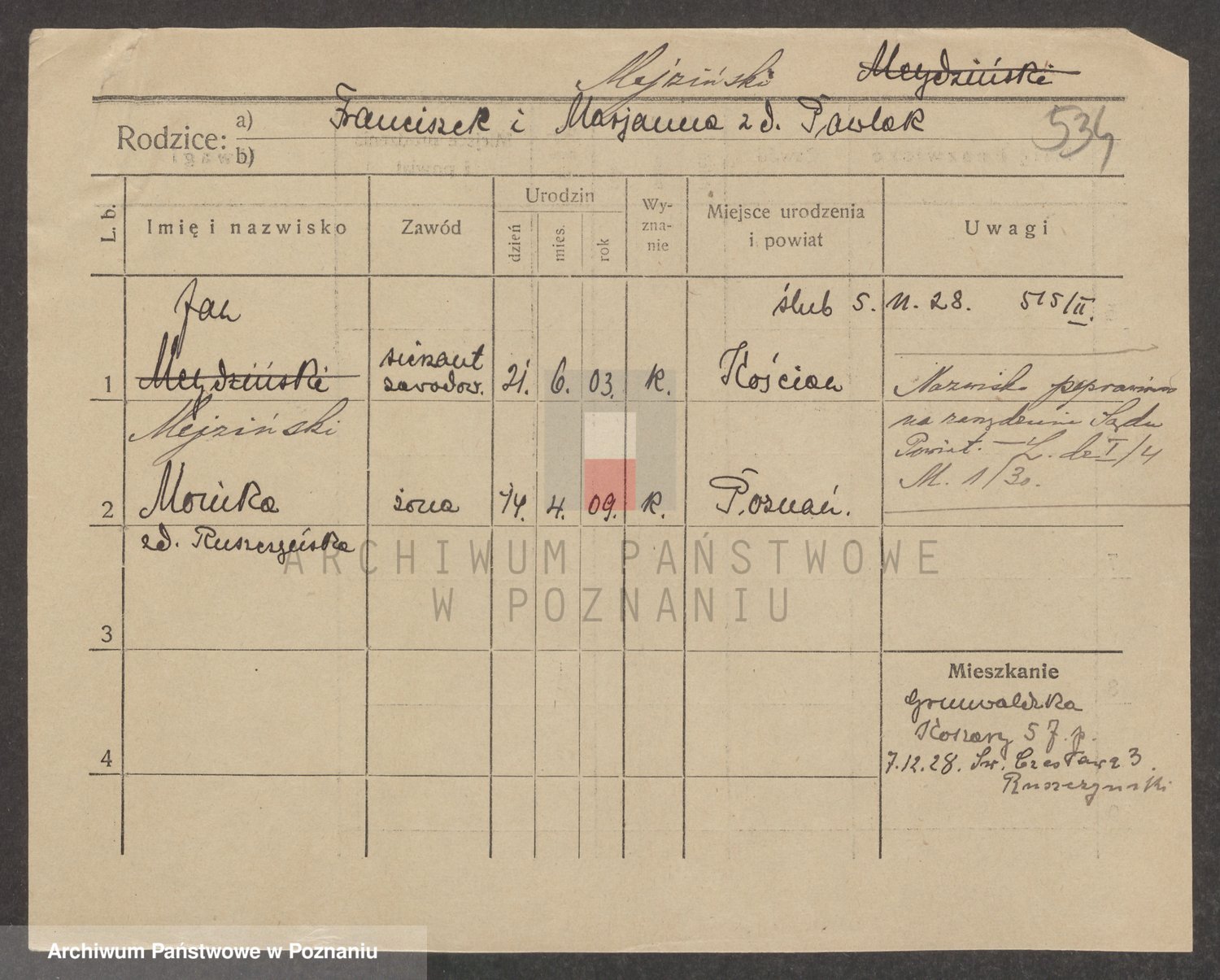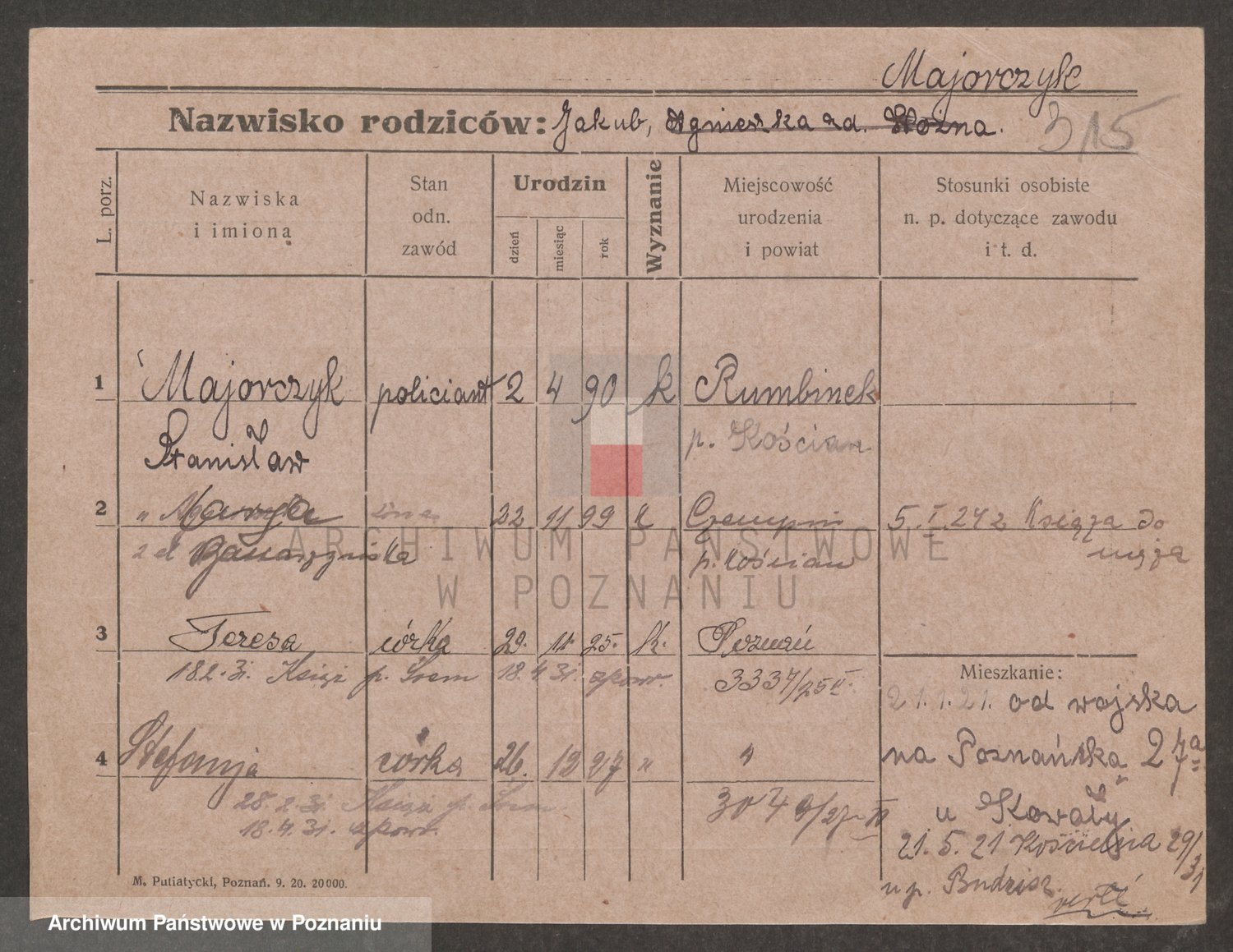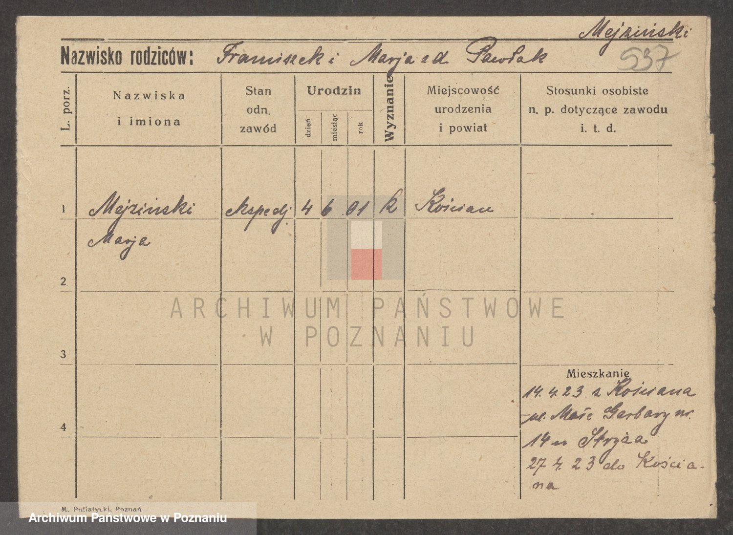 Podgląd karty osobowej dostępny jest po kliknięciu na nazwisko lub ikonkę karty. Można dokonywać powiększenia (ikony na górze) lub przechodzić między kolejnymi skanami (strzałki po bokach).