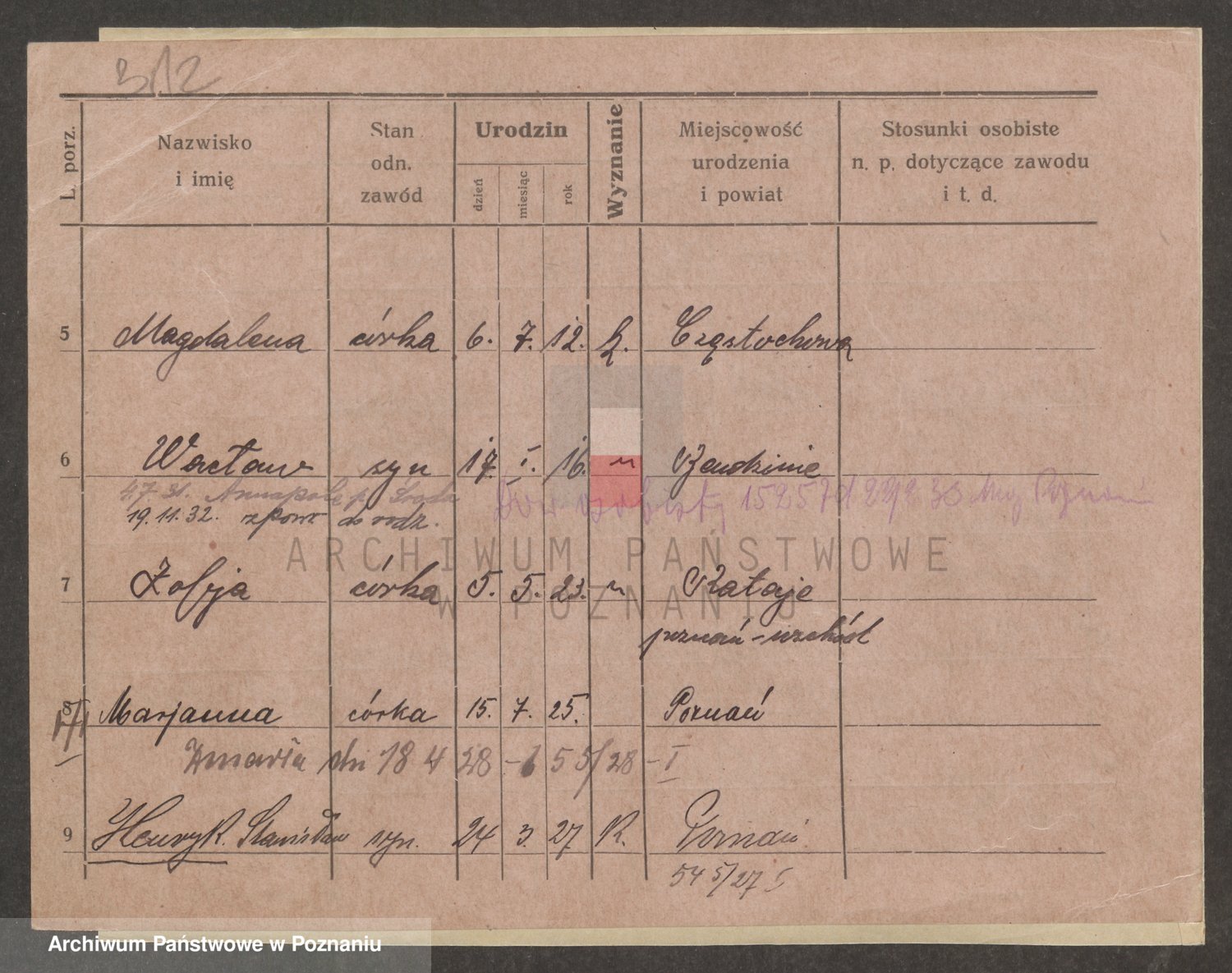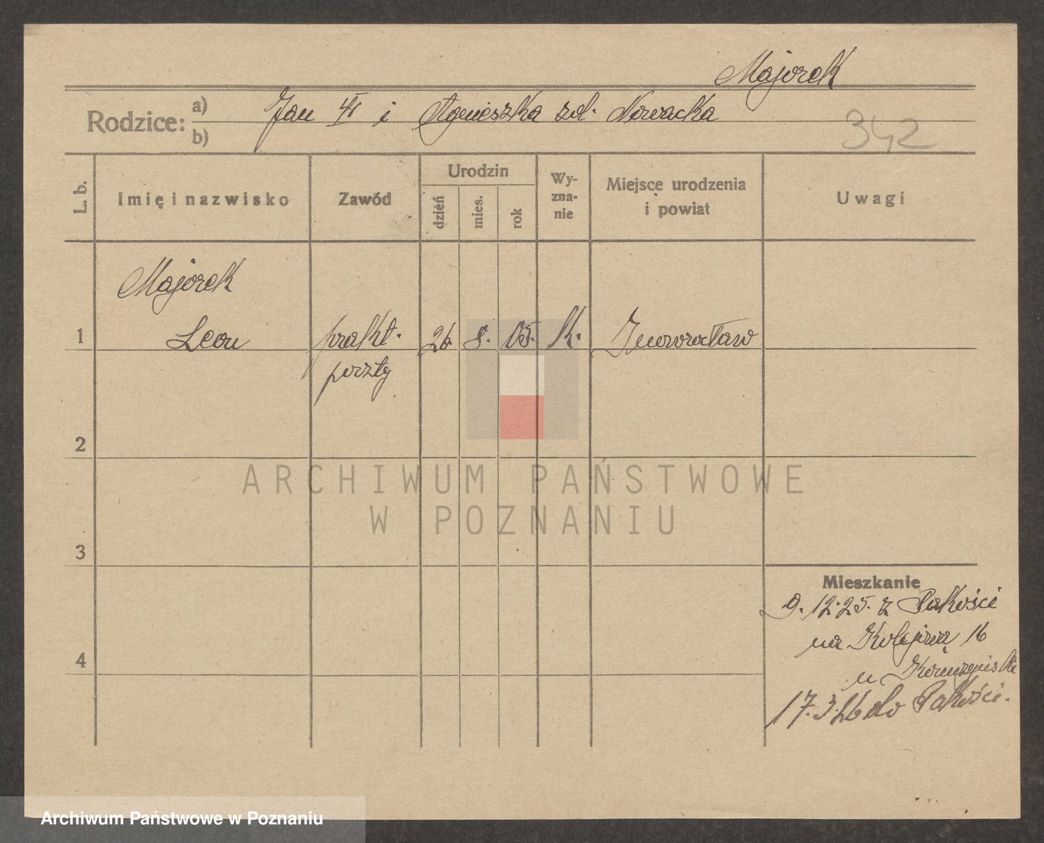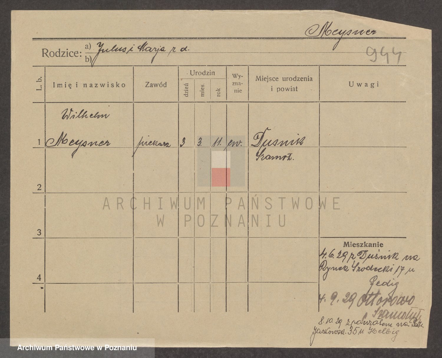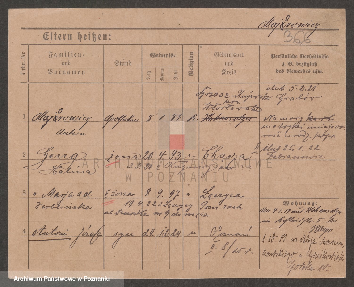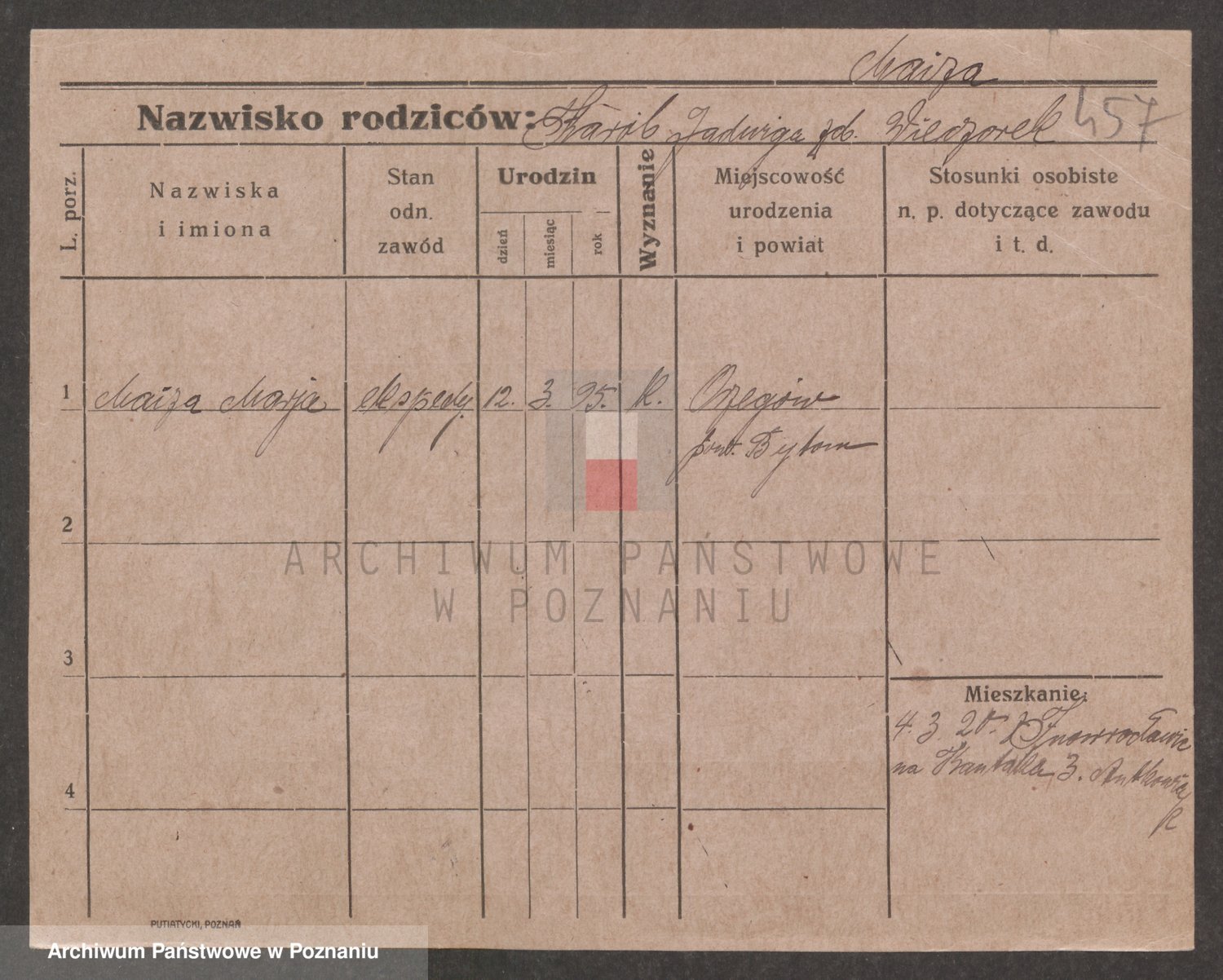 Podgląd karty osobowej dostępny jest po kliknięciu na nazwisko lub ikonkę karty. Można dokonywać powiększenia (ikony na górze) lub przechodzić między kolejnymi skanami (strzałki po bokach).