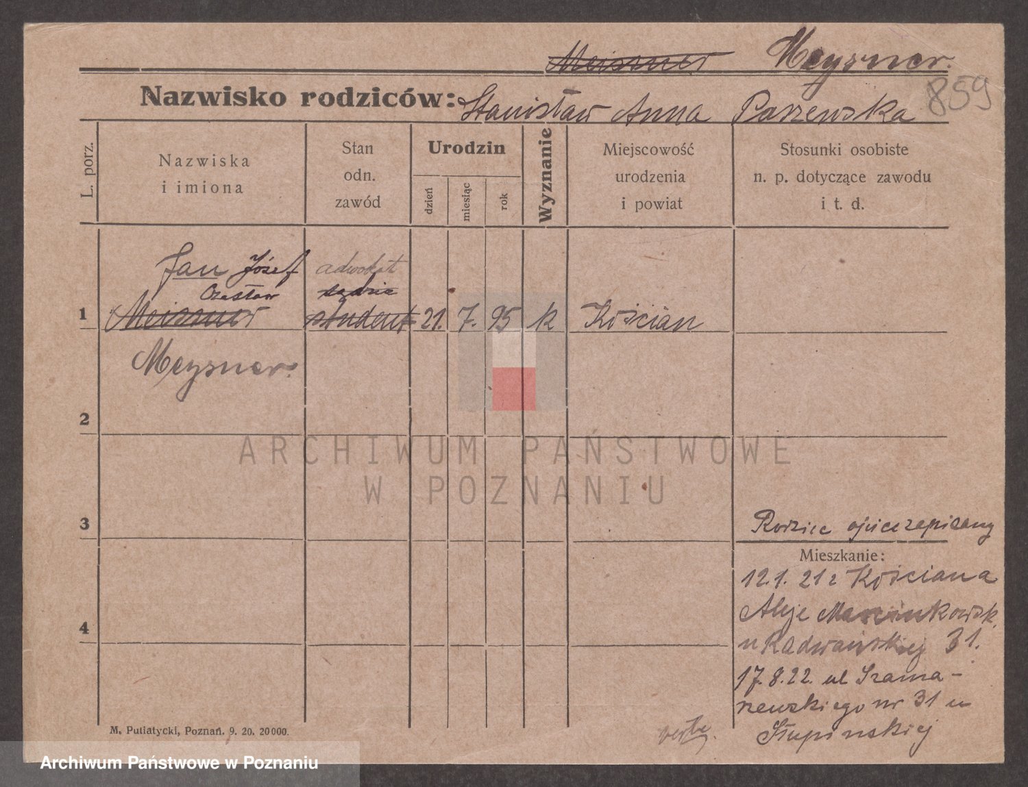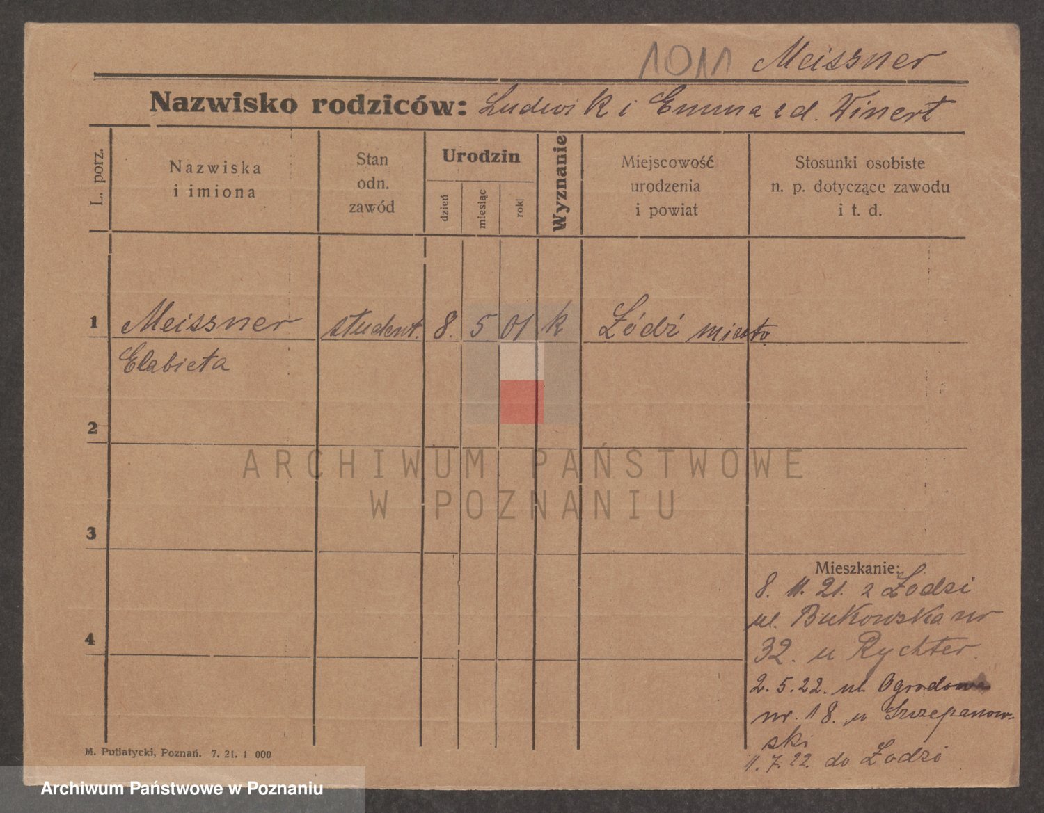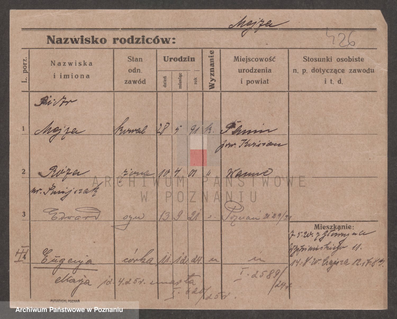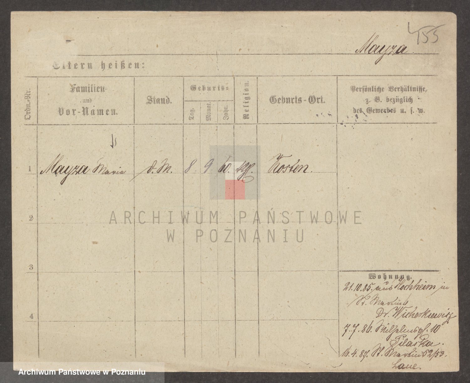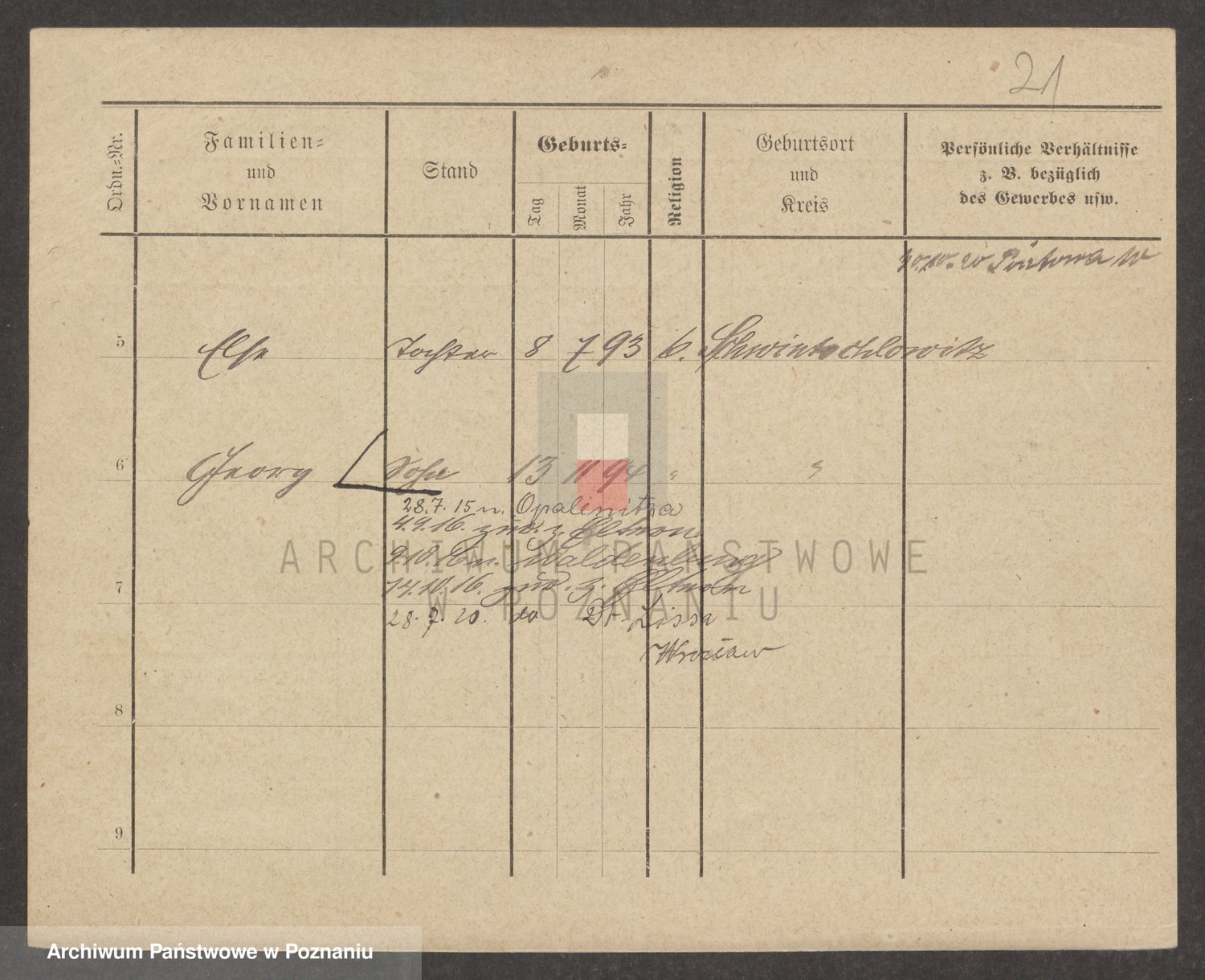Podgląd karty osobowej dostępny jest po kliknięciu na nazwisko lub ikonkę karty. Można dokonywać powiększenia (ikony na górze) lub przechodzić między kolejnymi skanami (strzałki po bokach).