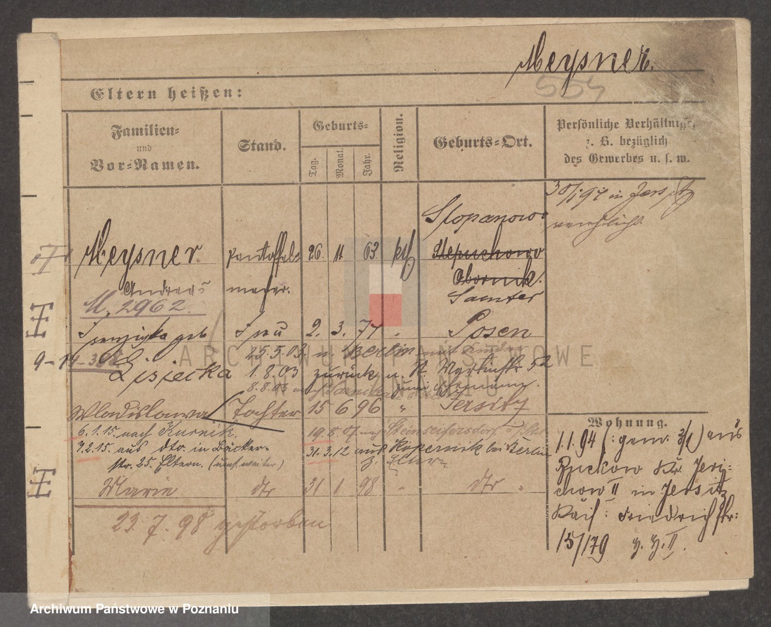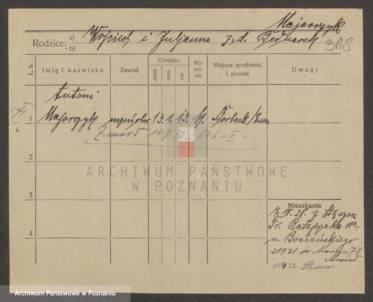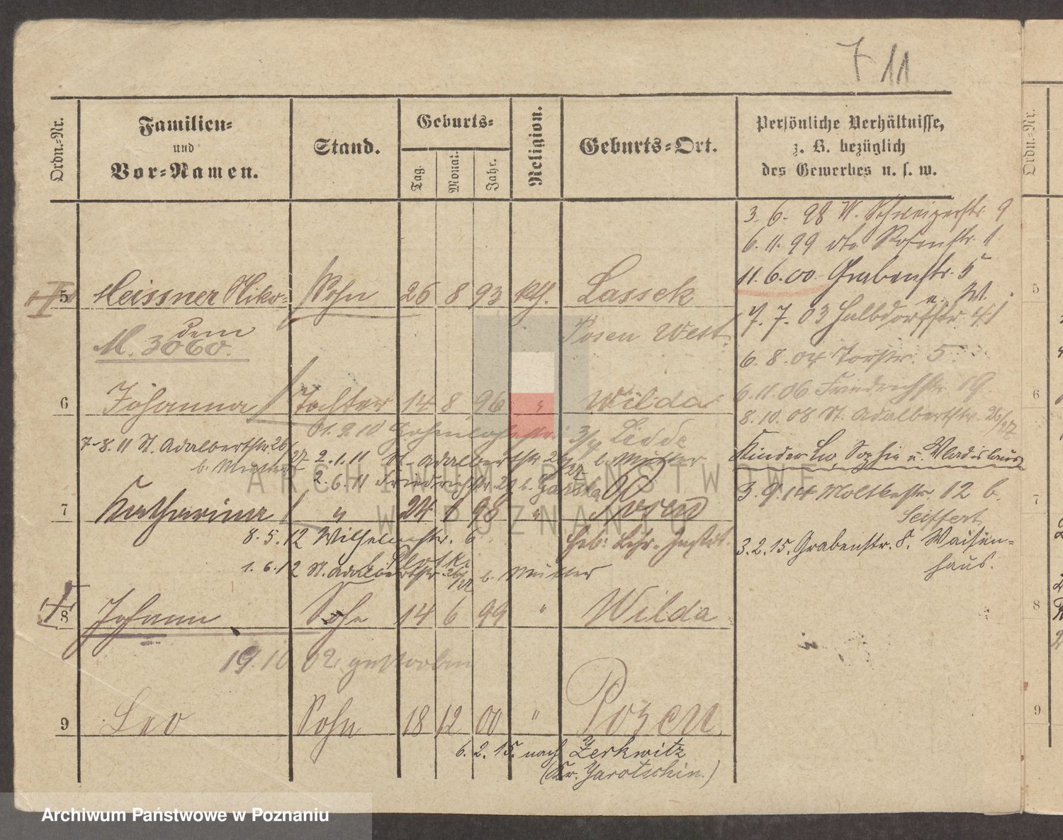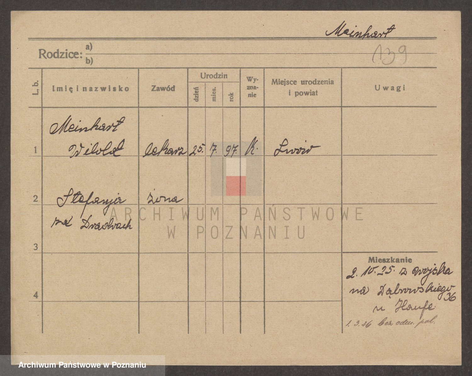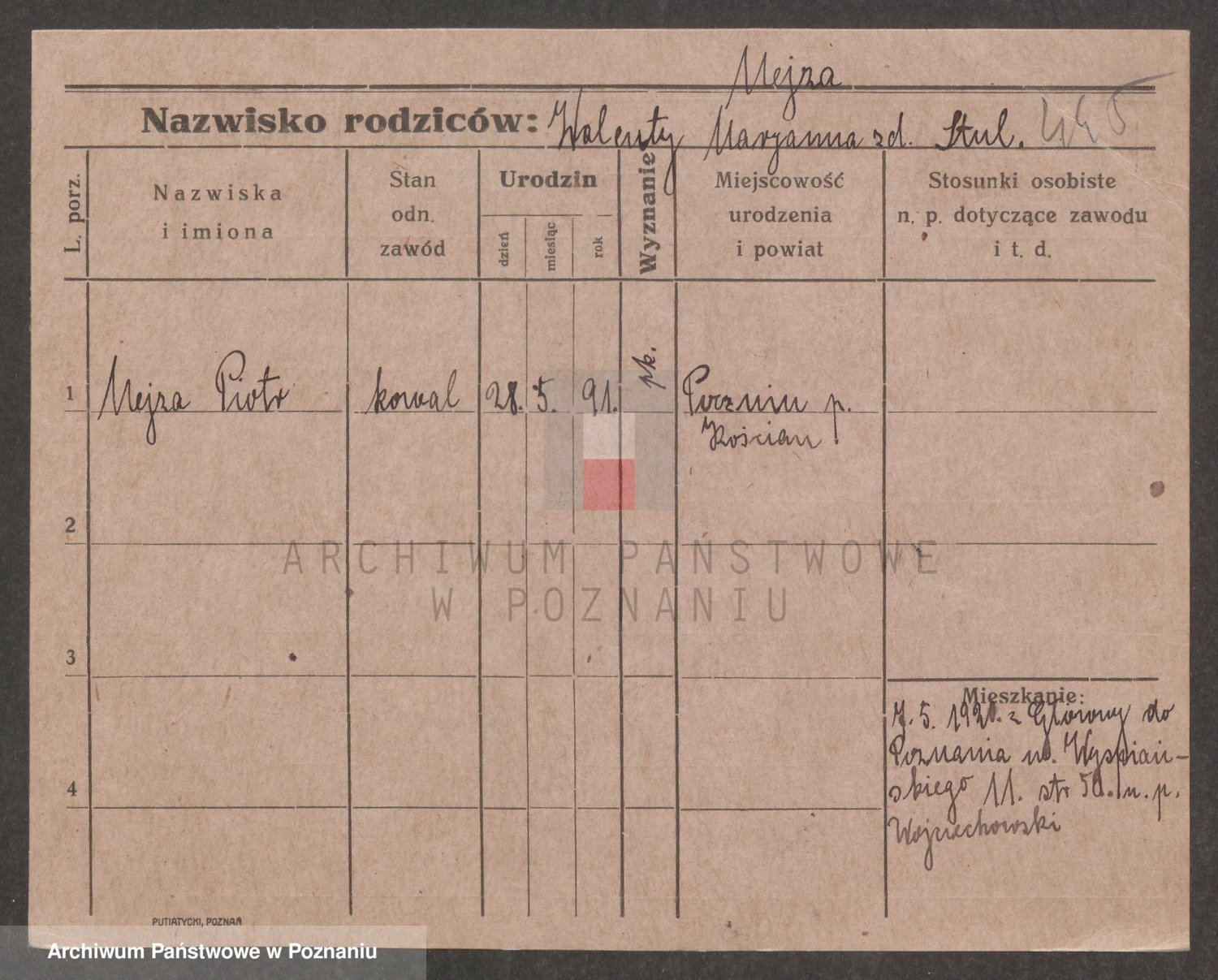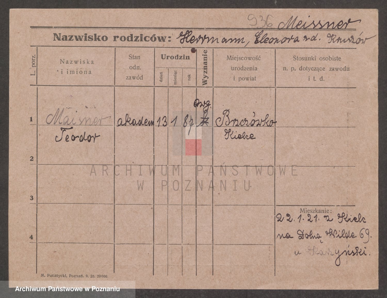 Podgląd karty osobowej dostępny jest po kliknięciu na nazwisko lub ikonkę karty. Można dokonywać powiększenia (ikony na górze) lub przechodzić między kolejnymi skanami (strzałki po bokach).