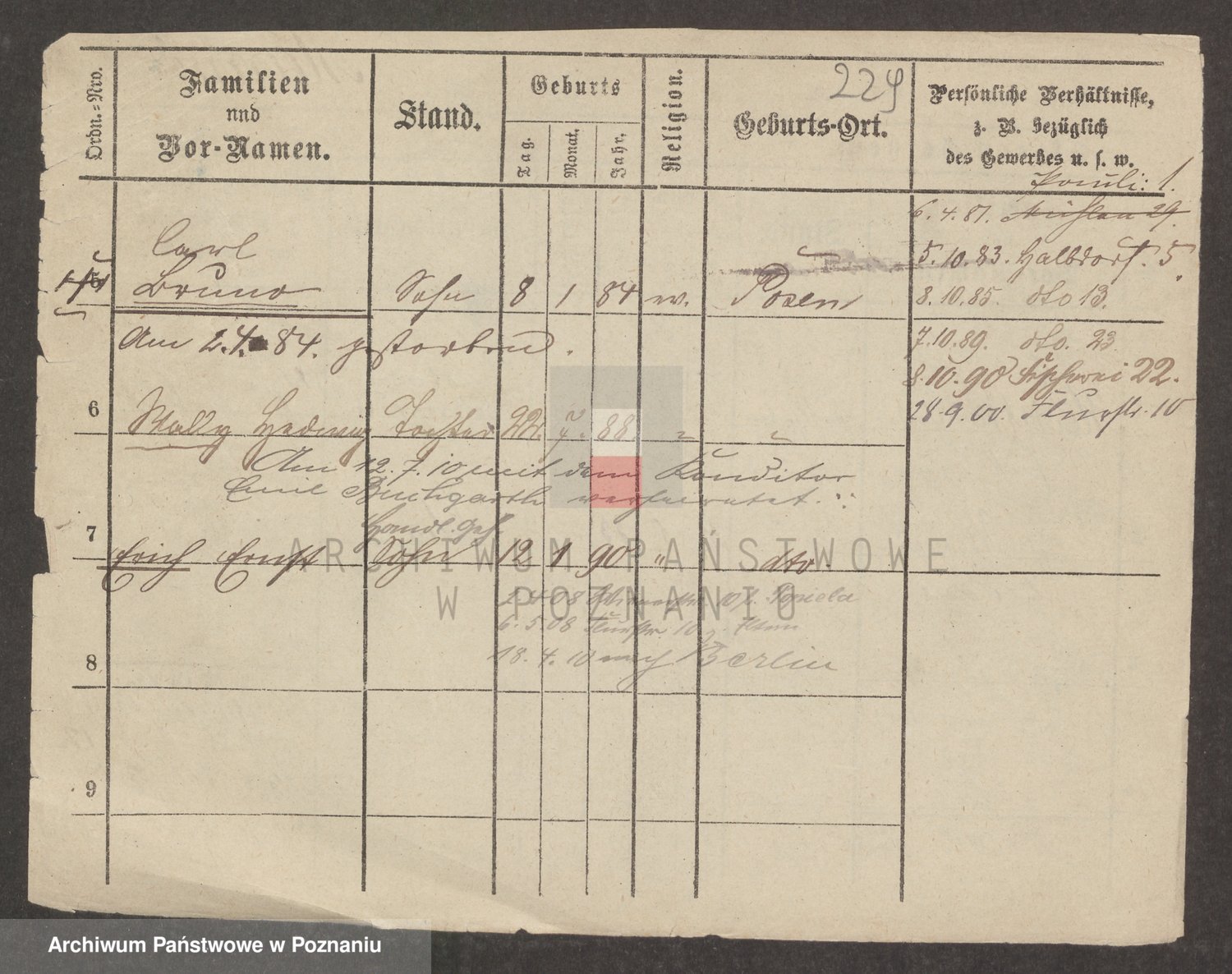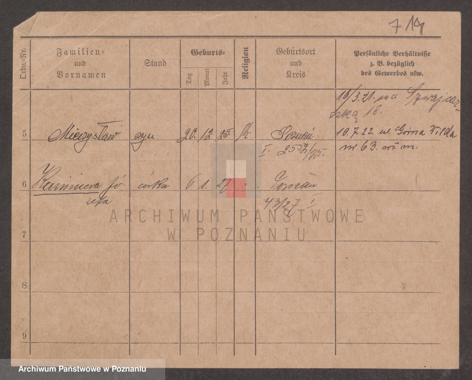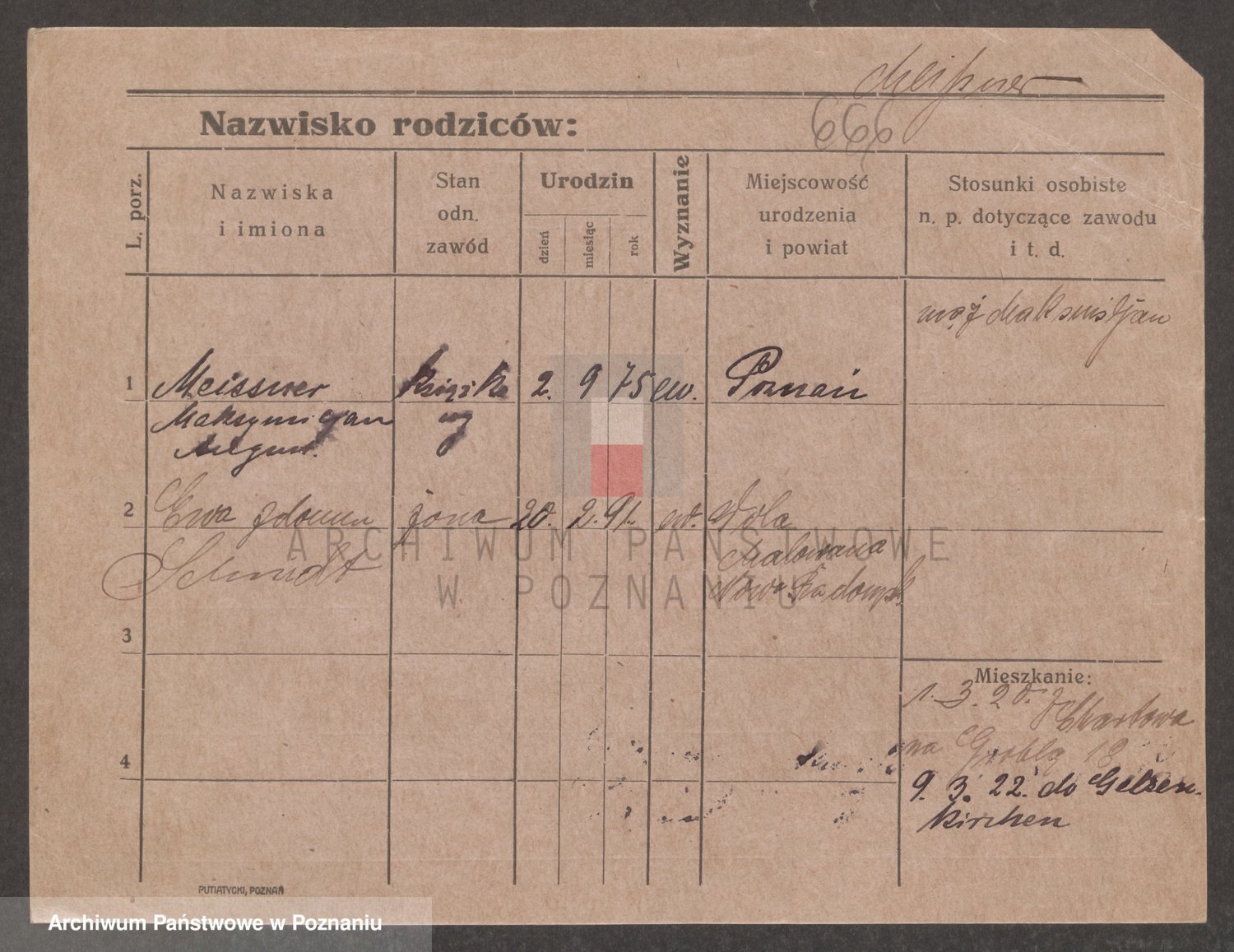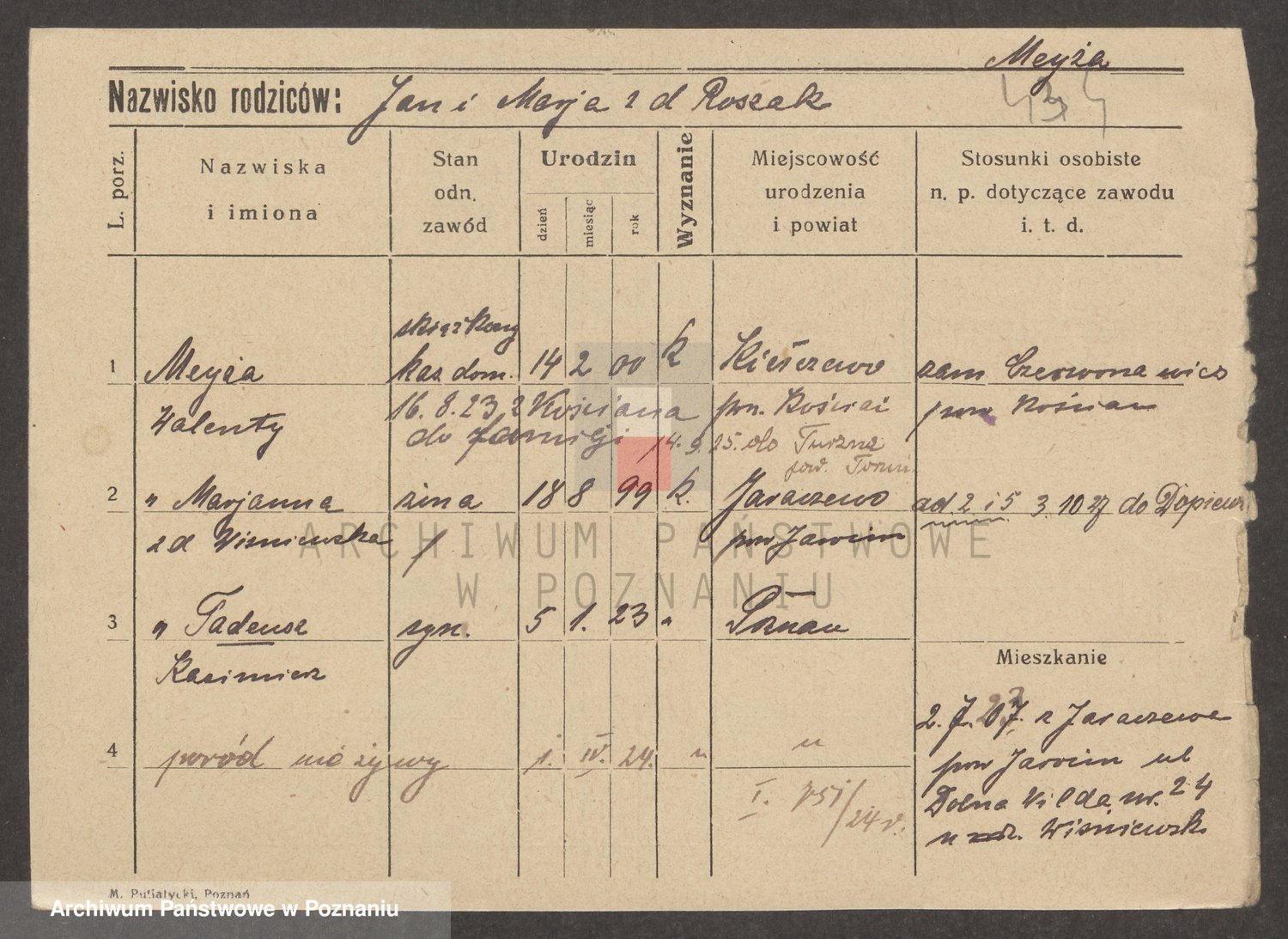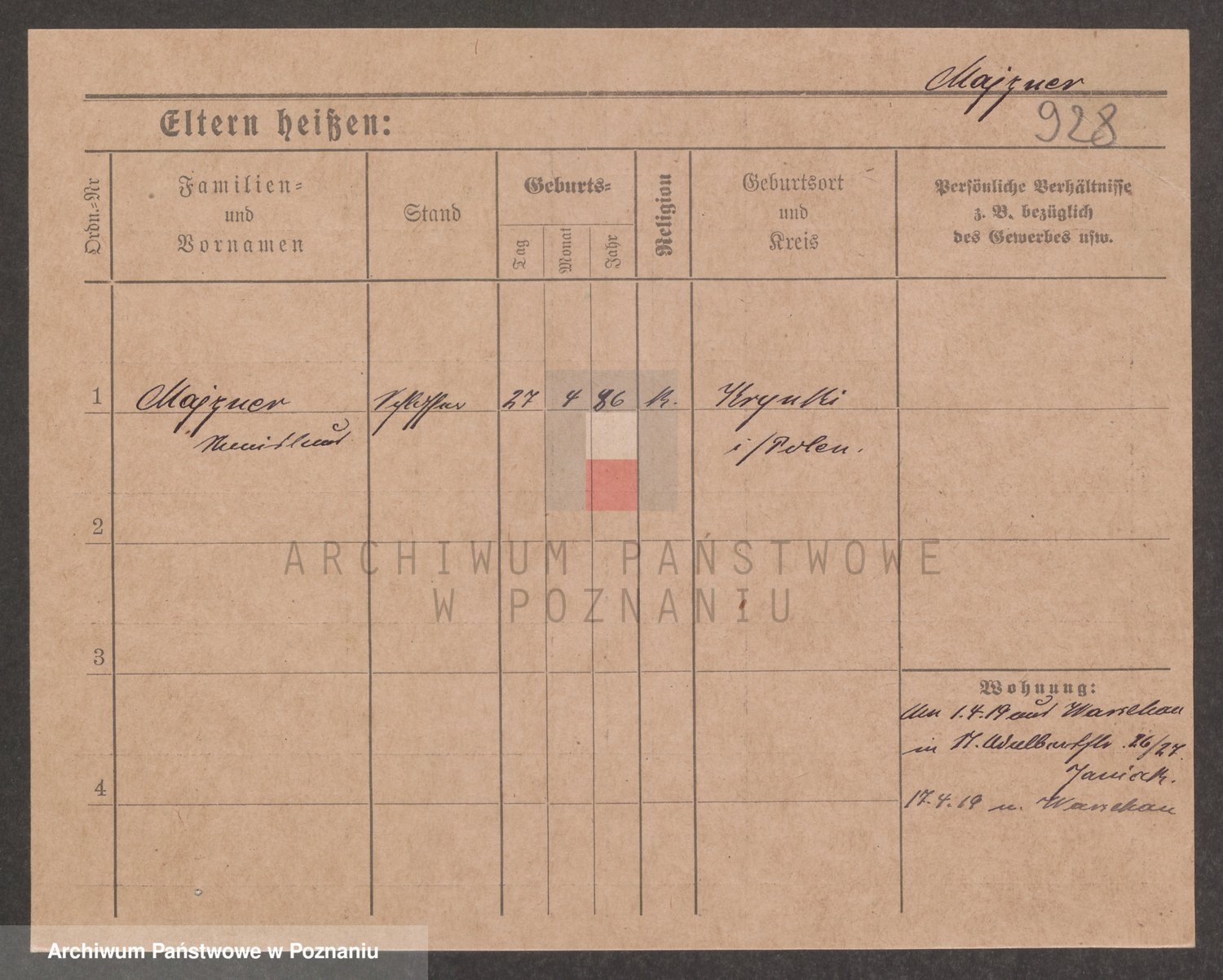 Podgląd karty osobowej dostępny jest po kliknięciu na nazwisko lub ikonkę karty. Można dokonywać powiększenia (ikony na górze) lub przechodzić między kolejnymi skanami (strzałki po bokach).
