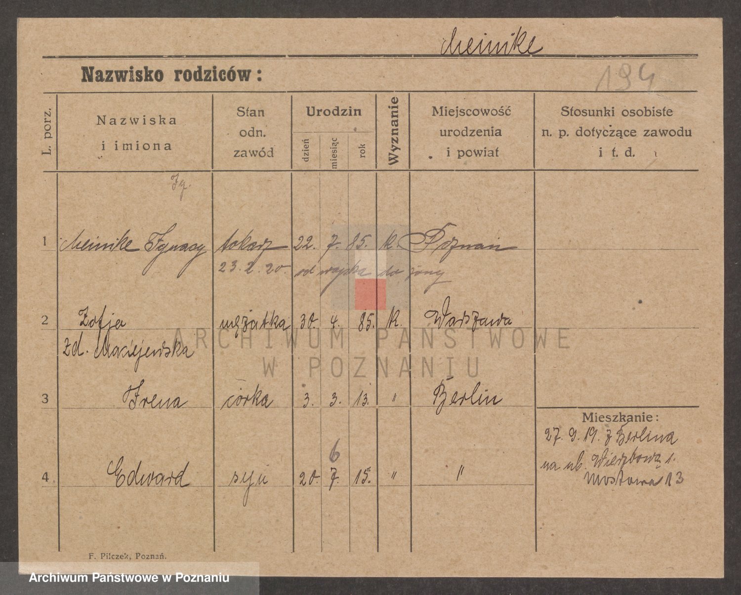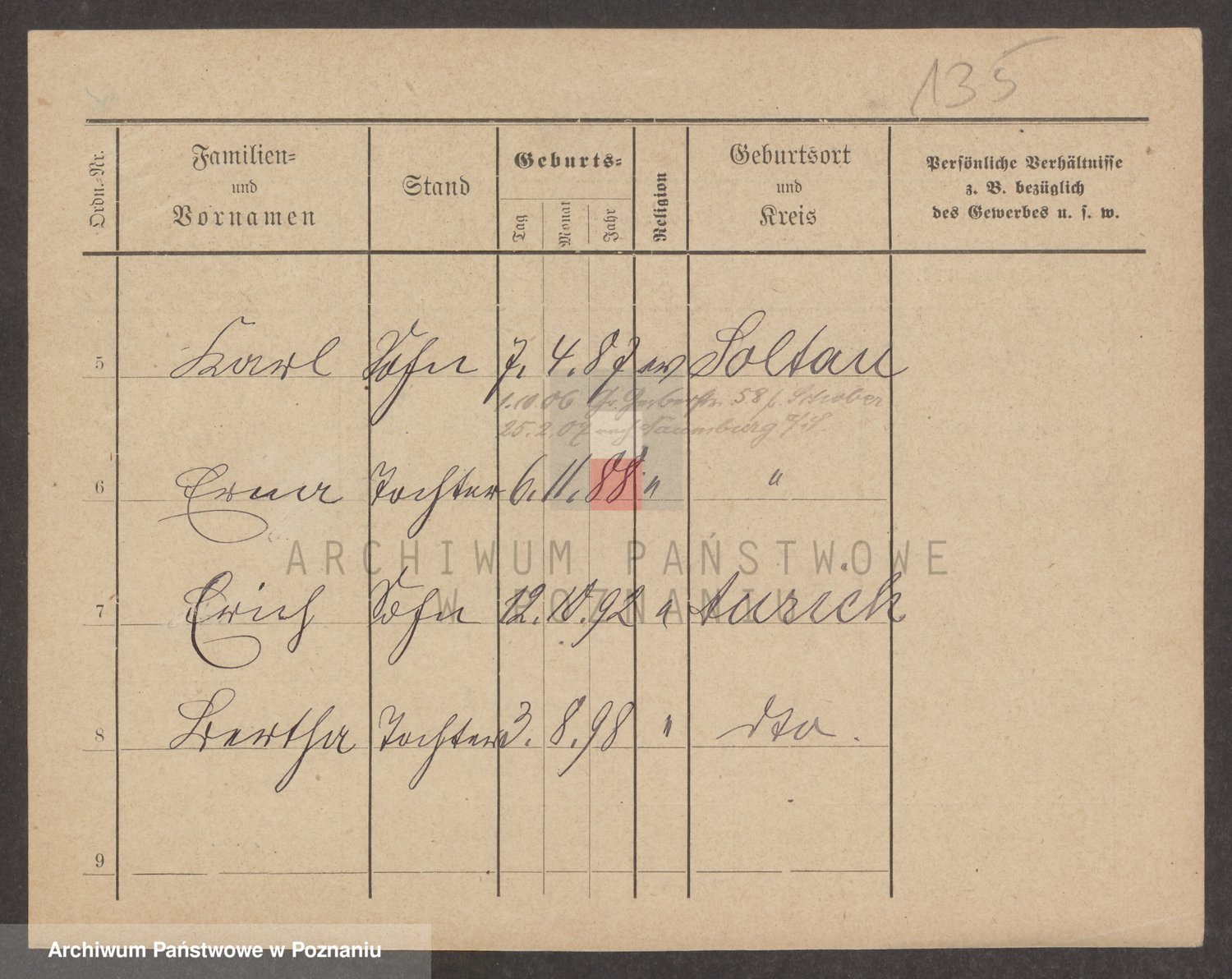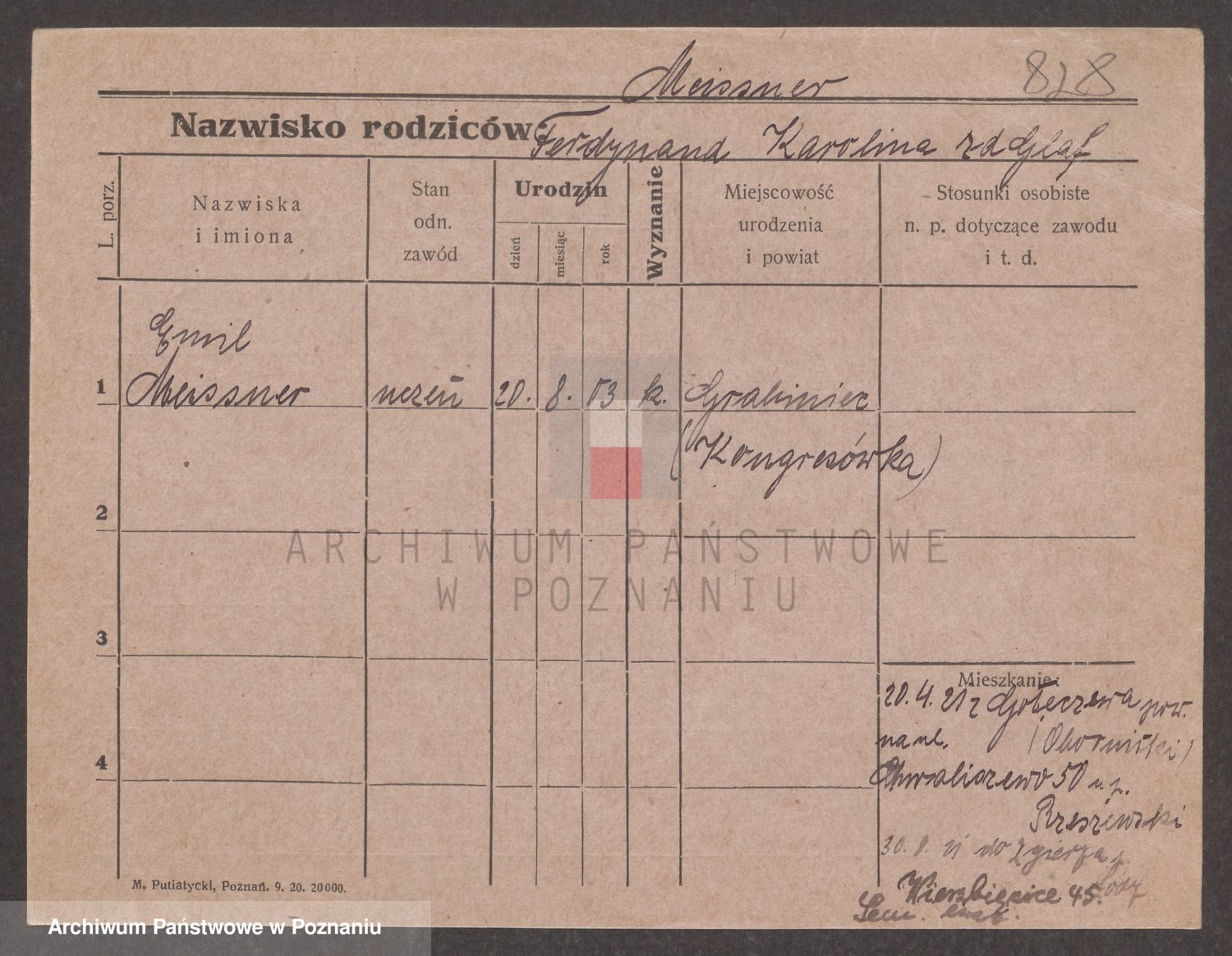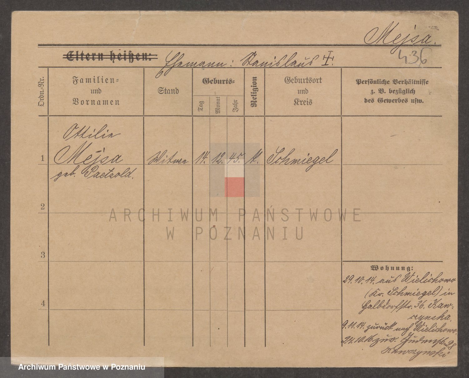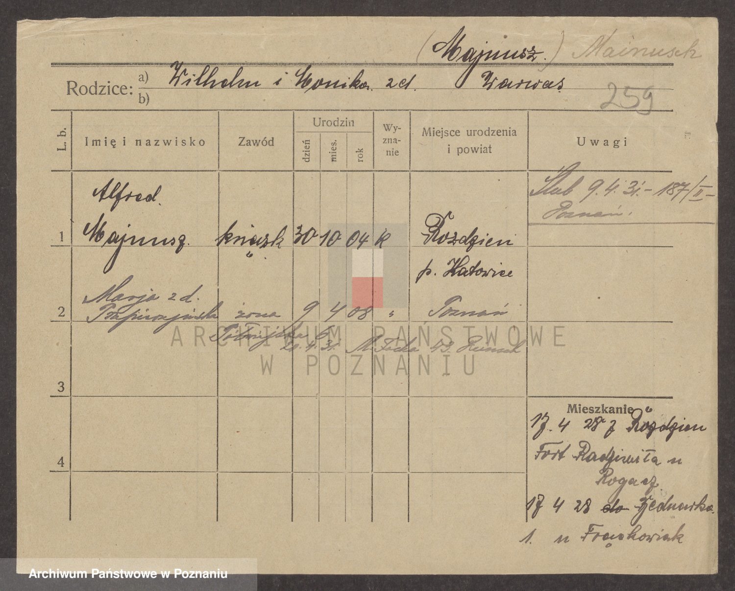 Podgląd karty osobowej dostępny jest po kliknięciu na nazwisko lub ikonkę karty. Można dokonywać powiększenia (ikony na górze) lub przechodzić między kolejnymi skanami (strzałki po bokach).