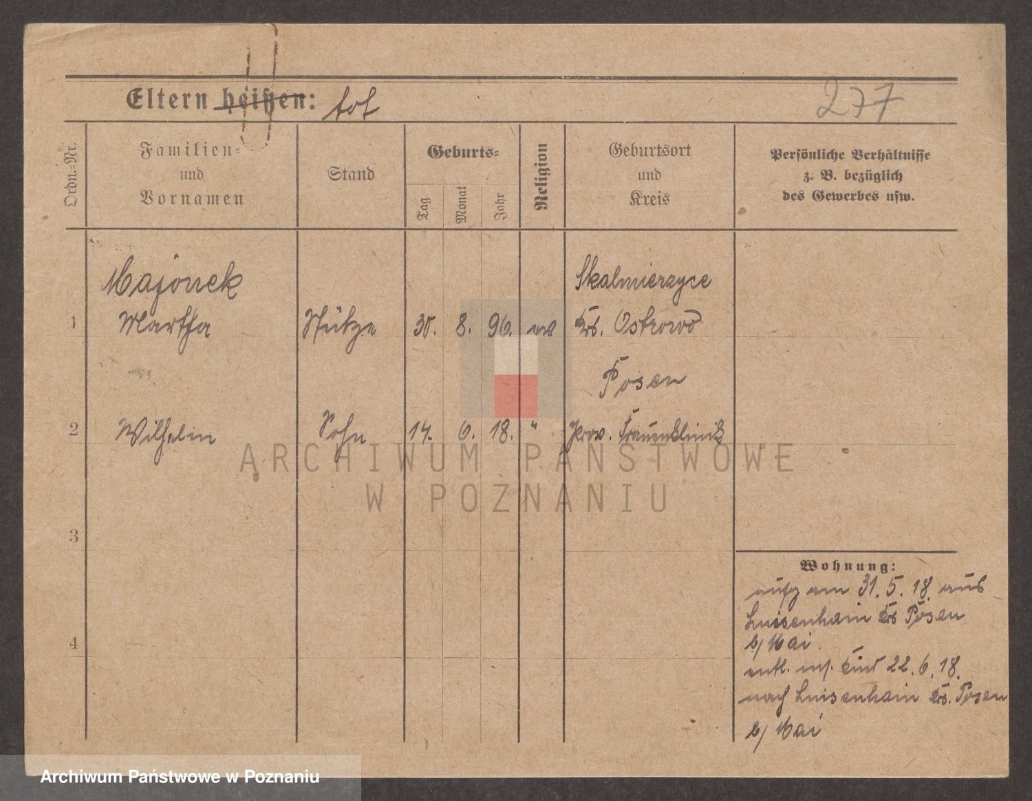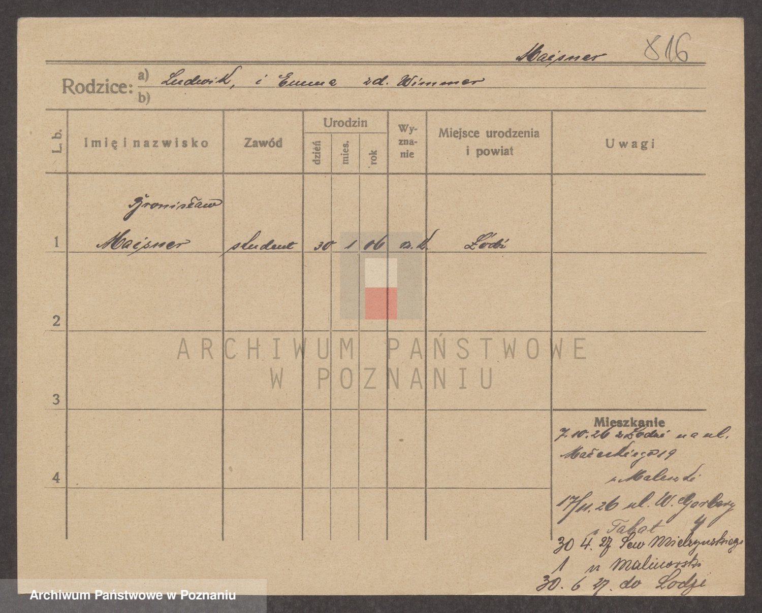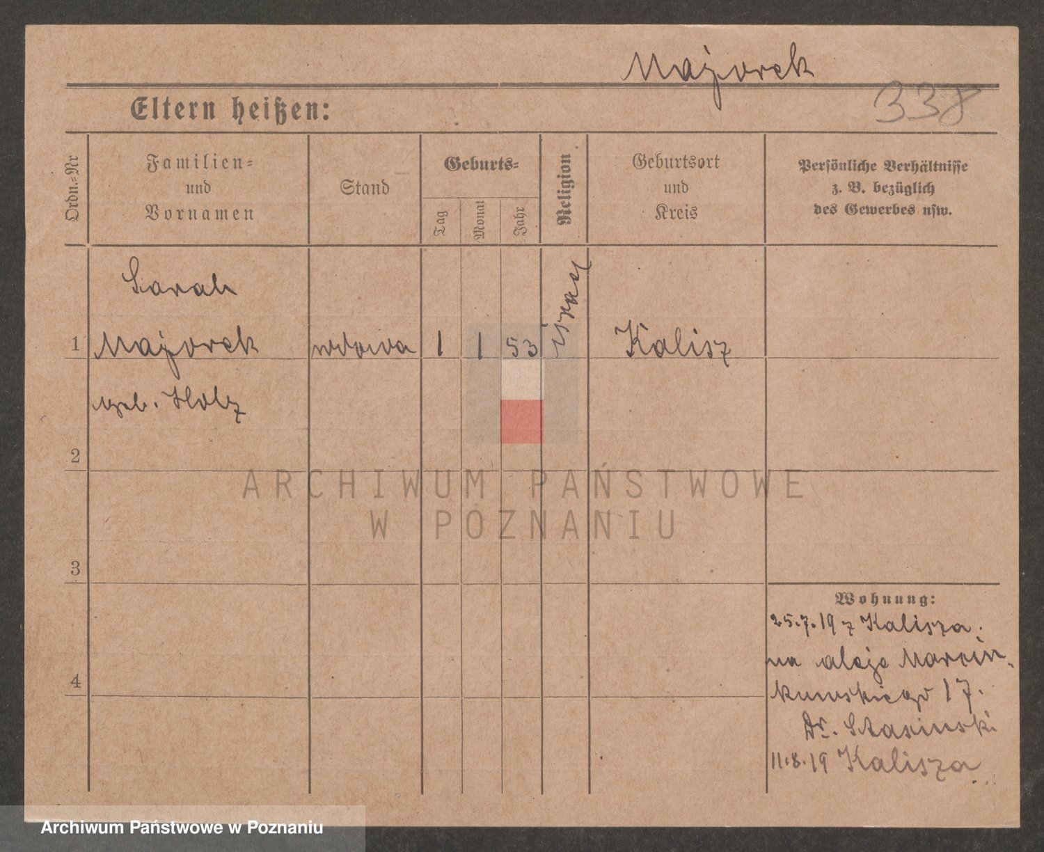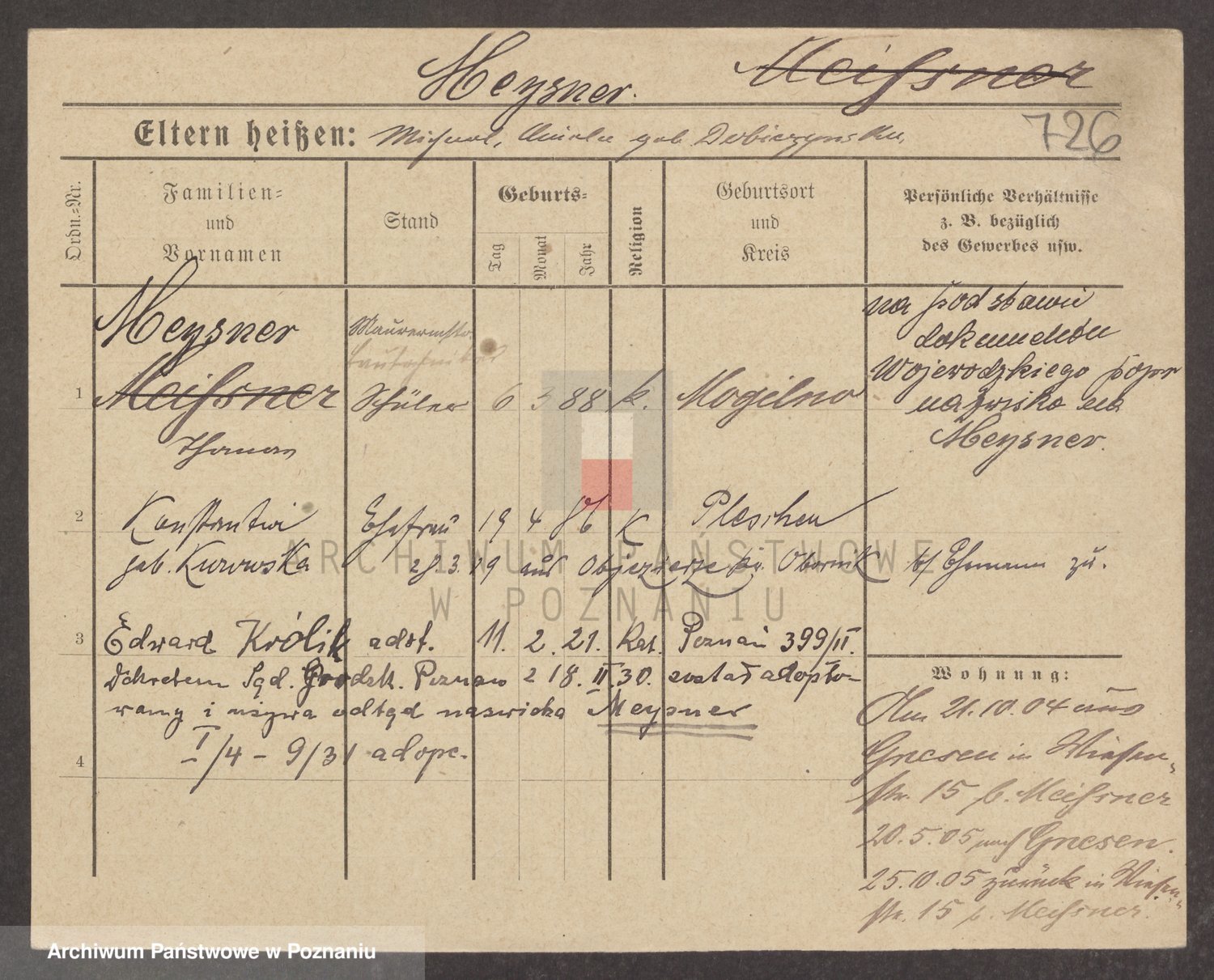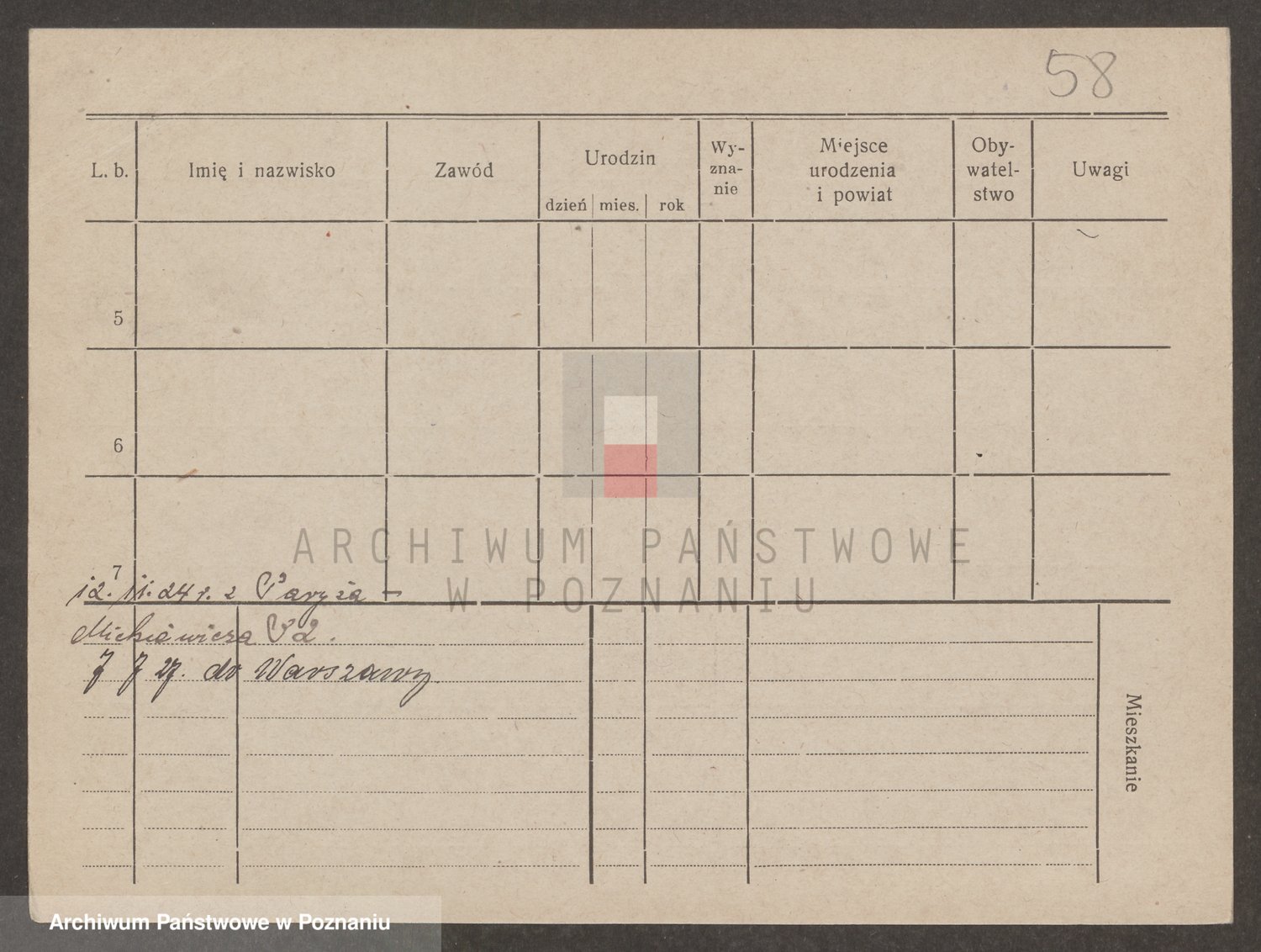 Podgląd karty osobowej dostępny jest po kliknięciu na nazwisko lub ikonkę karty. Można dokonywać powiększenia (ikony na górze) lub przechodzić między kolejnymi skanami (strzałki po bokach).