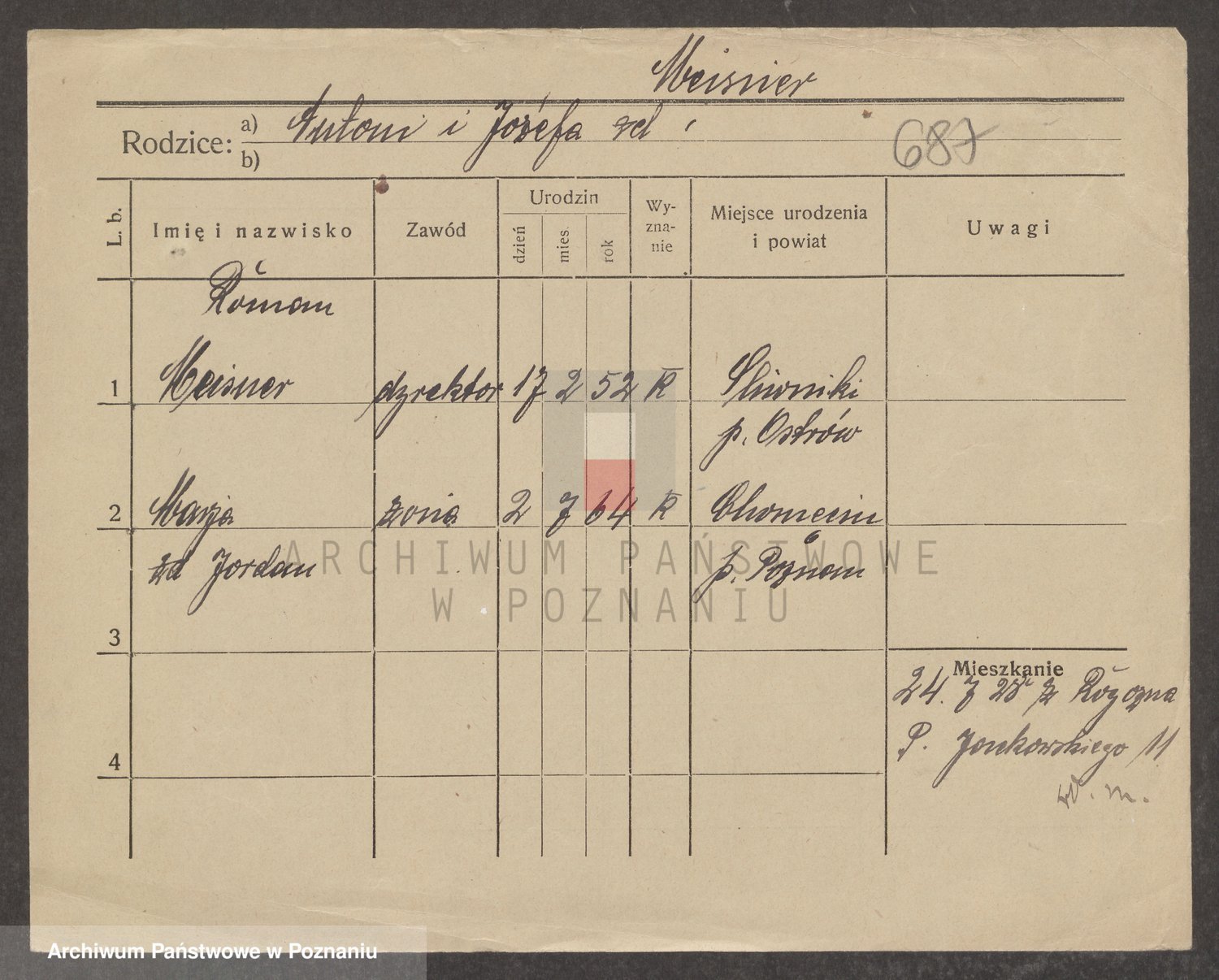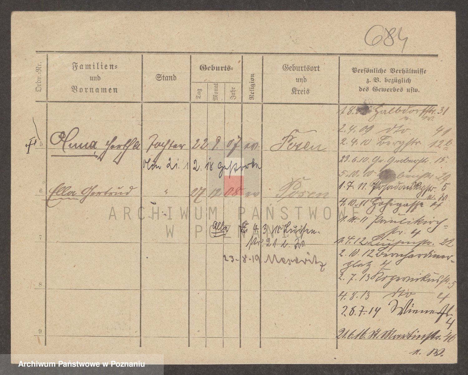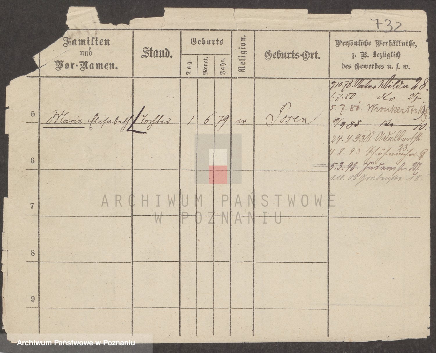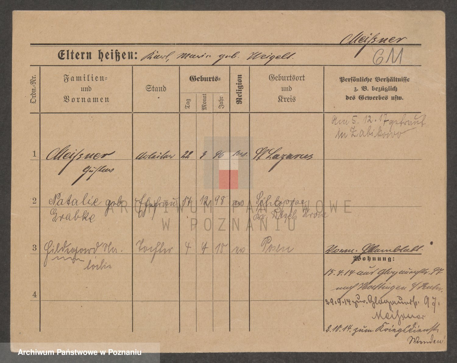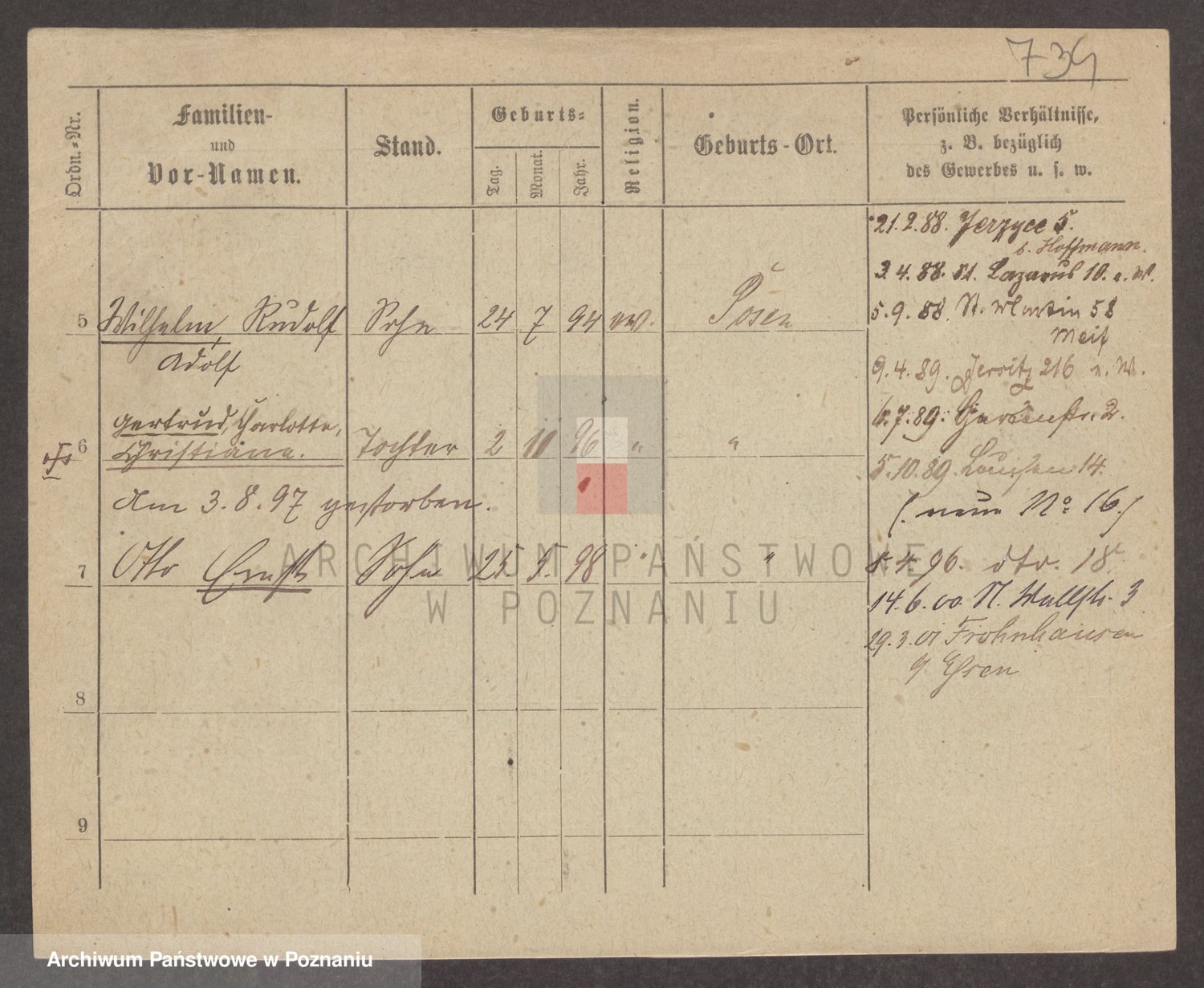 Podgląd karty osobowej dostępny jest po kliknięciu na nazwisko lub ikonkę karty. Można dokonywać powiększenia (ikony na górze) lub przechodzić między kolejnymi skanami (strzałki po bokach).