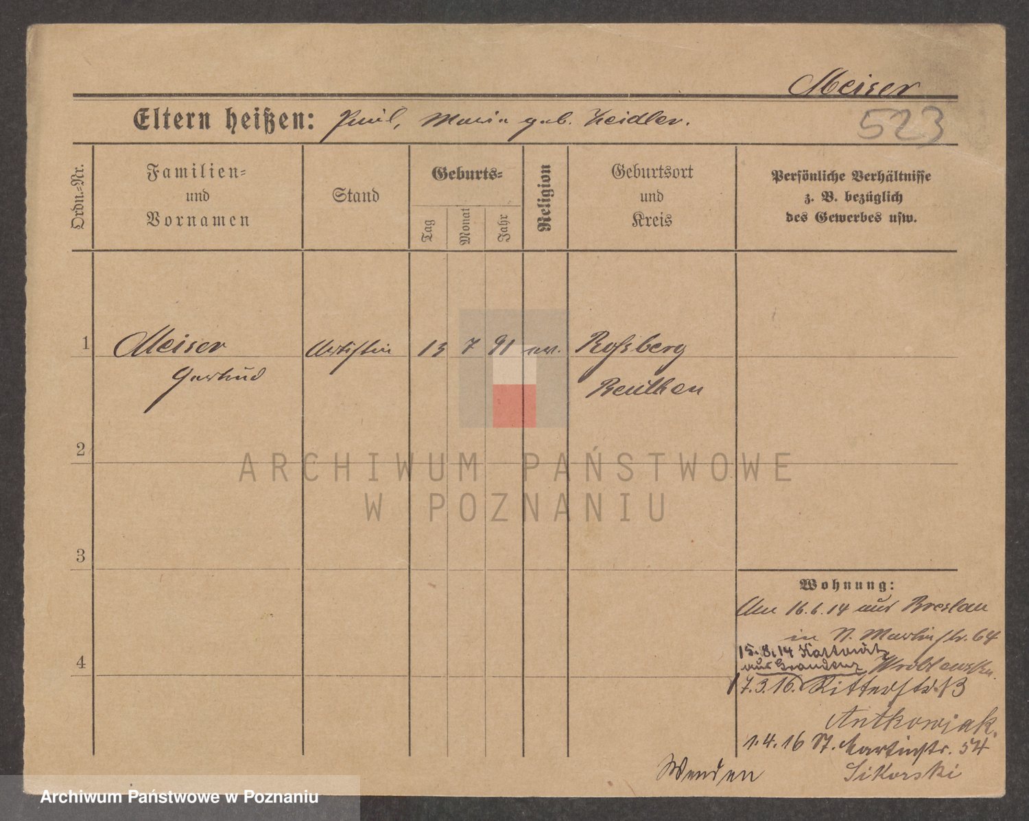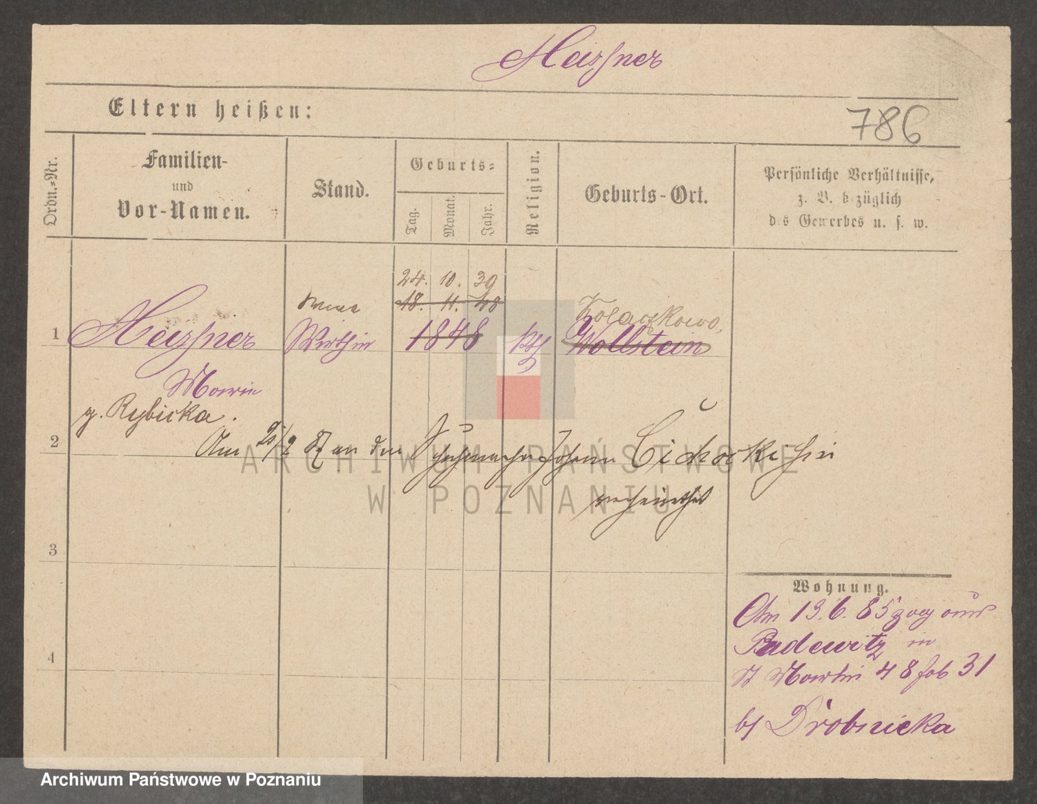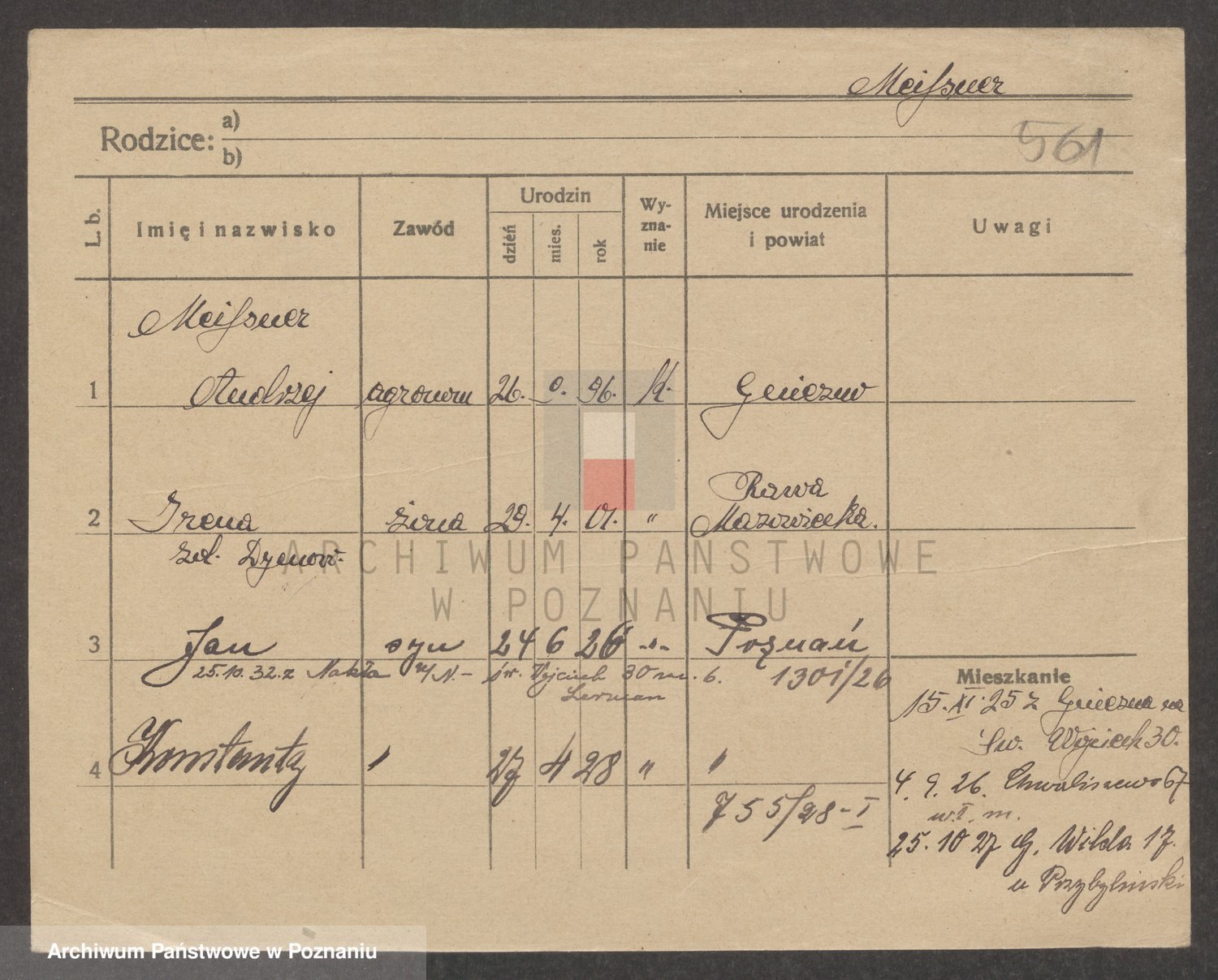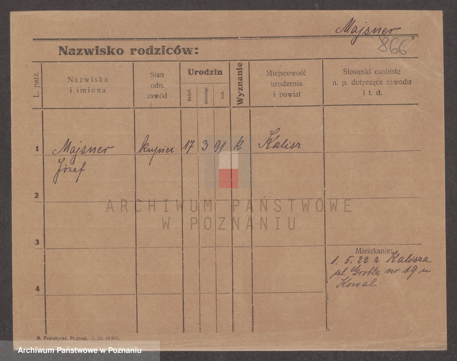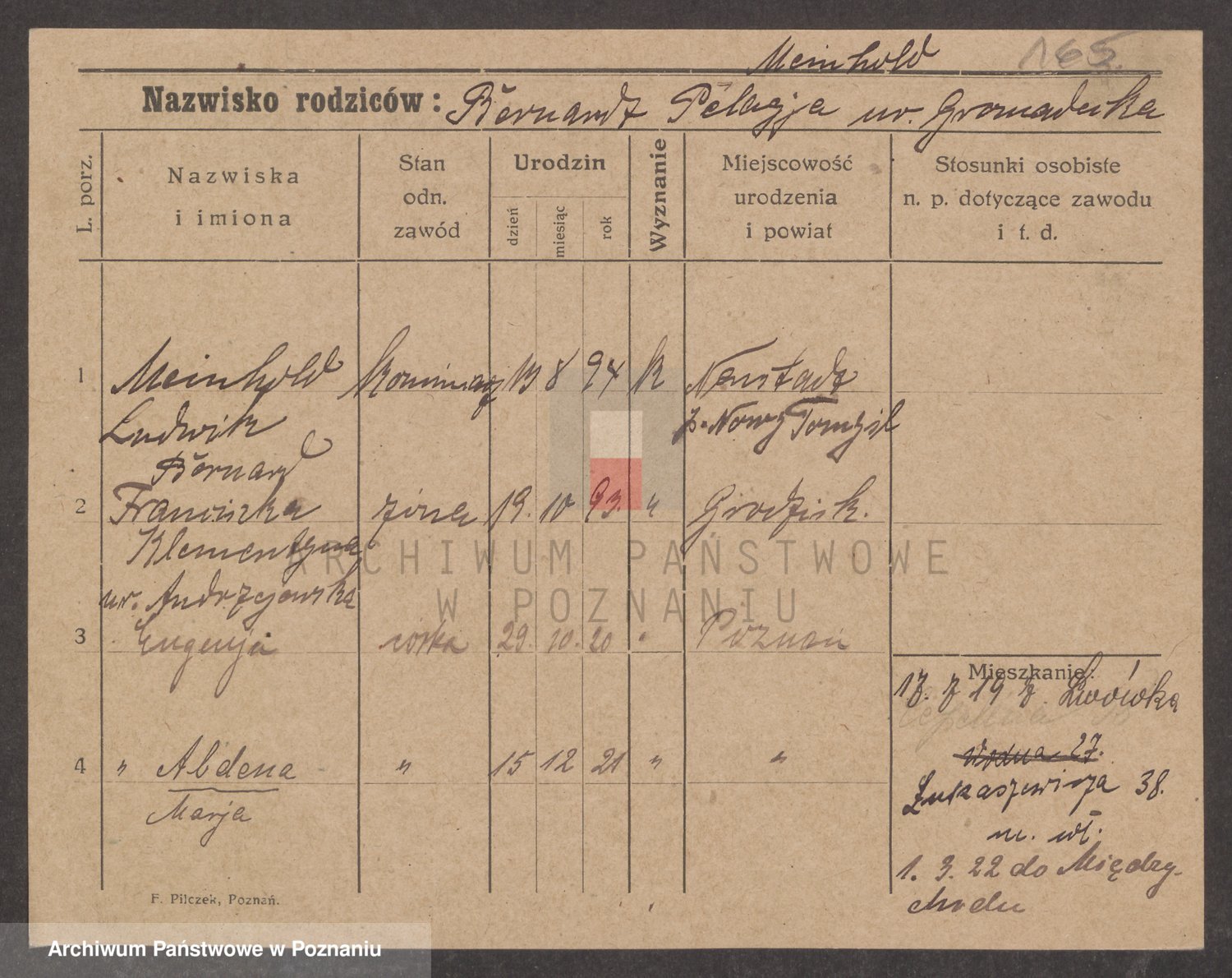 Podgląd karty osobowej dostępny jest po kliknięciu na nazwisko lub ikonkę karty. Można dokonywać powiększenia (ikony na górze) lub przechodzić między kolejnymi skanami (strzałki po bokach).