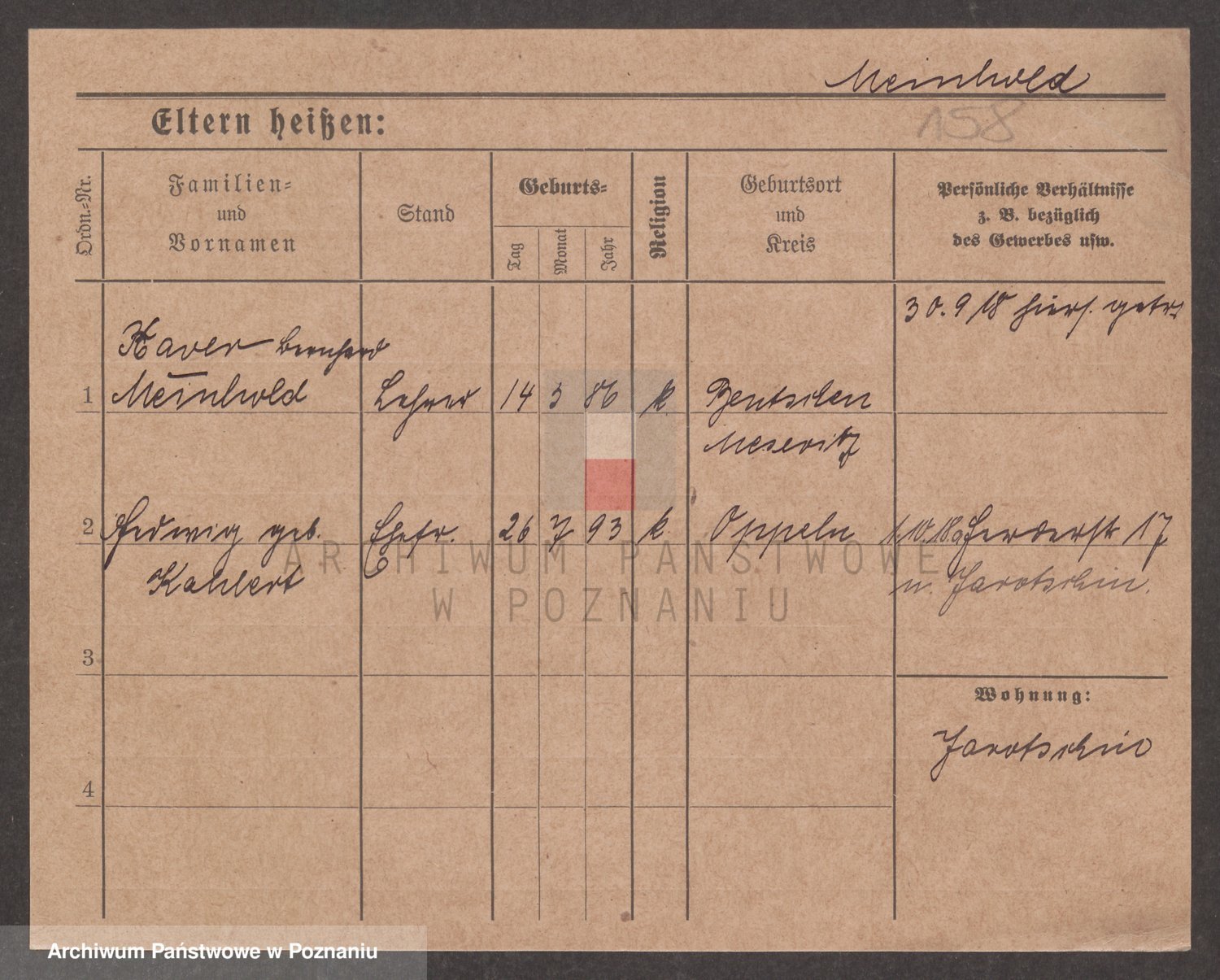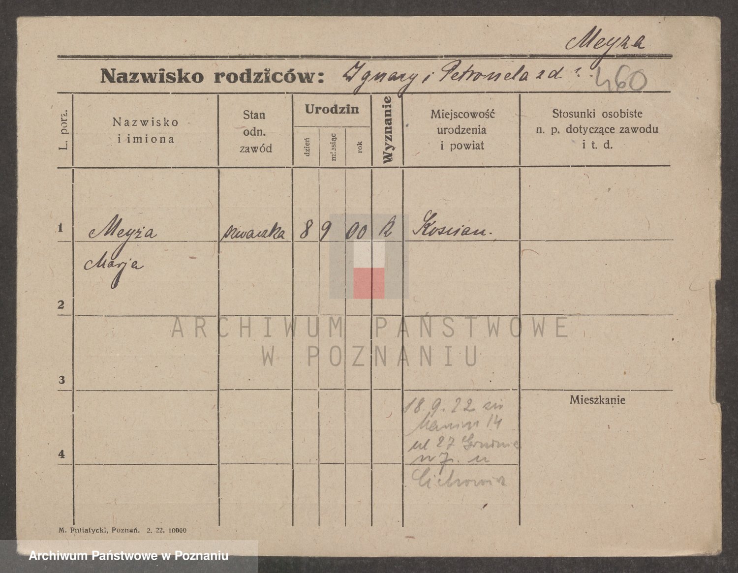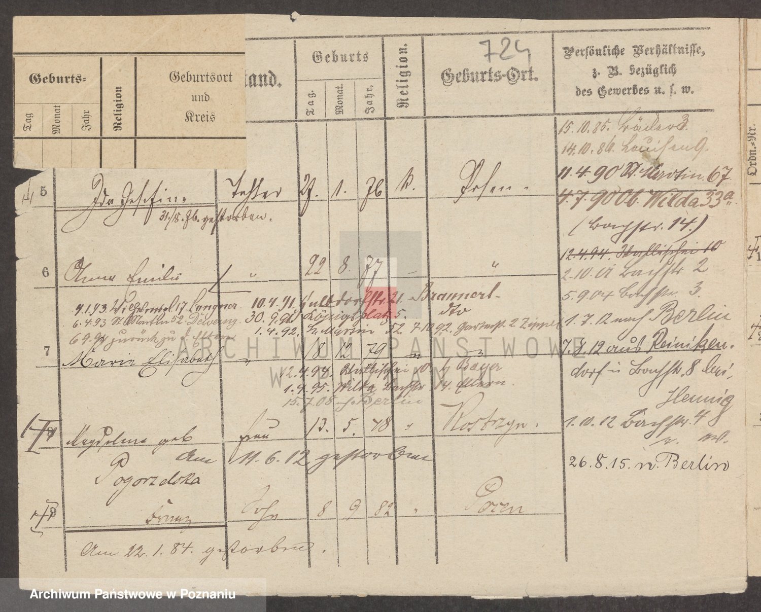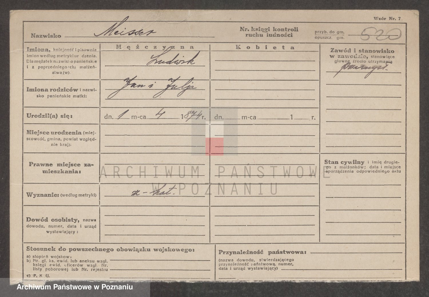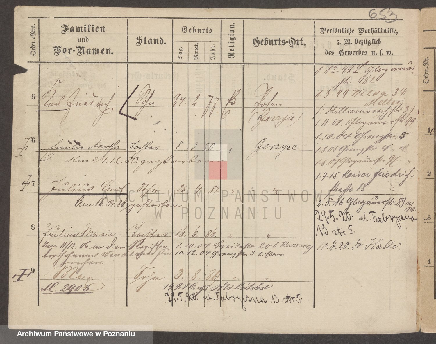 Podgląd karty osobowej dostępny jest po kliknięciu na nazwisko lub ikonkę karty. Można dokonywać powiększenia (ikony na górze) lub przechodzić między kolejnymi skanami (strzałki po bokach).