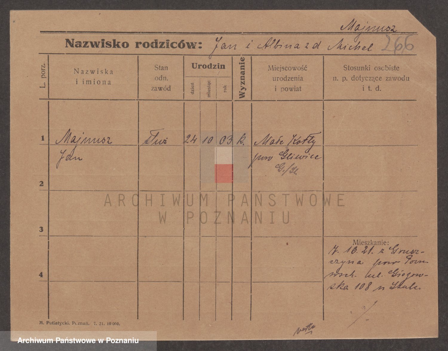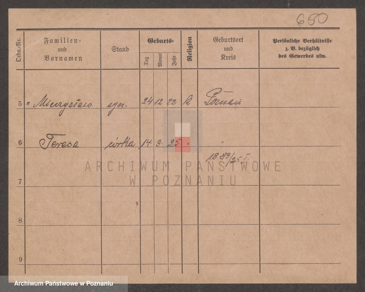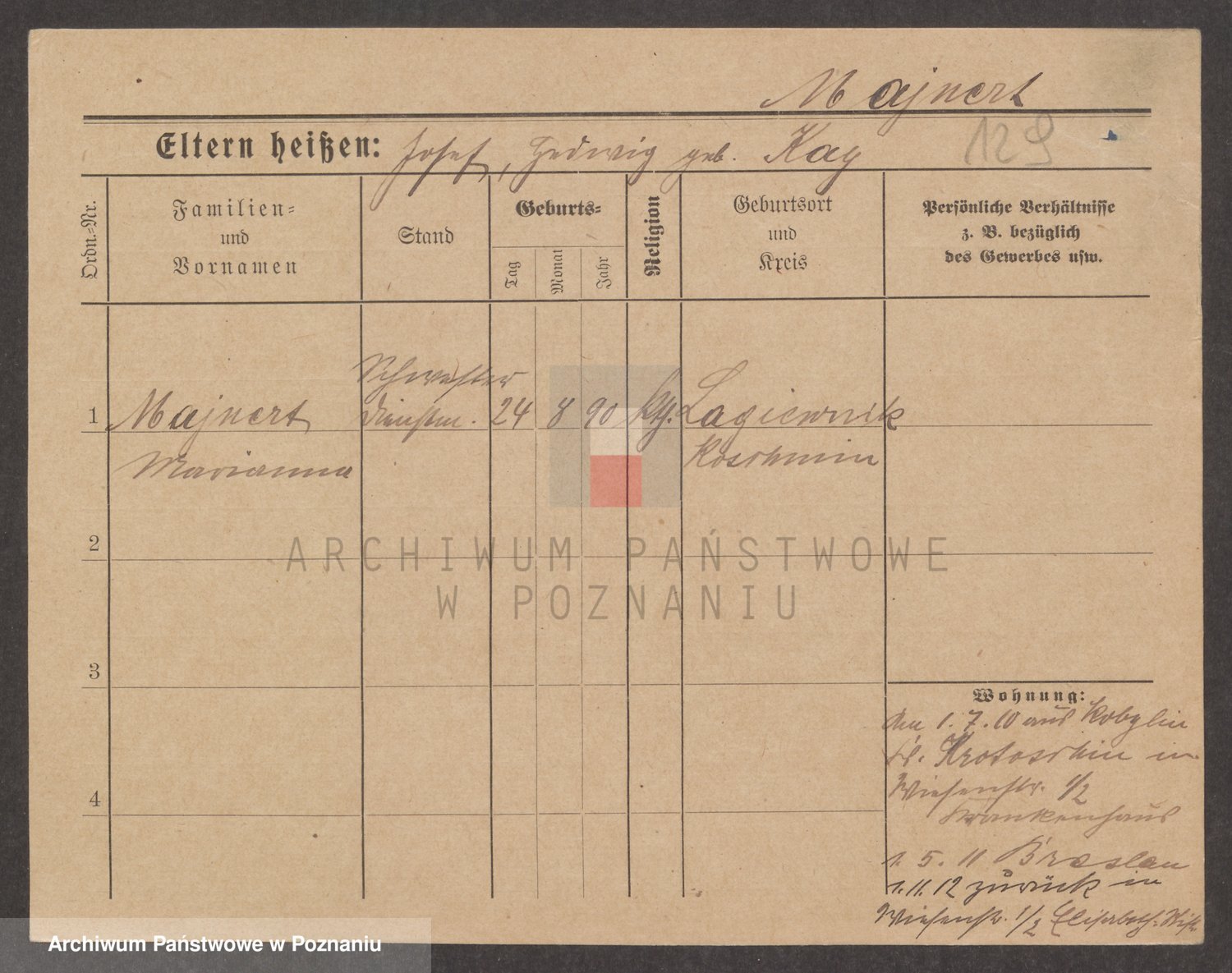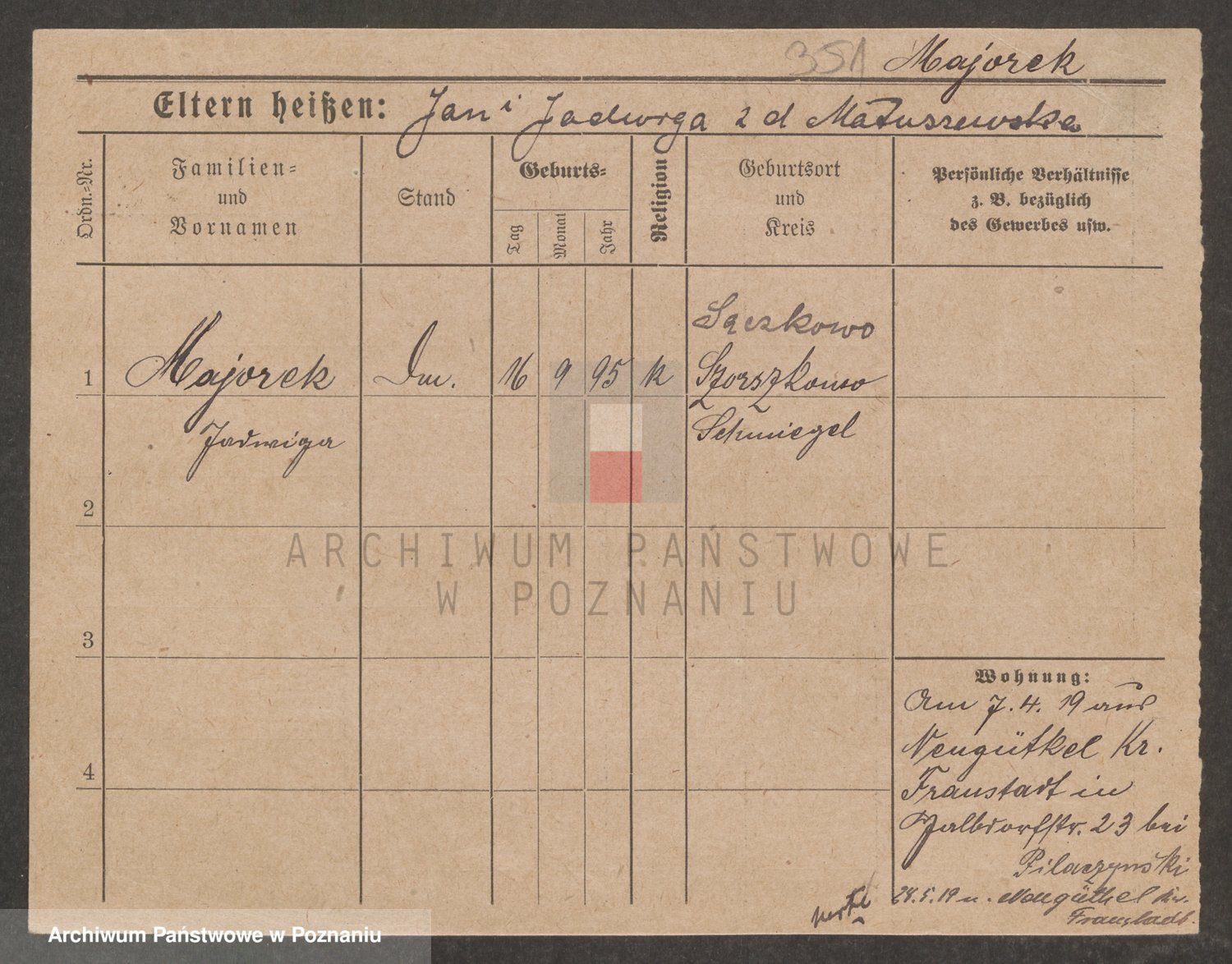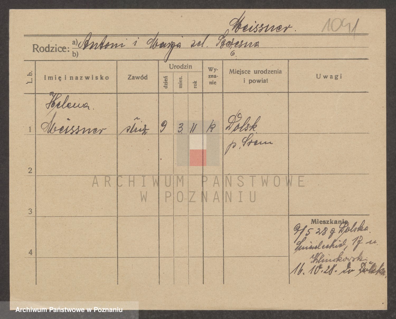 Podgląd karty osobowej dostępny jest po kliknięciu na nazwisko lub ikonkę karty. Można dokonywać powiększenia (ikony na górze) lub przechodzić między kolejnymi skanami (strzałki po bokach).