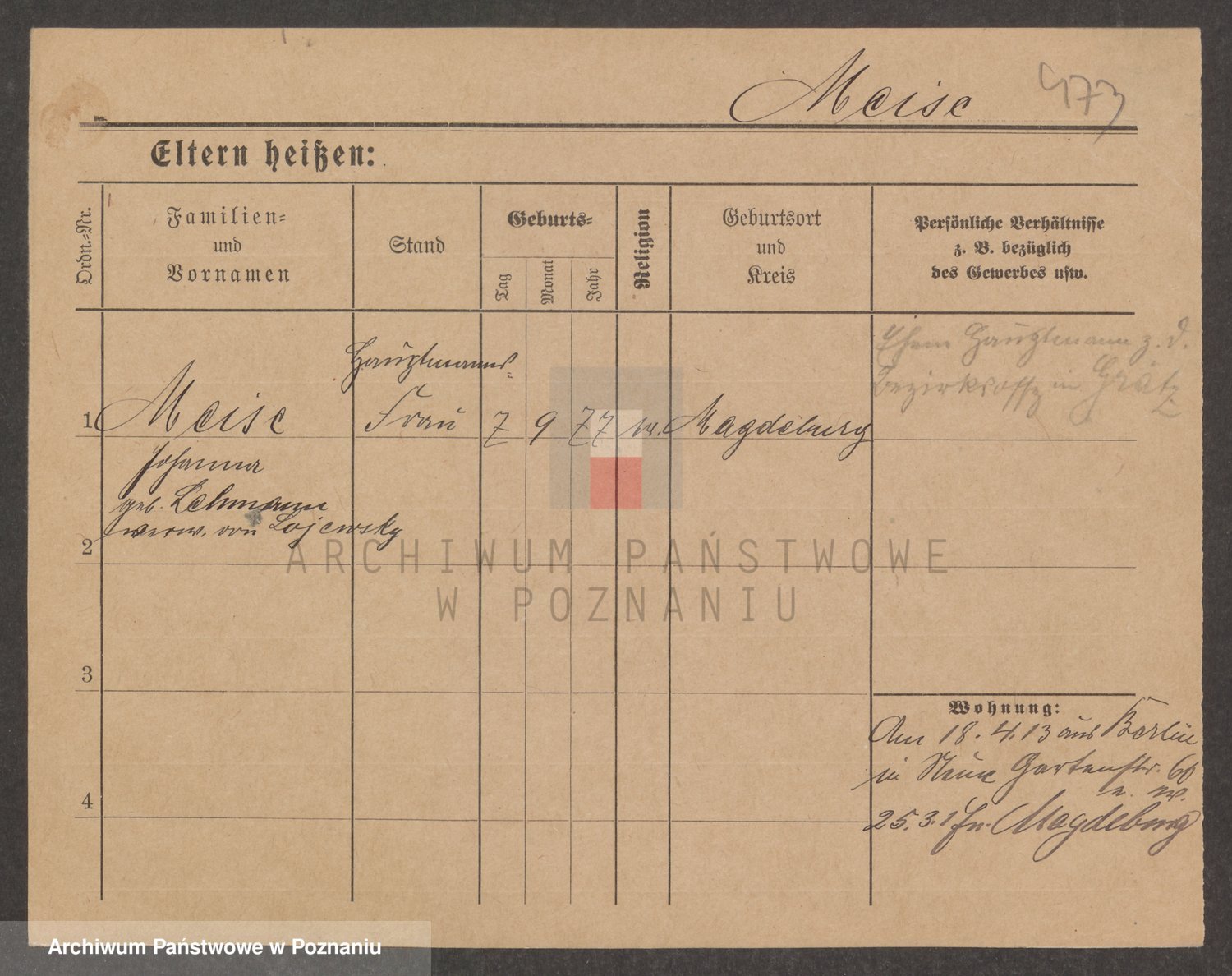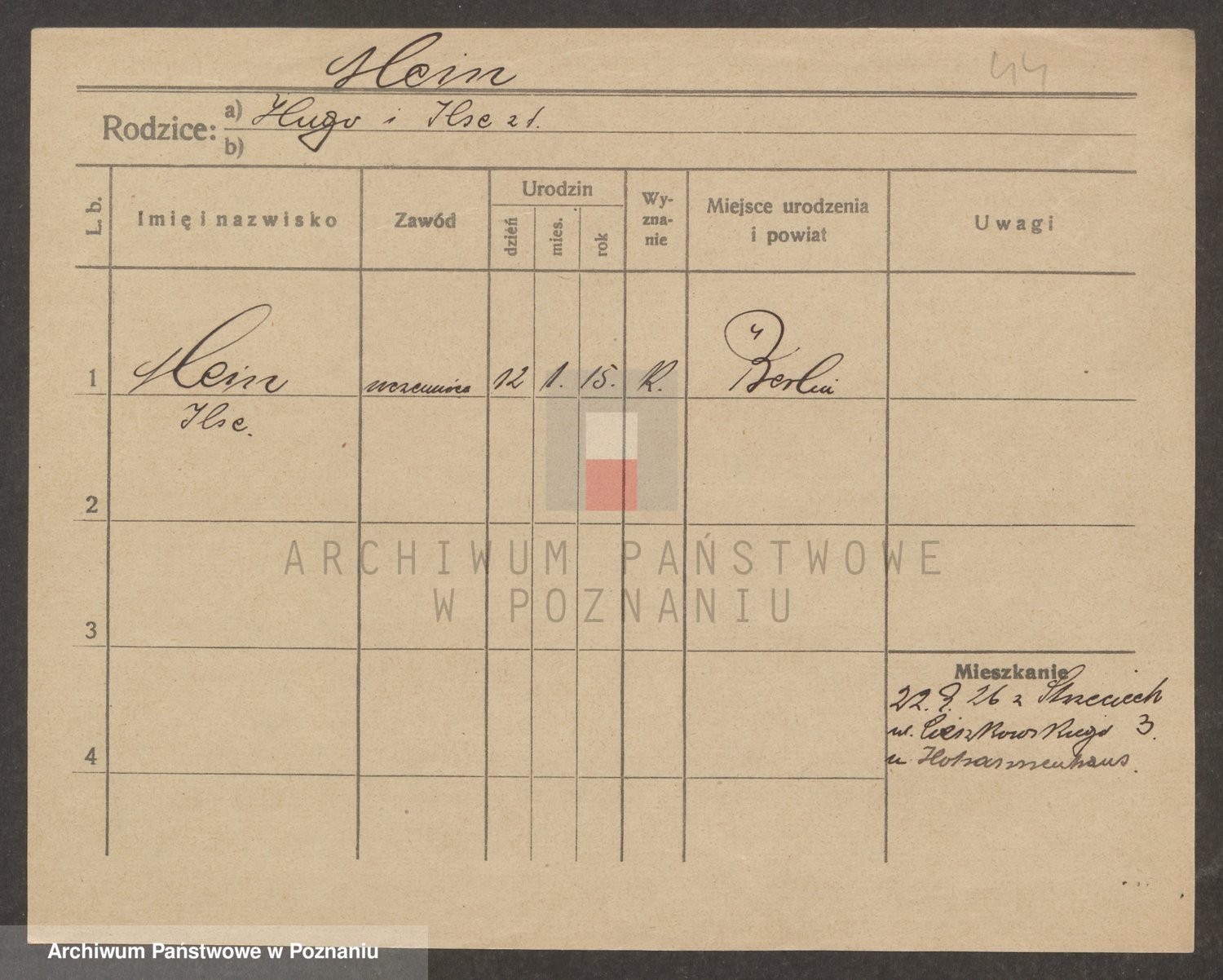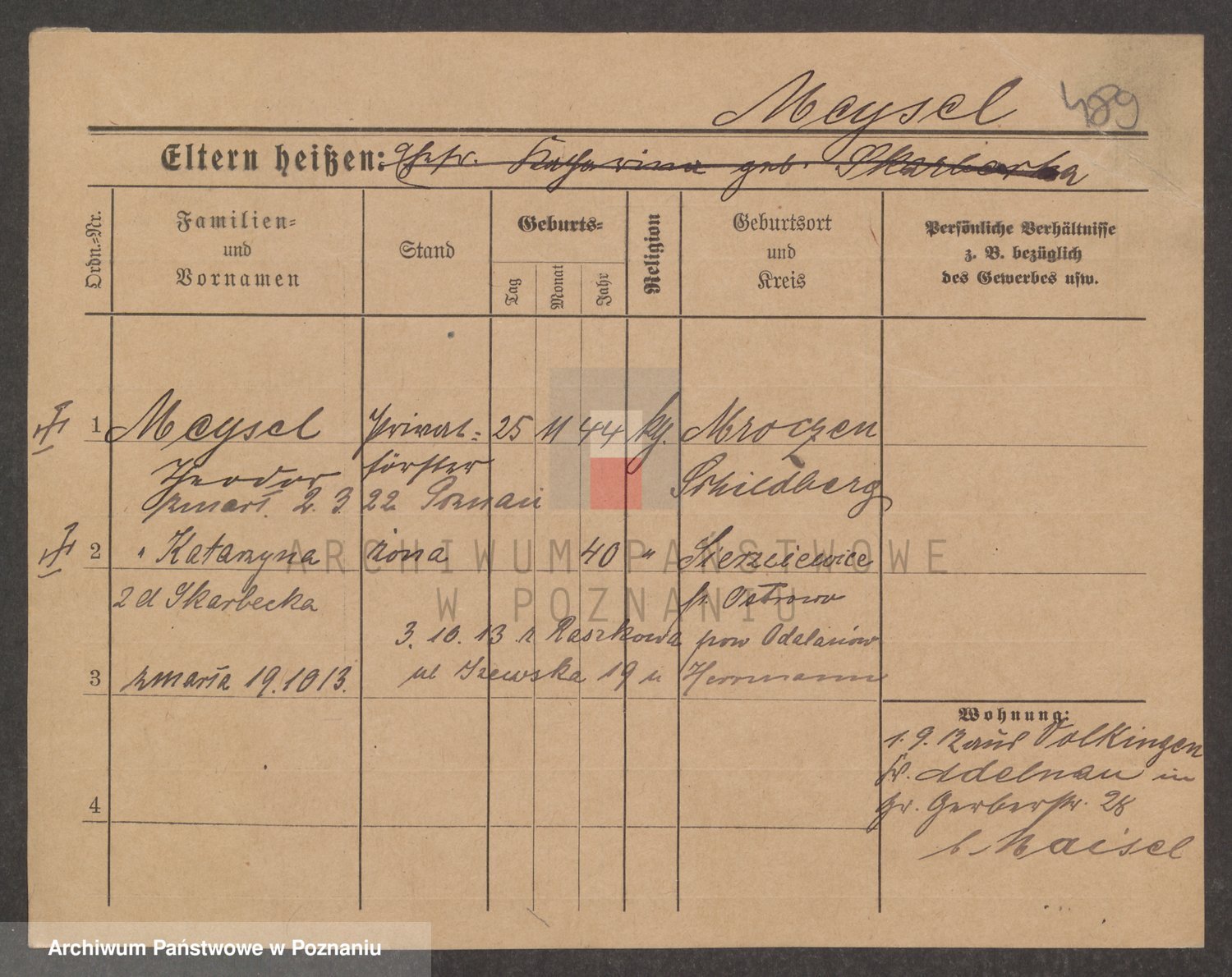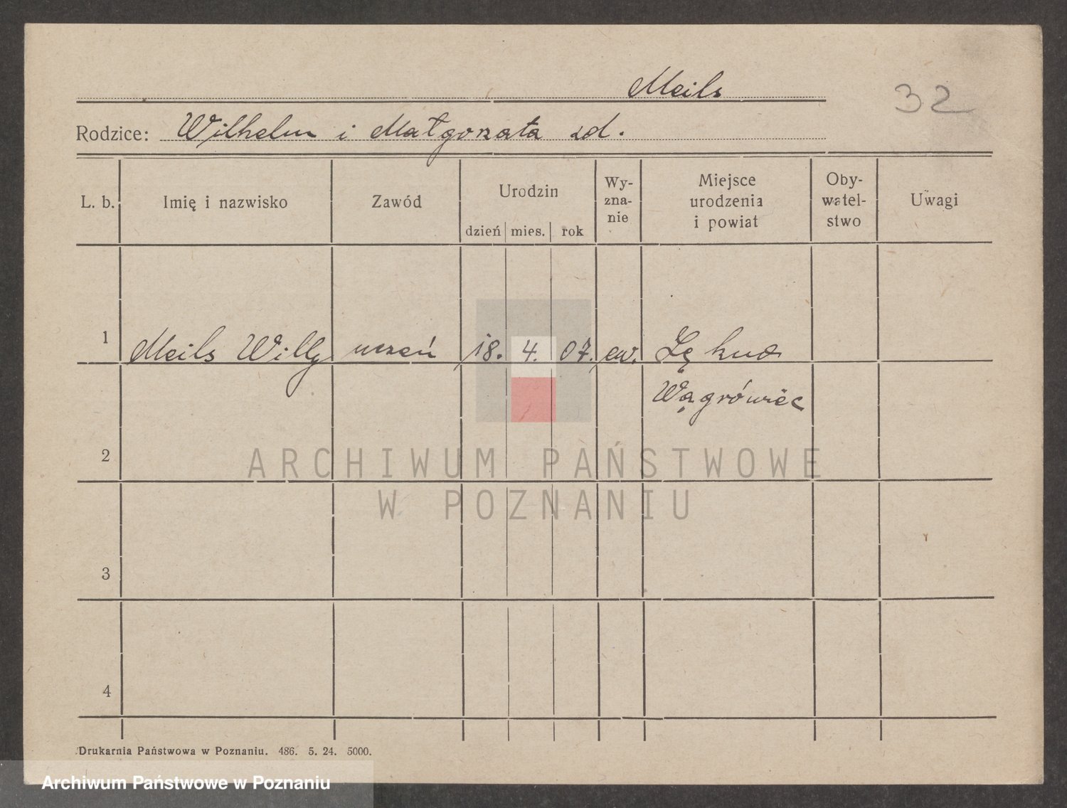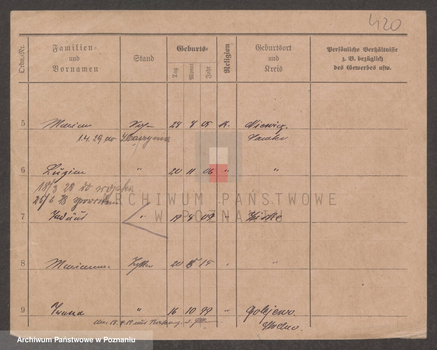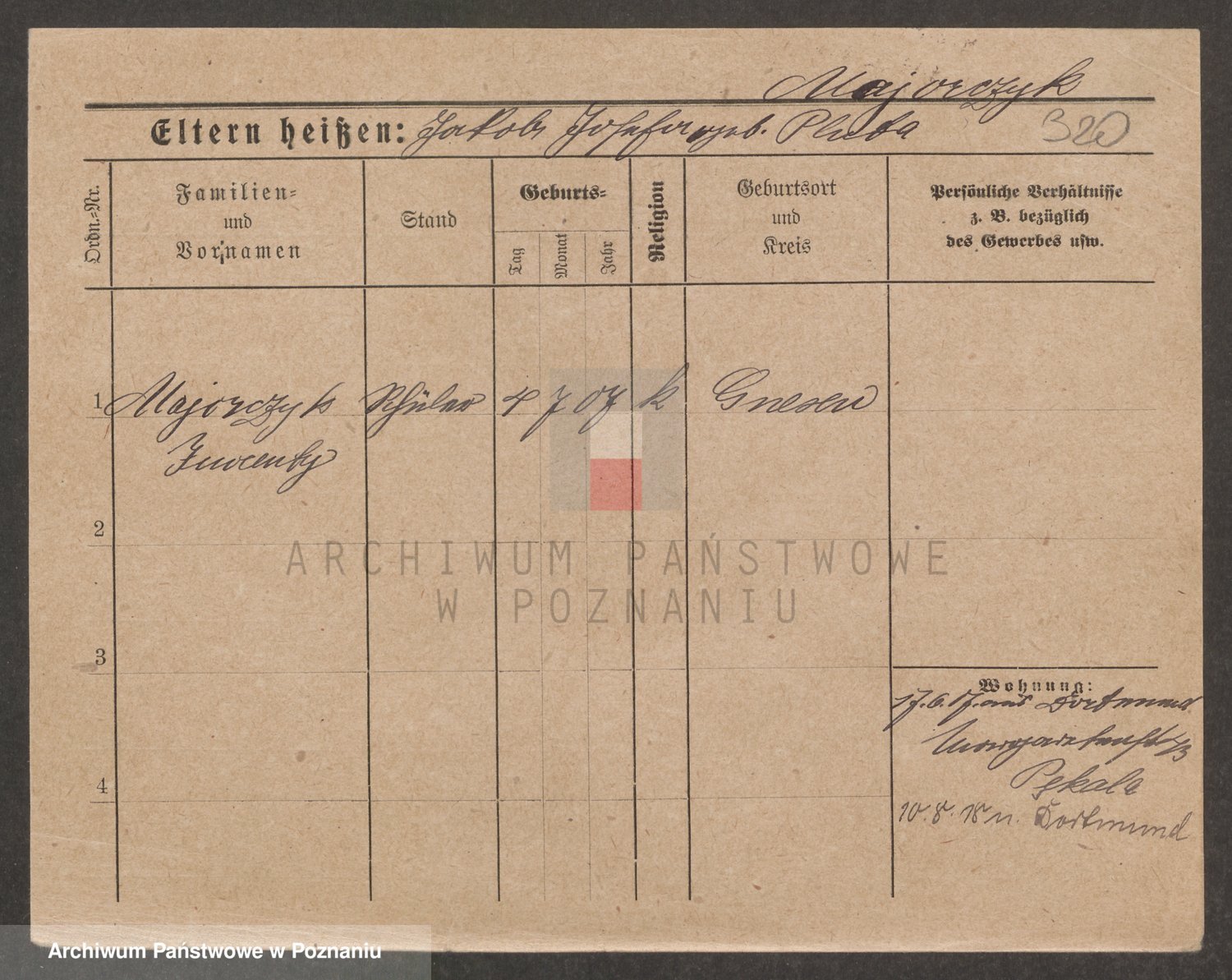 Podgląd karty osobowej dostępny jest po kliknięciu na nazwisko lub ikonkę karty. Można dokonywać powiększenia (ikony na górze) lub przechodzić między kolejnymi skanami (strzałki po bokach).