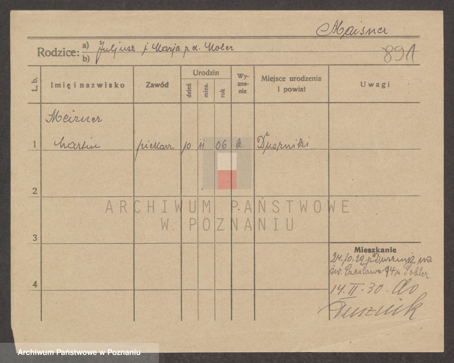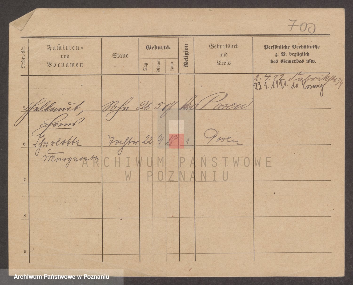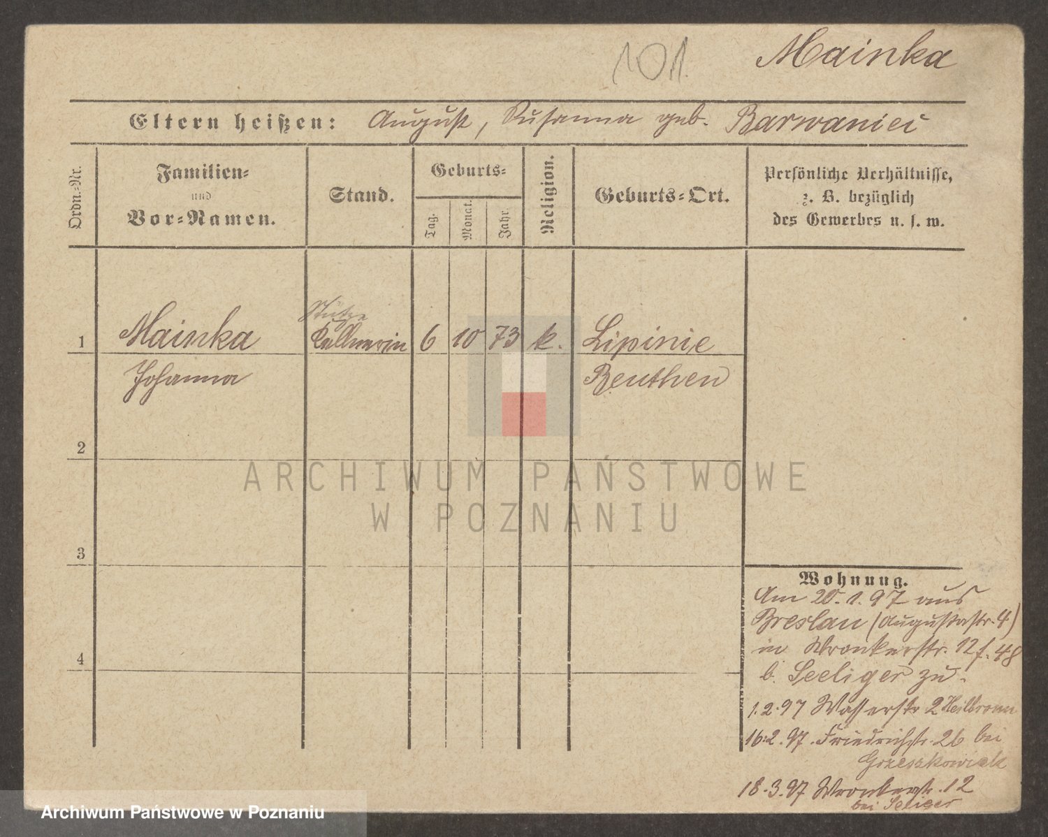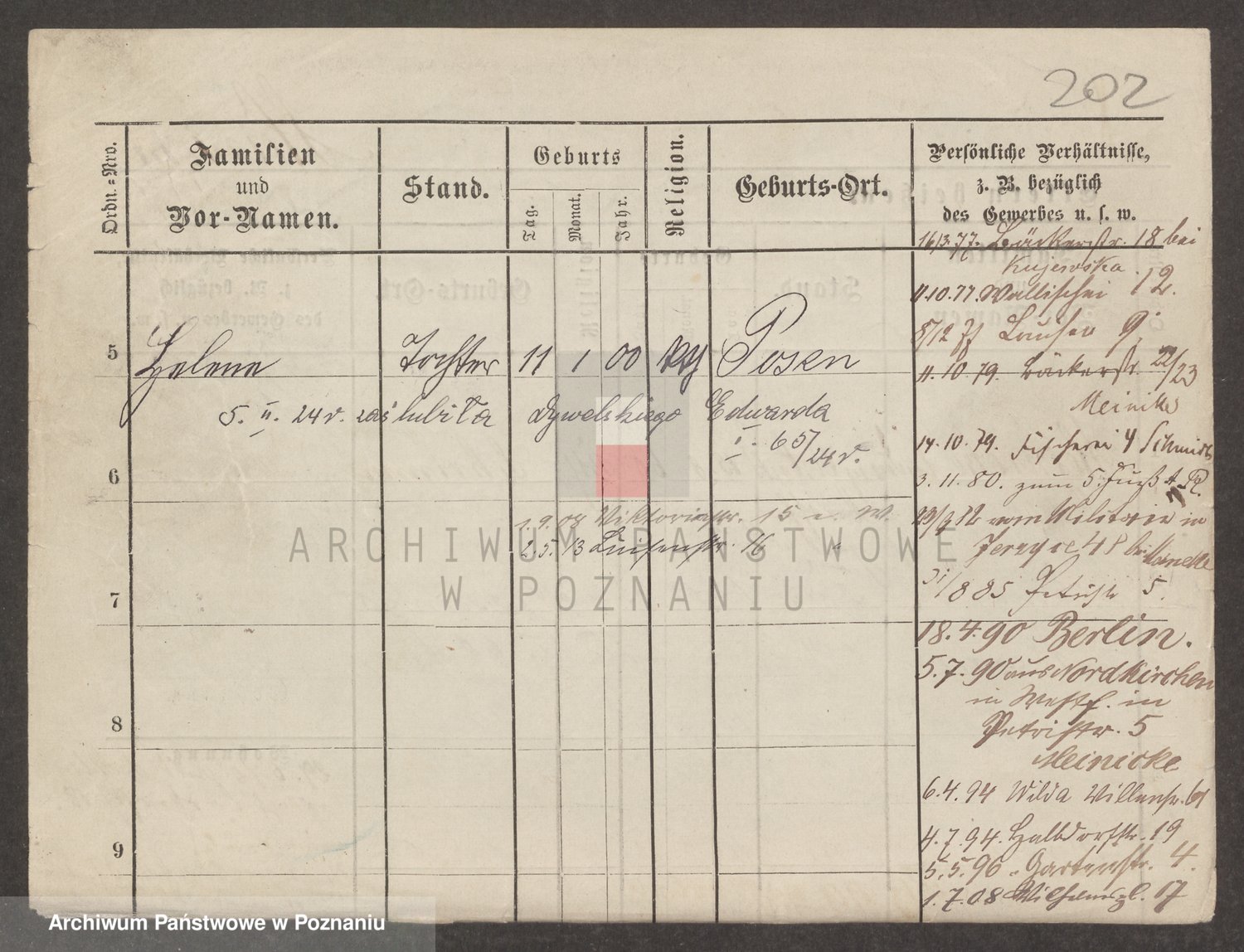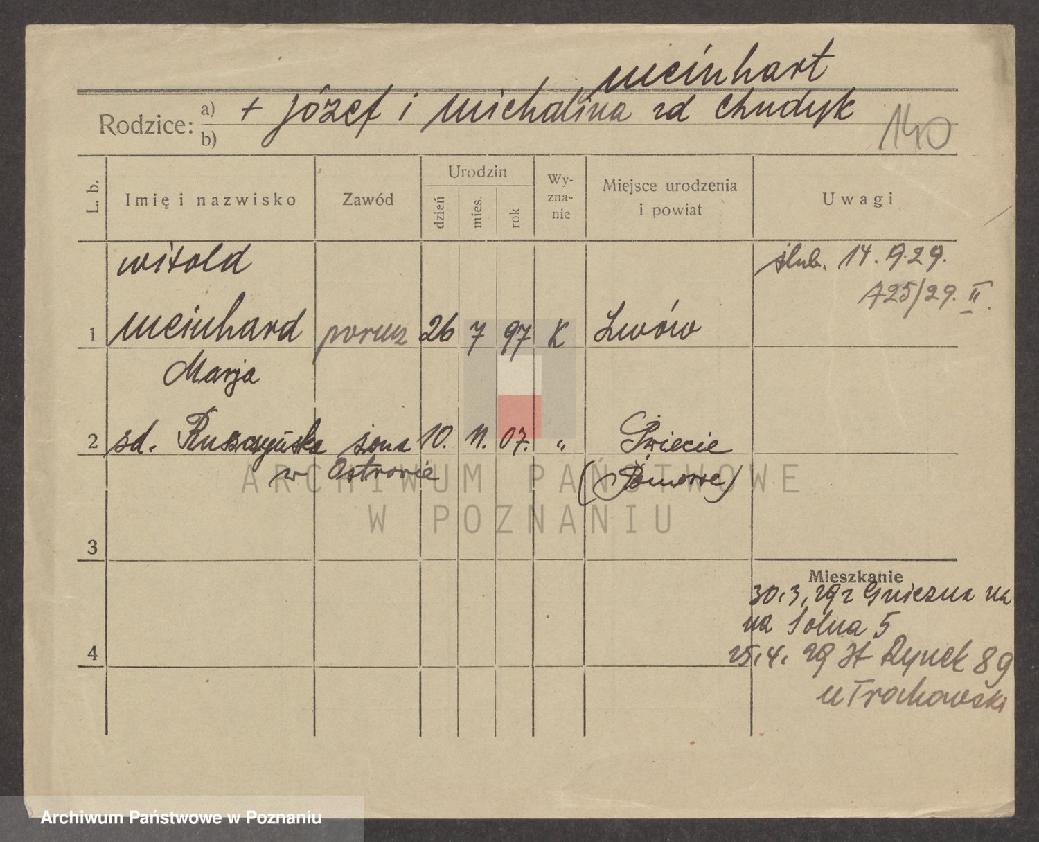 Podgląd karty osobowej dostępny jest po kliknięciu na nazwisko lub ikonkę karty. Można dokonywać powiększenia (ikony na górze) lub przechodzić między kolejnymi skanami (strzałki po bokach).