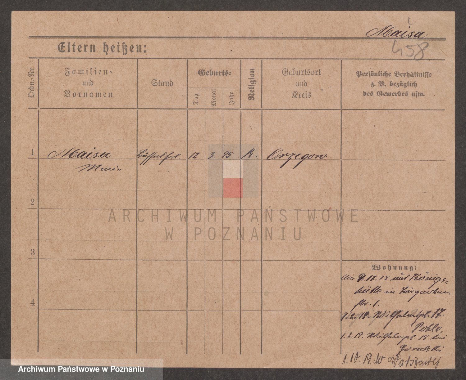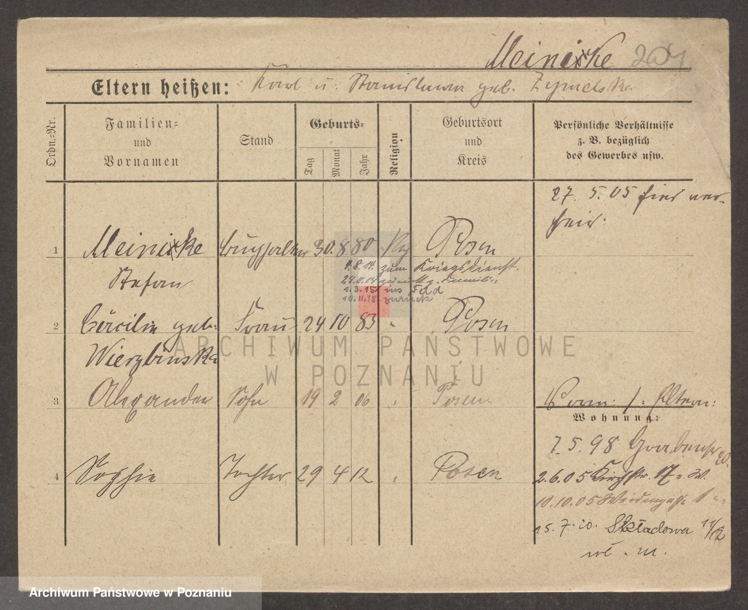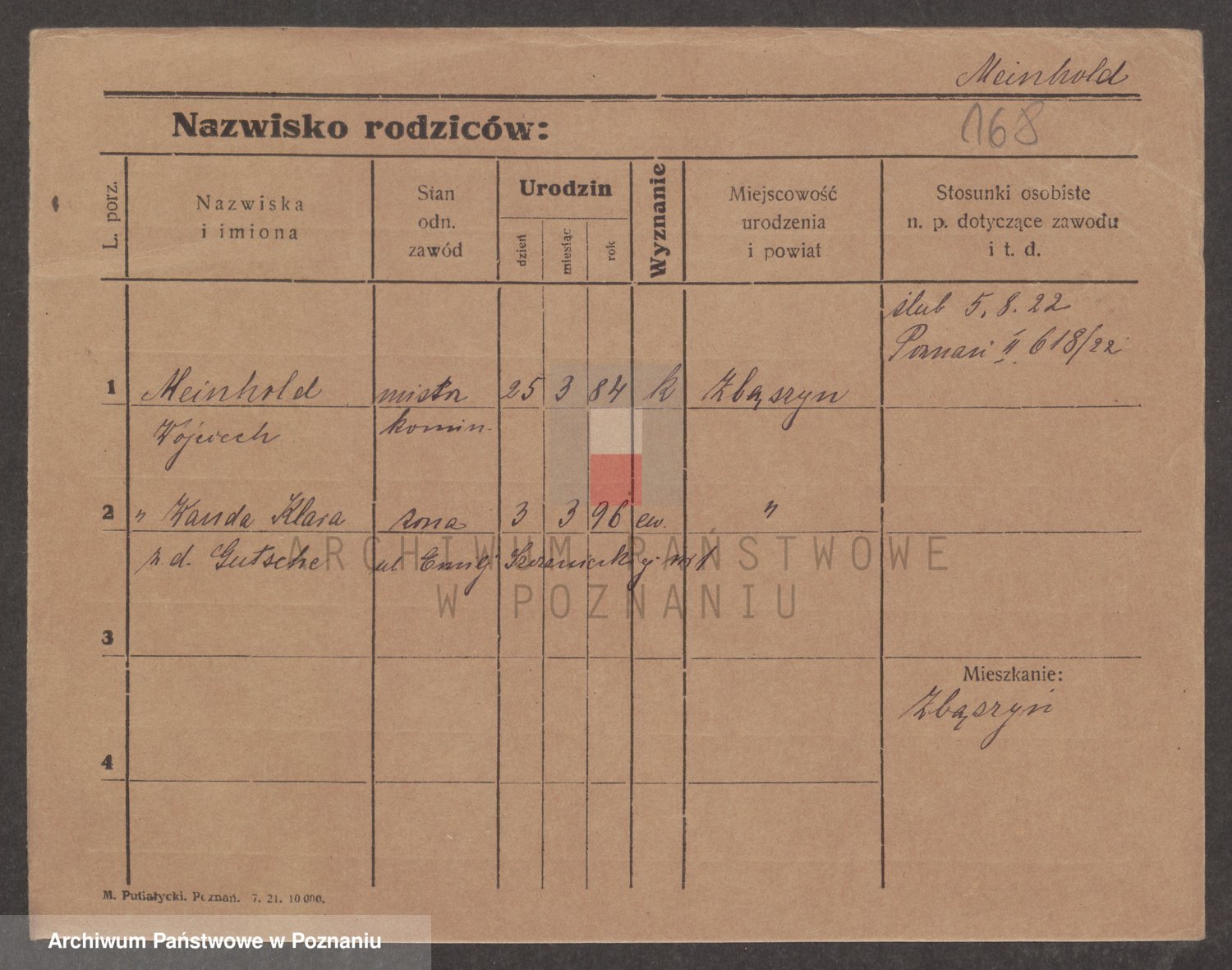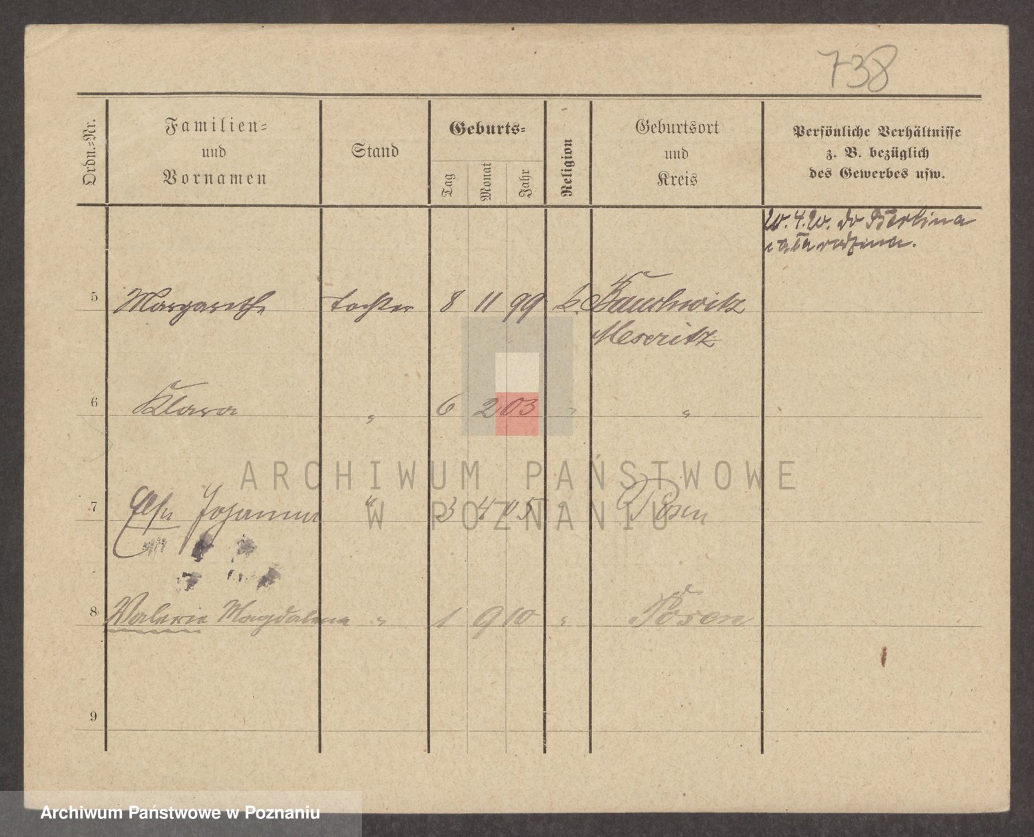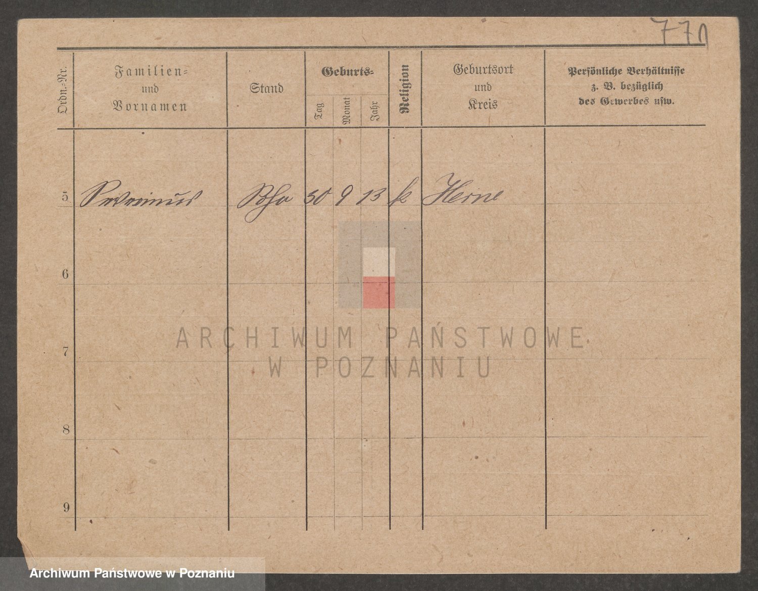 Podgląd karty osobowej dostępny jest po kliknięciu na nazwisko lub ikonkę karty. Można dokonywać powiększenia (ikony na górze) lub przechodzić między kolejnymi skanami (strzałki po bokach).