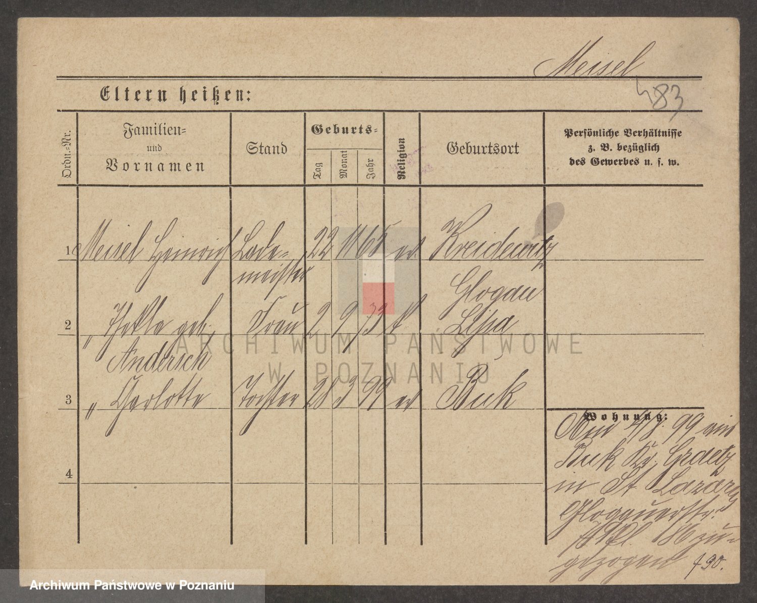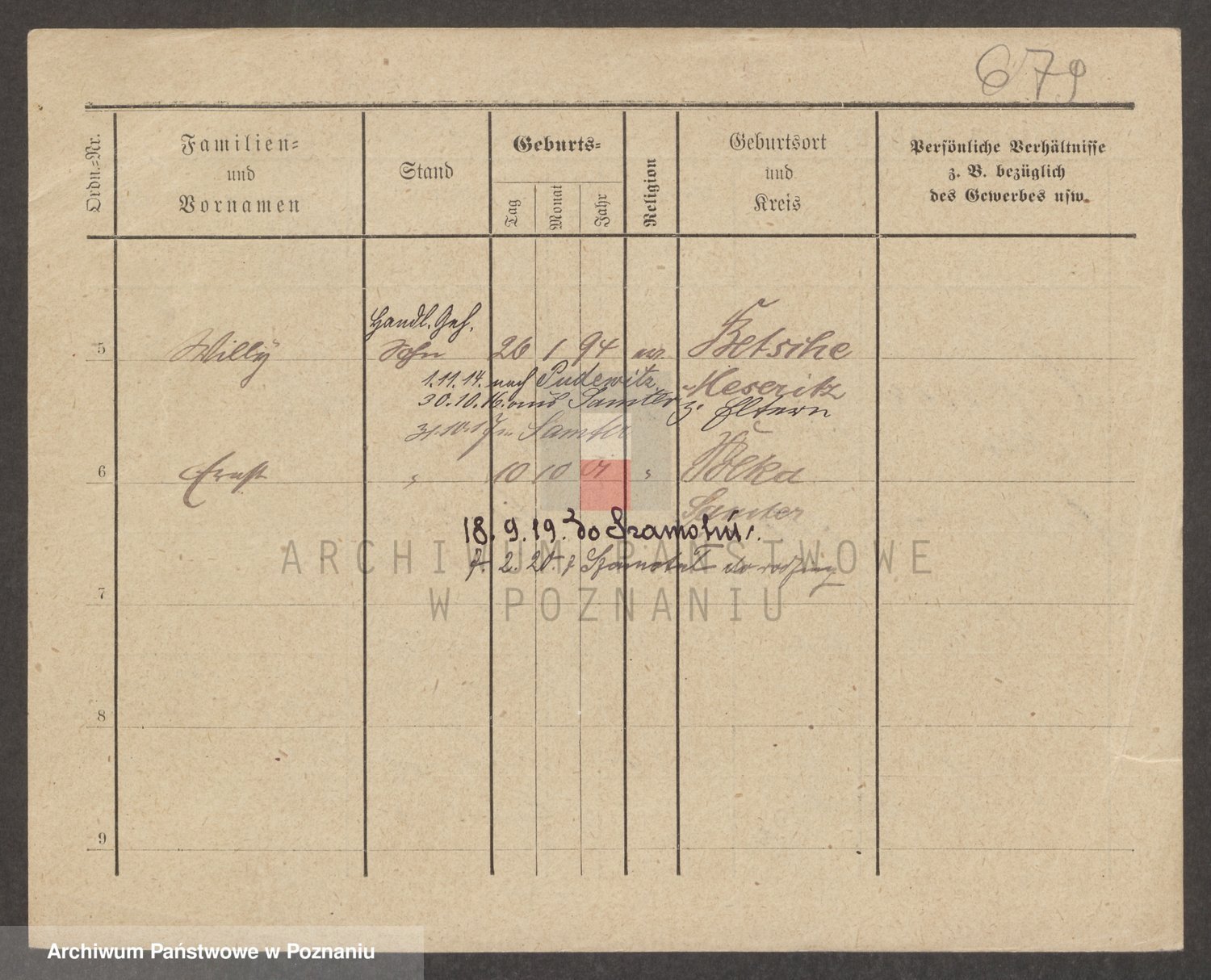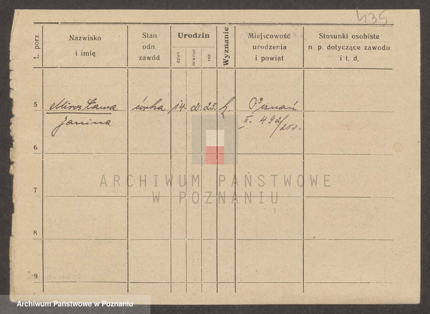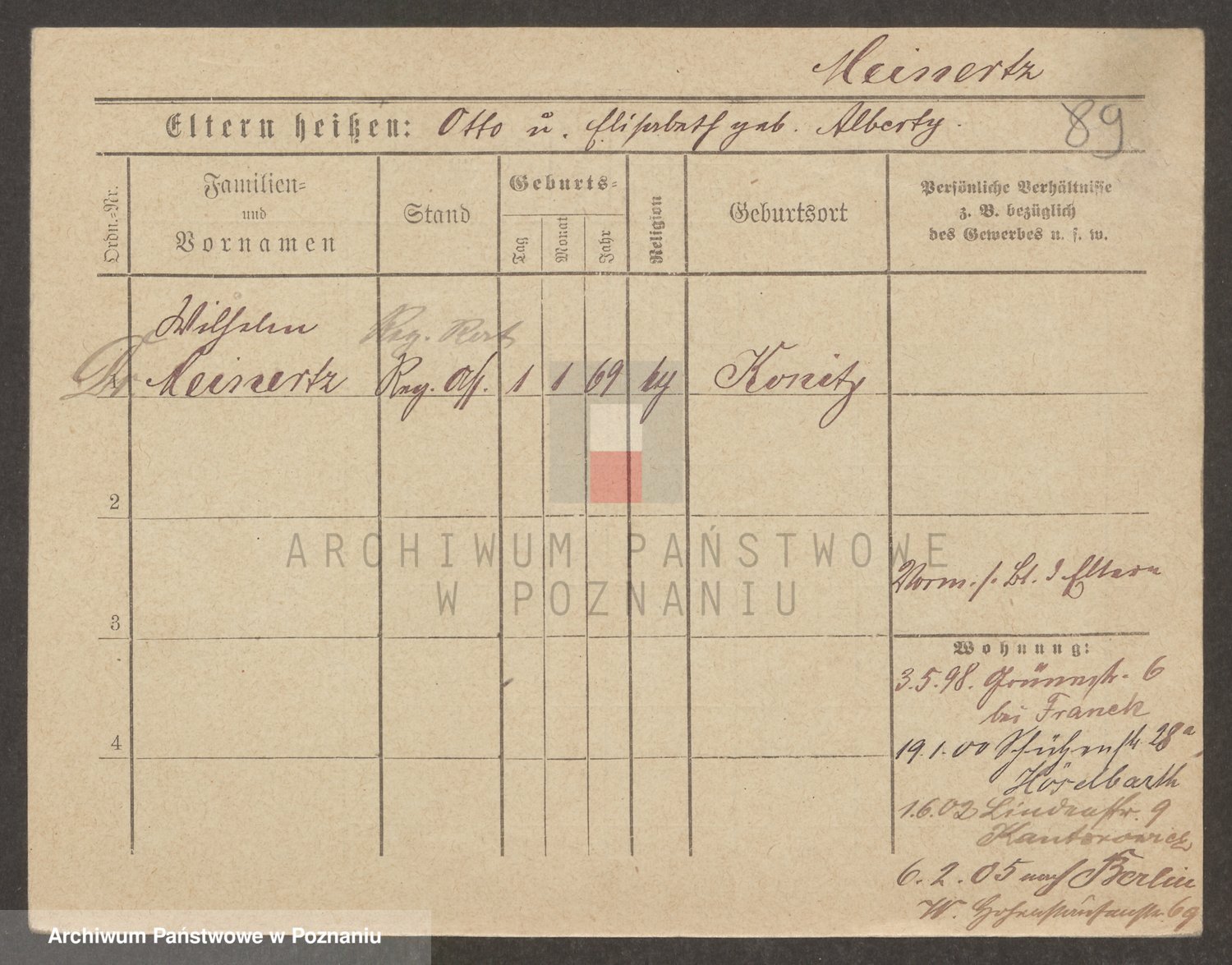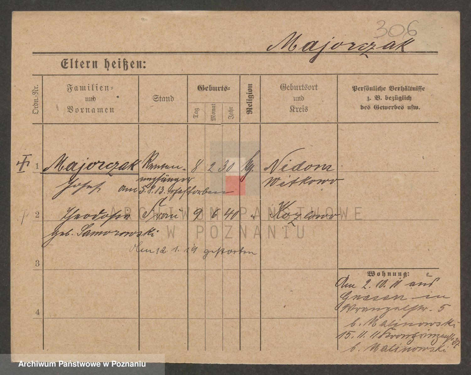Podgląd karty osobowej dostępny jest po kliknięciu na nazwisko lub ikonkę karty. Można dokonywać powiększenia (ikony na górze) lub przechodzić między kolejnymi skanami (strzałki po bokach).