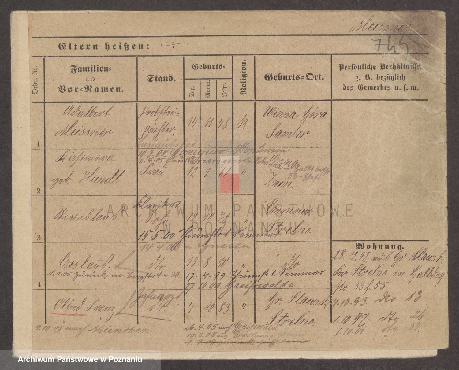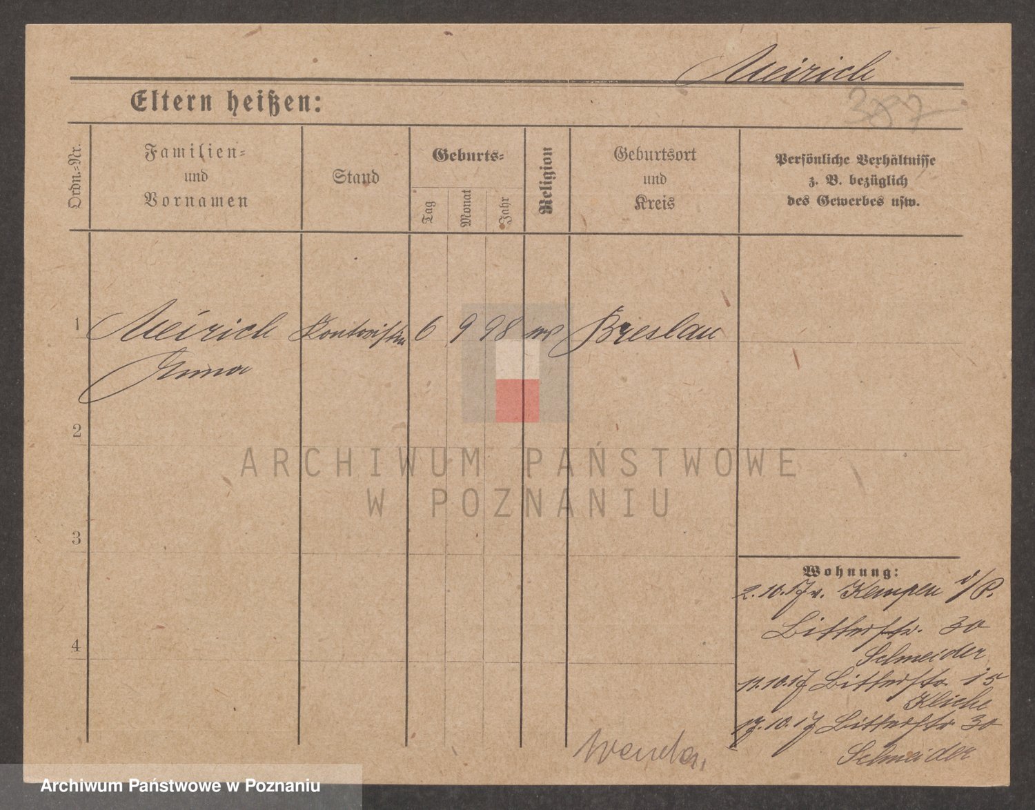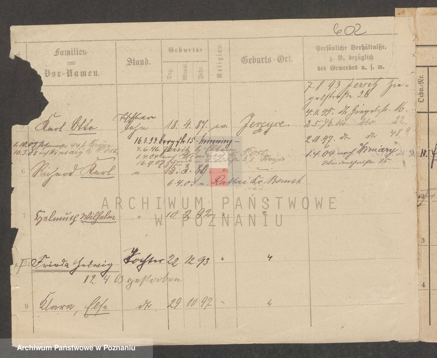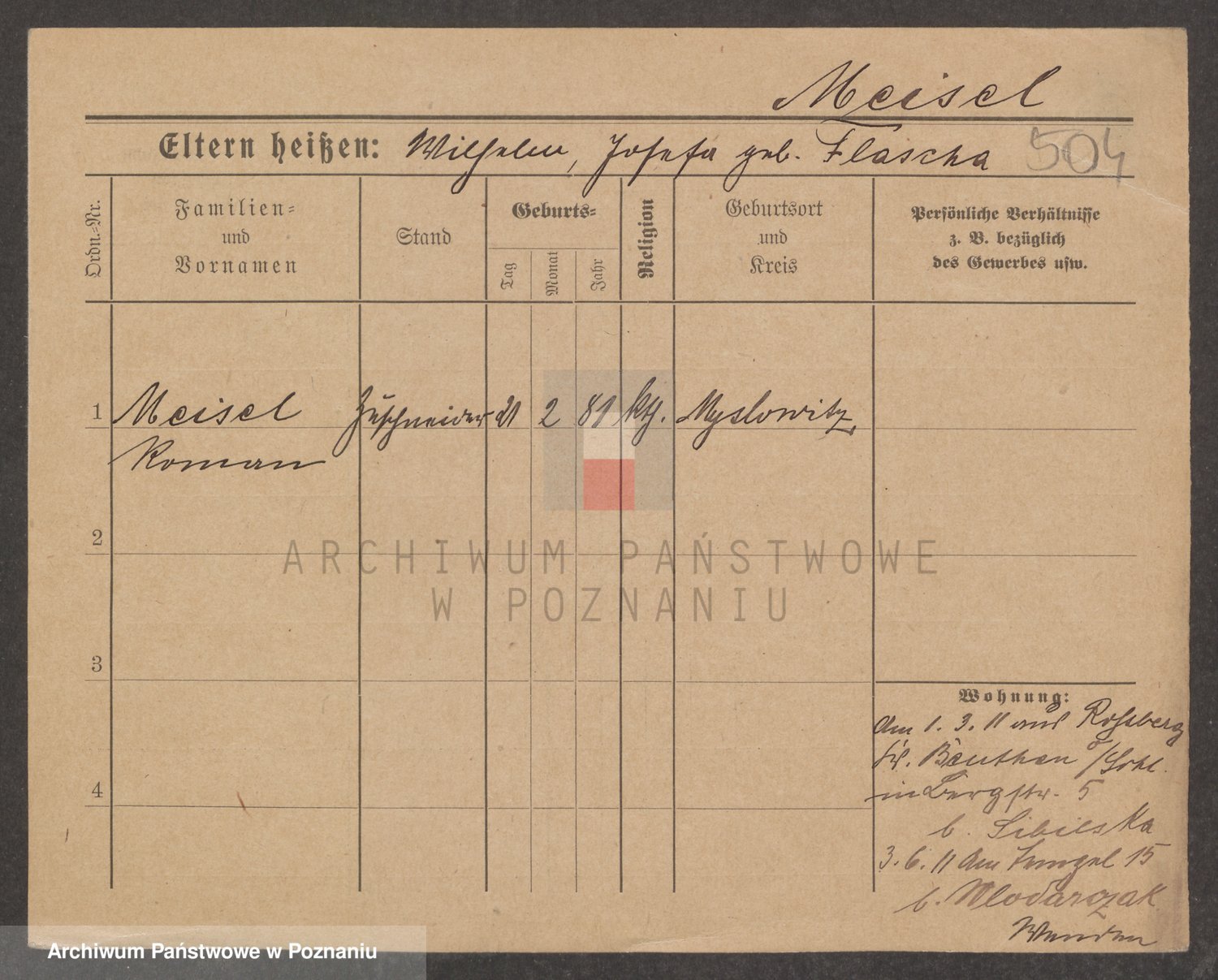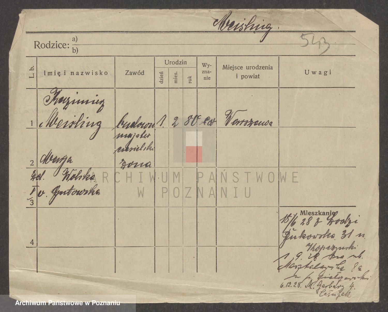 Podgląd karty osobowej dostępny jest po kliknięciu na nazwisko lub ikonkę karty. Można dokonywać powiększenia (ikony na górze) lub przechodzić między kolejnymi skanami (strzałki po bokach).