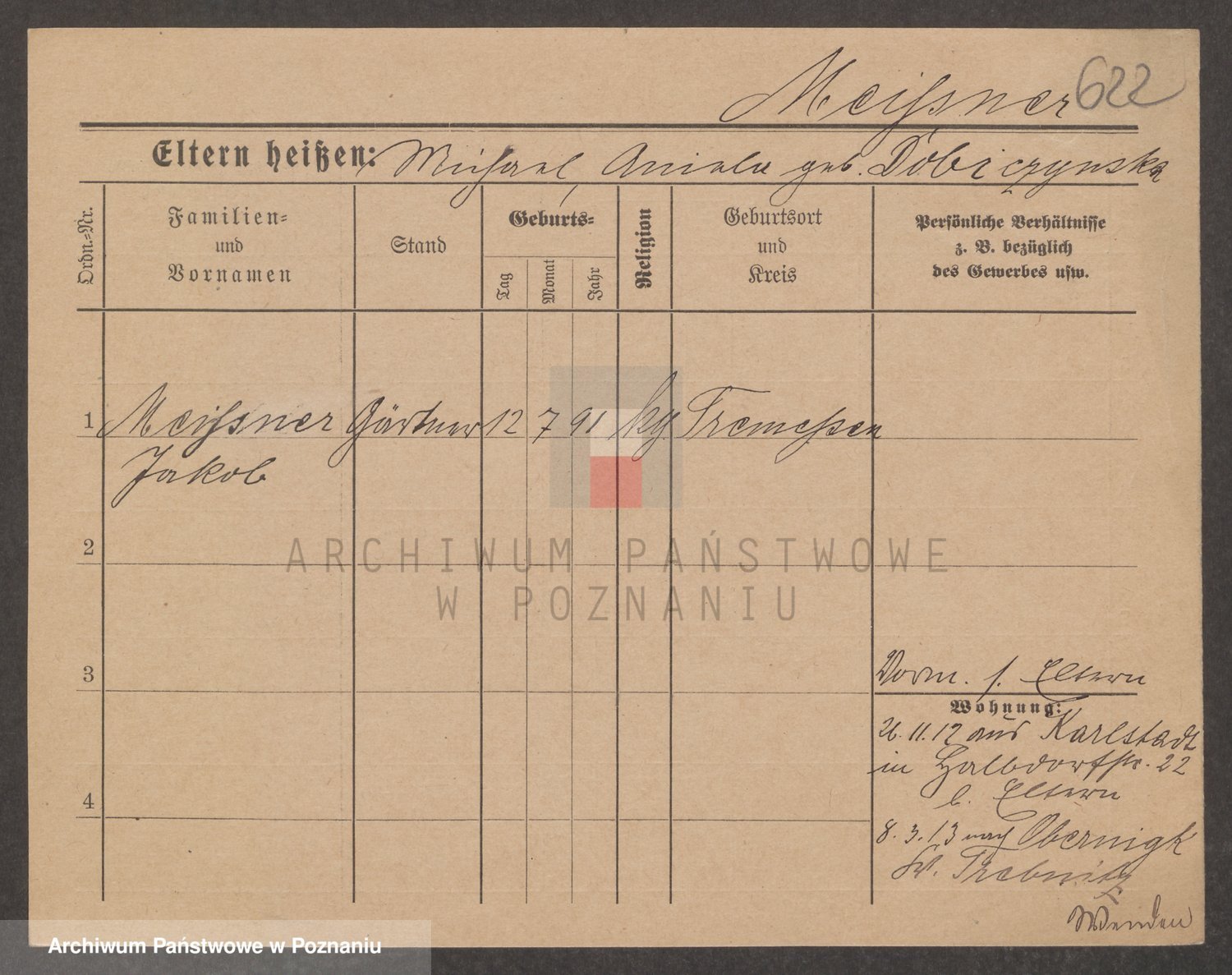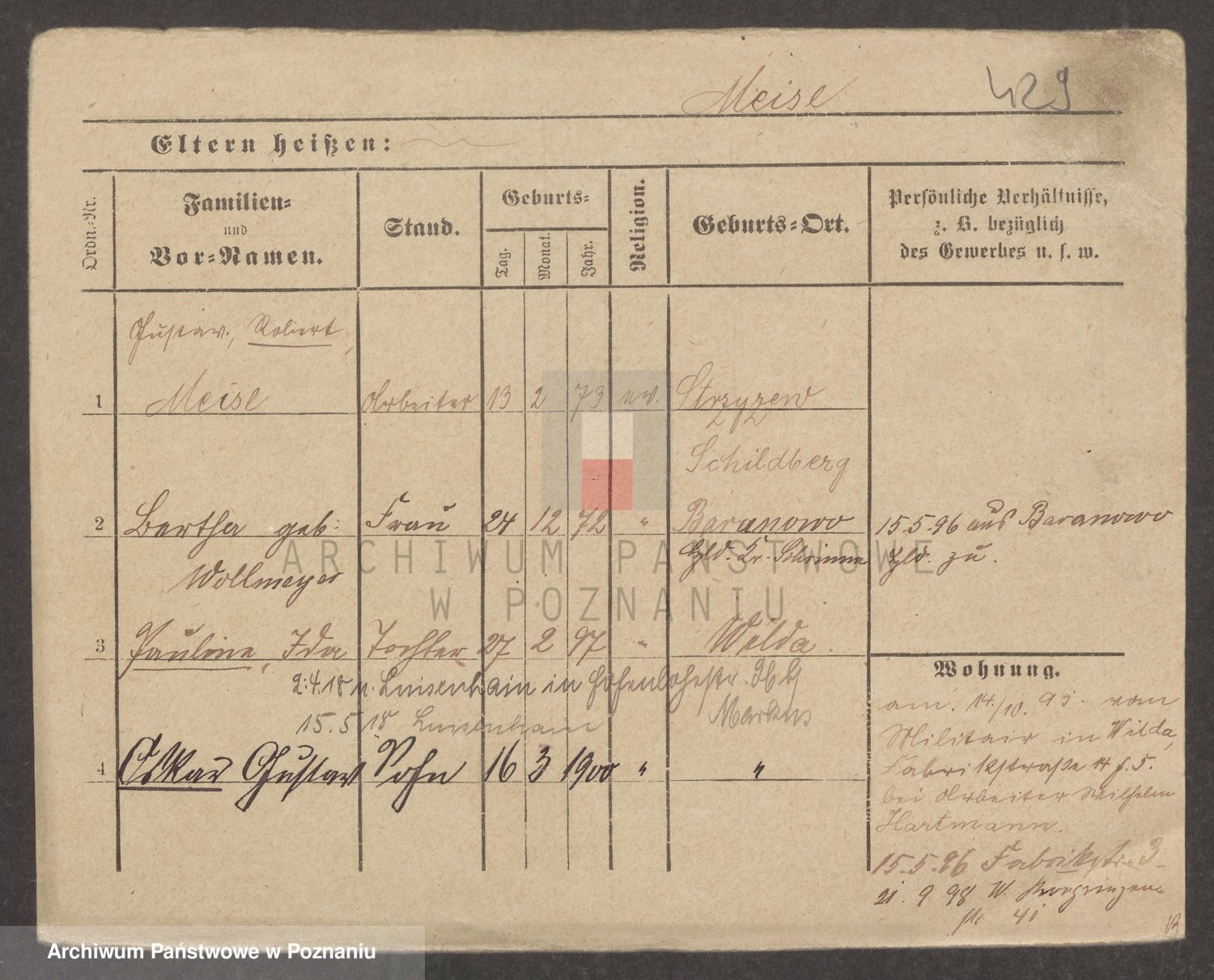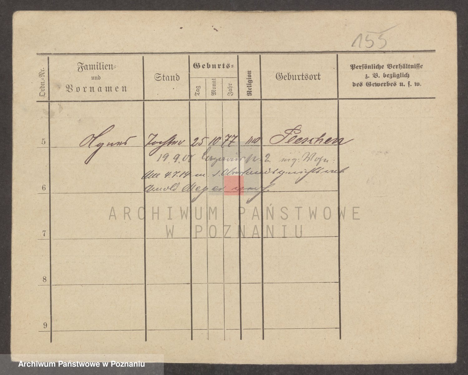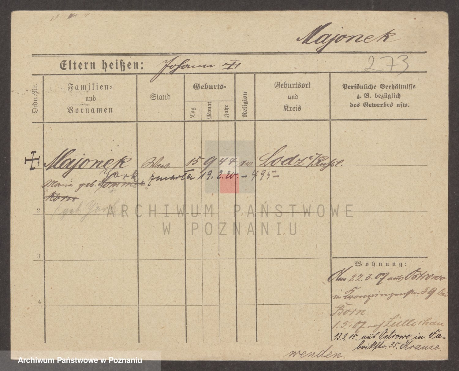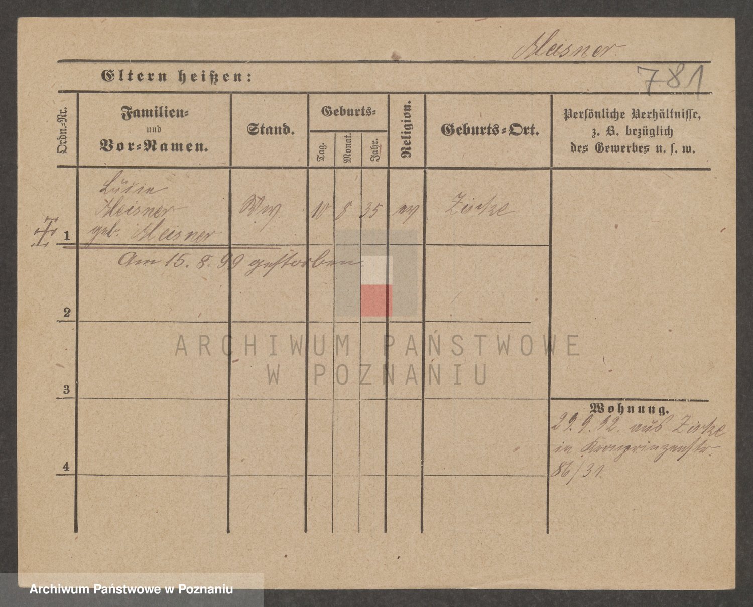 Podgląd karty osobowej dostępny jest po kliknięciu na nazwisko lub ikonkę karty. Można dokonywać powiększenia (ikony na górze) lub przechodzić między kolejnymi skanami (strzałki po bokach).
