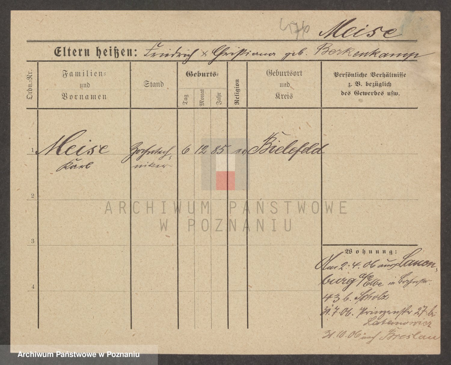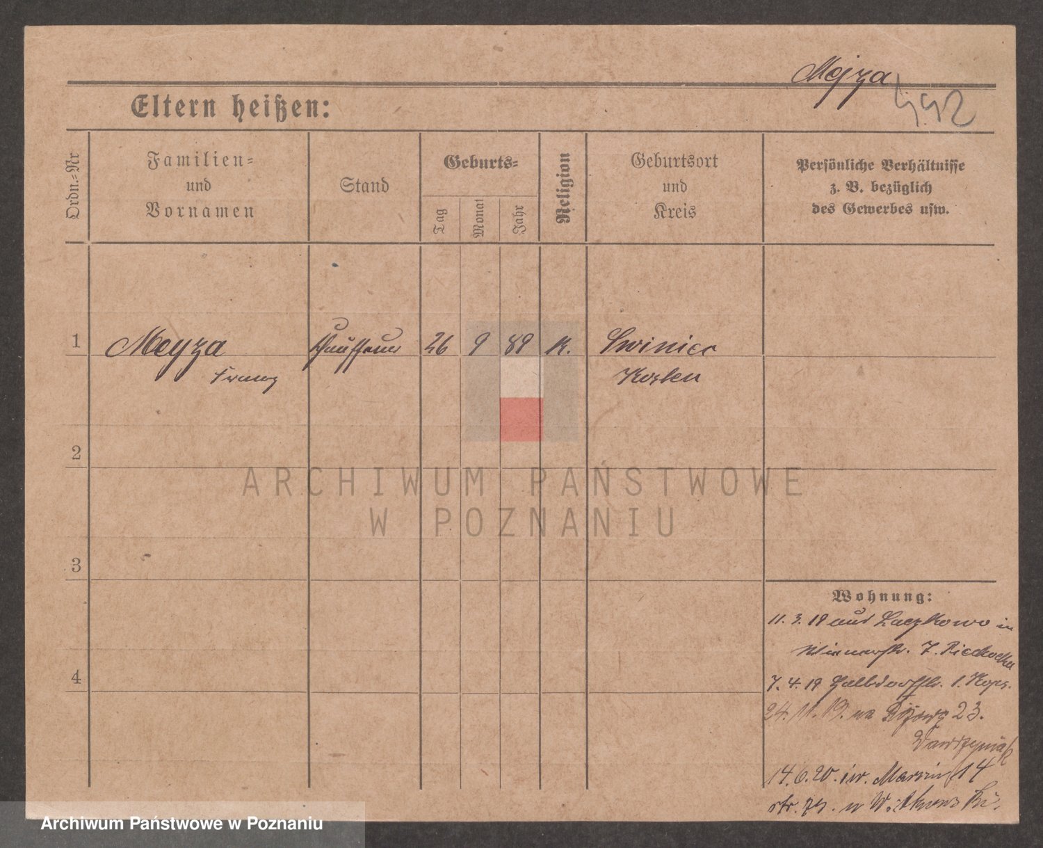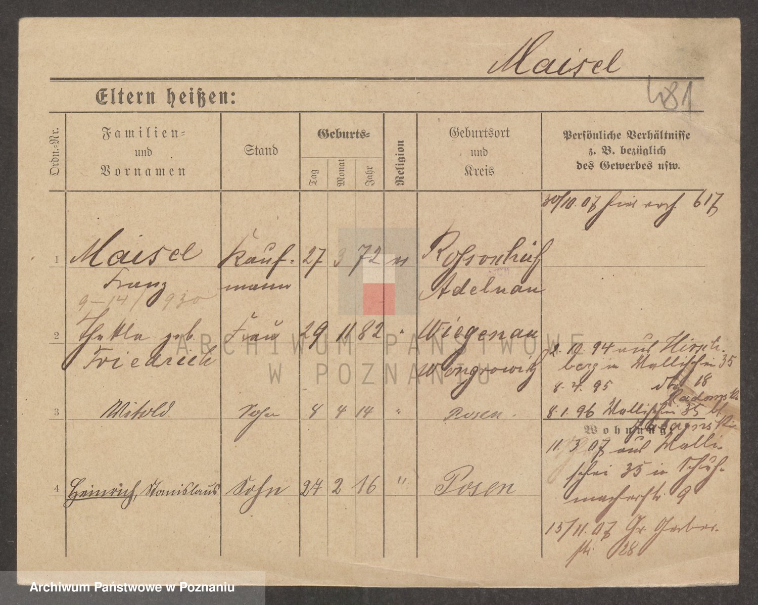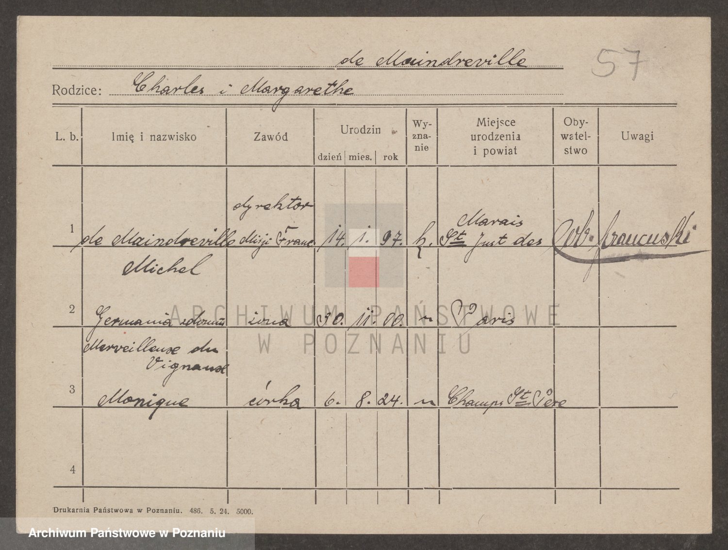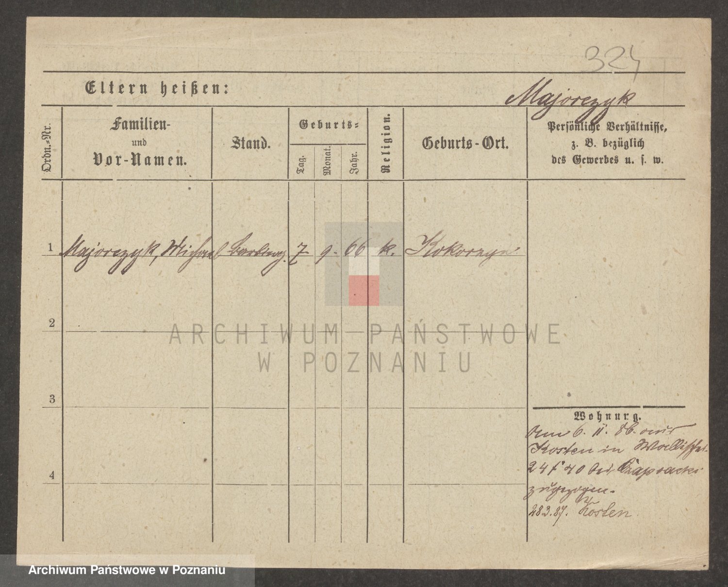 Podgląd karty osobowej dostępny jest po kliknięciu na nazwisko lub ikonkę karty. Można dokonywać powiększenia (ikony na górze) lub przechodzić między kolejnymi skanami (strzałki po bokach).