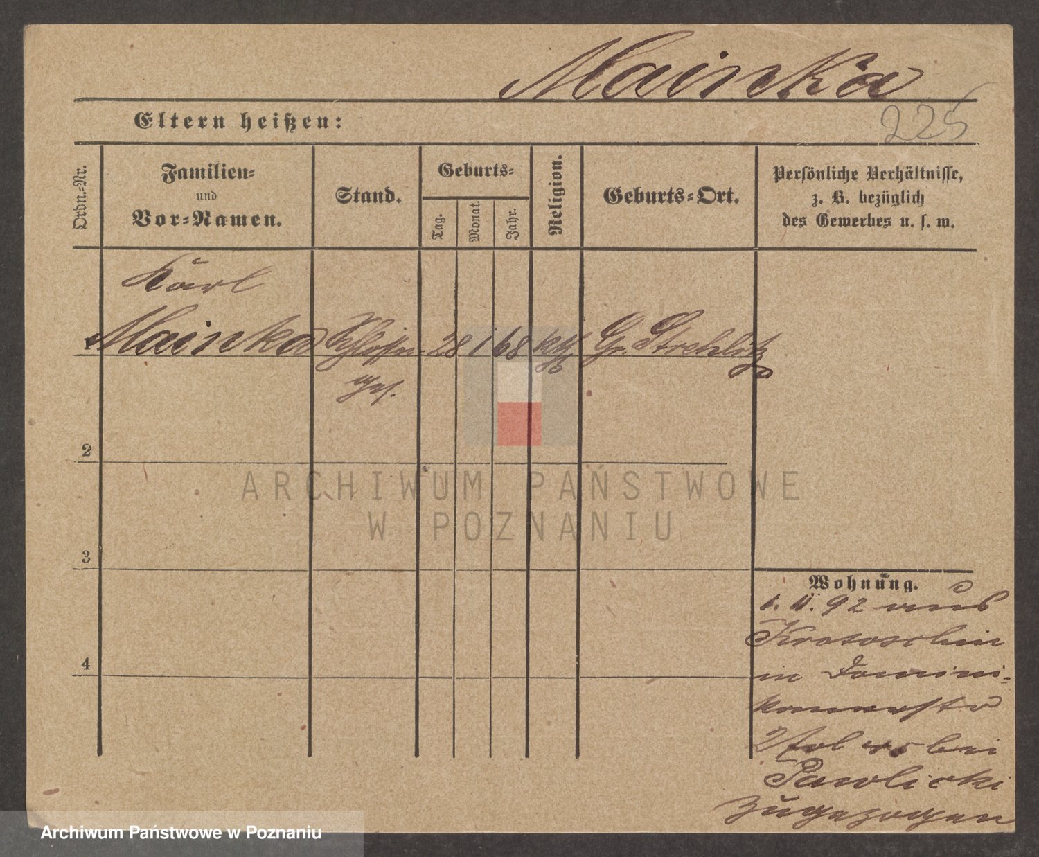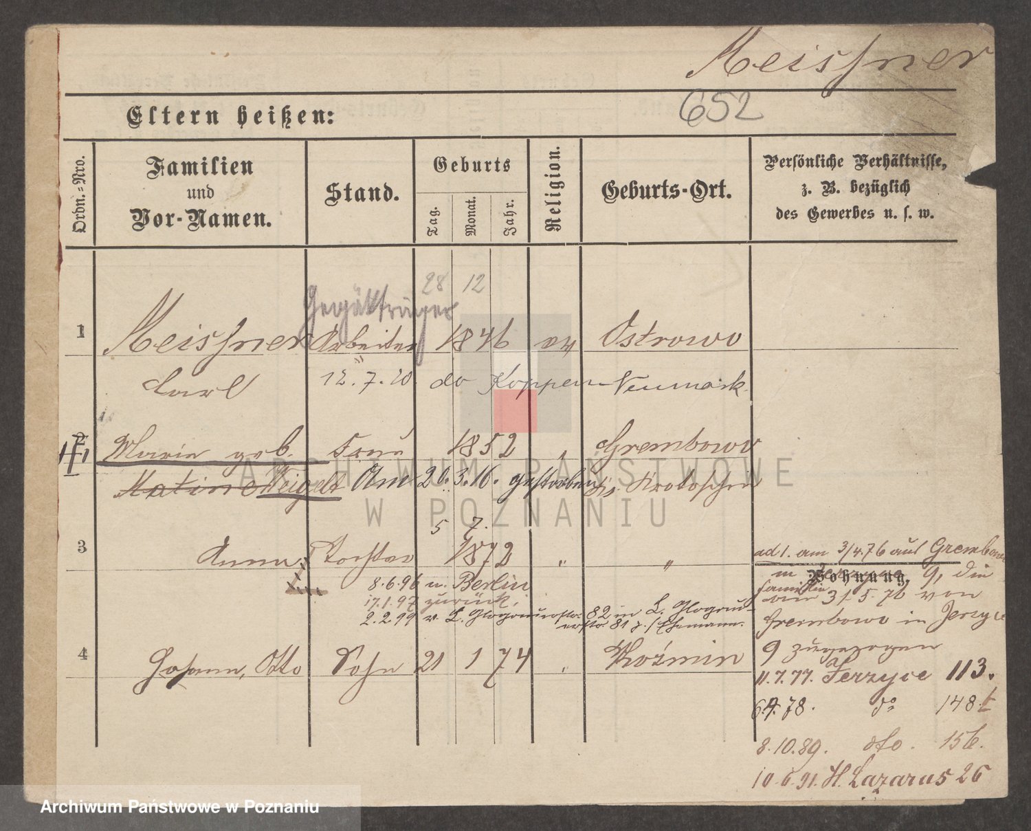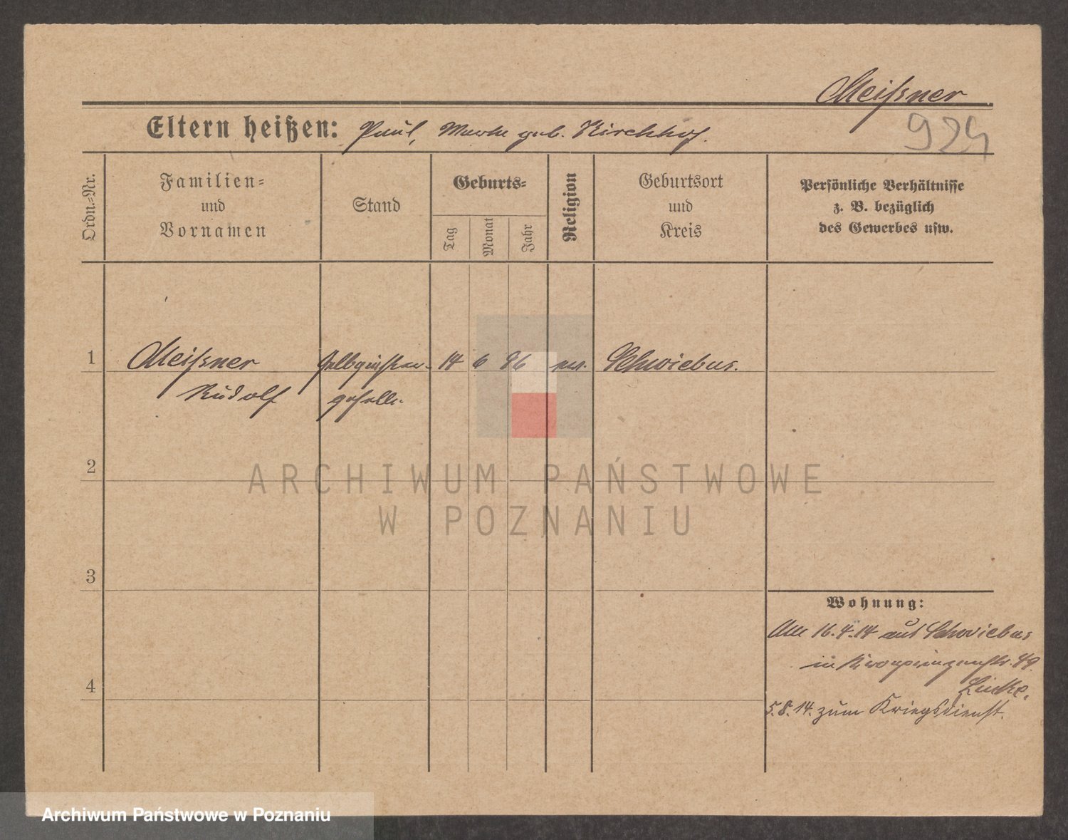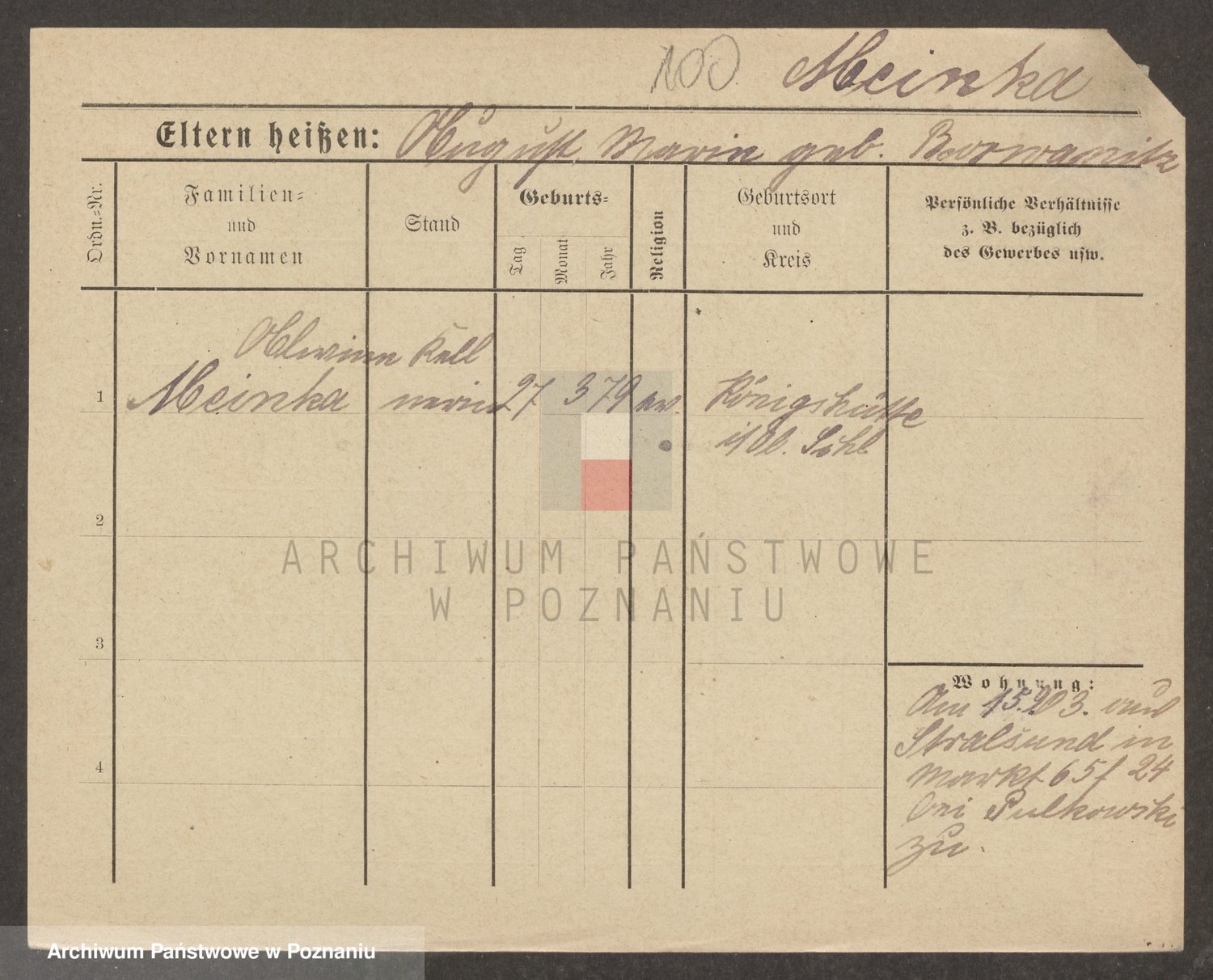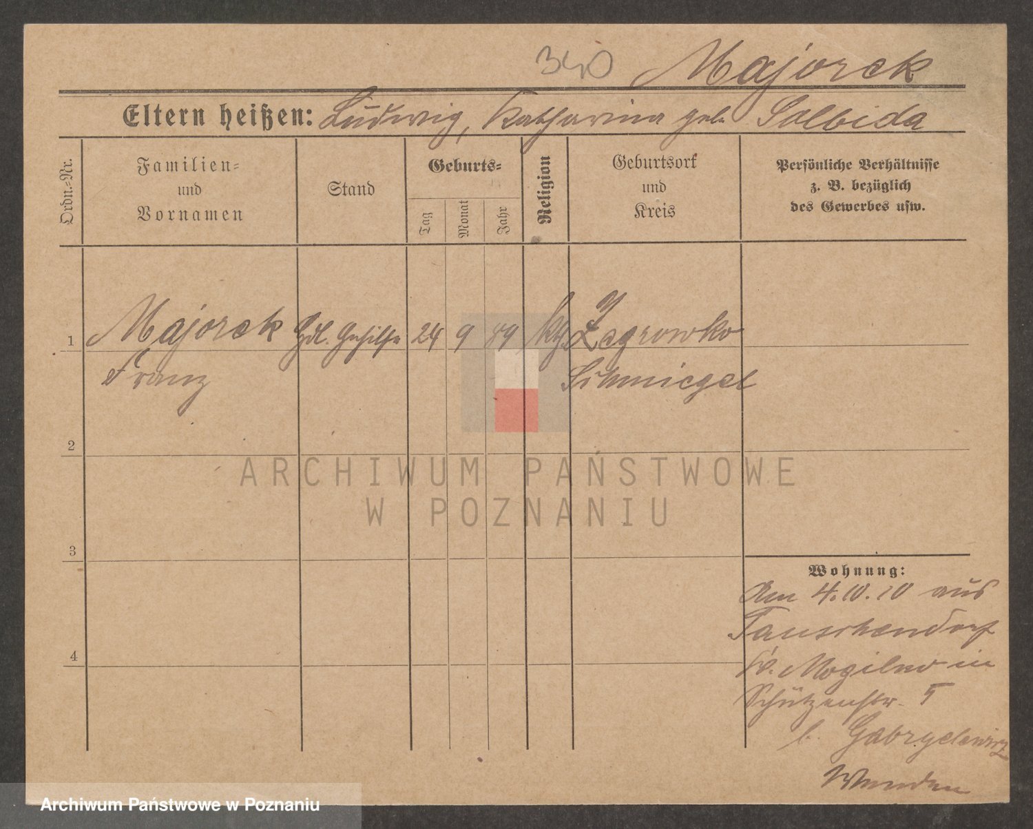 Podgląd karty osobowej dostępny jest po kliknięciu na nazwisko lub ikonkę karty. Można dokonywać powiększenia (ikony na górze) lub przechodzić między kolejnymi skanami (strzałki po bokach).